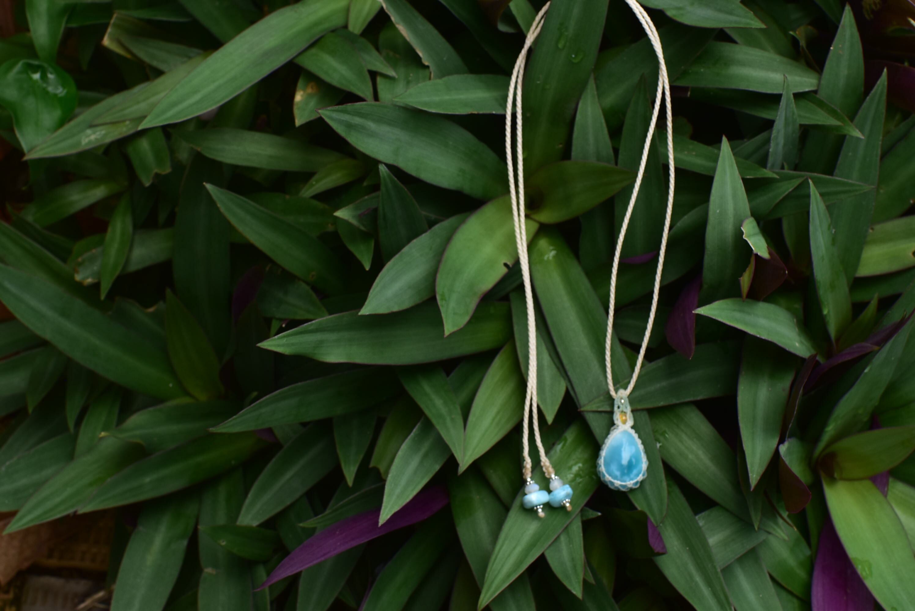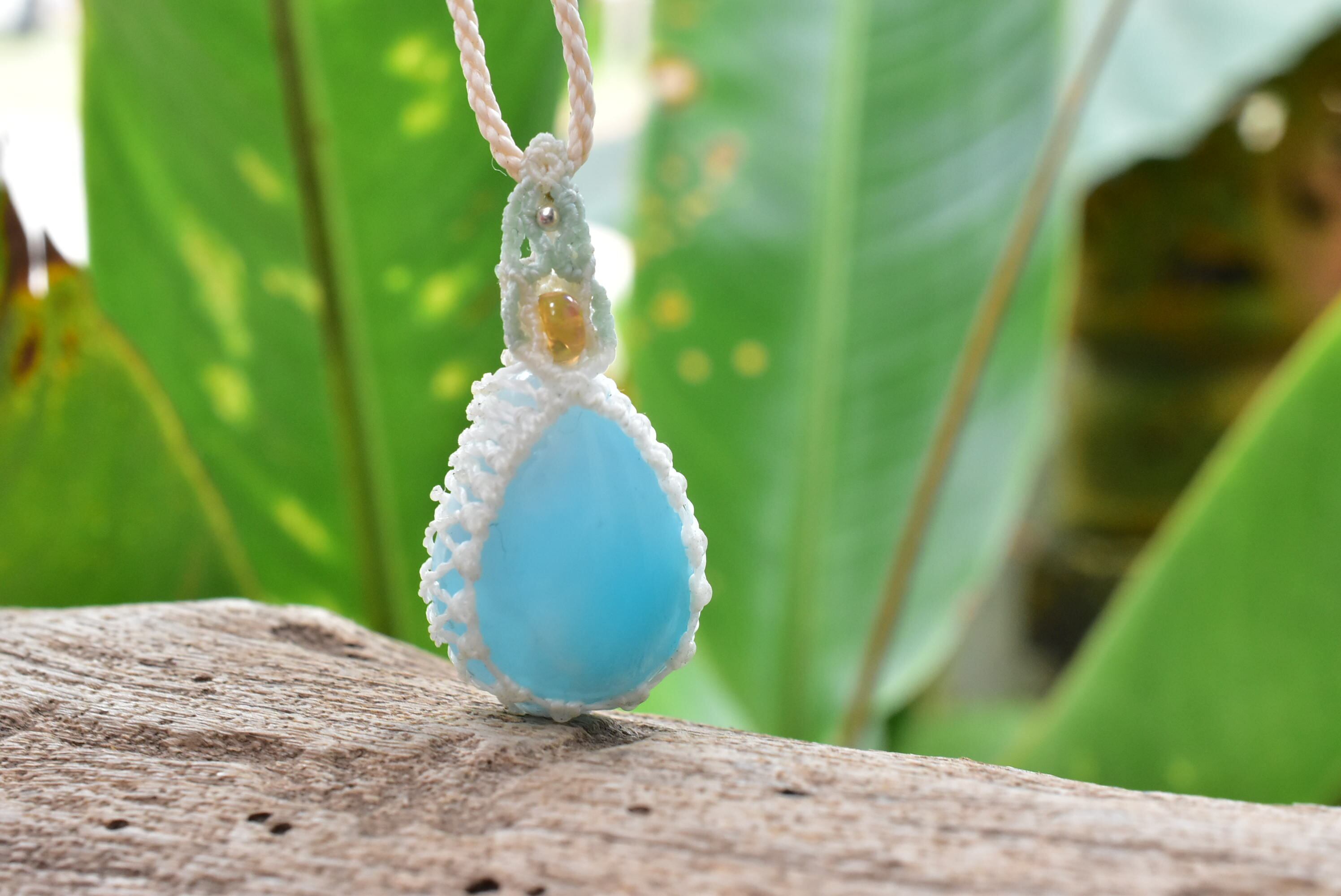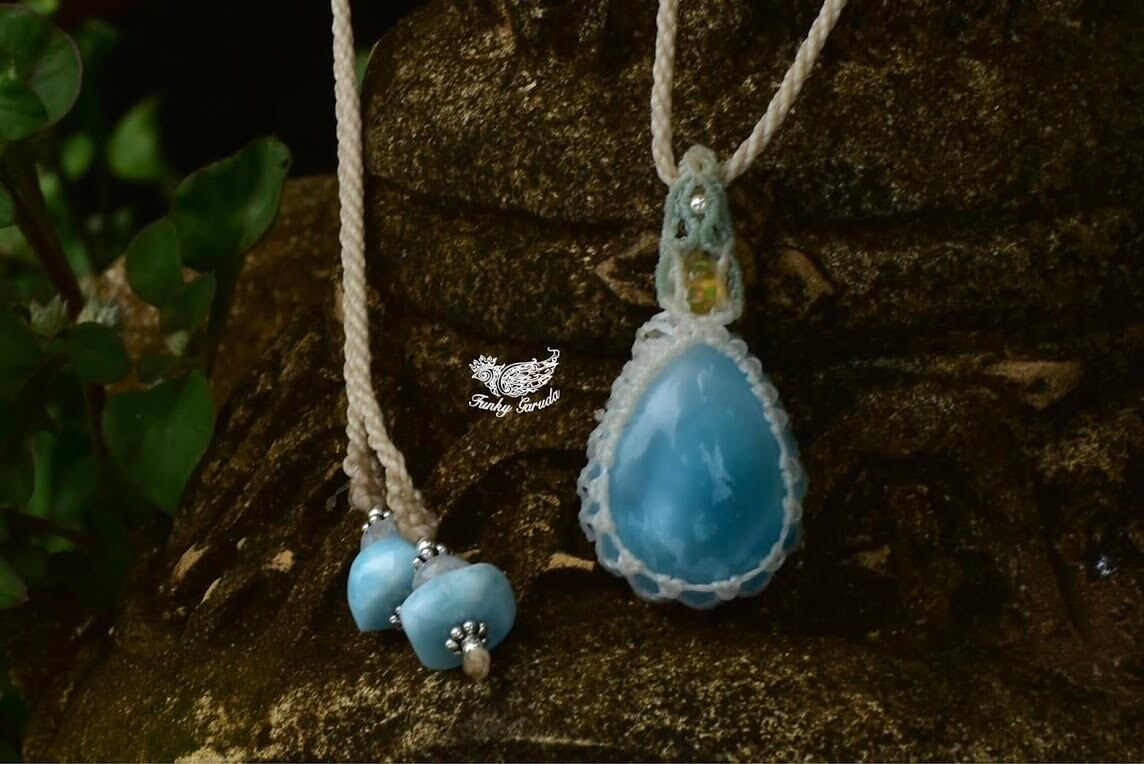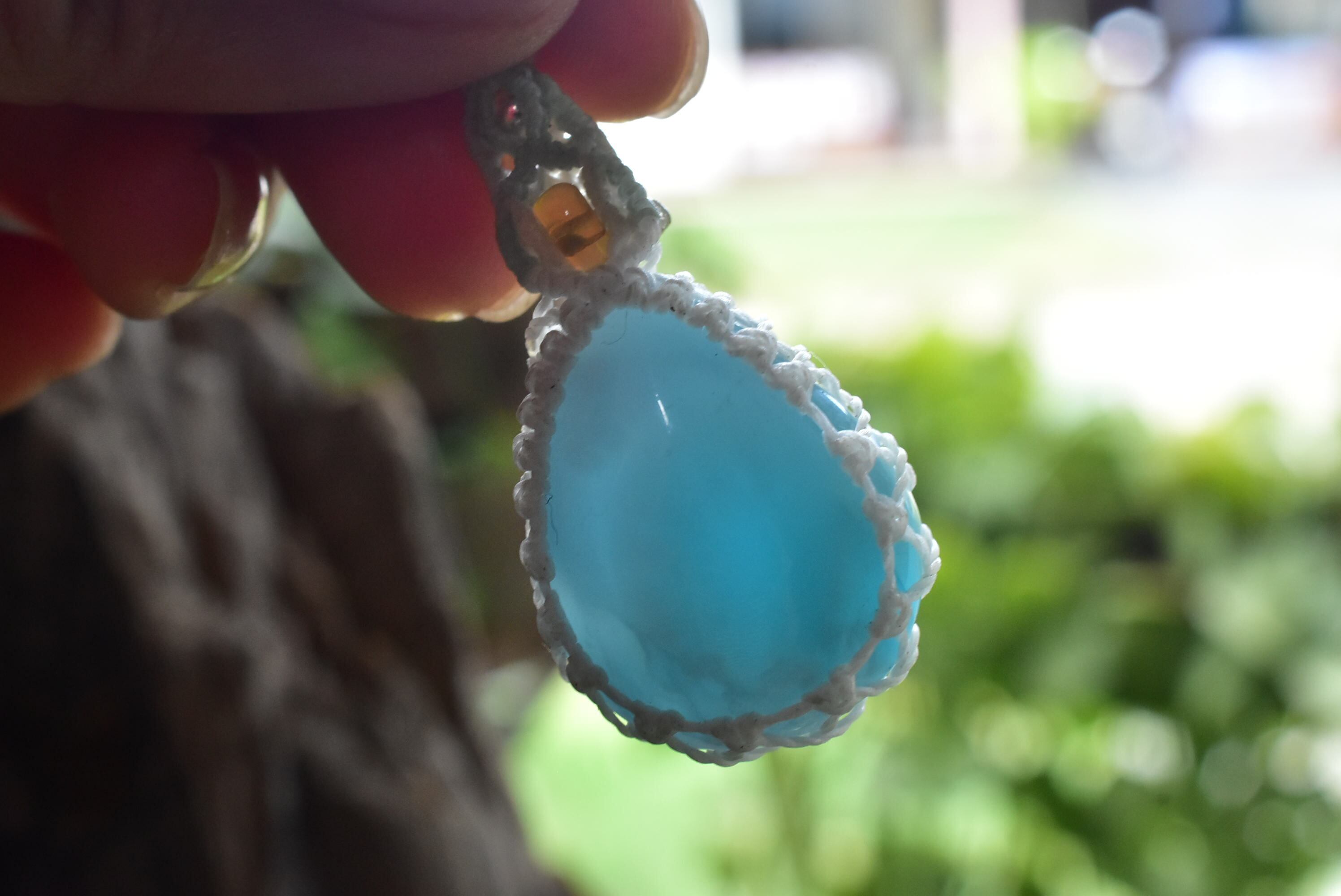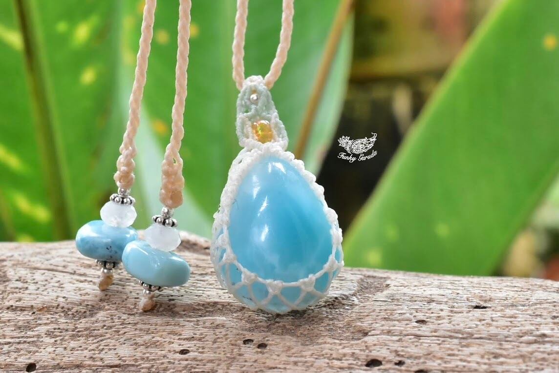 透明感ラリマーとエチオピアンオパール ビーズ マクラメペンダントlari038