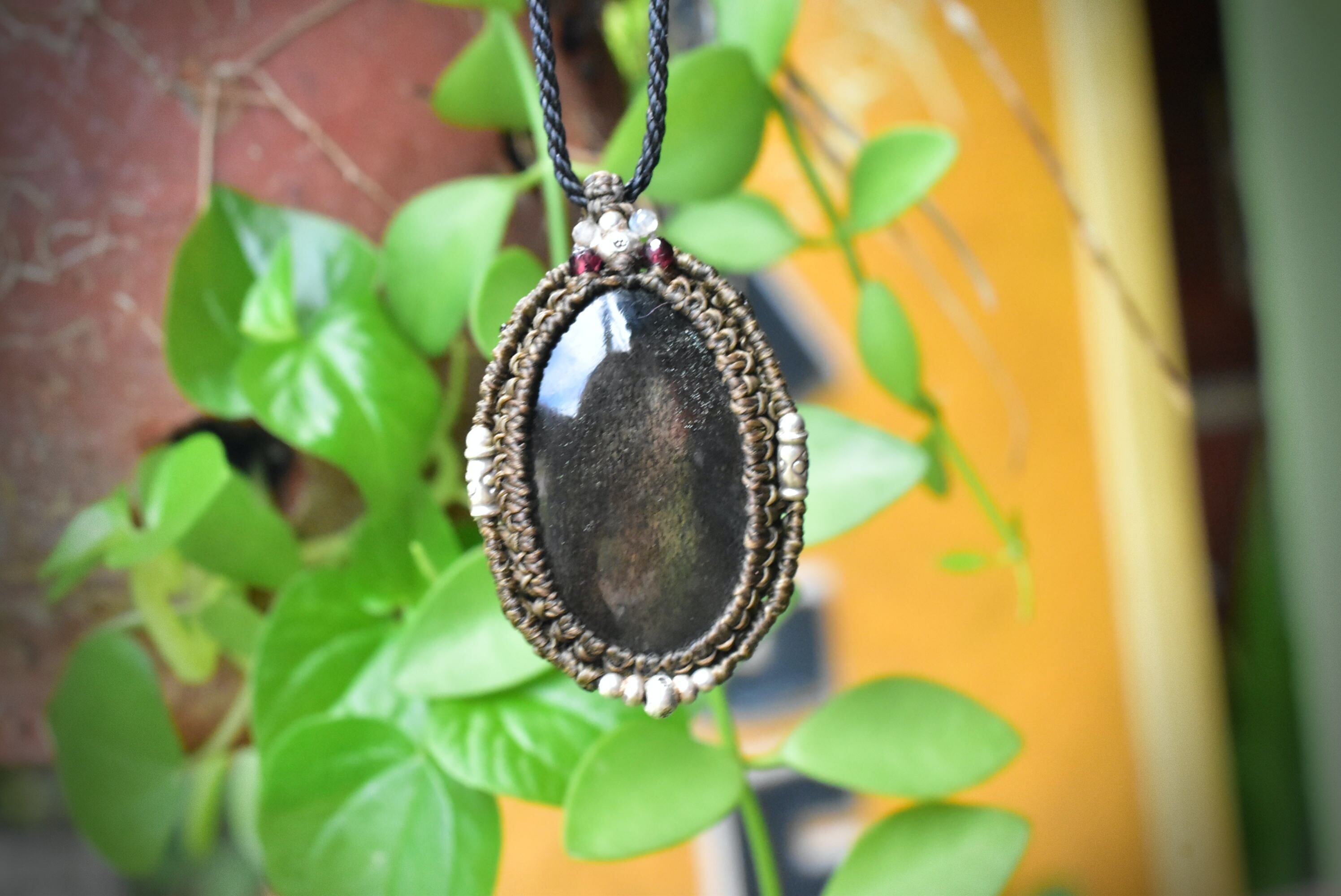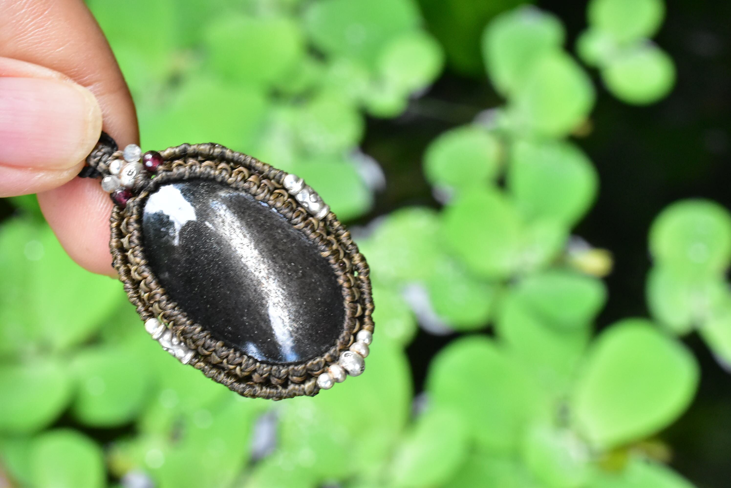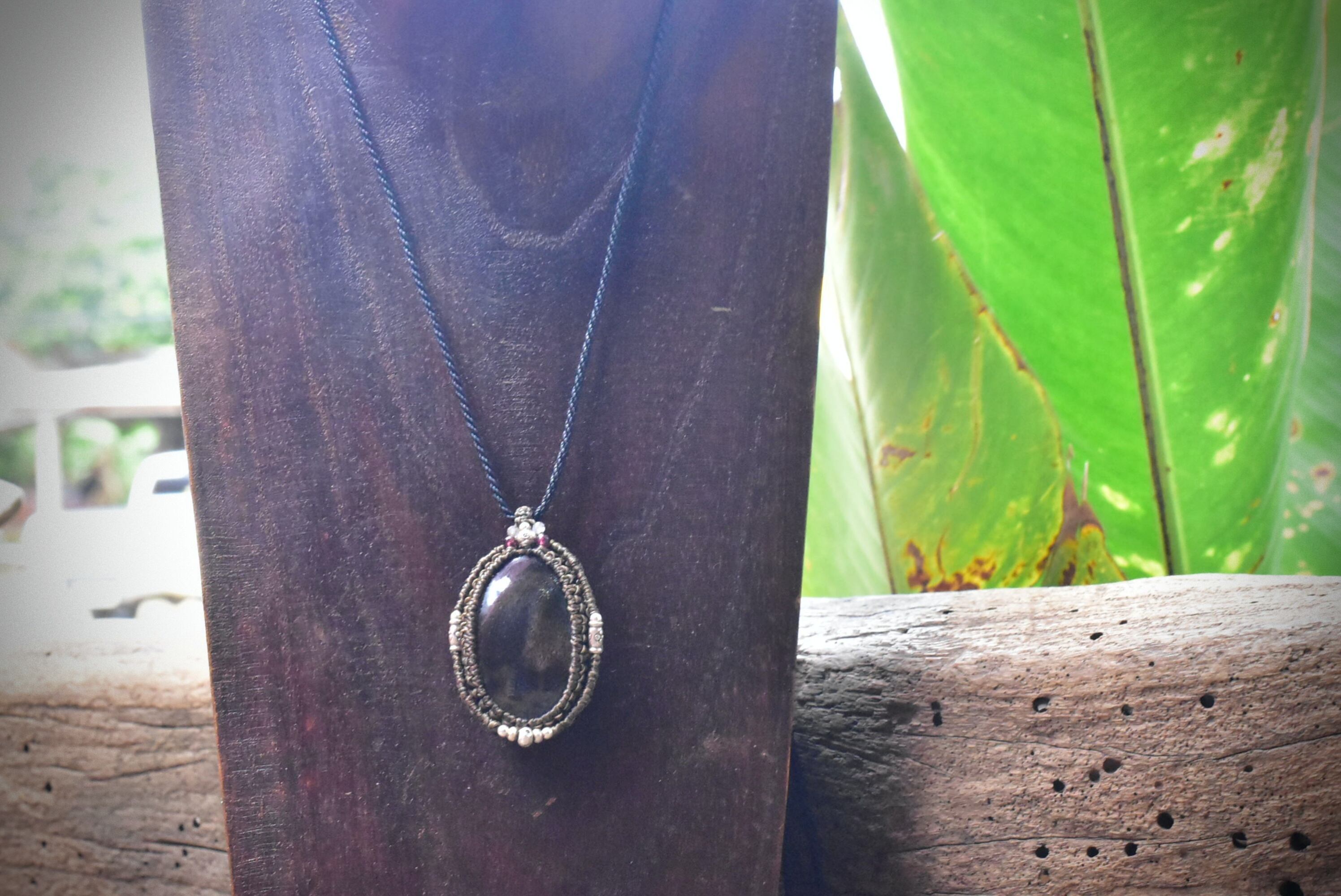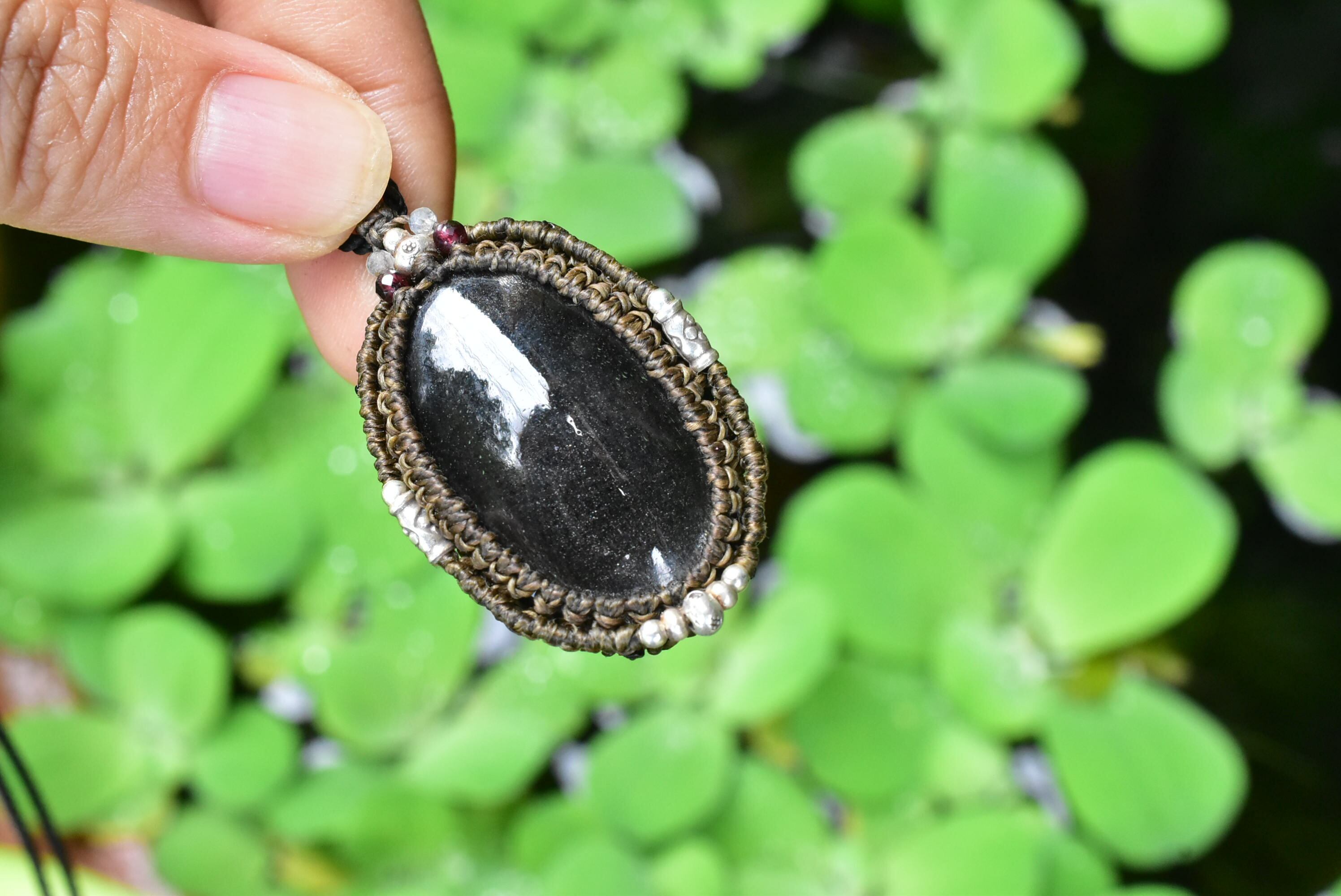 高品質★ブラックサンストーン マクラメペンダントsun009
