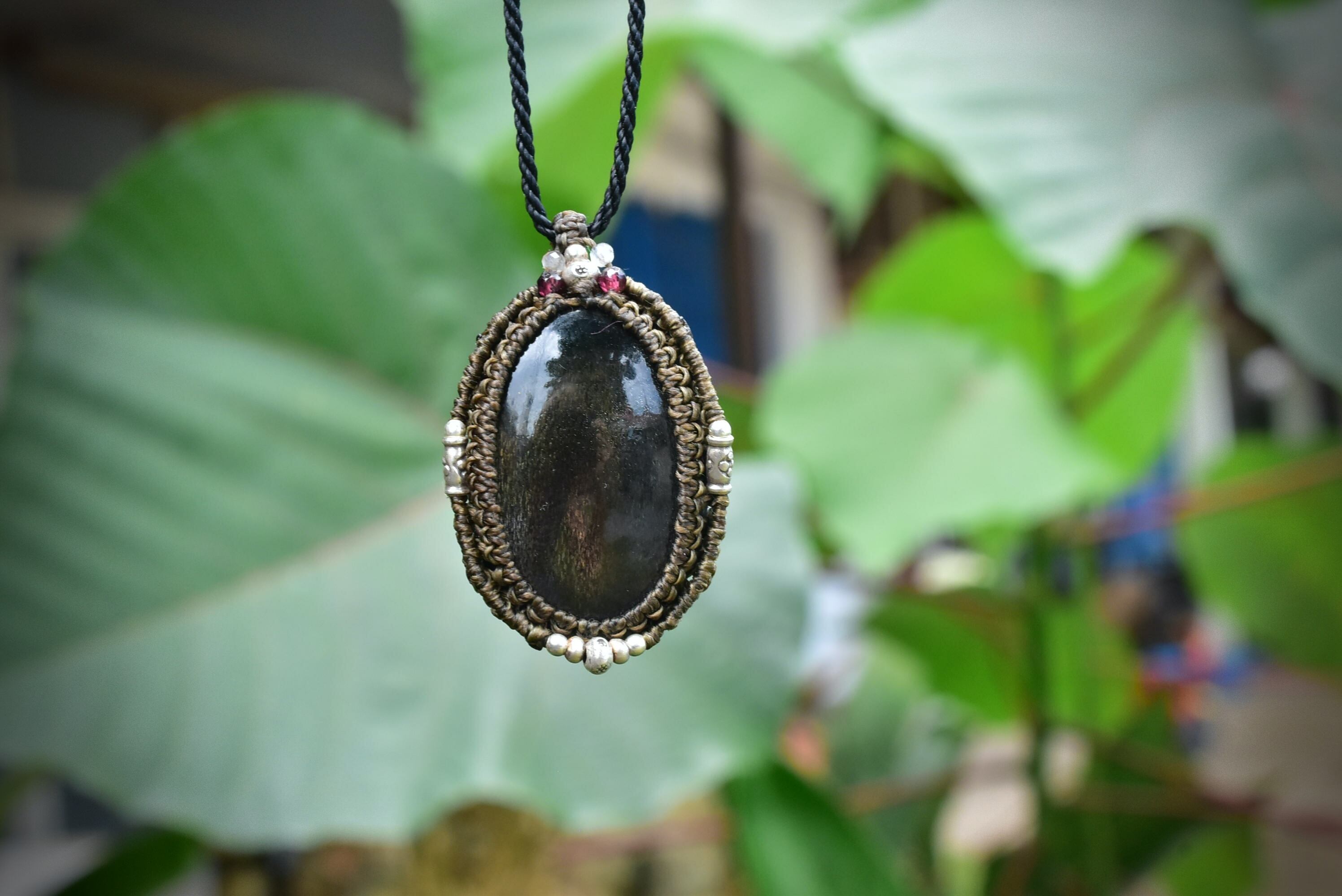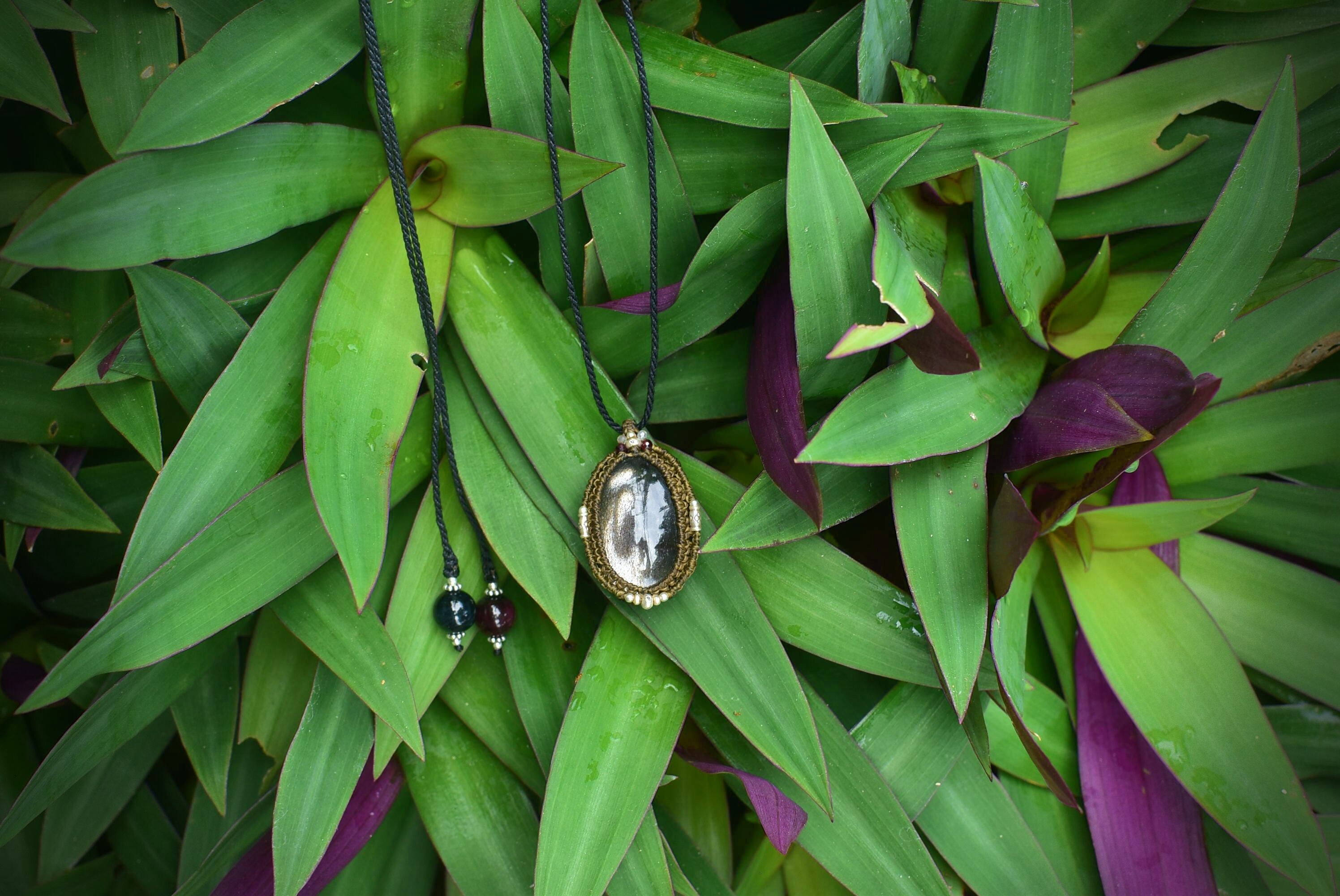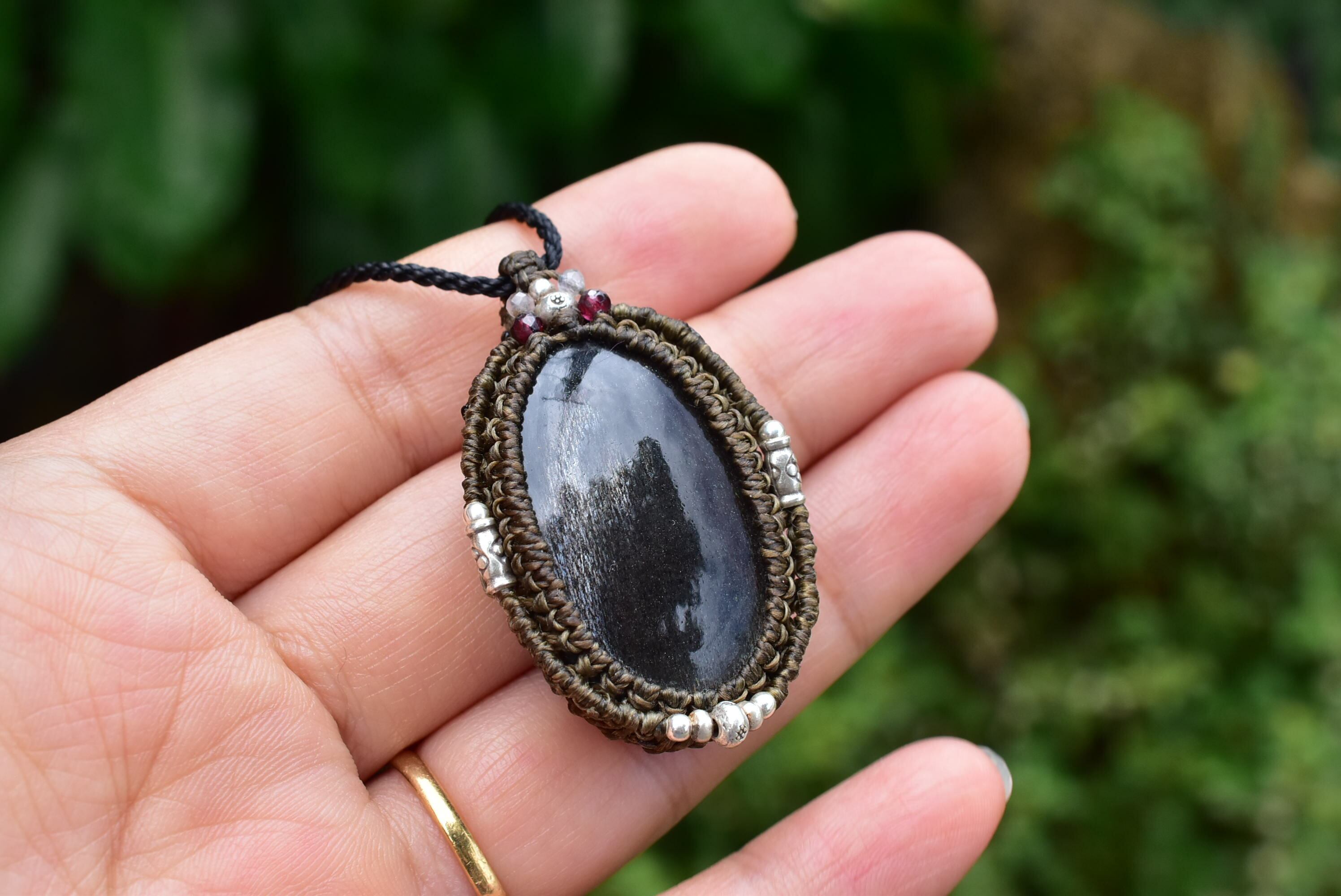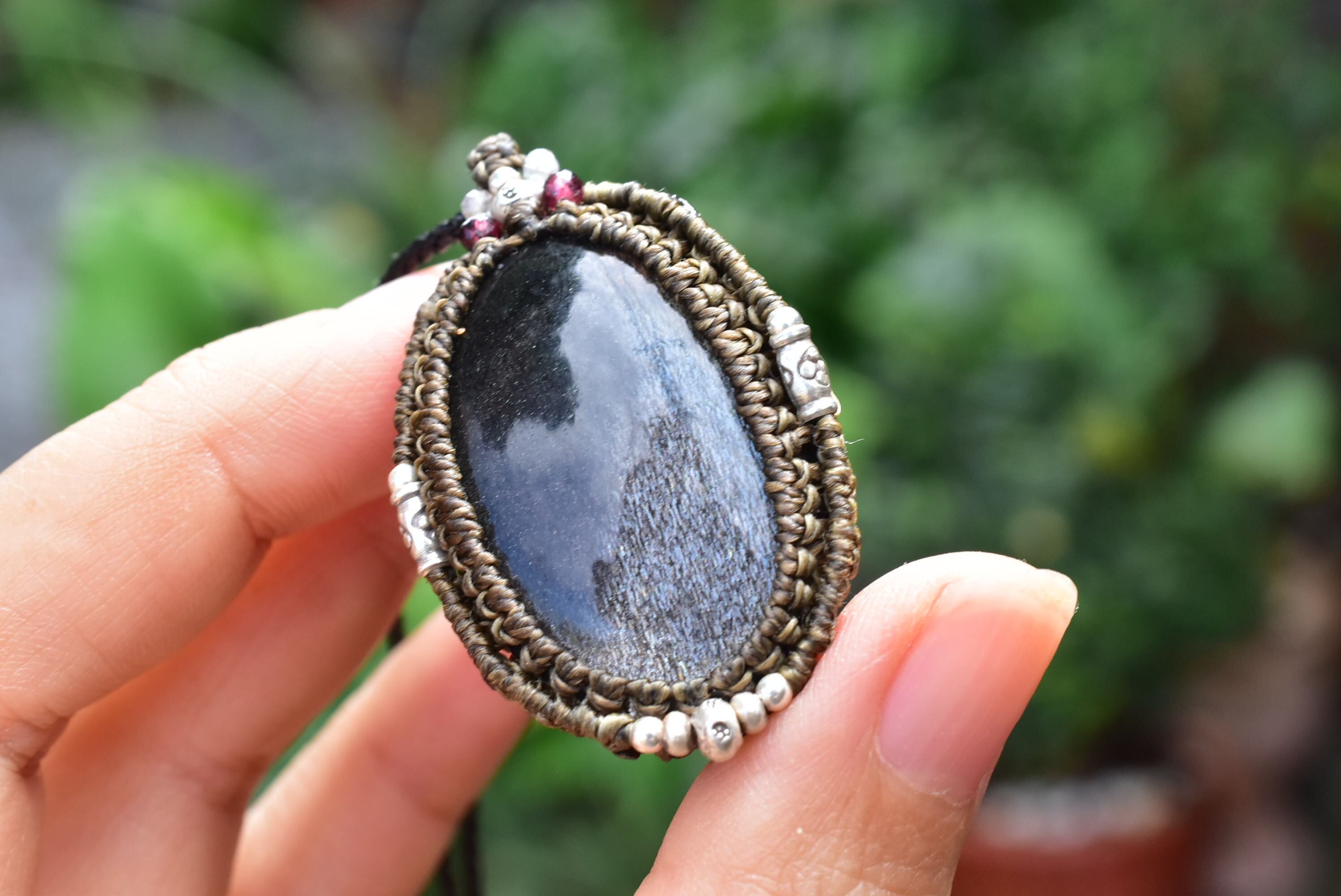 高品質★ブラックサンストーン マクラメペンダントsun009