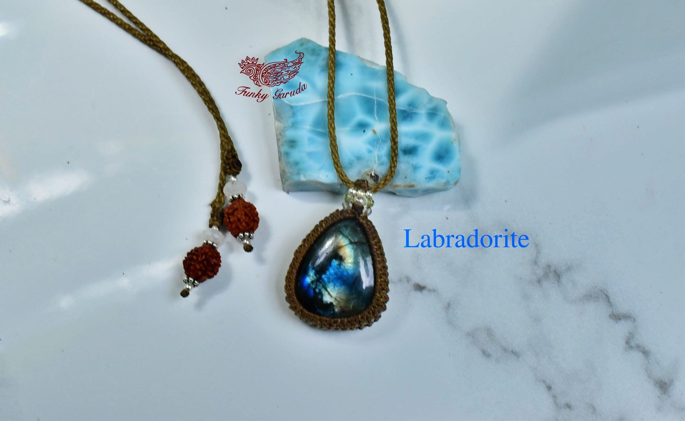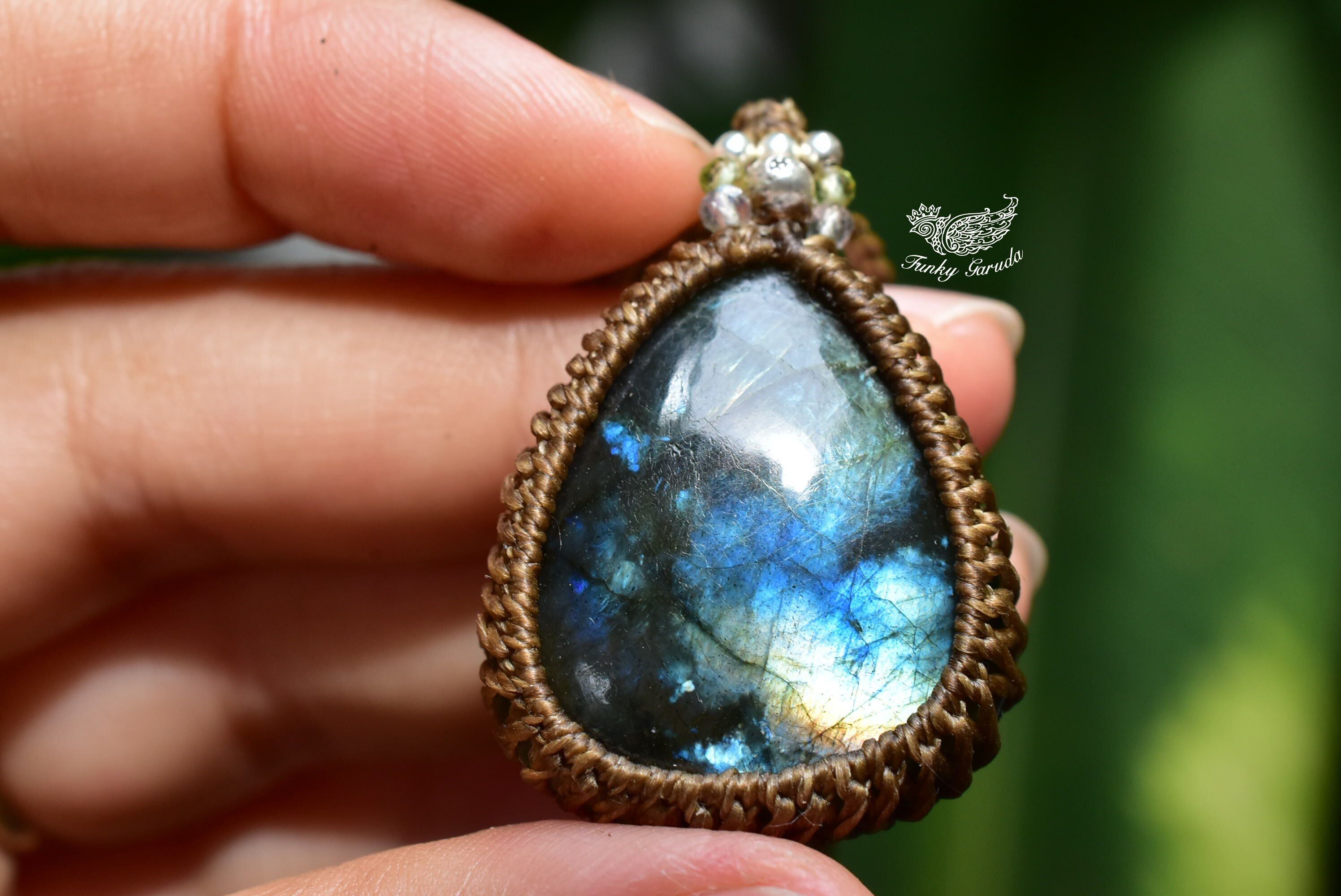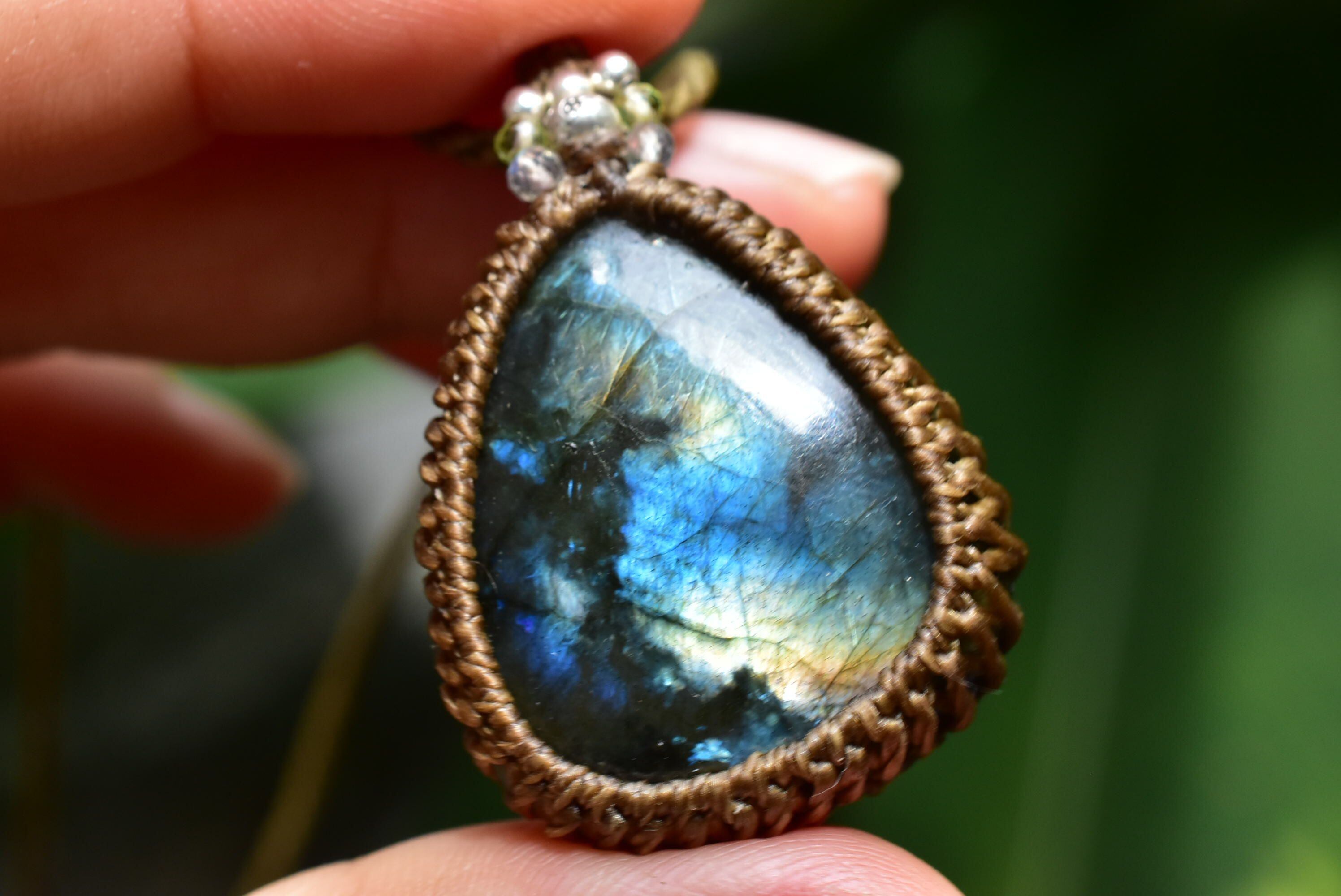 幻想の夜空★ラブラドライトマクラメペンダント lay009