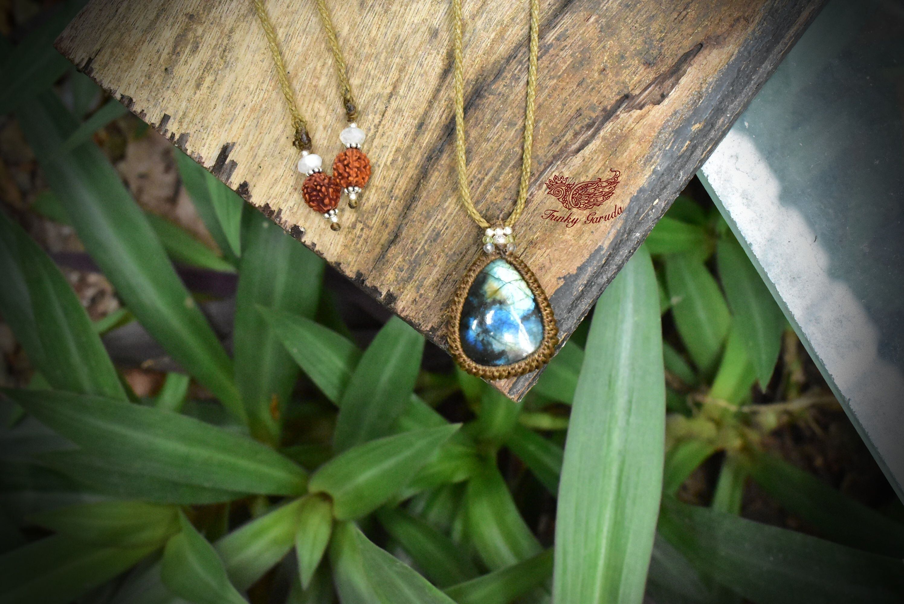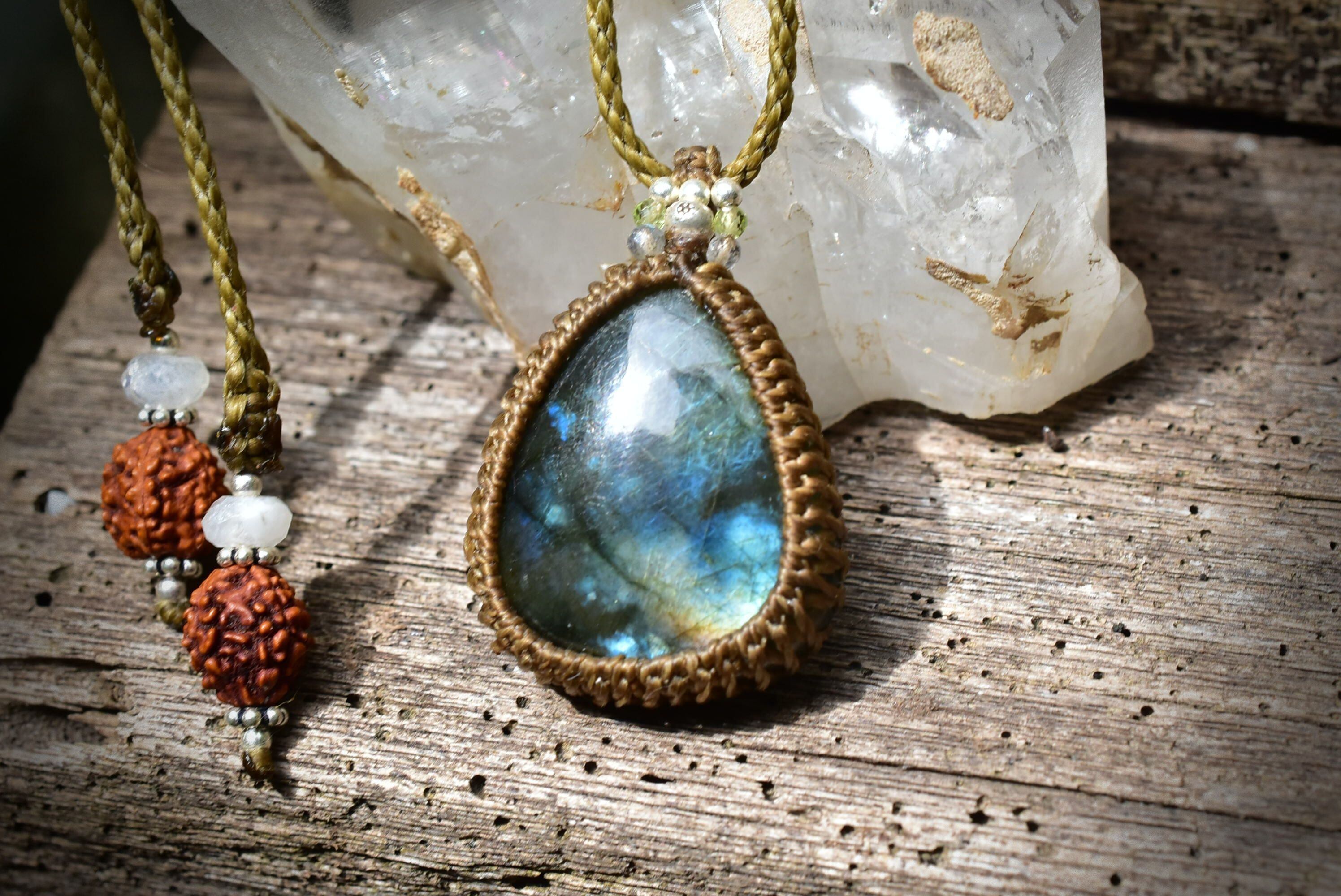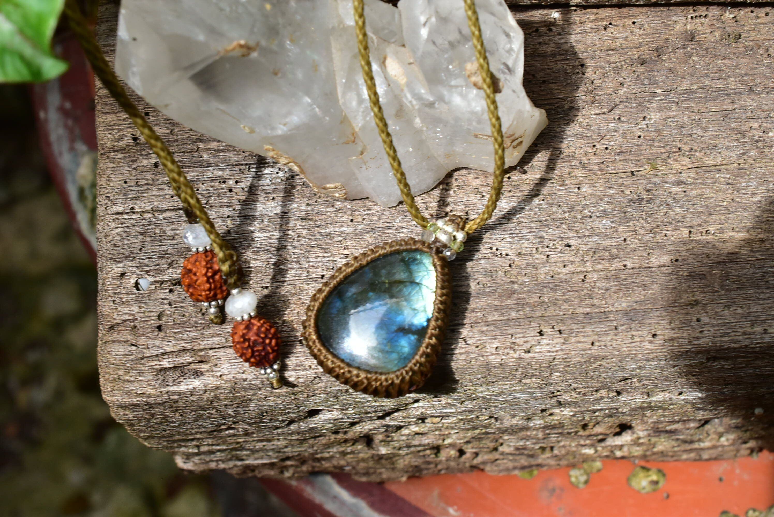 幻想の夜空★ラブラドライトマクラメペンダント lay009