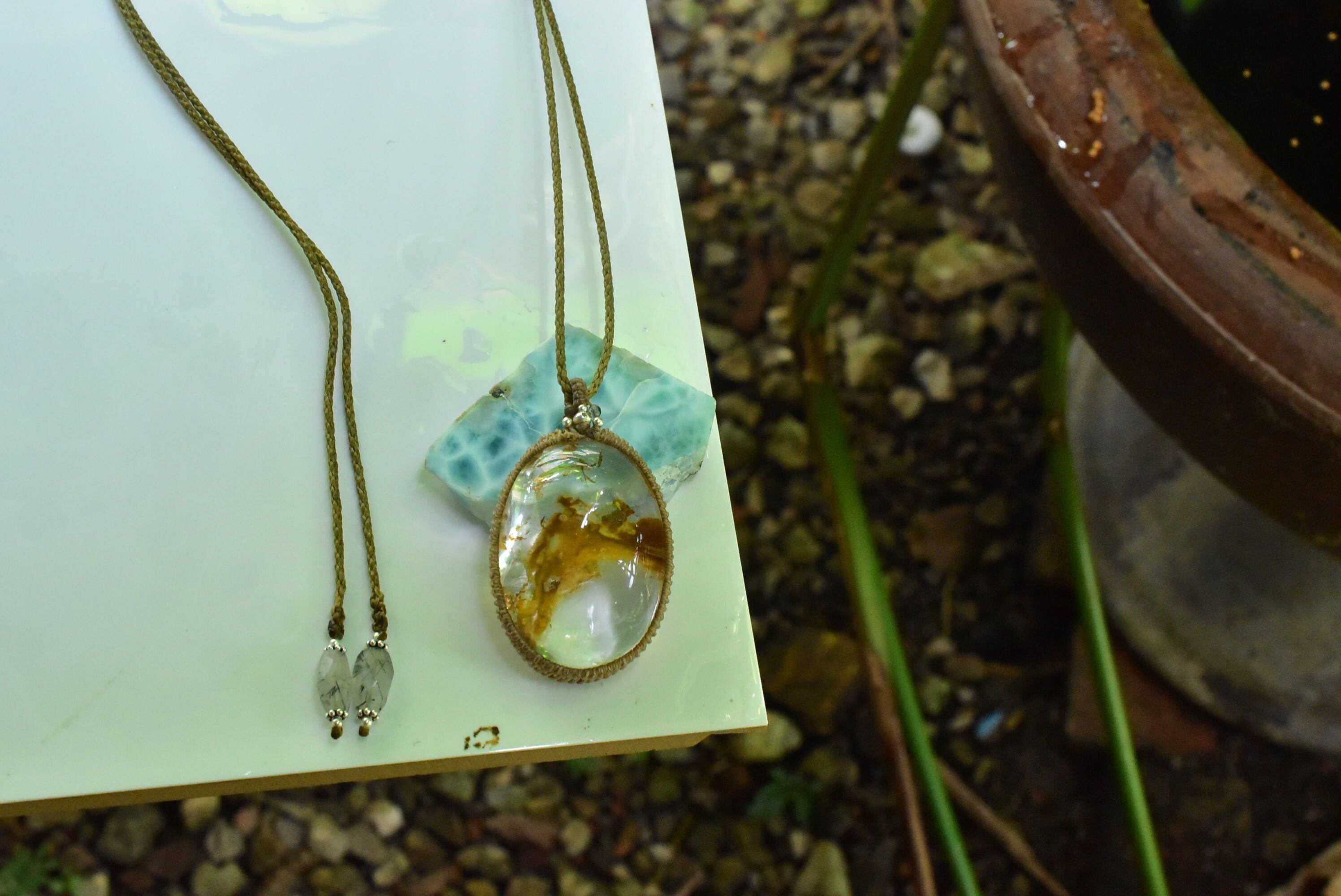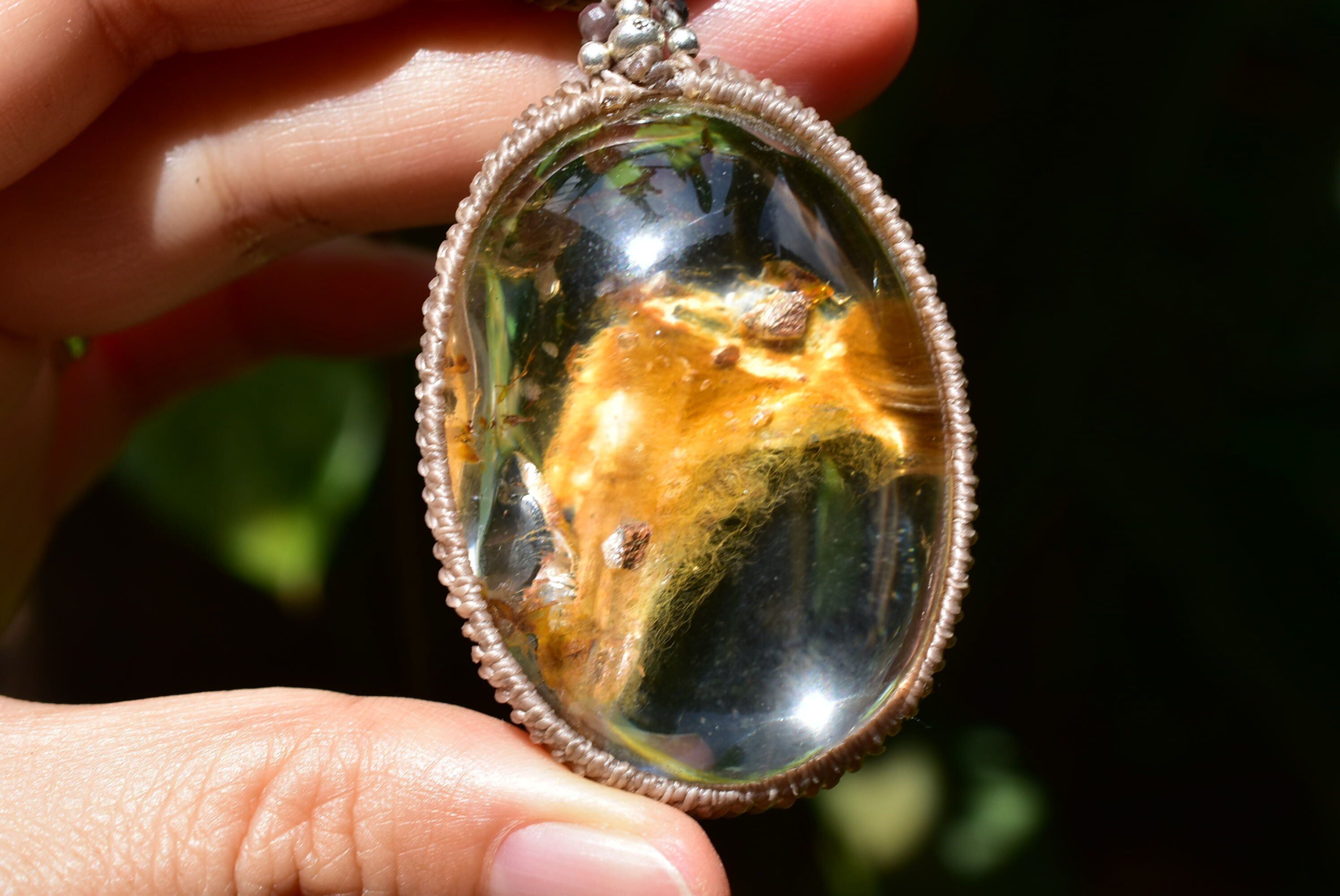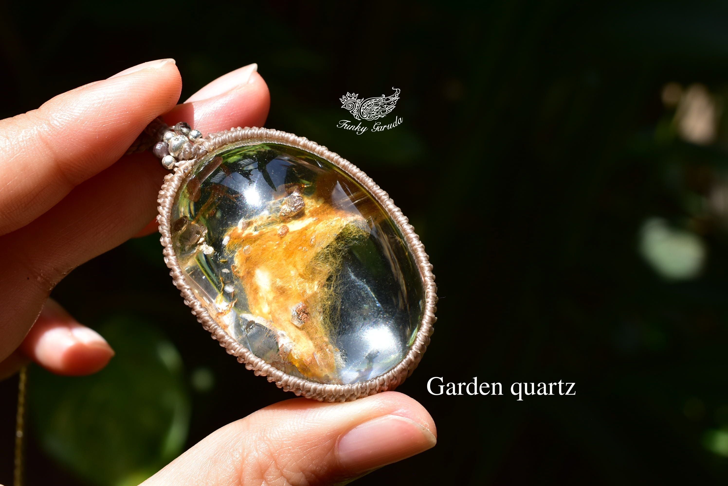透明感と龍★虹入りガーデンクォーツ マクラメペンダント gy035