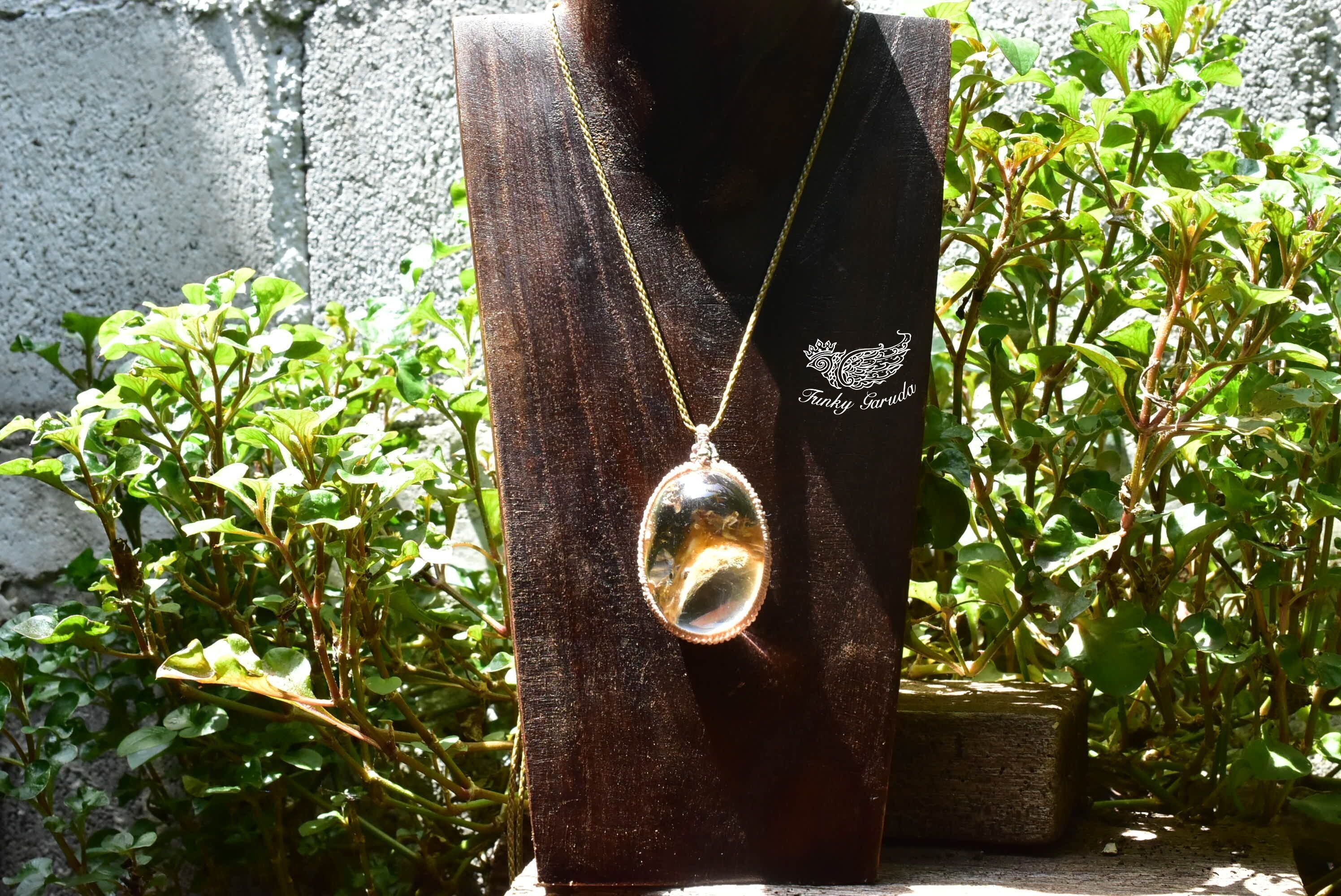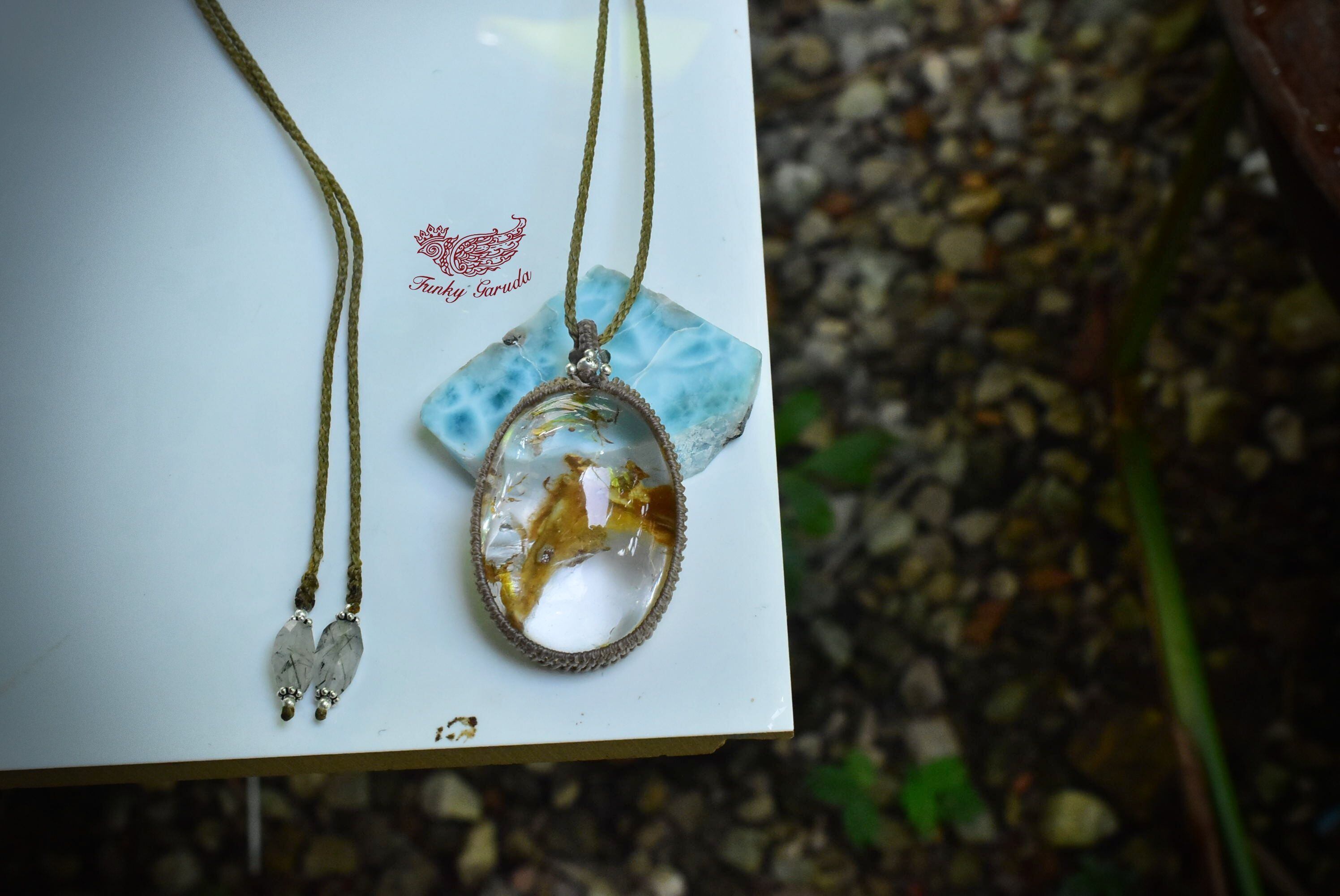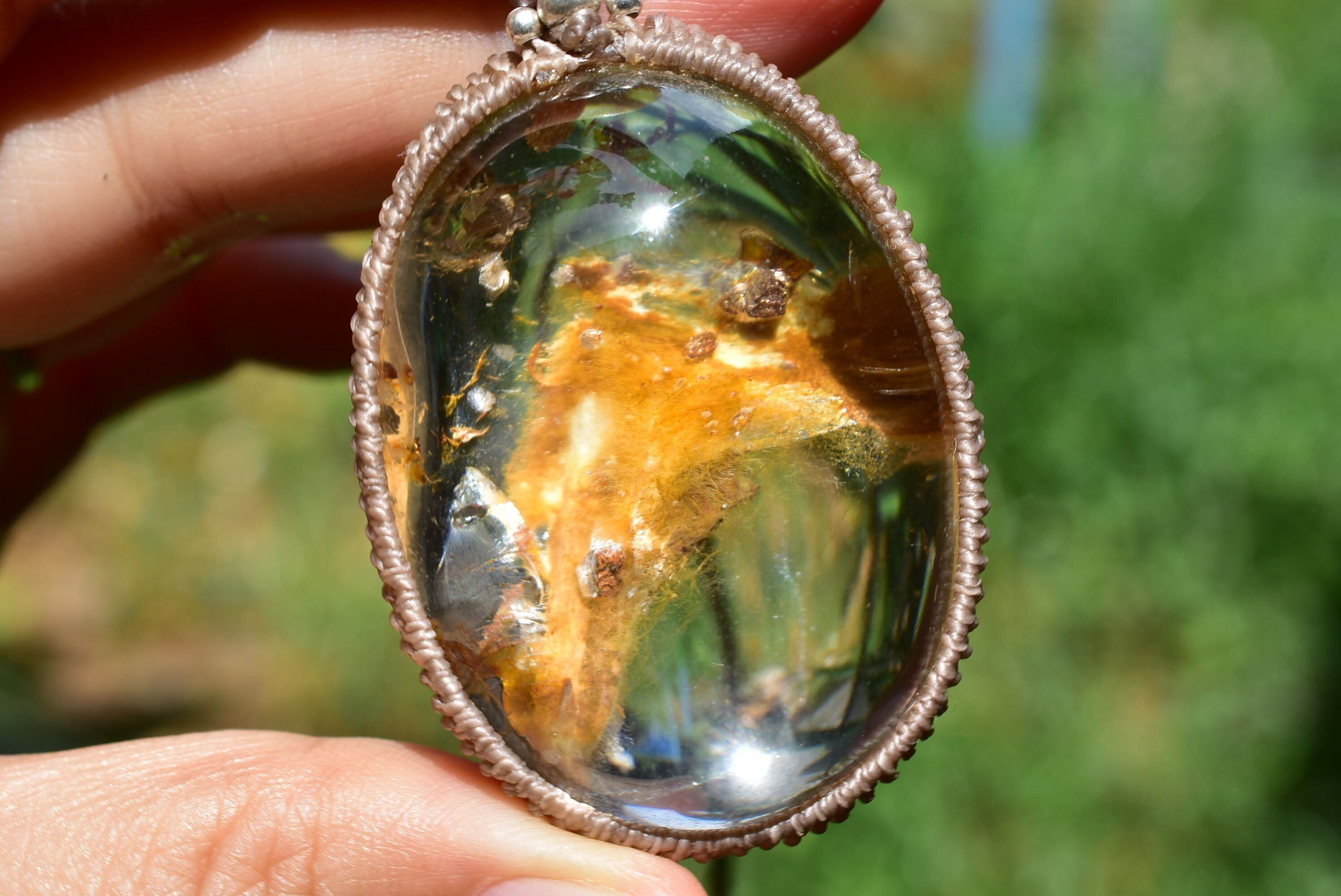 透明感と龍★虹入りガーデンクォーツ マクラメペンダント gy035
