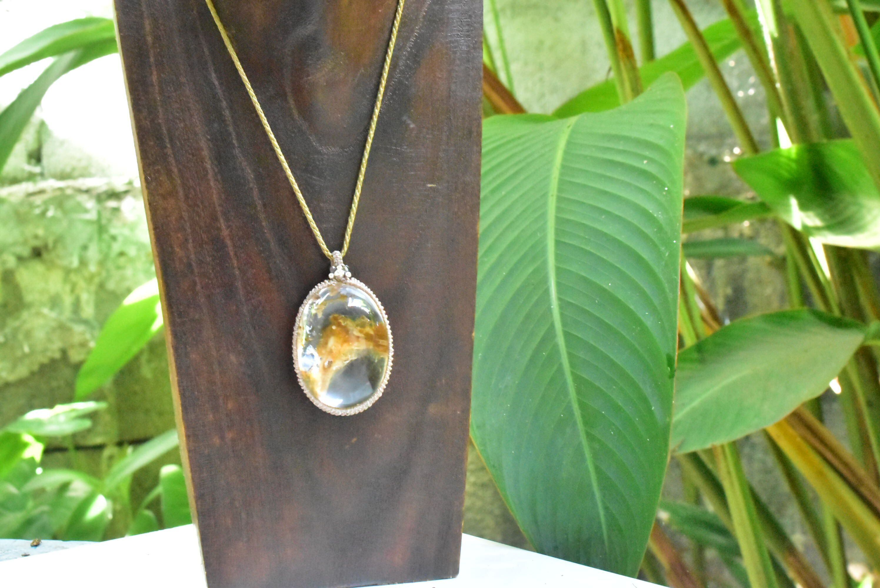 ◆このたびはオリーブ、カフェオレ色の蝋引き糸を使用しマクラメ編み装飾を施しました。