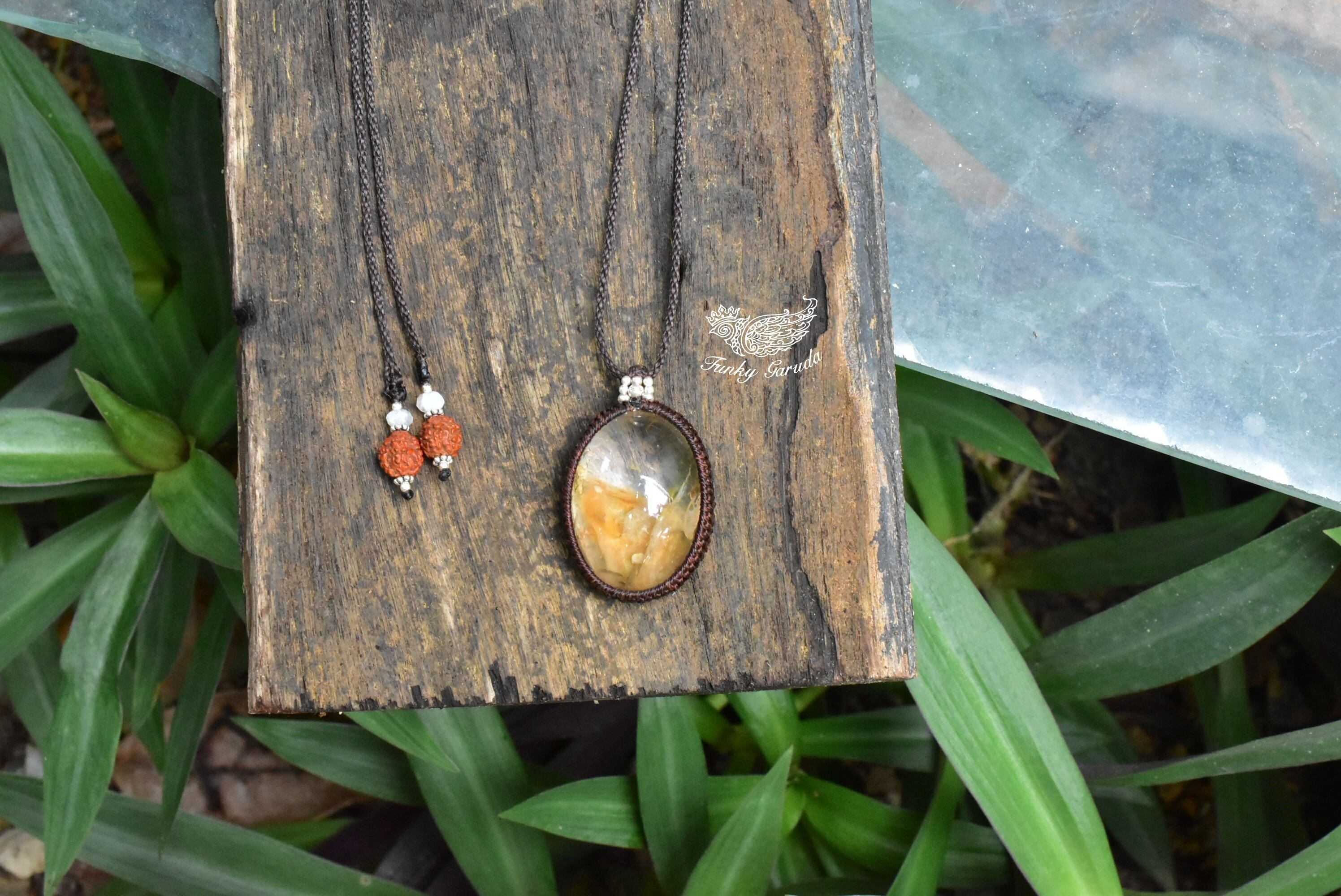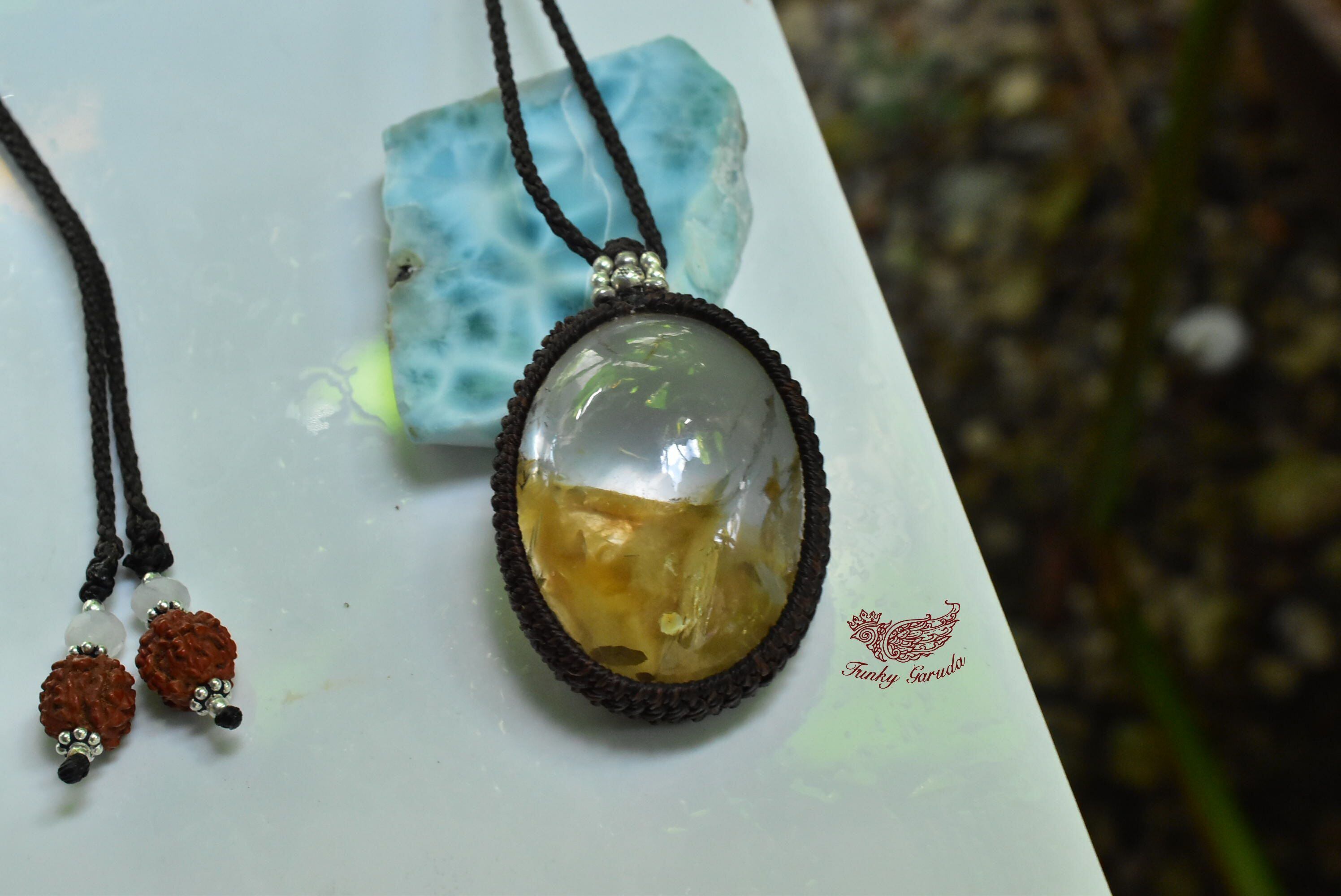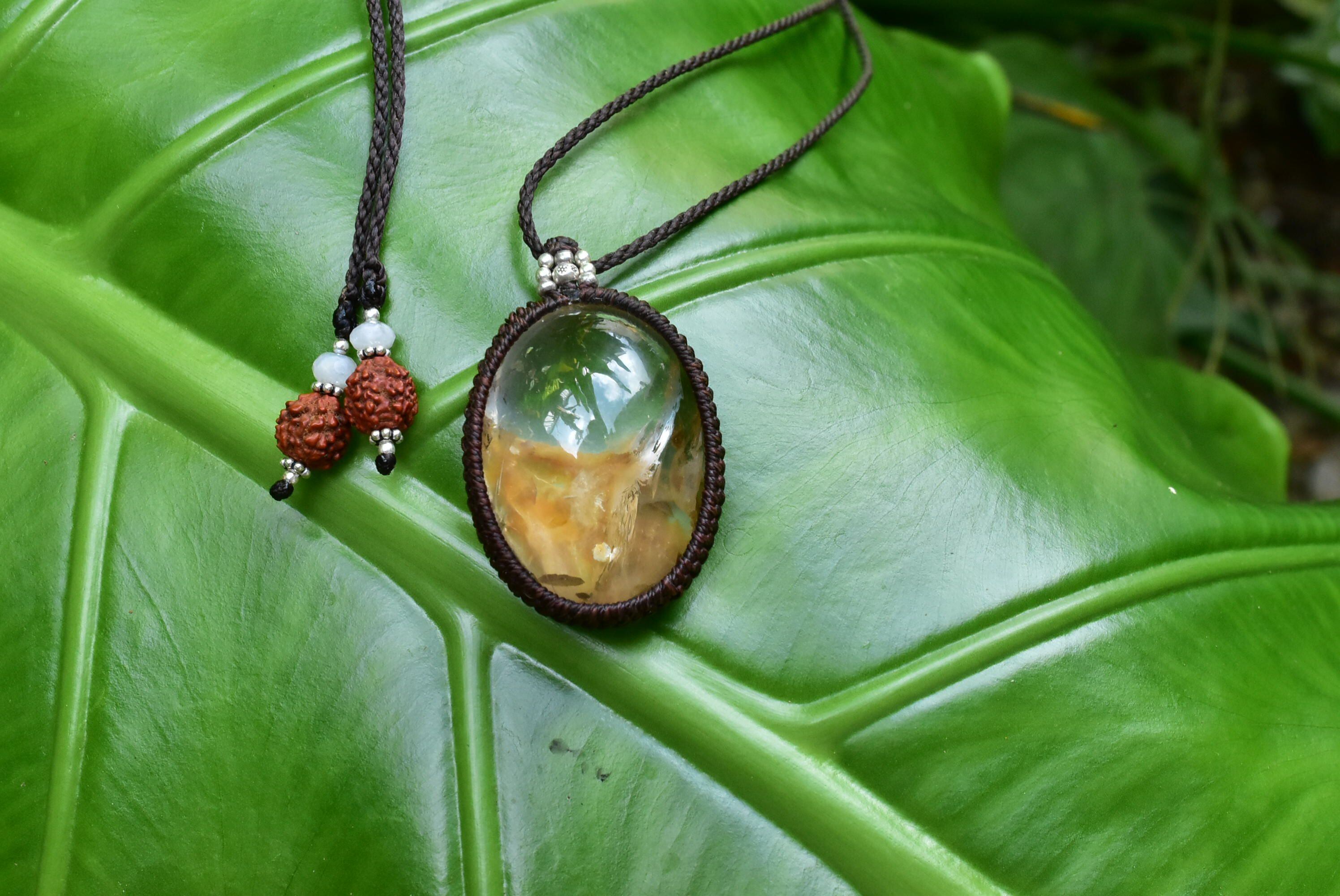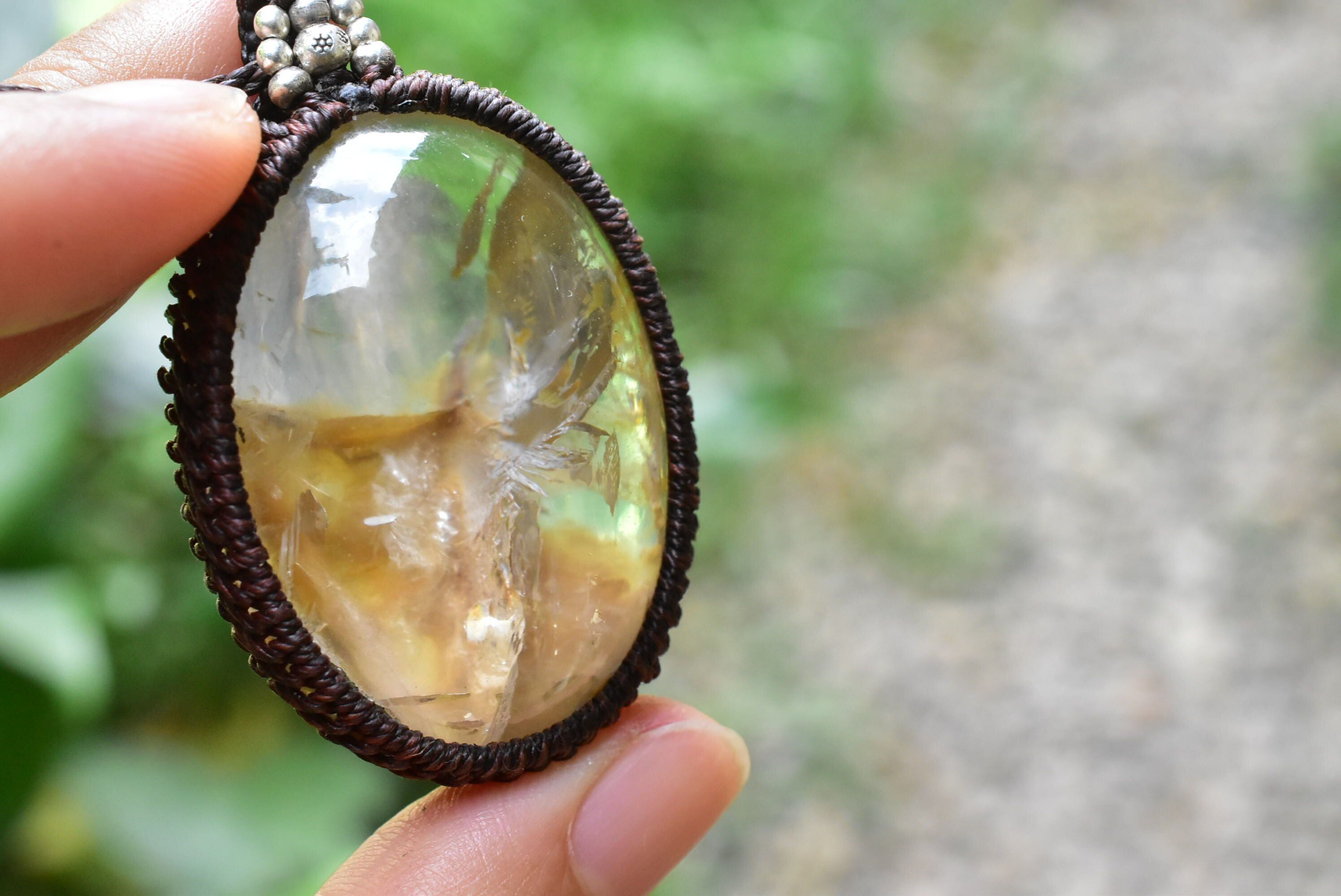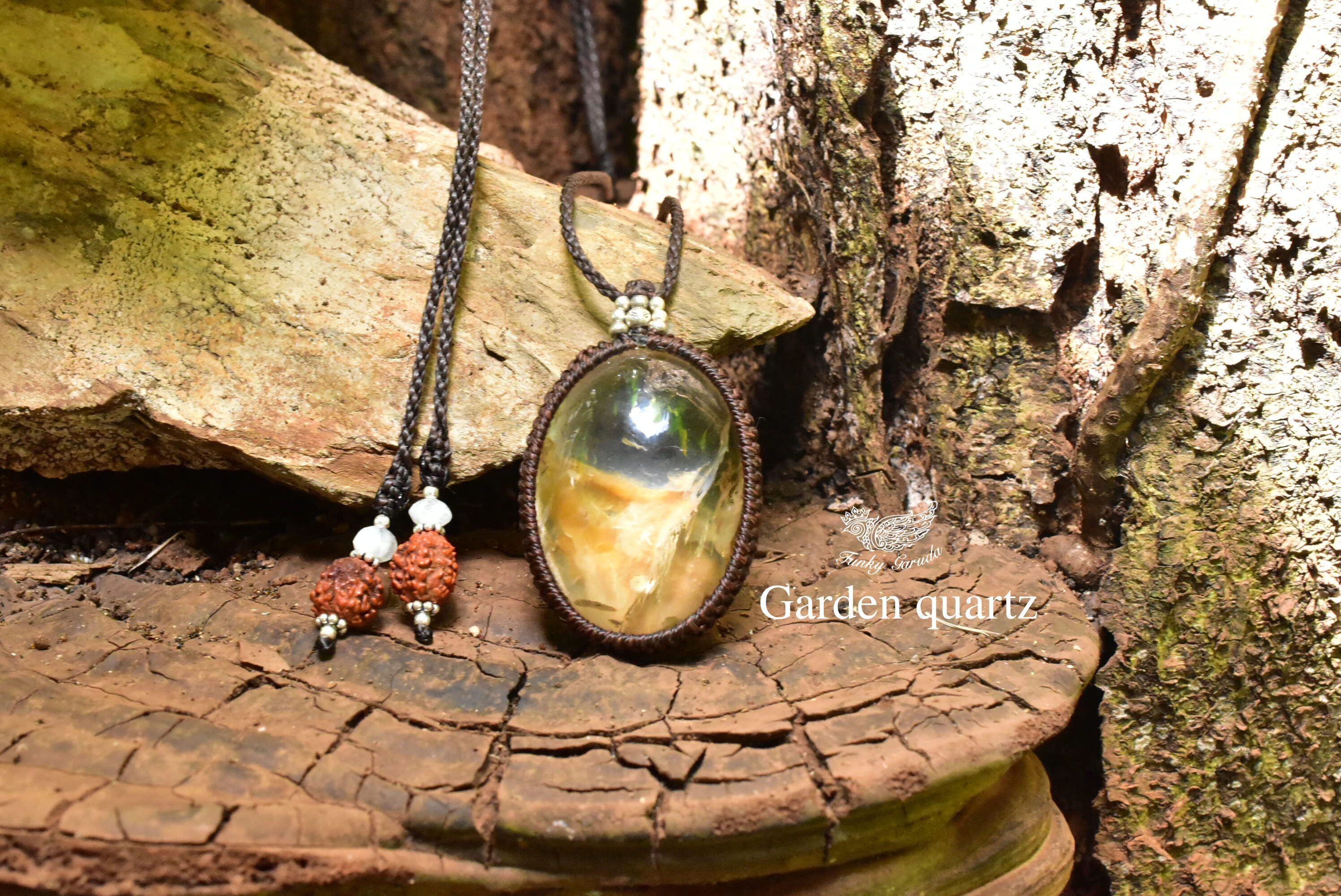 大粒★自然美の重なり★ガーデンクォーツ マクラメペンダント gy036
