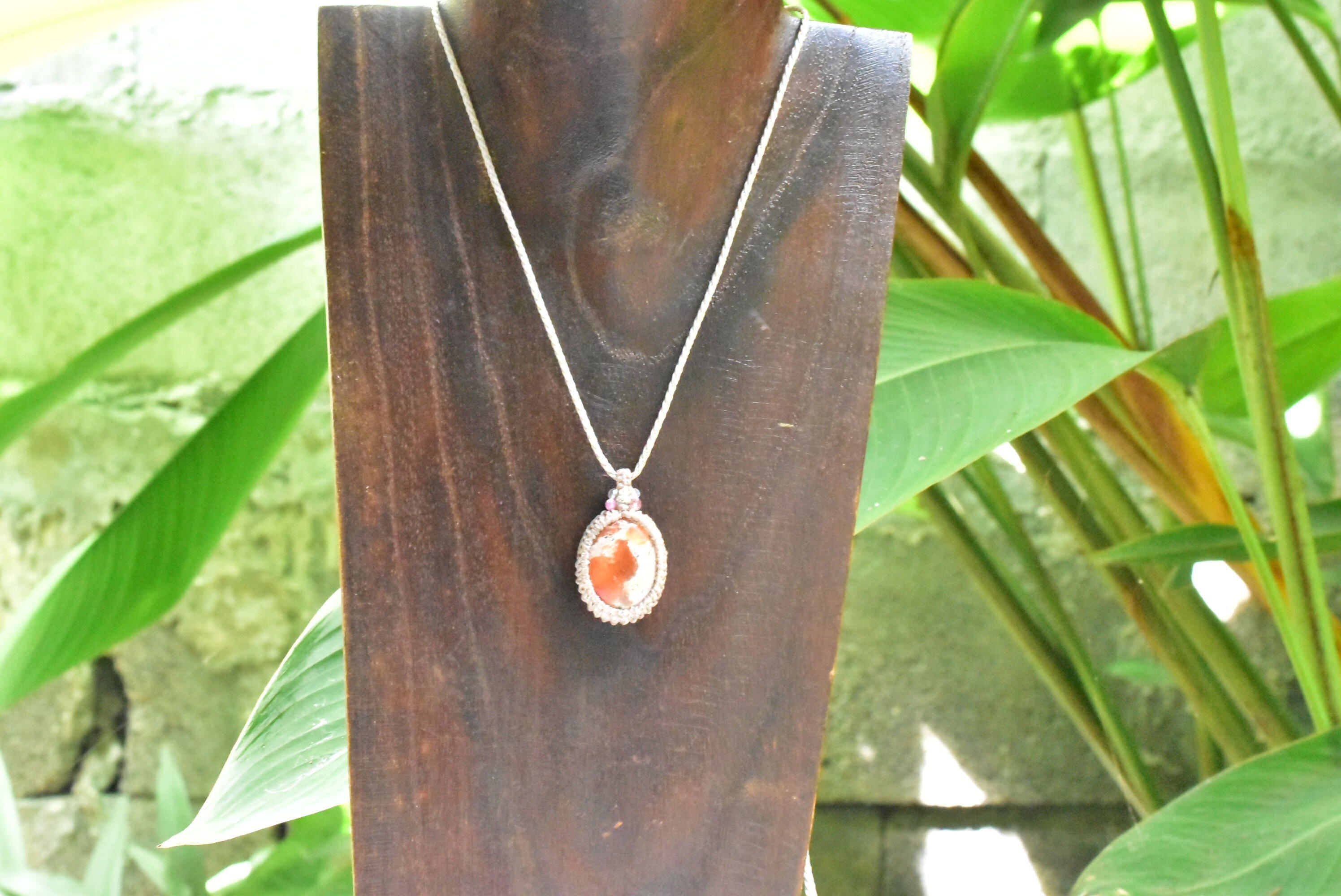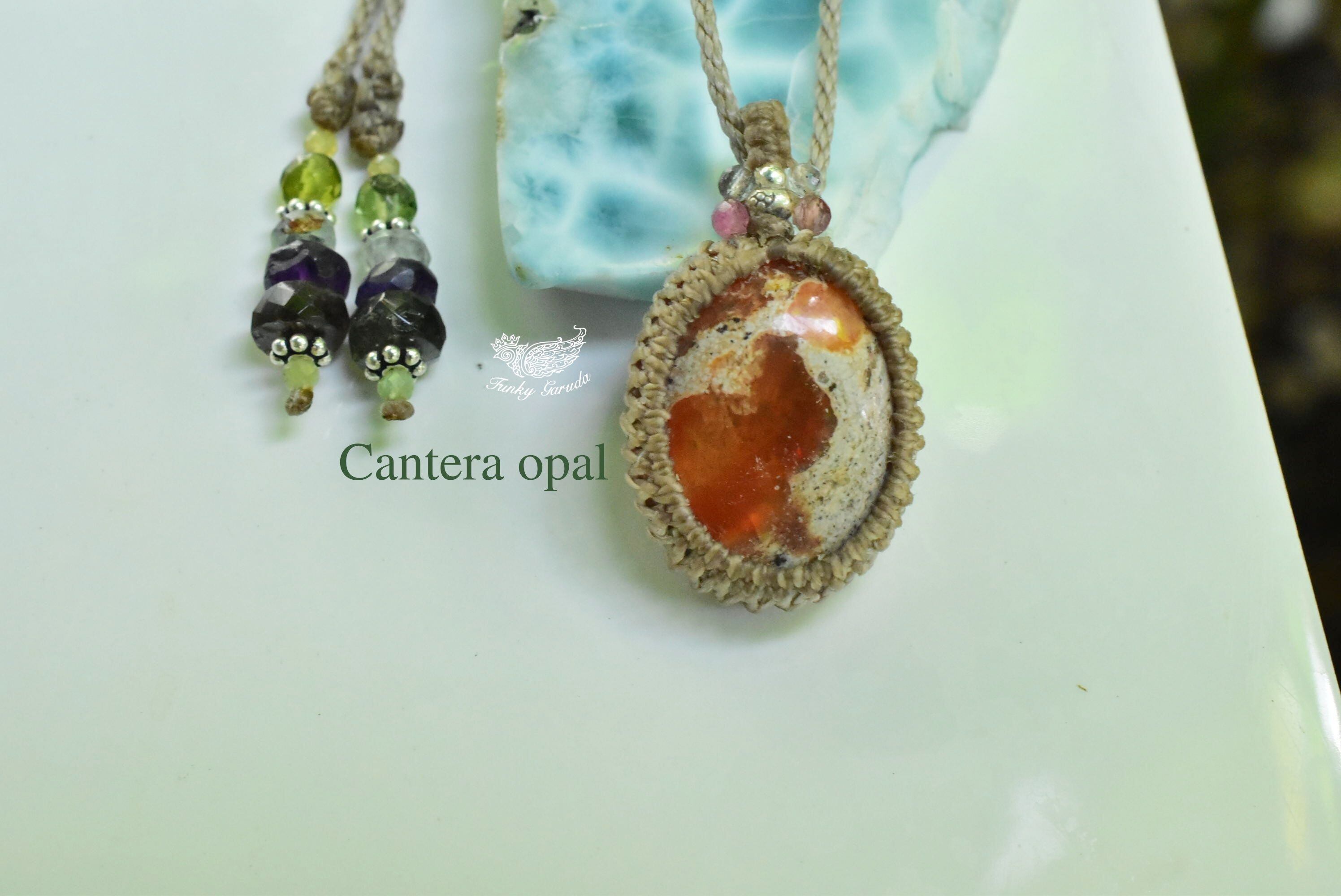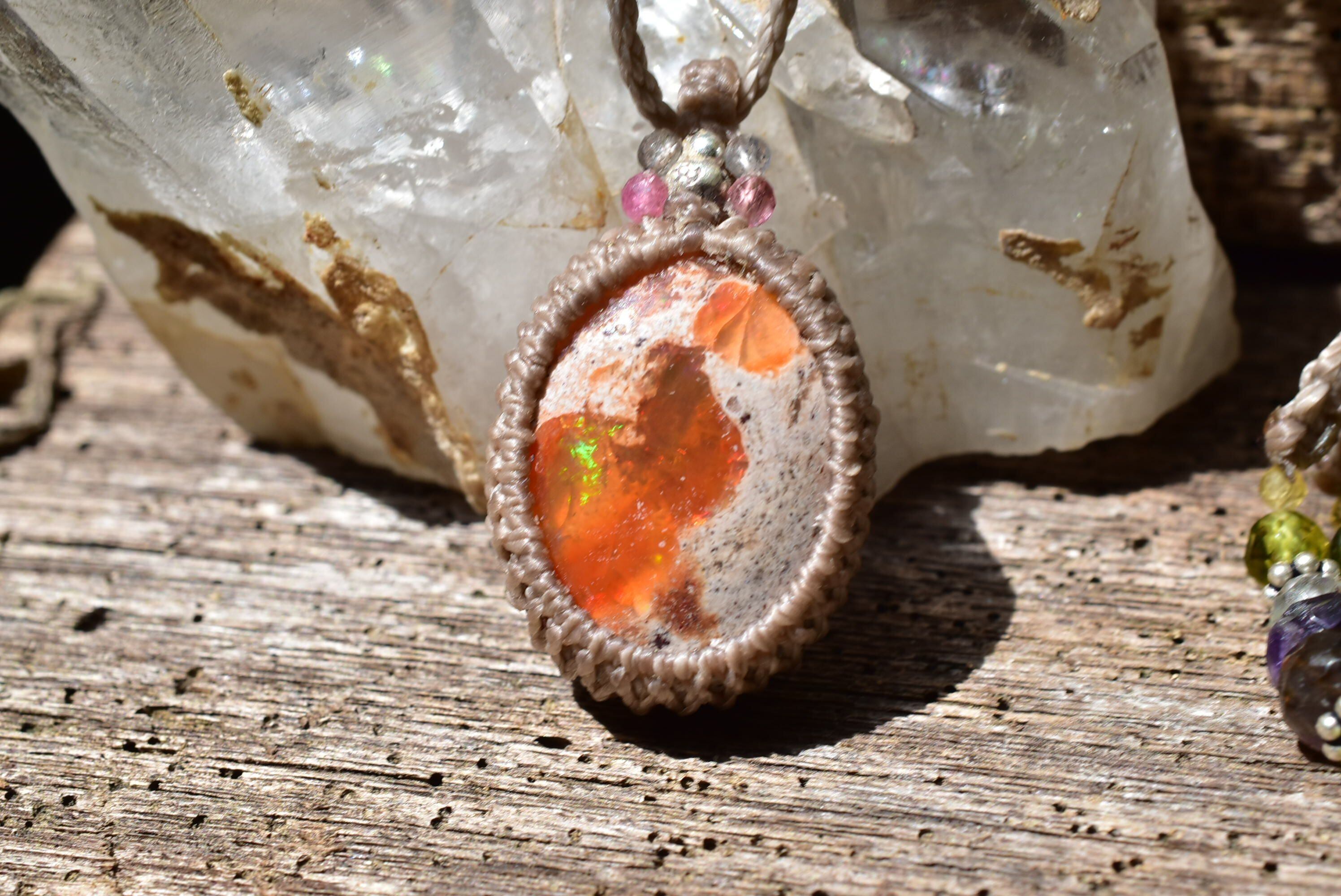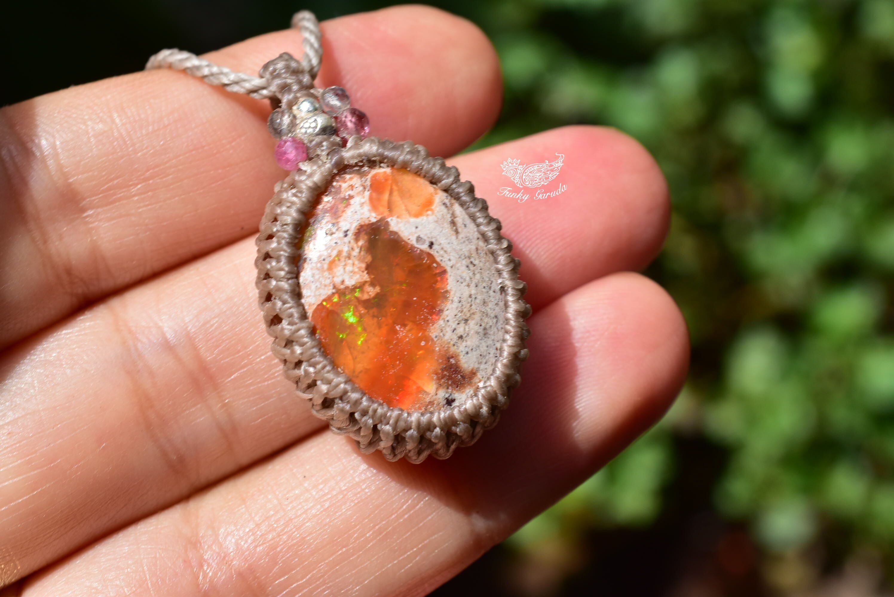 深い遊色プリズム★高品質カンテラオパール マクラメペンダント opay001