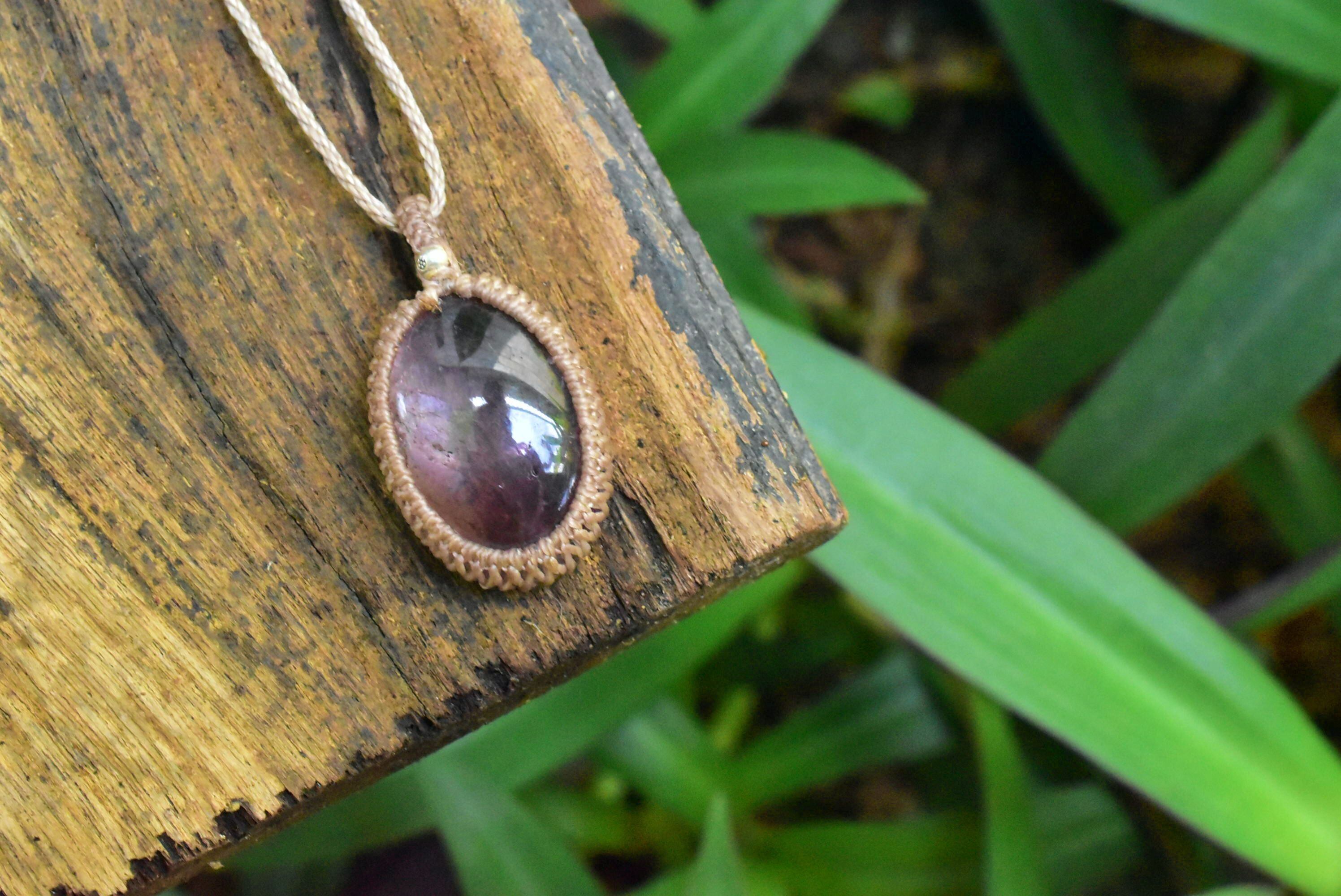 ◆このたびはカフェオレ色の蝋引き糸を使用しマクラメ編み装飾を施しました。