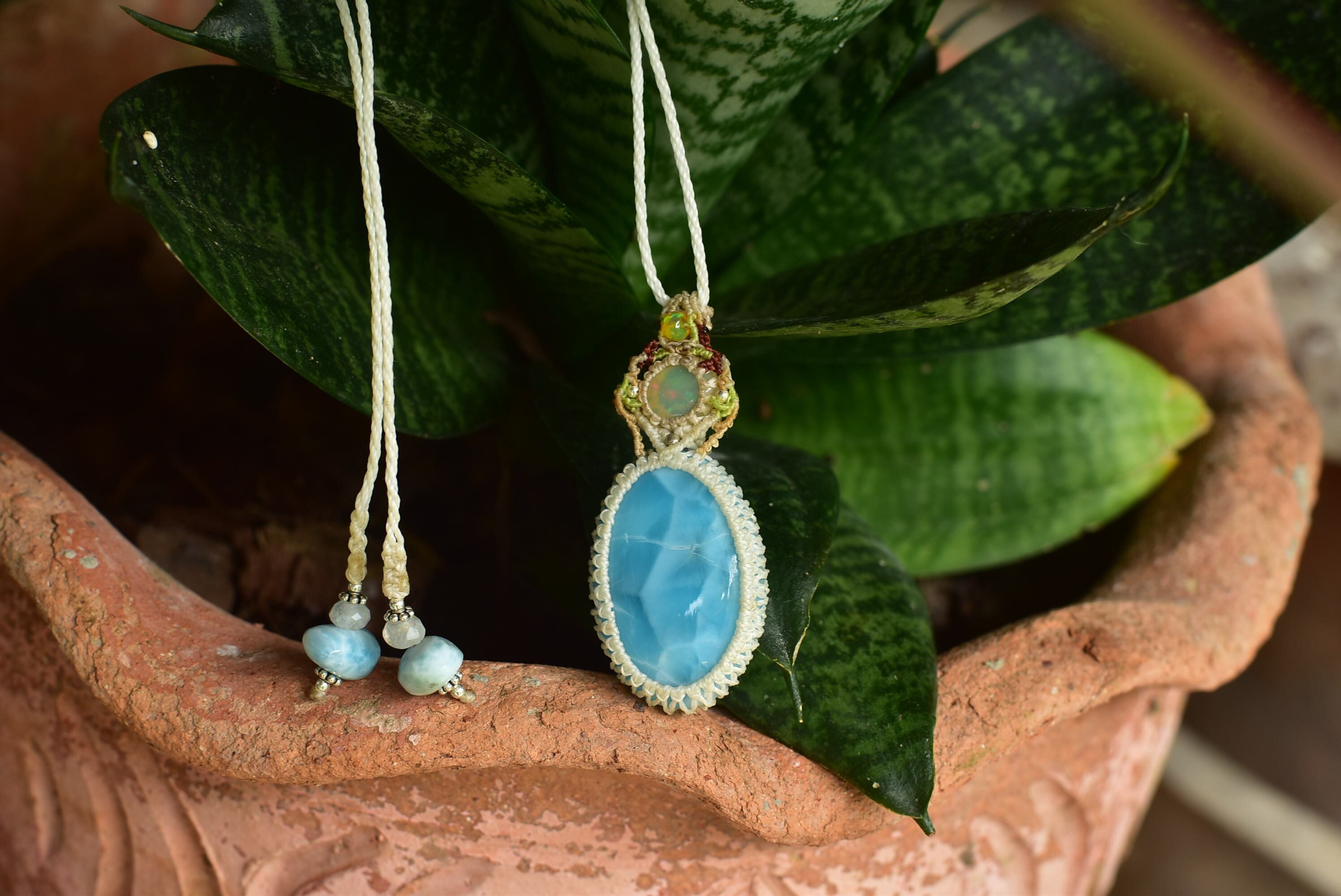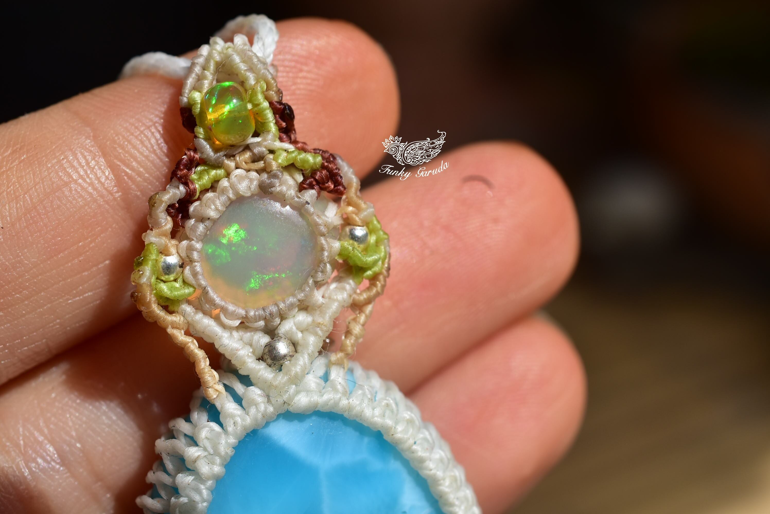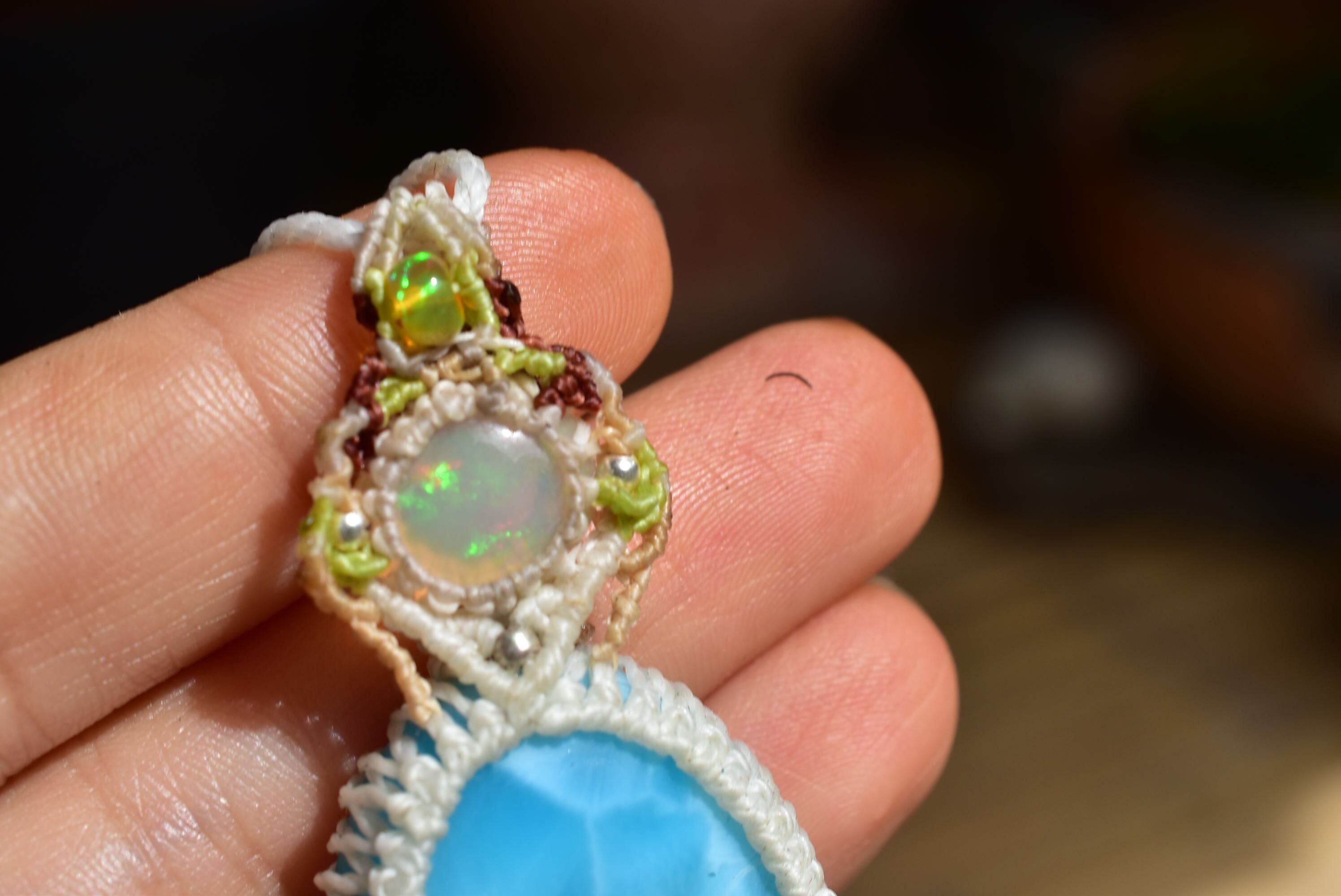 海と虹宇宙プリズム★オパール ラリマー マクラメ ペンダントlari040
