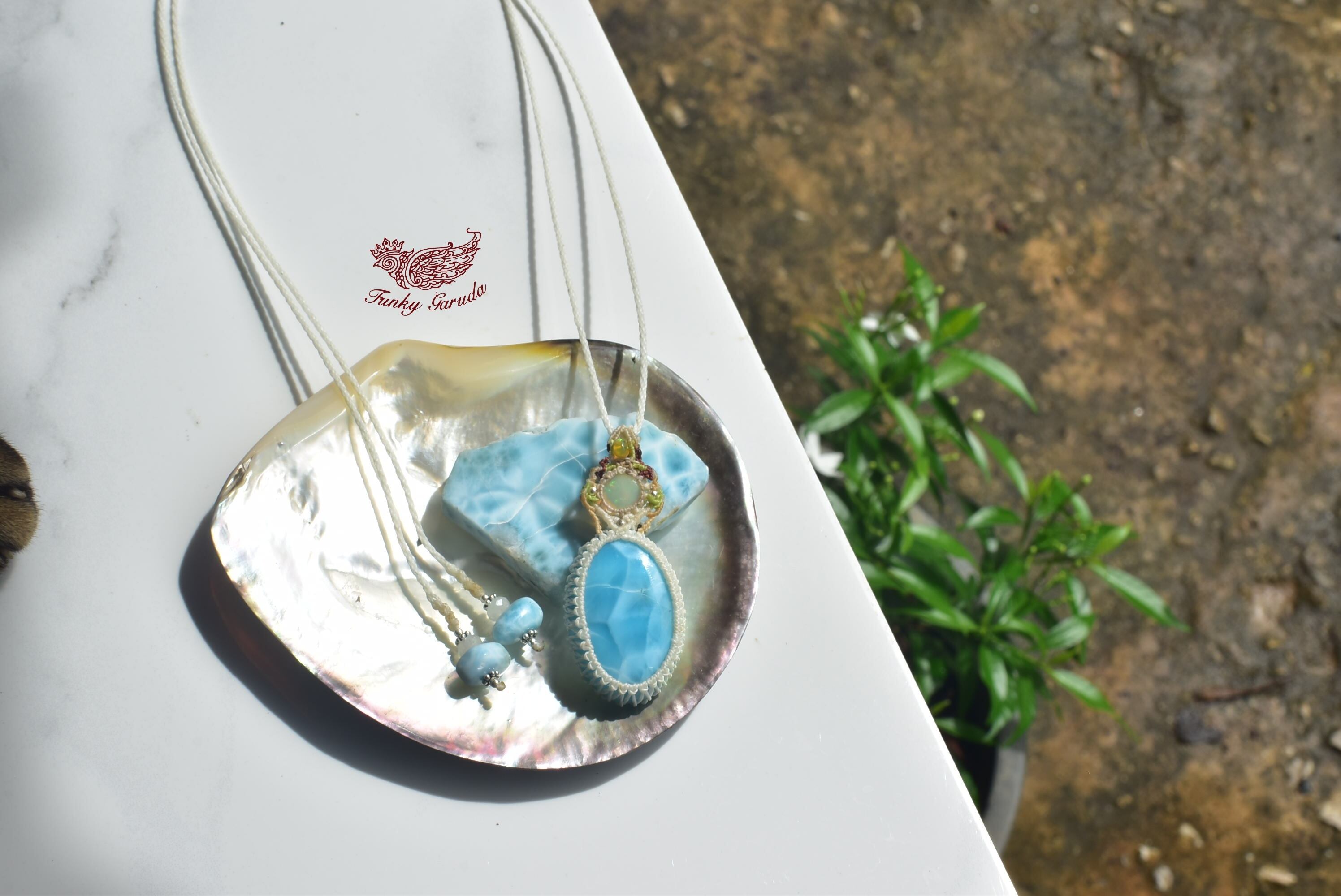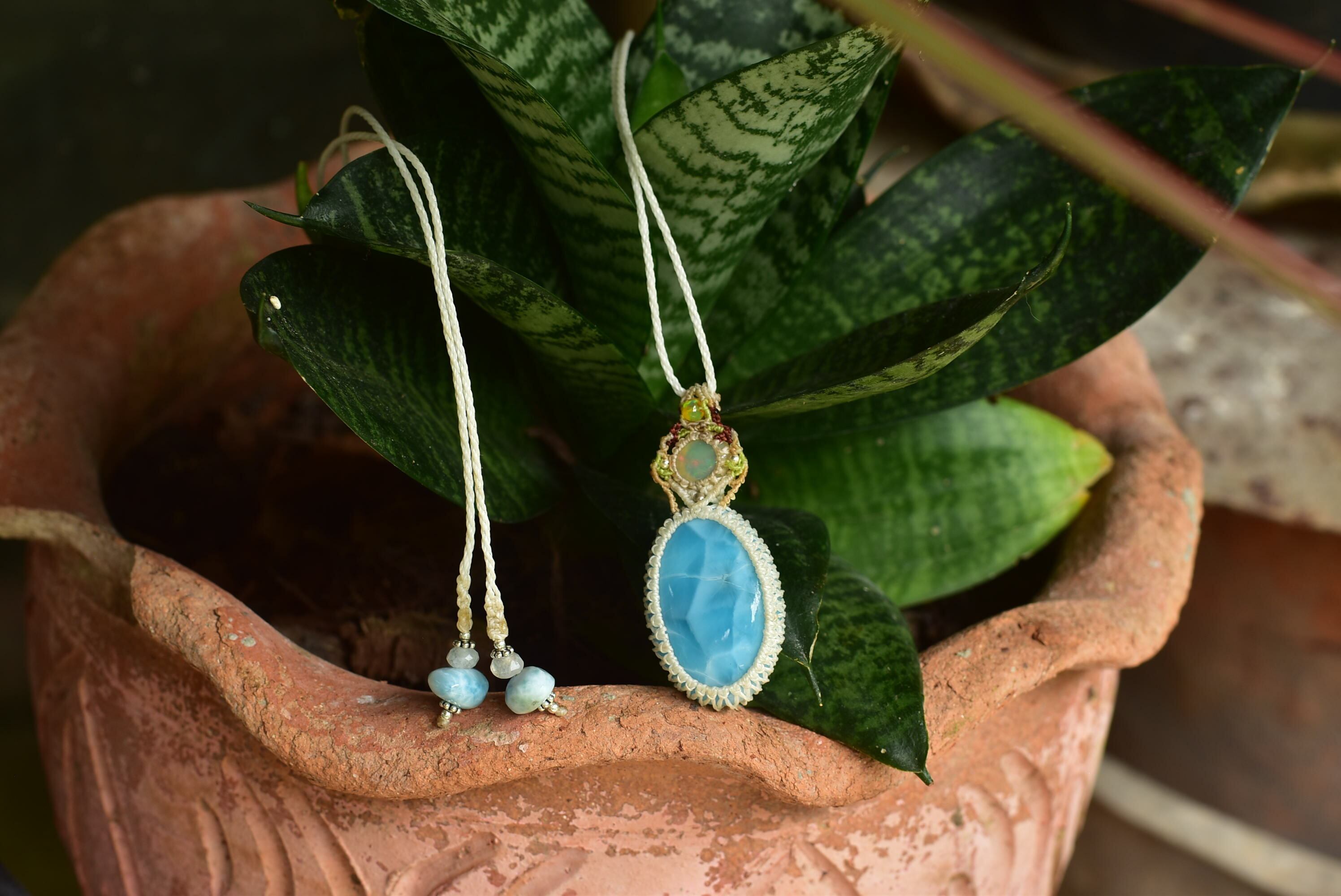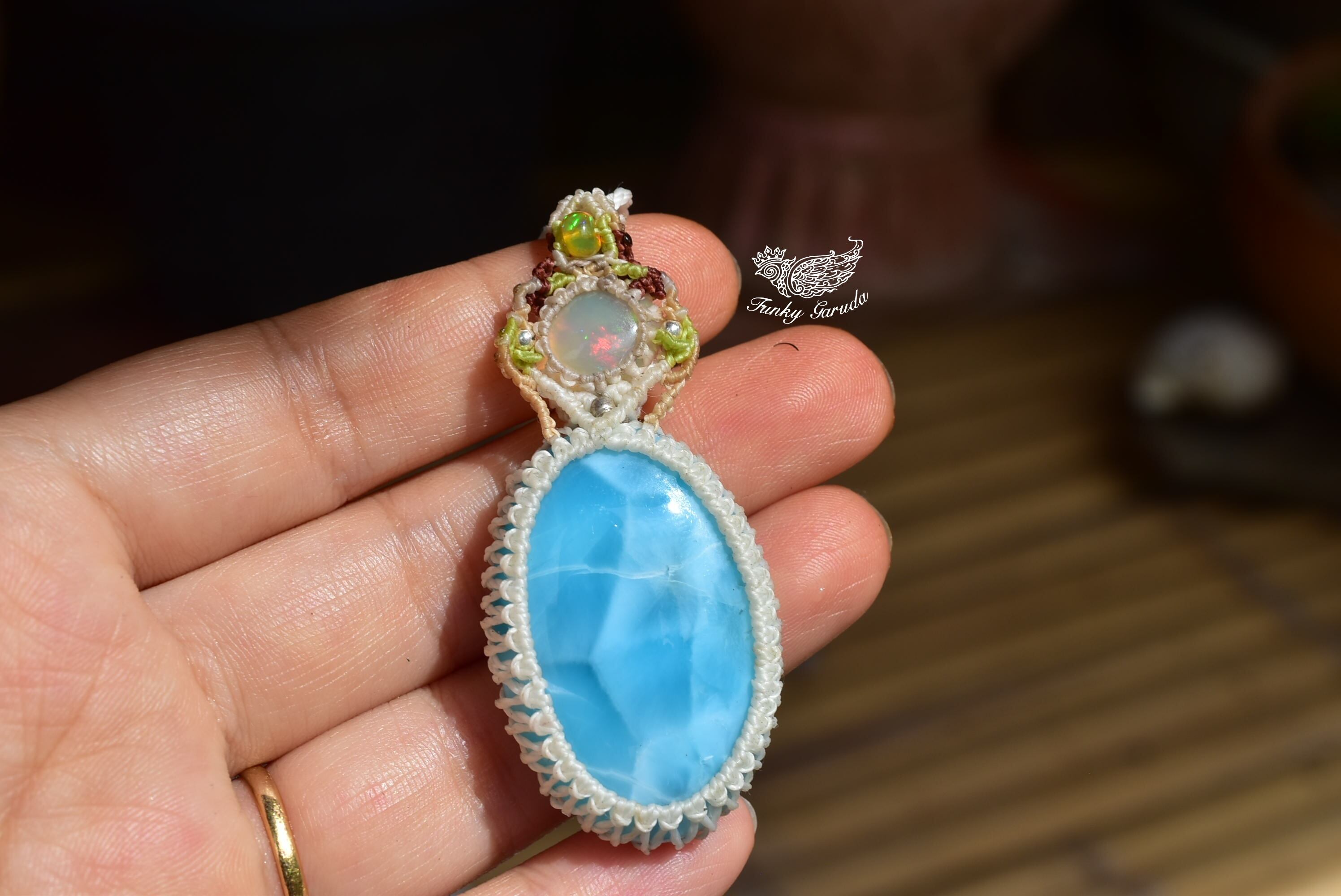 海と虹宇宙プリズム★オパール ラリマー マクラメ ペンダントlari040