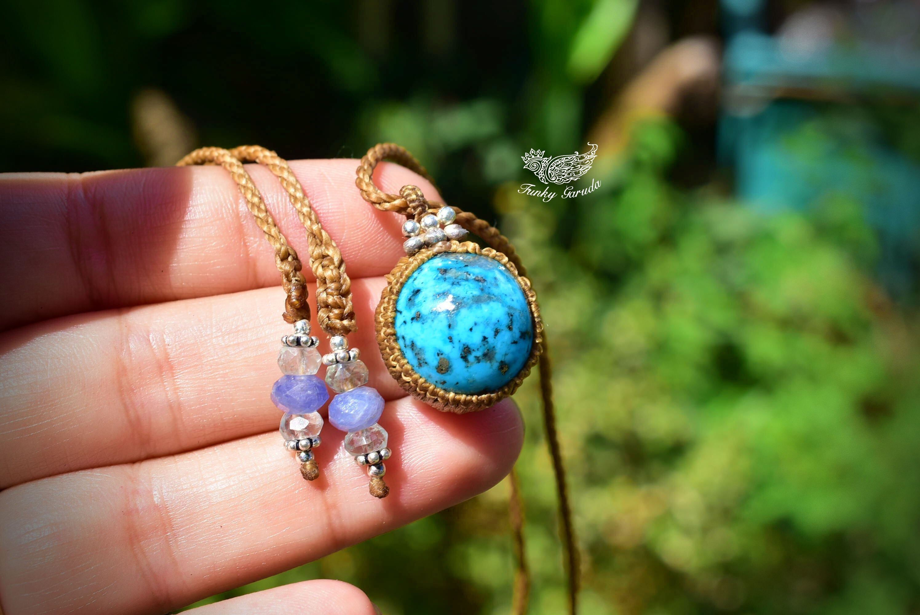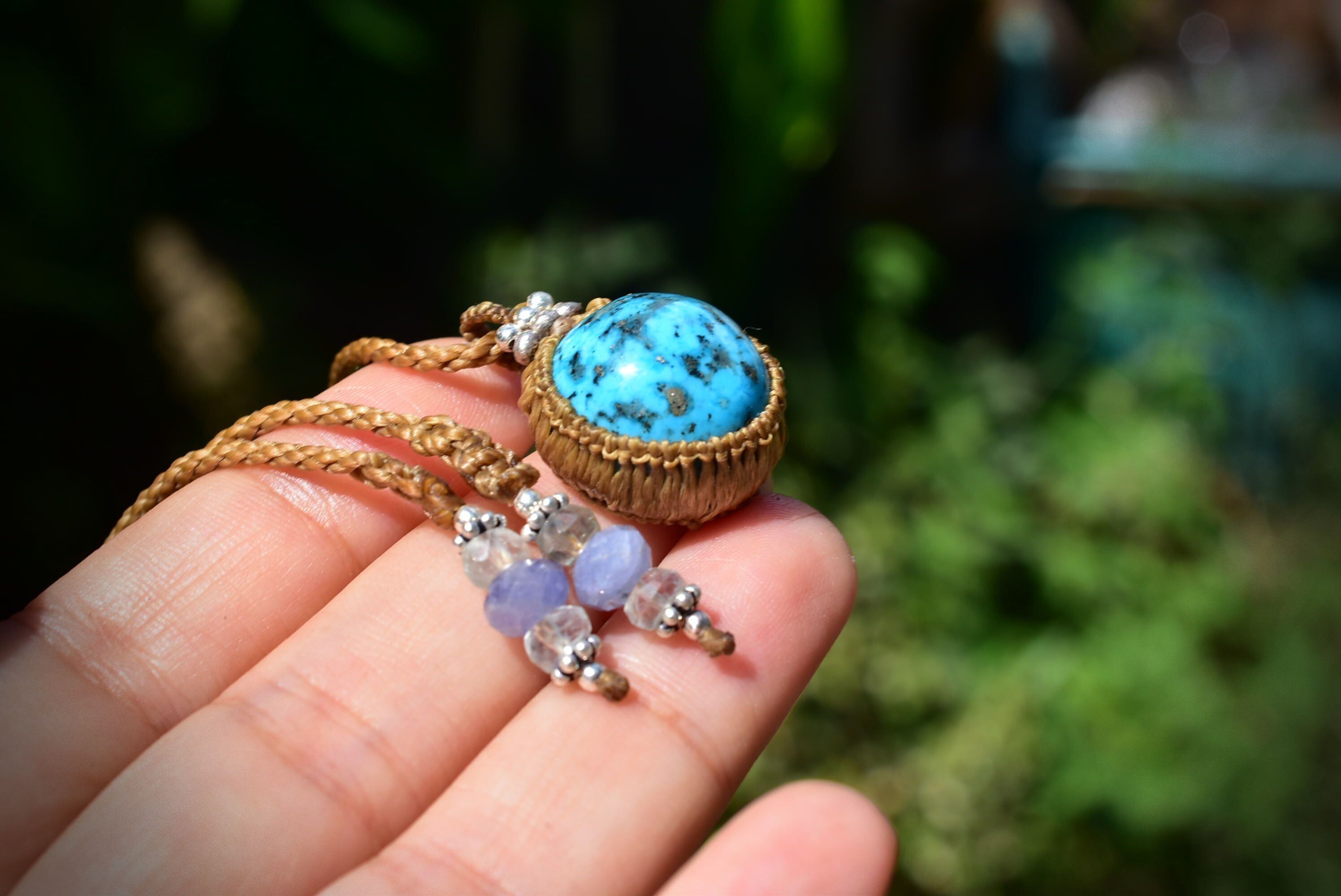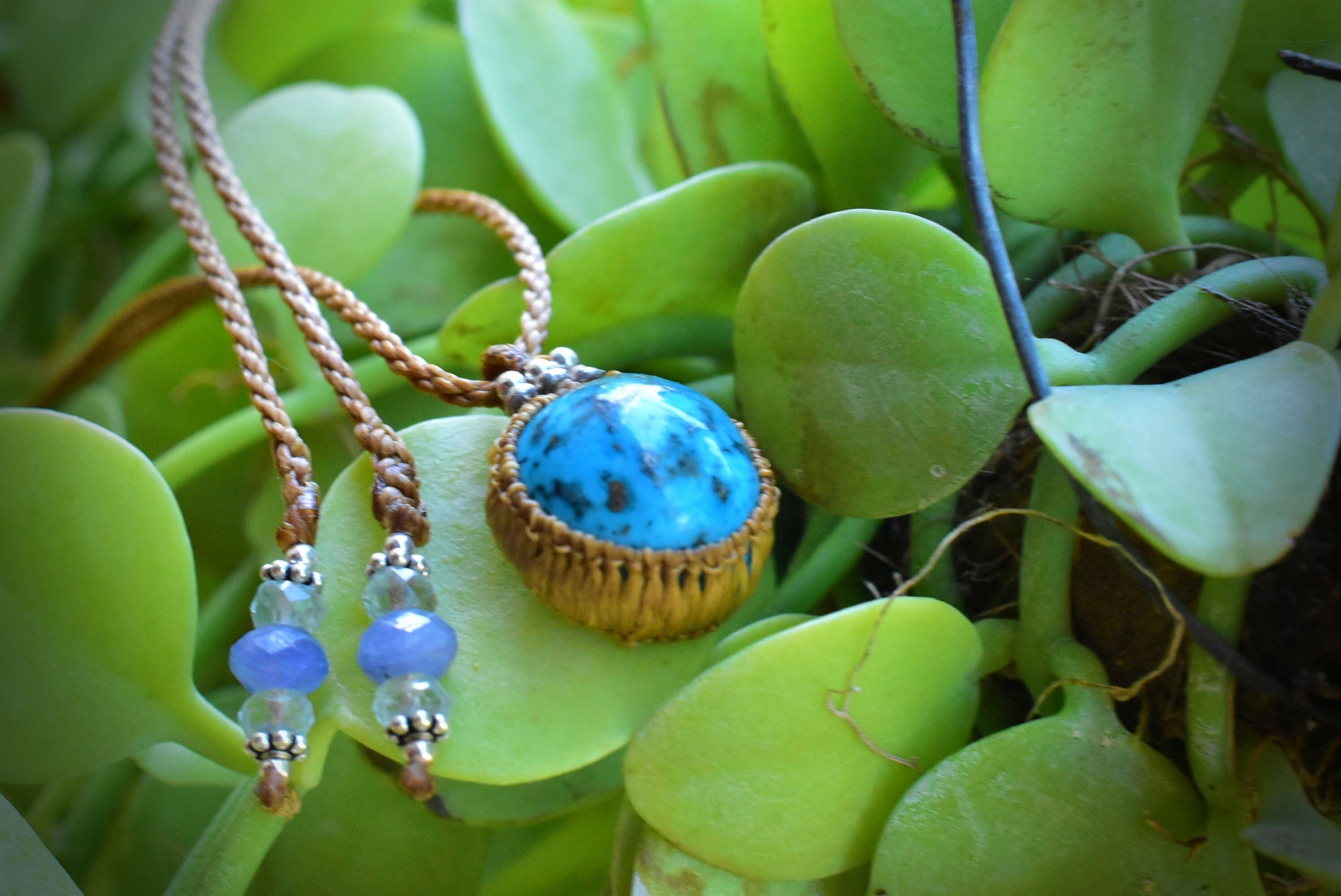 丸く蒼い世界★ターコイズ マクラメペンダント tury002