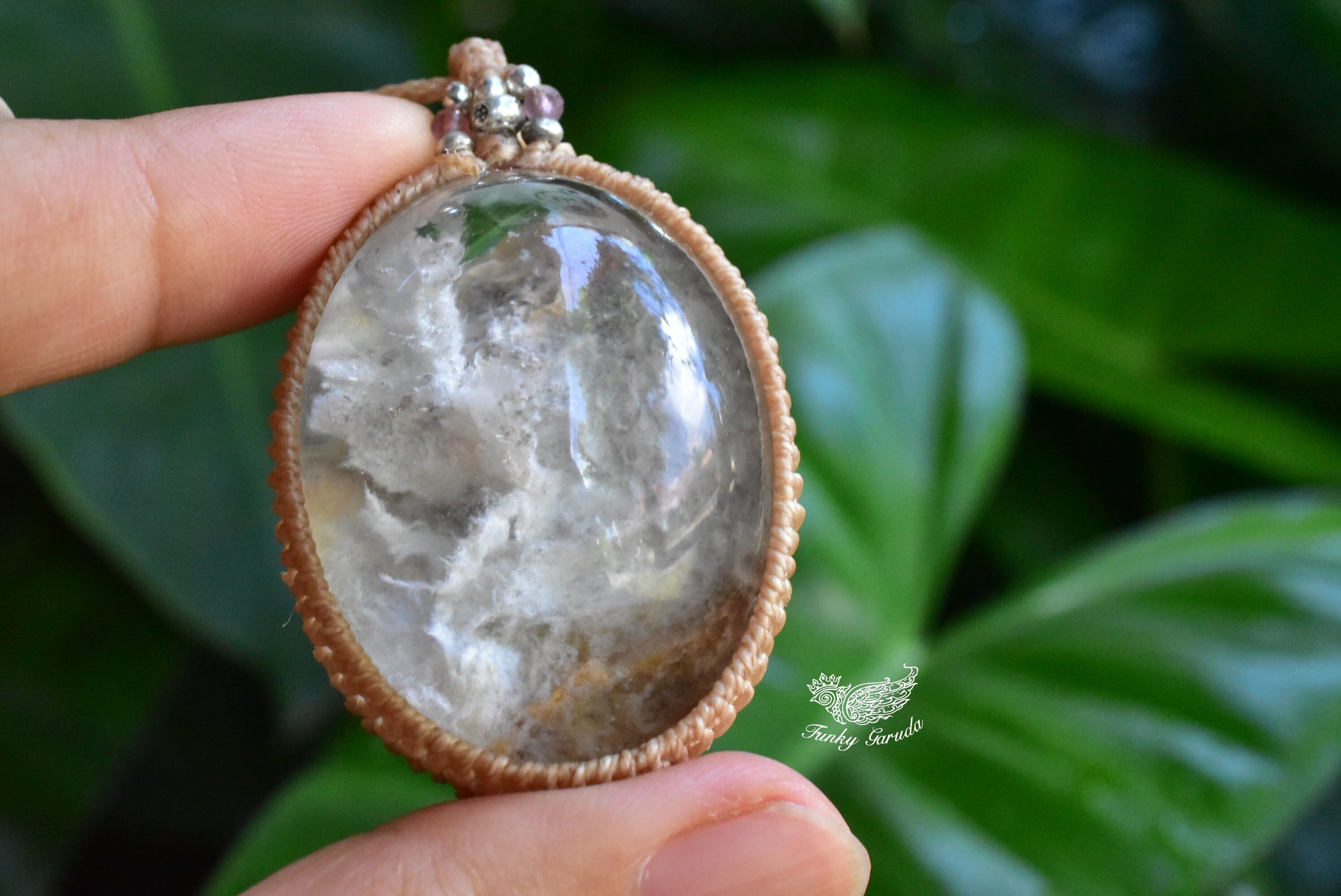 透明感な水晶の中に、真っ白い雲のような内包物