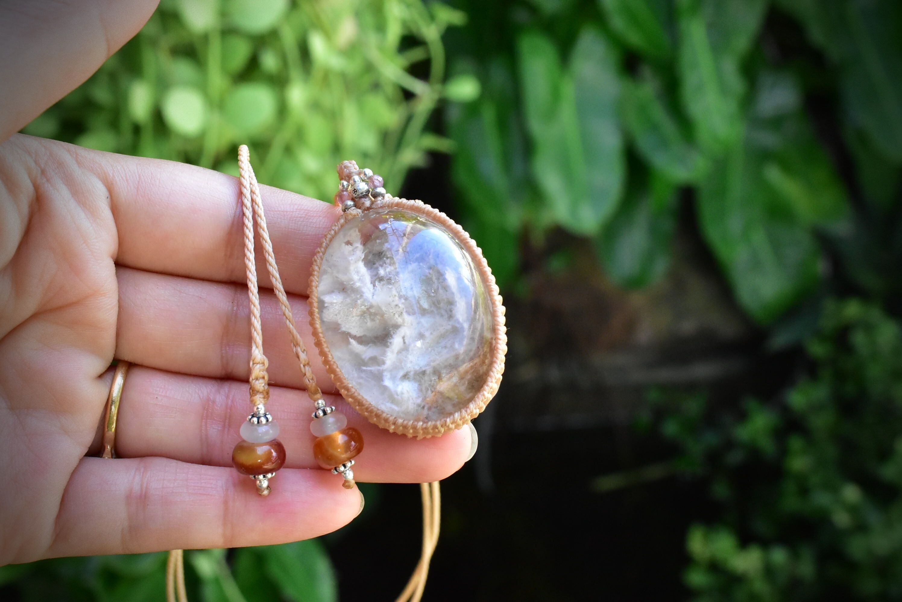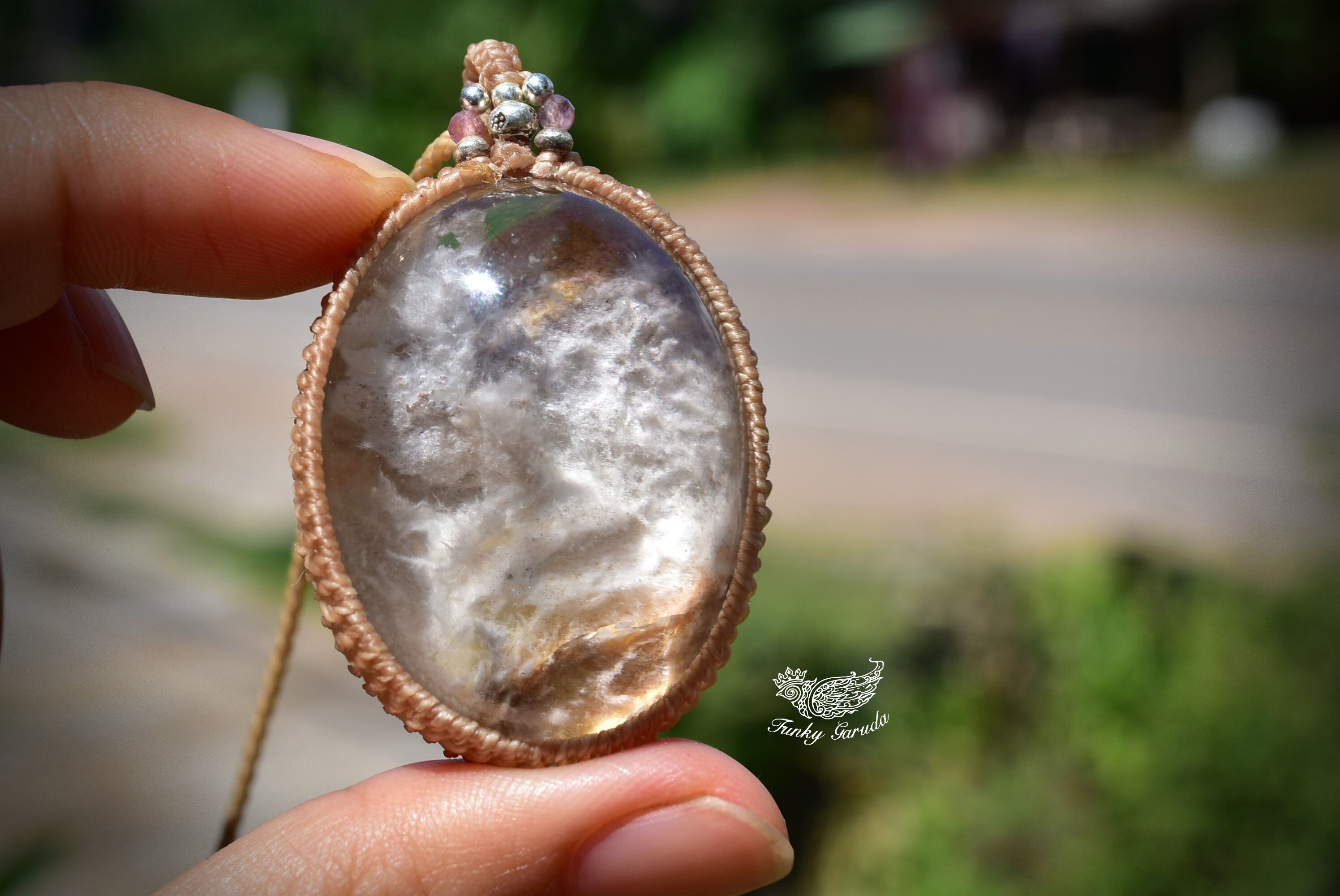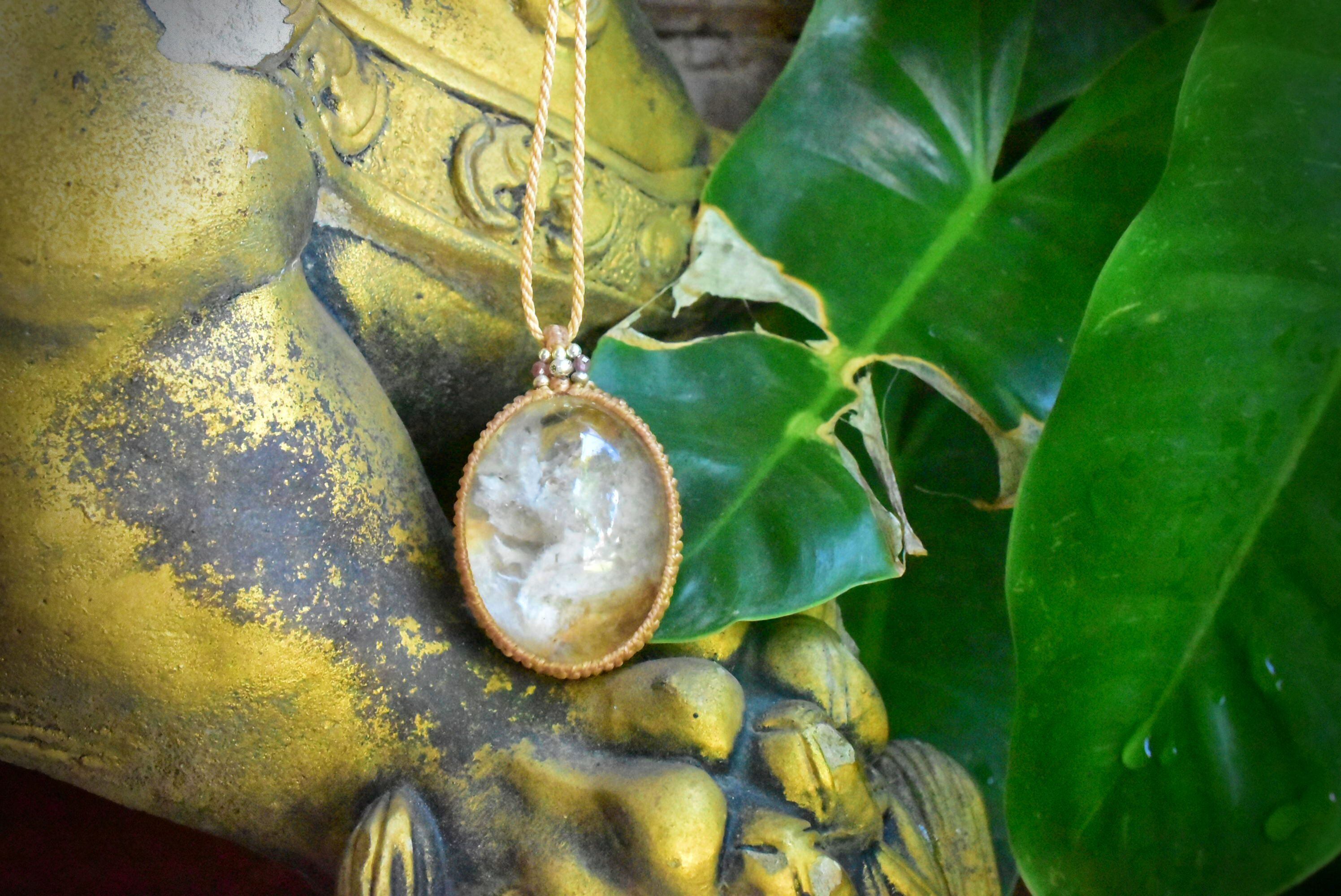 純白の翼★大粒ホワイトガーデンクォーツ マクラメペンダント gy038