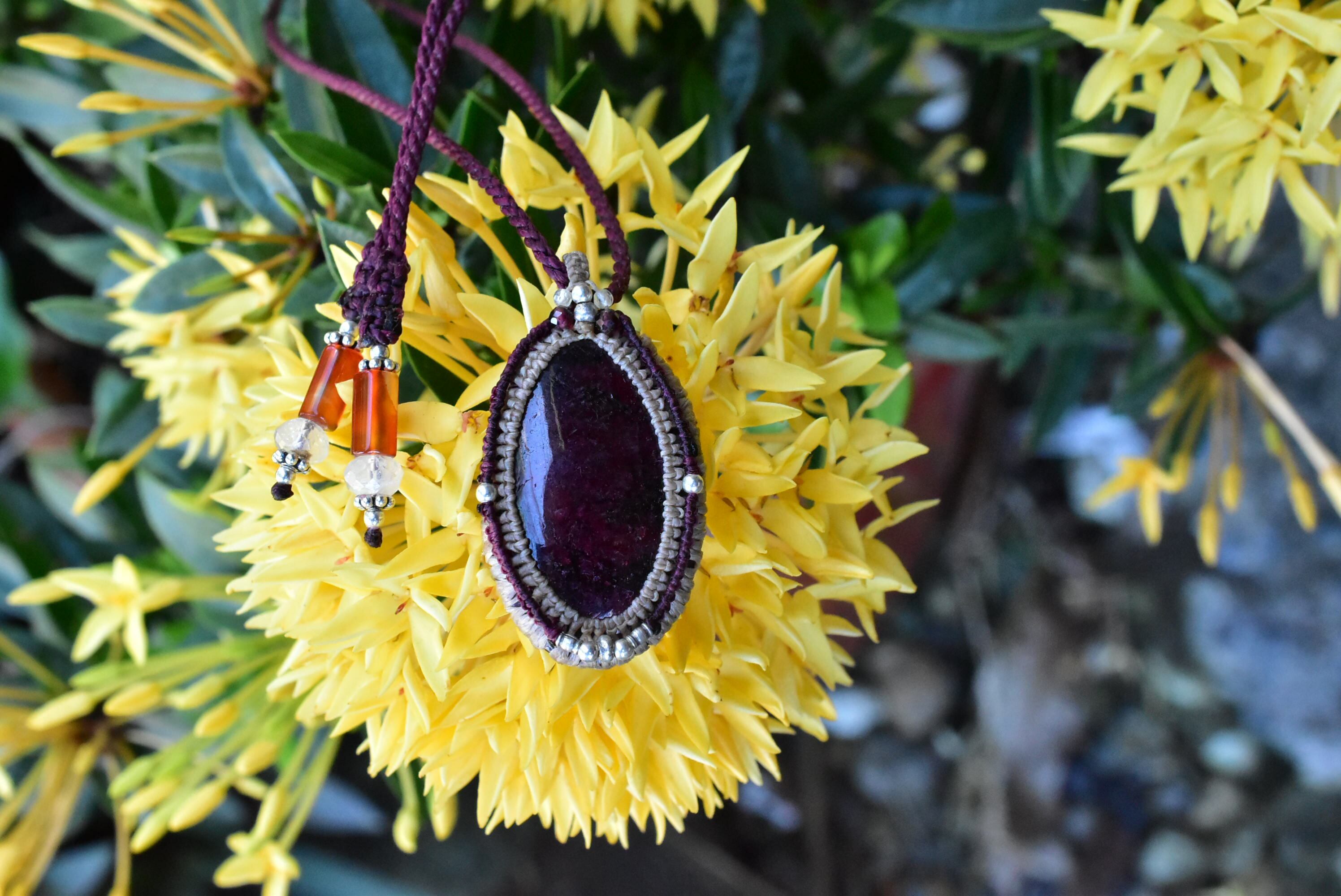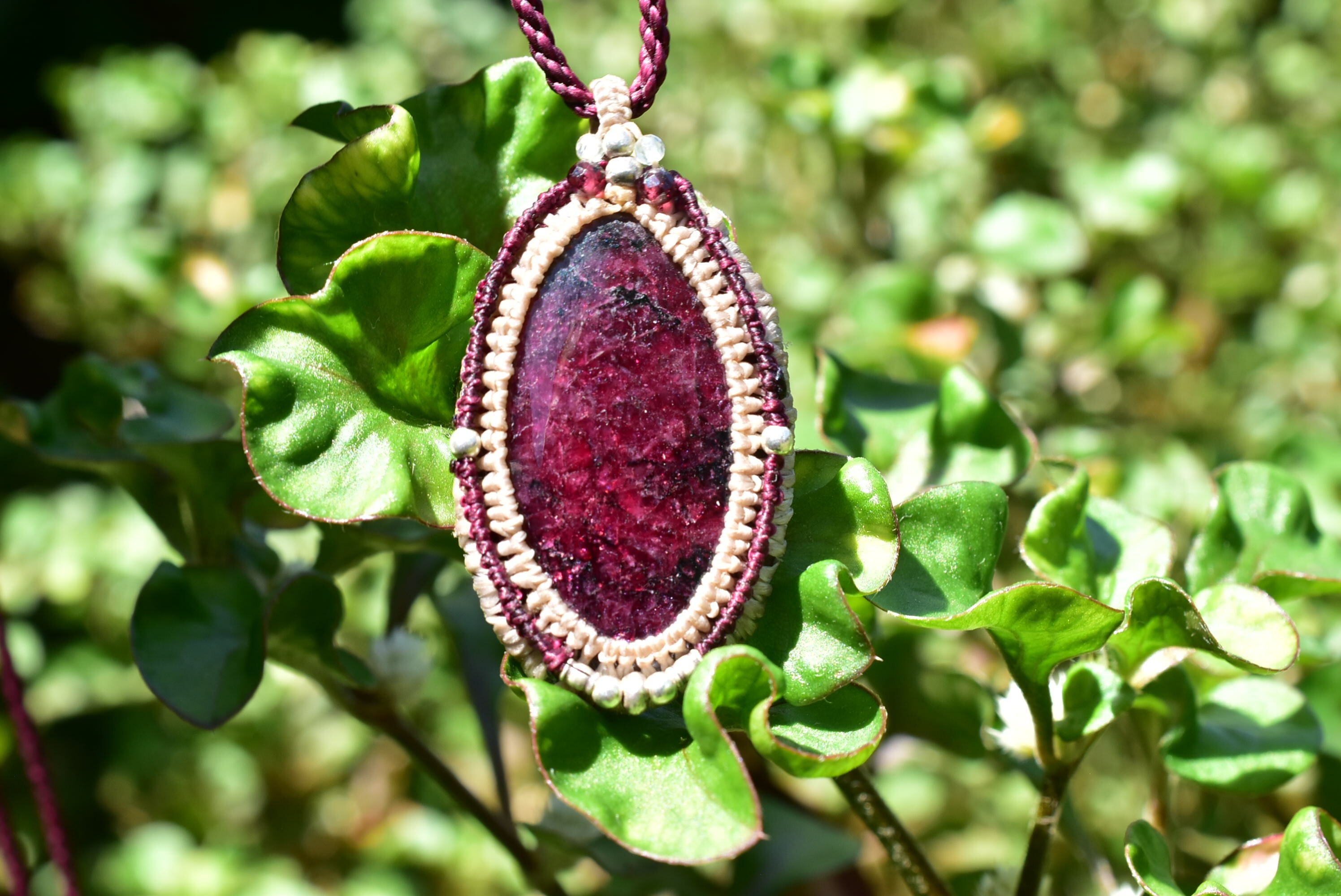 ディープワイン★ユーディアライト マクラメペンダントeud003