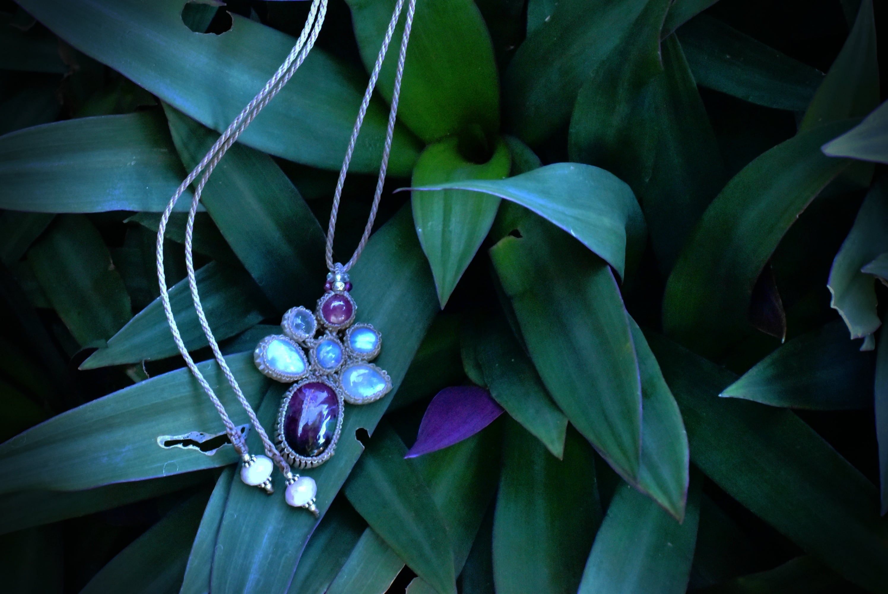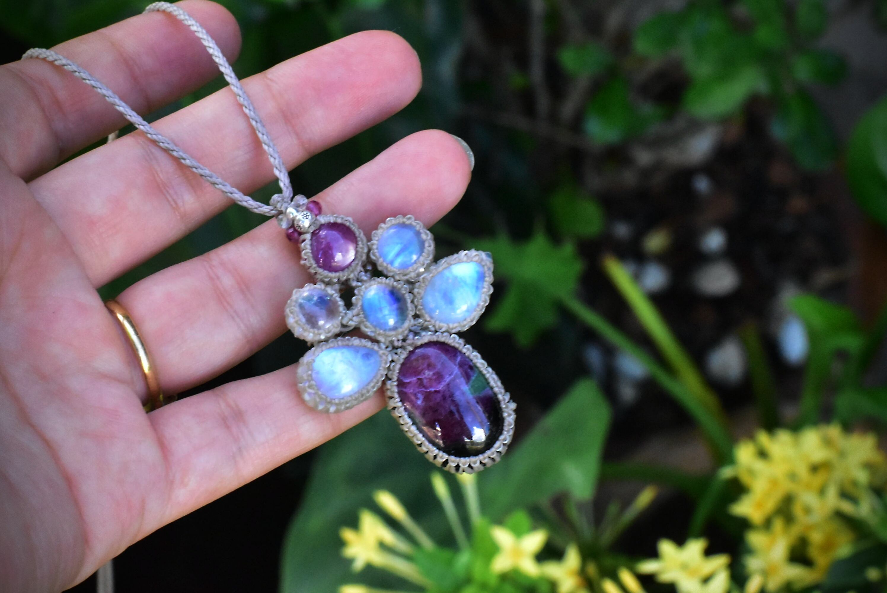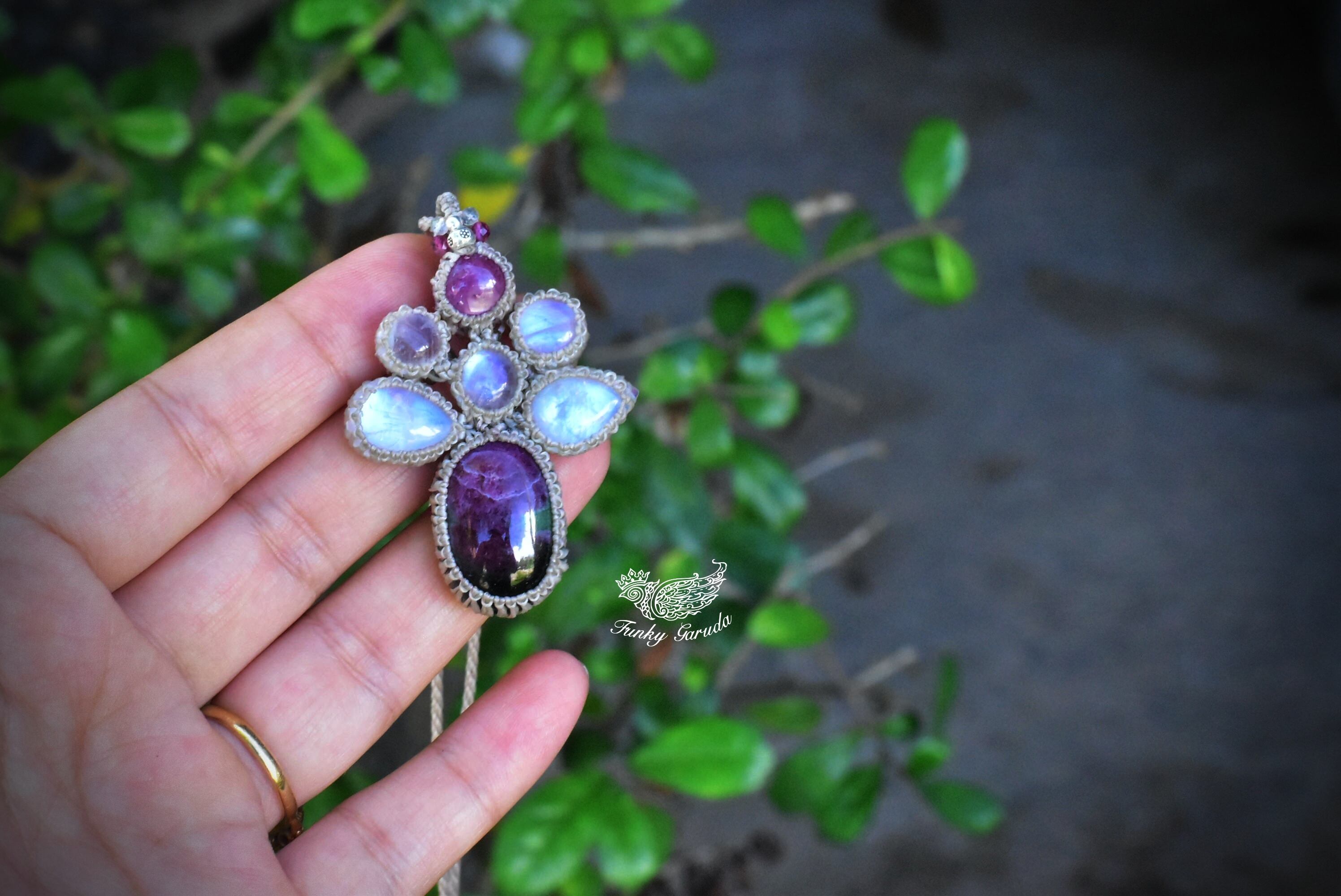 愛の花★ルビーインゾイサイト レインボームーンストーン マクラメペンダントruby022
