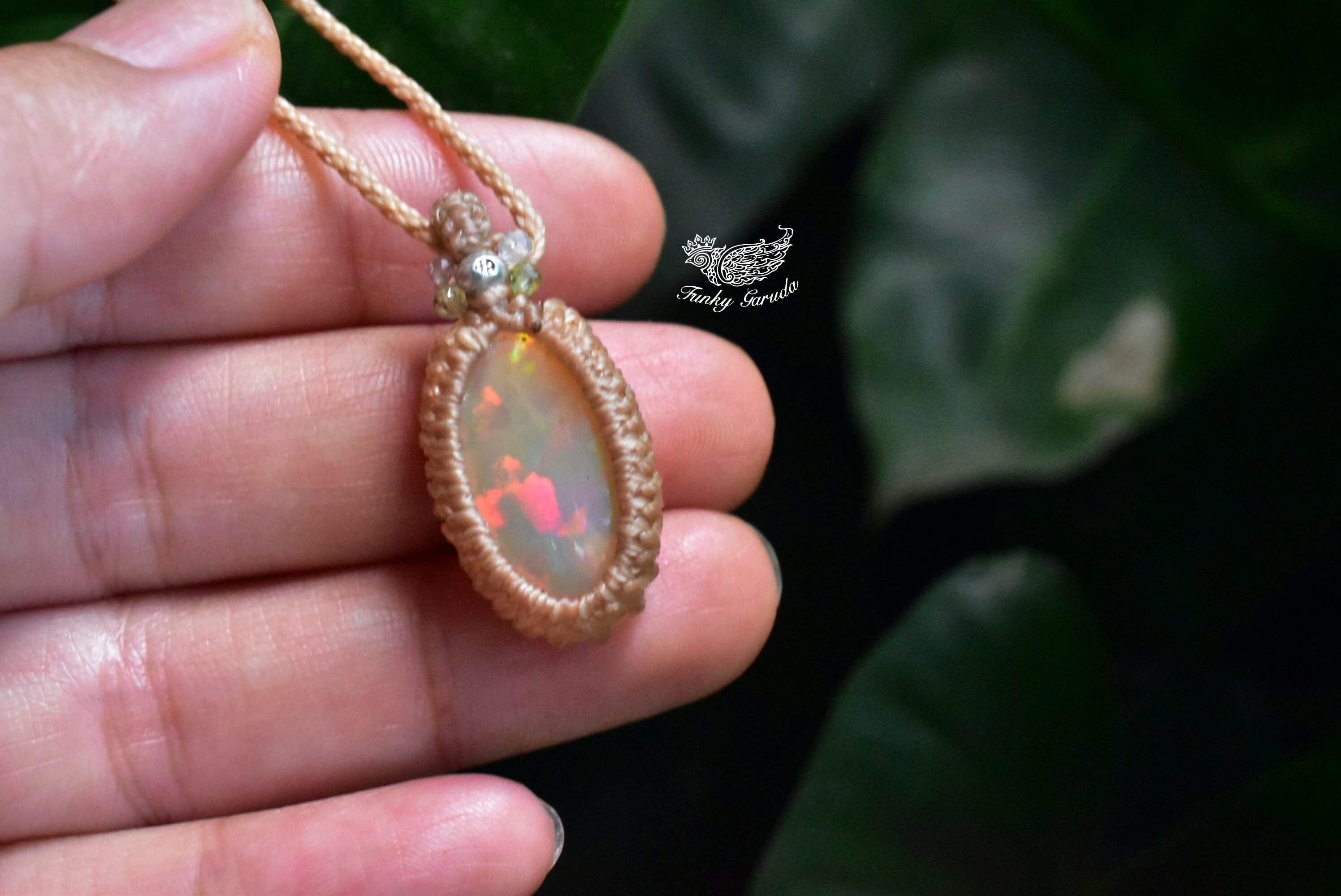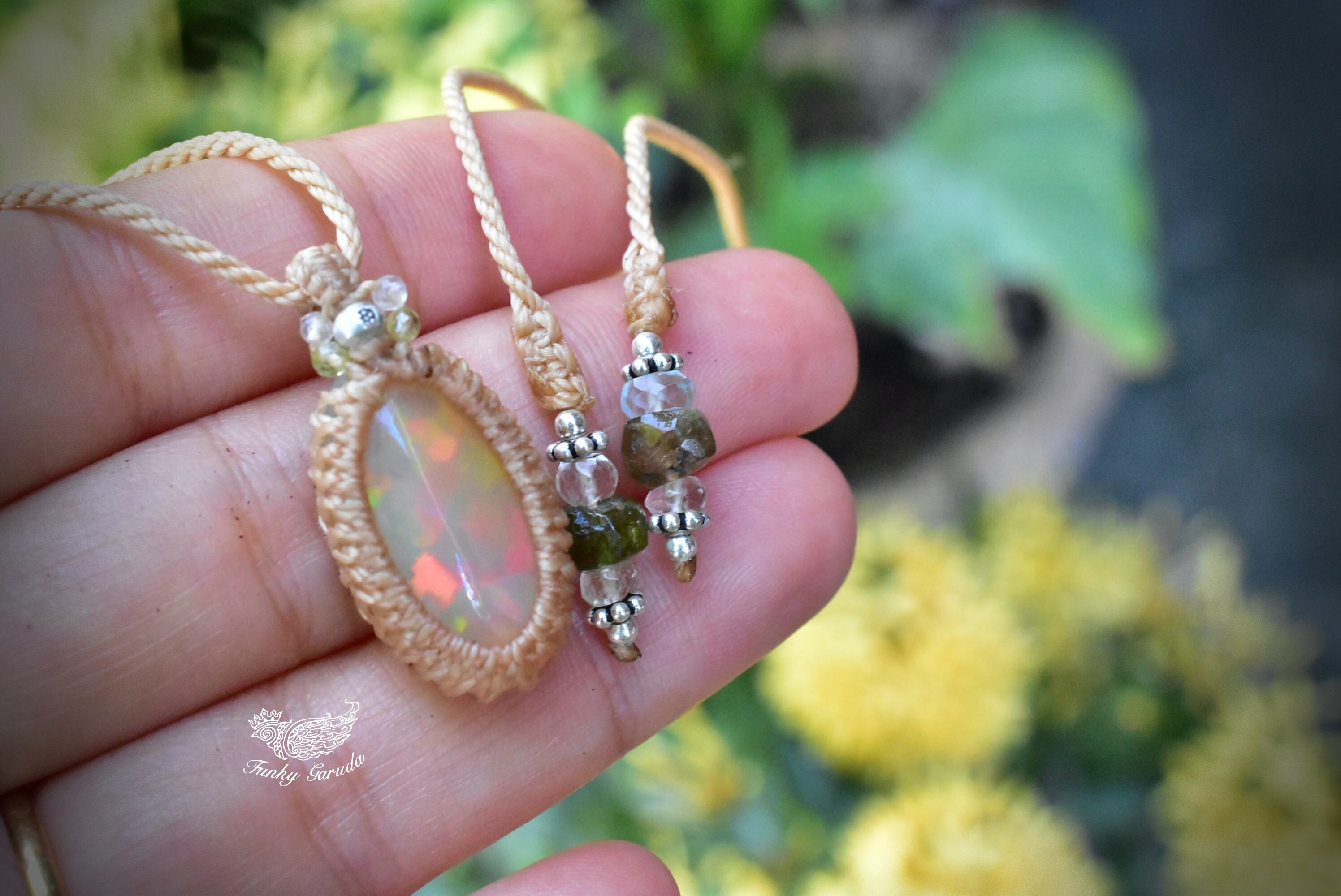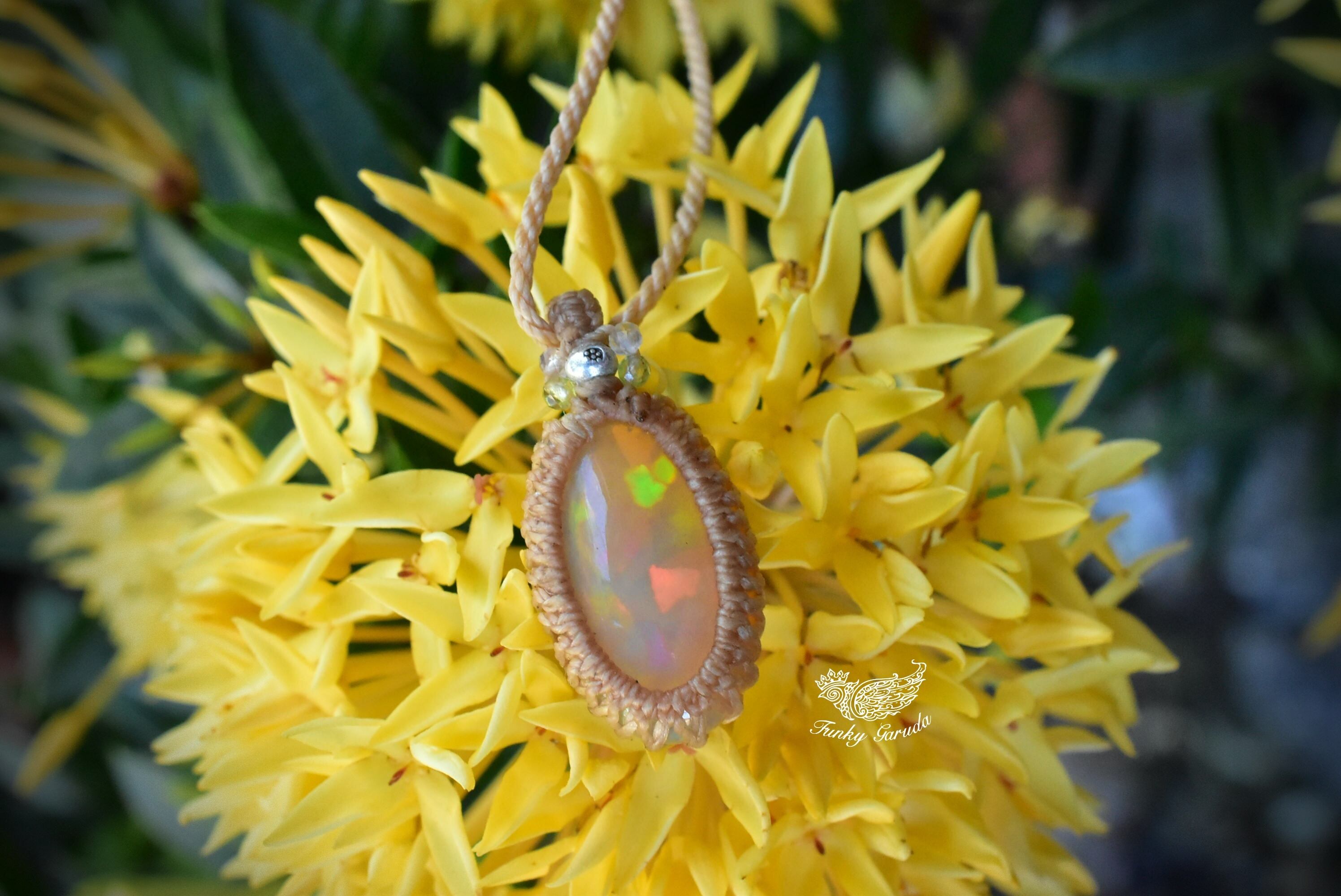 14ctカケラ遊色効果★エチオピアオパール マクラメペンダントopal015
