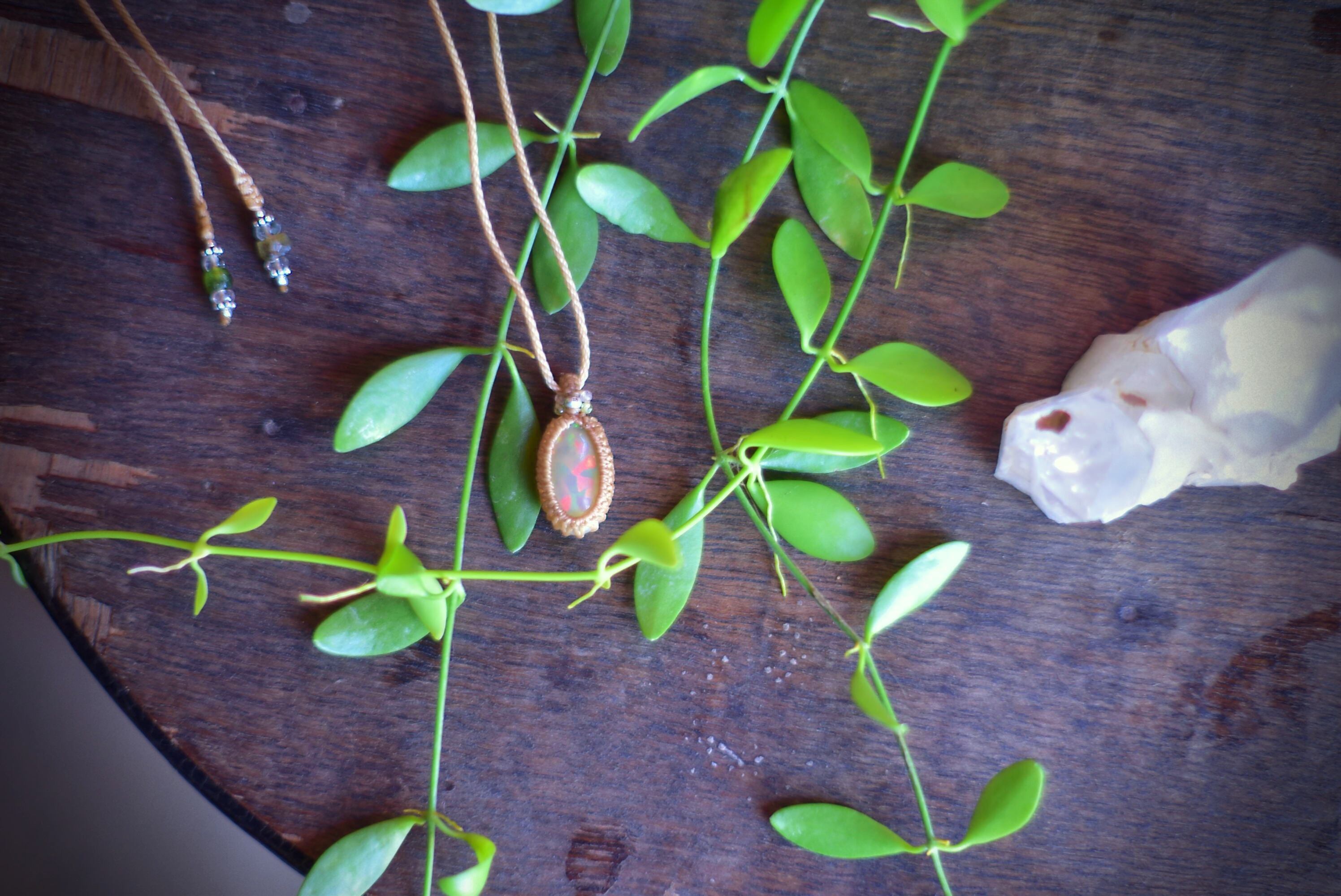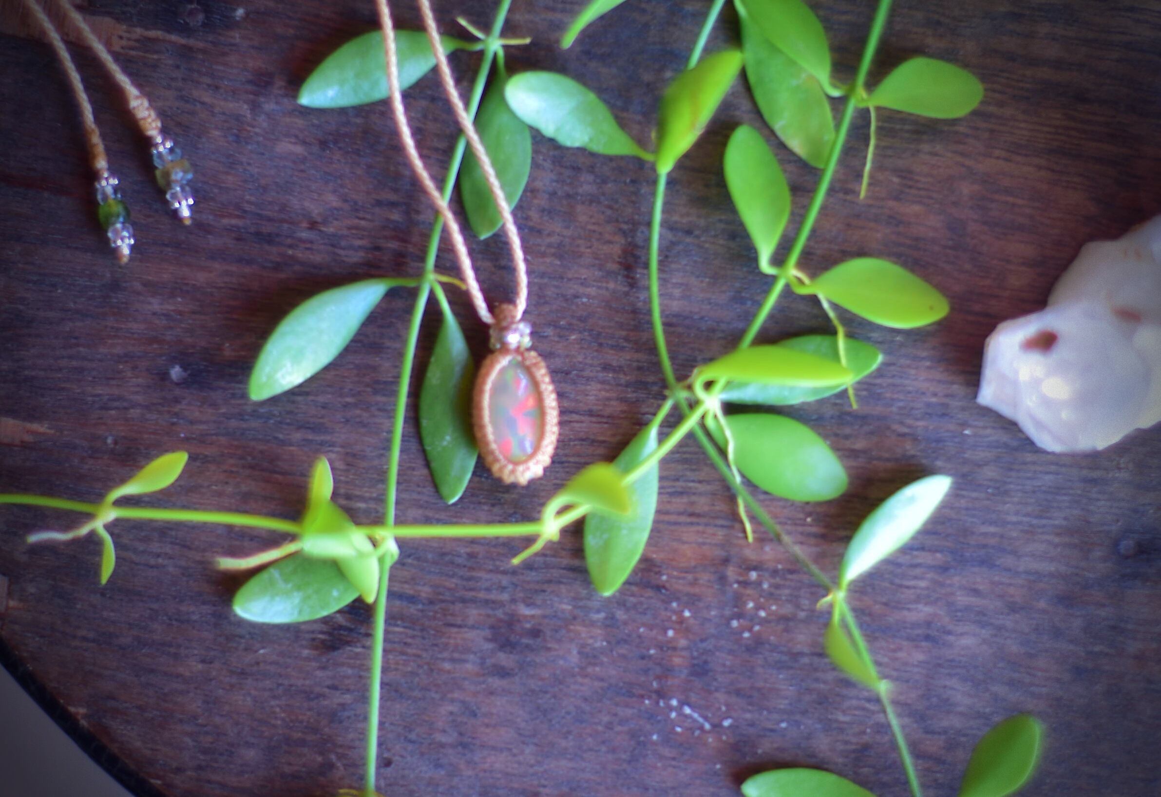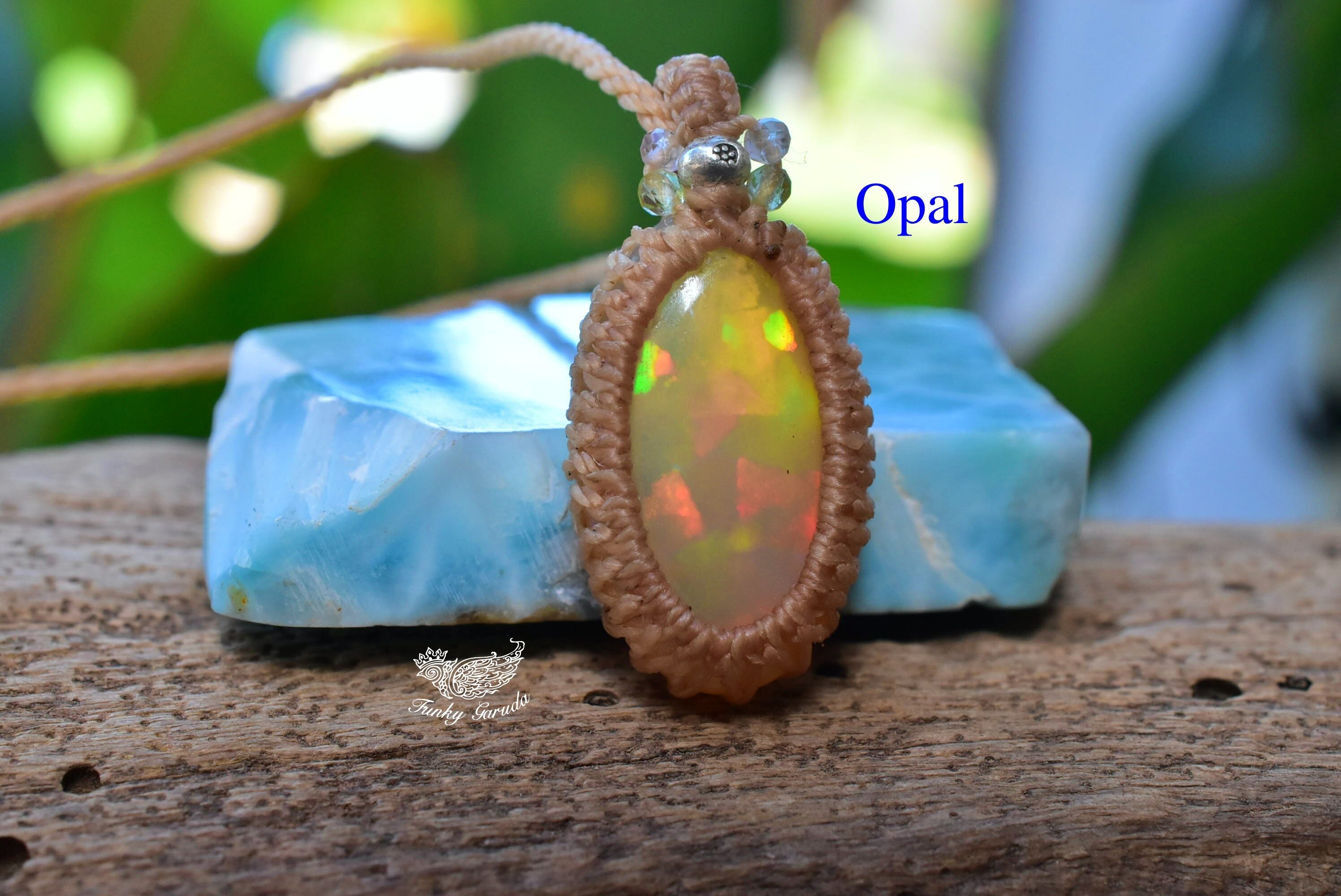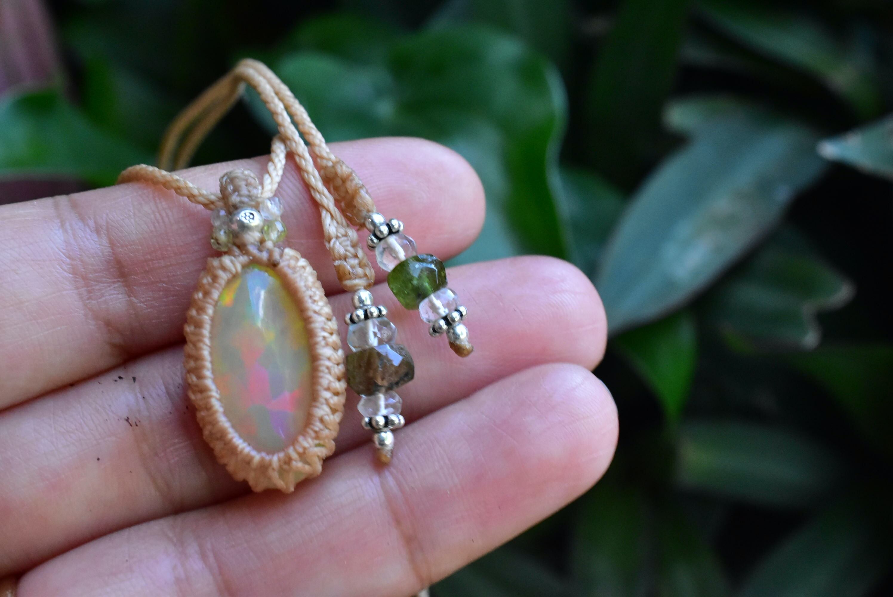 14ctカケラ遊色効果★エチオピアオパール マクラメペンダントopal015