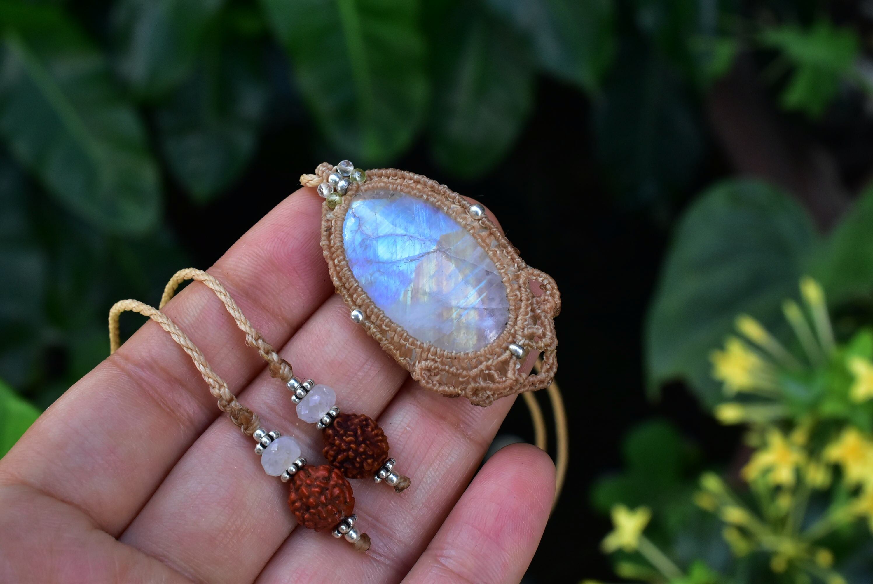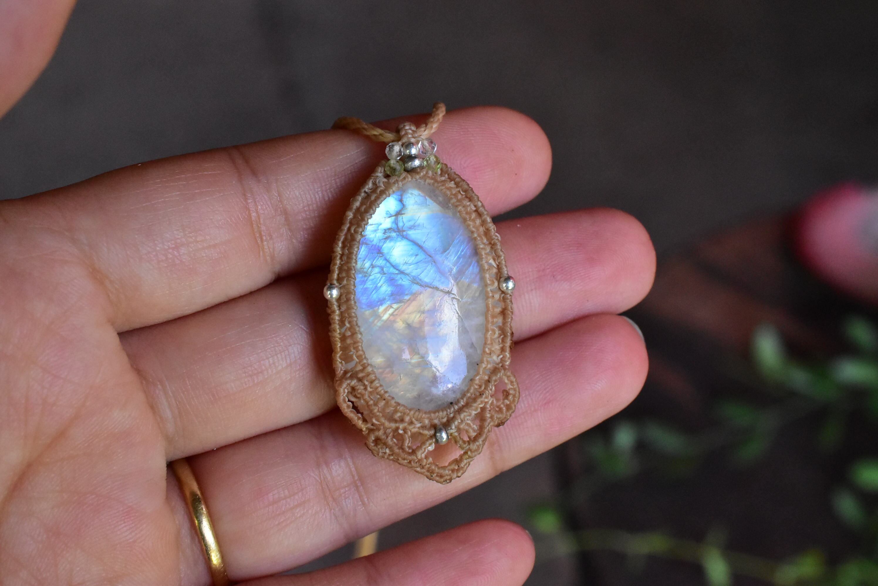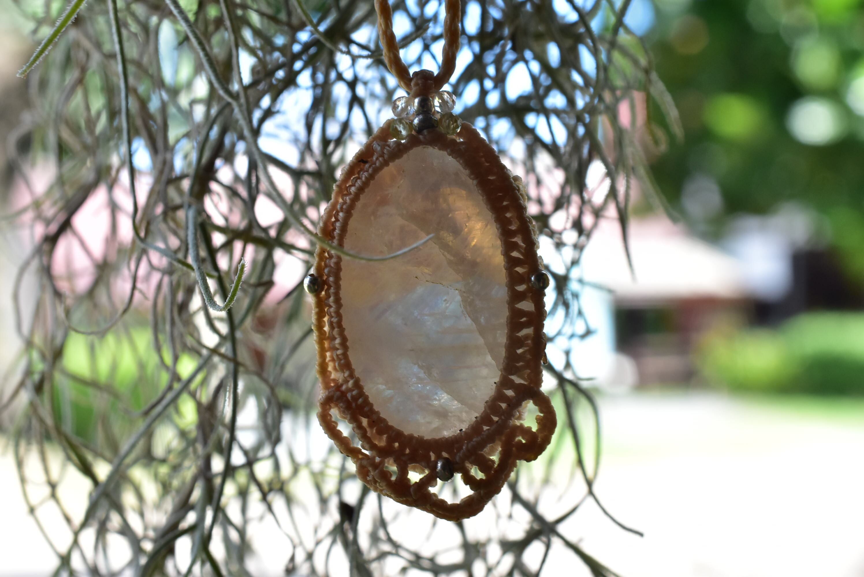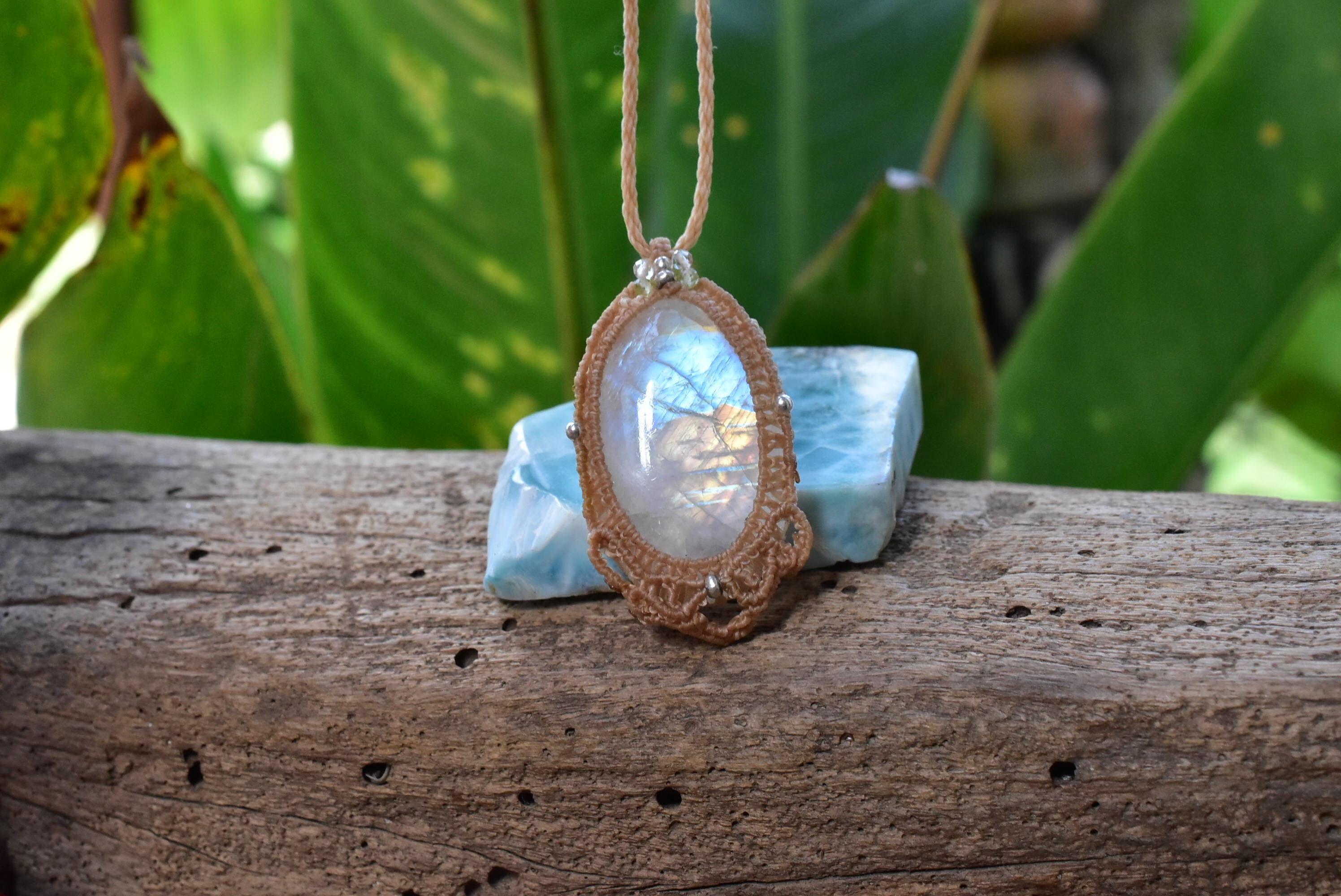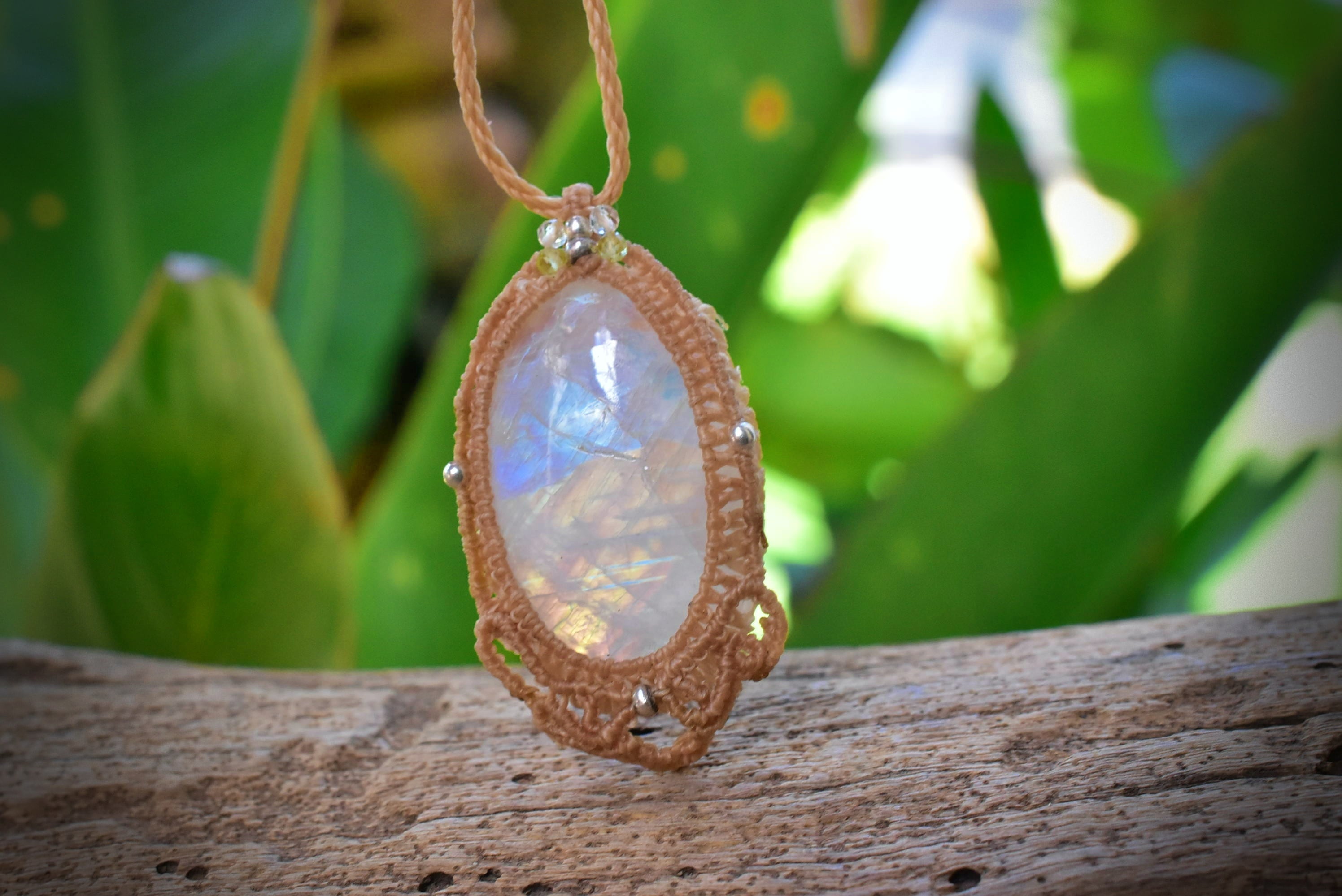 月の世界の虹★レインボームーンストーン マクラメペンダントmoon050