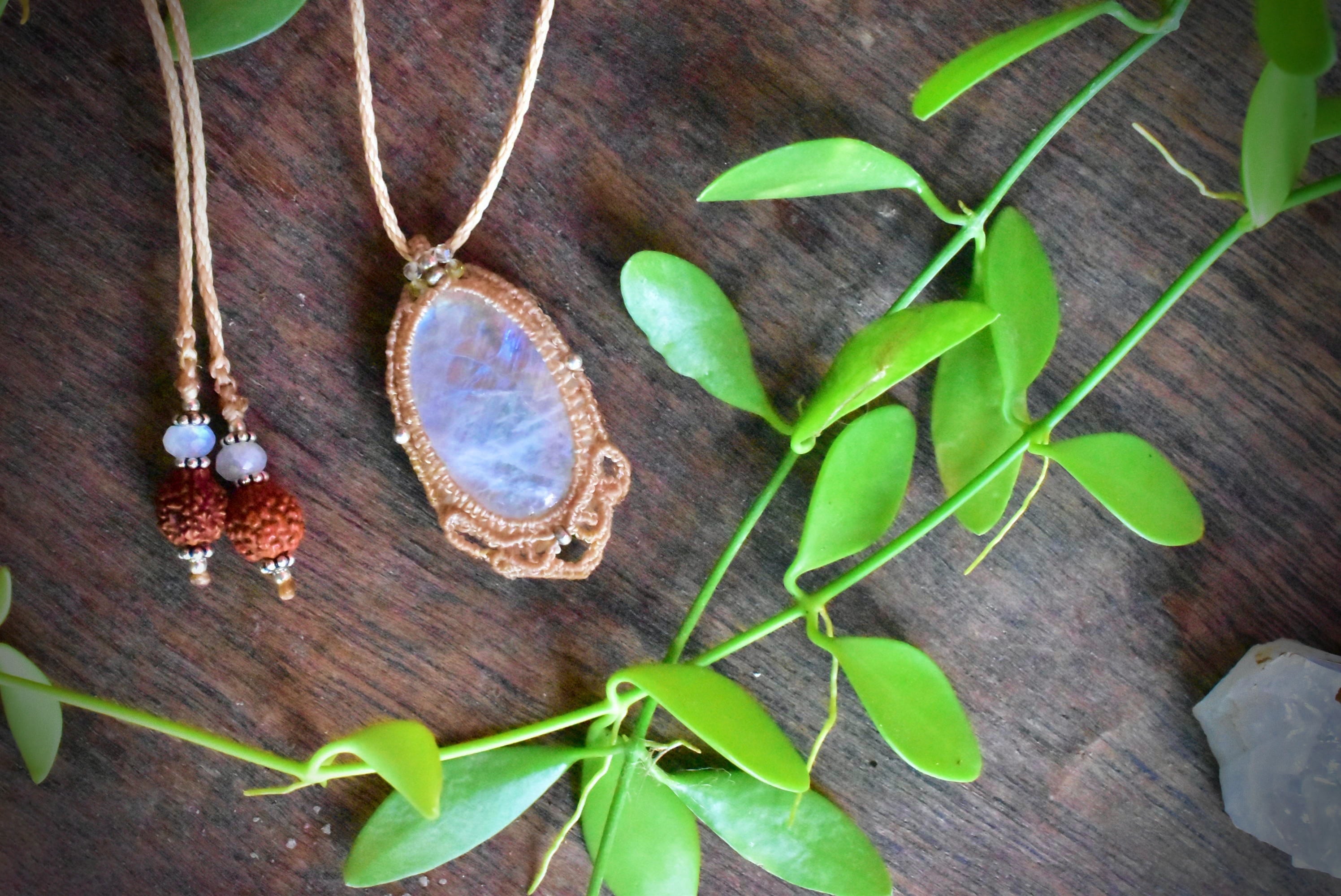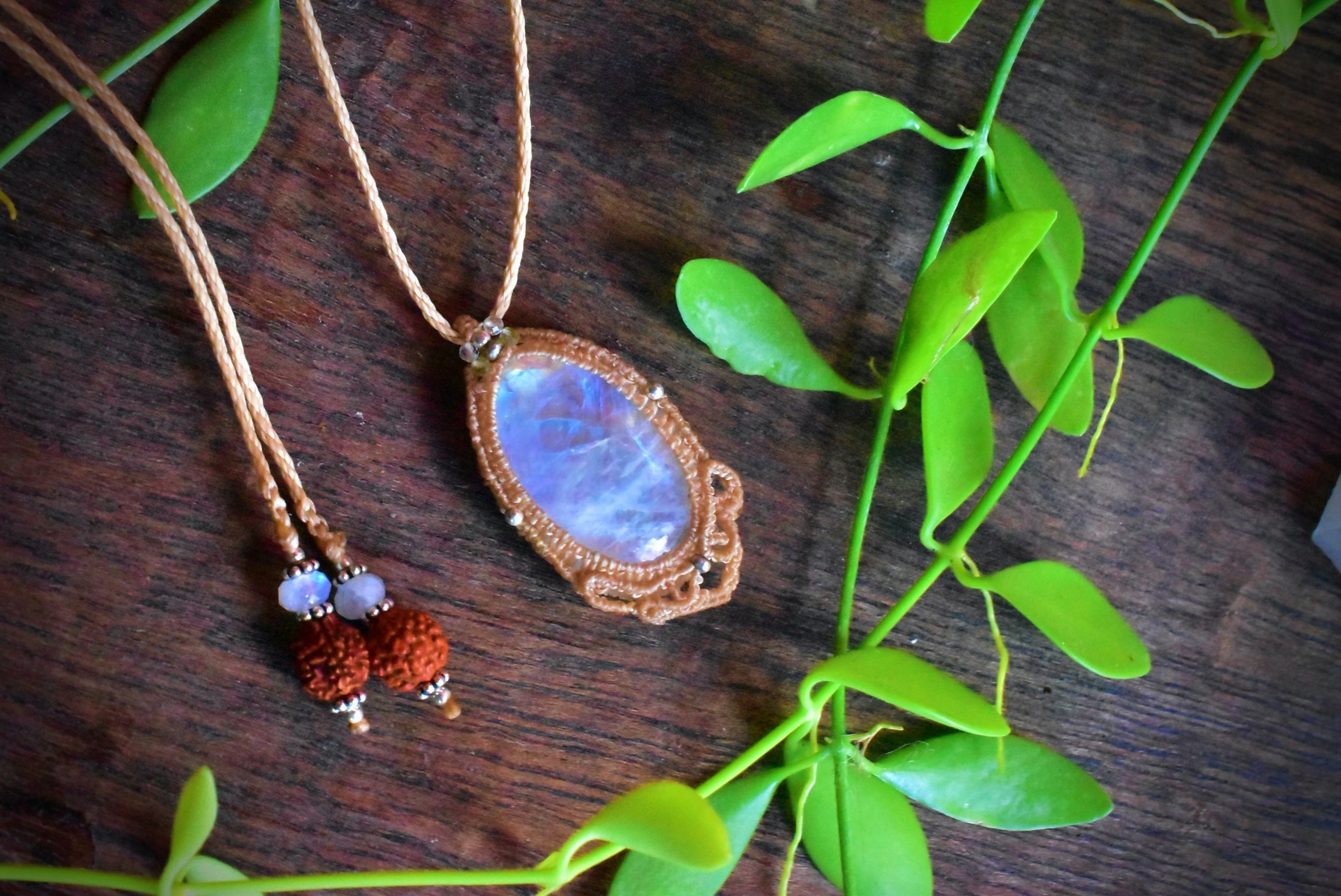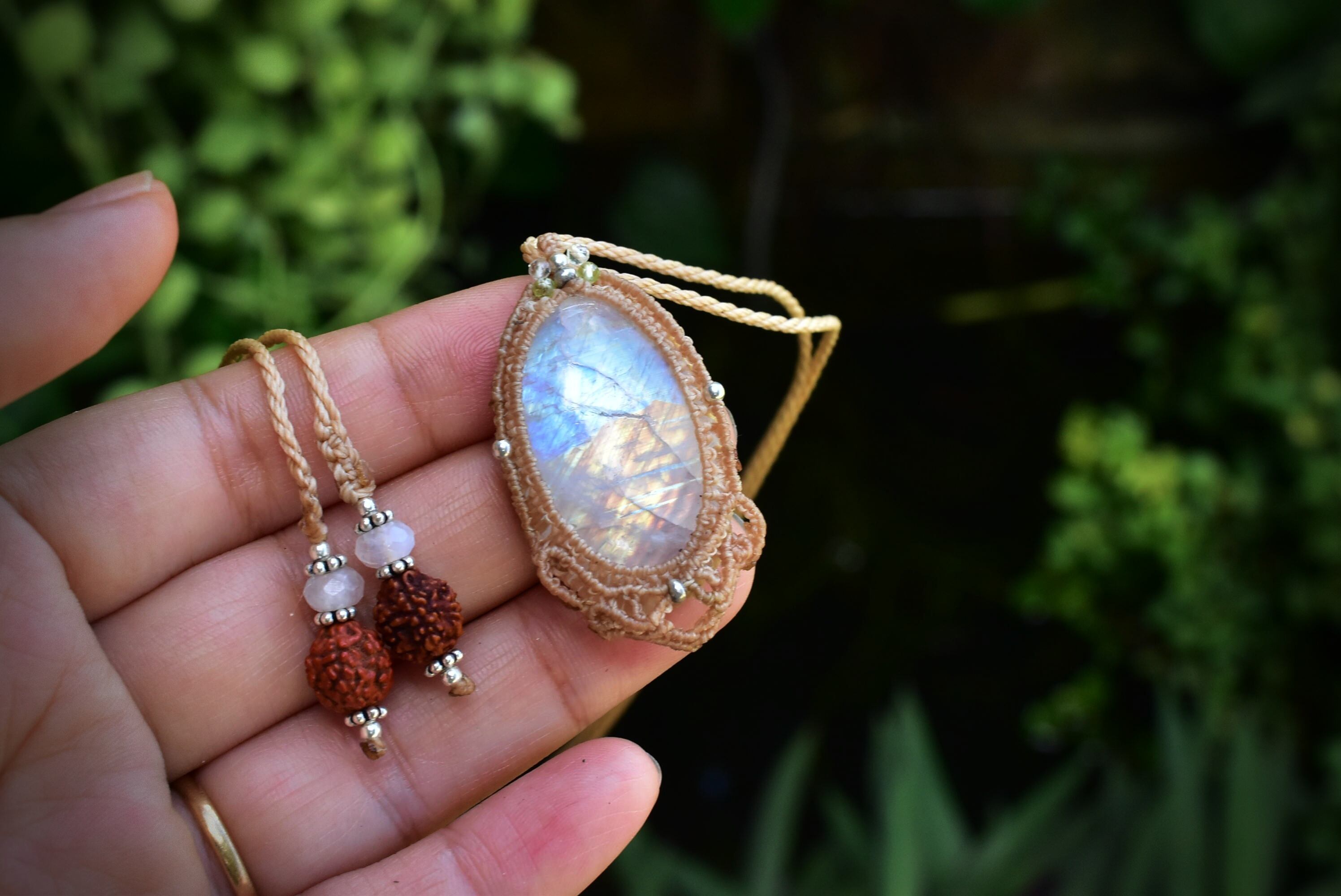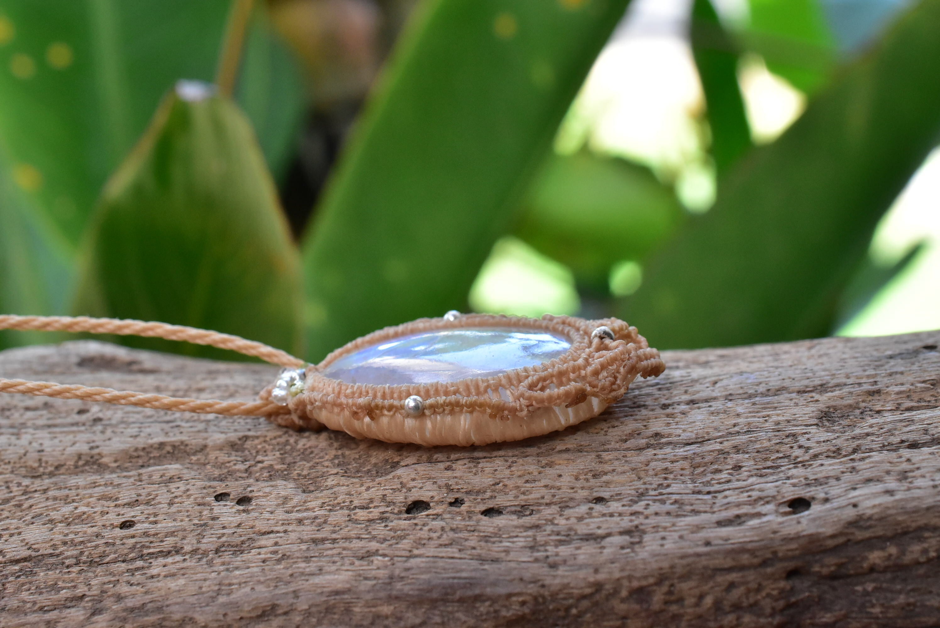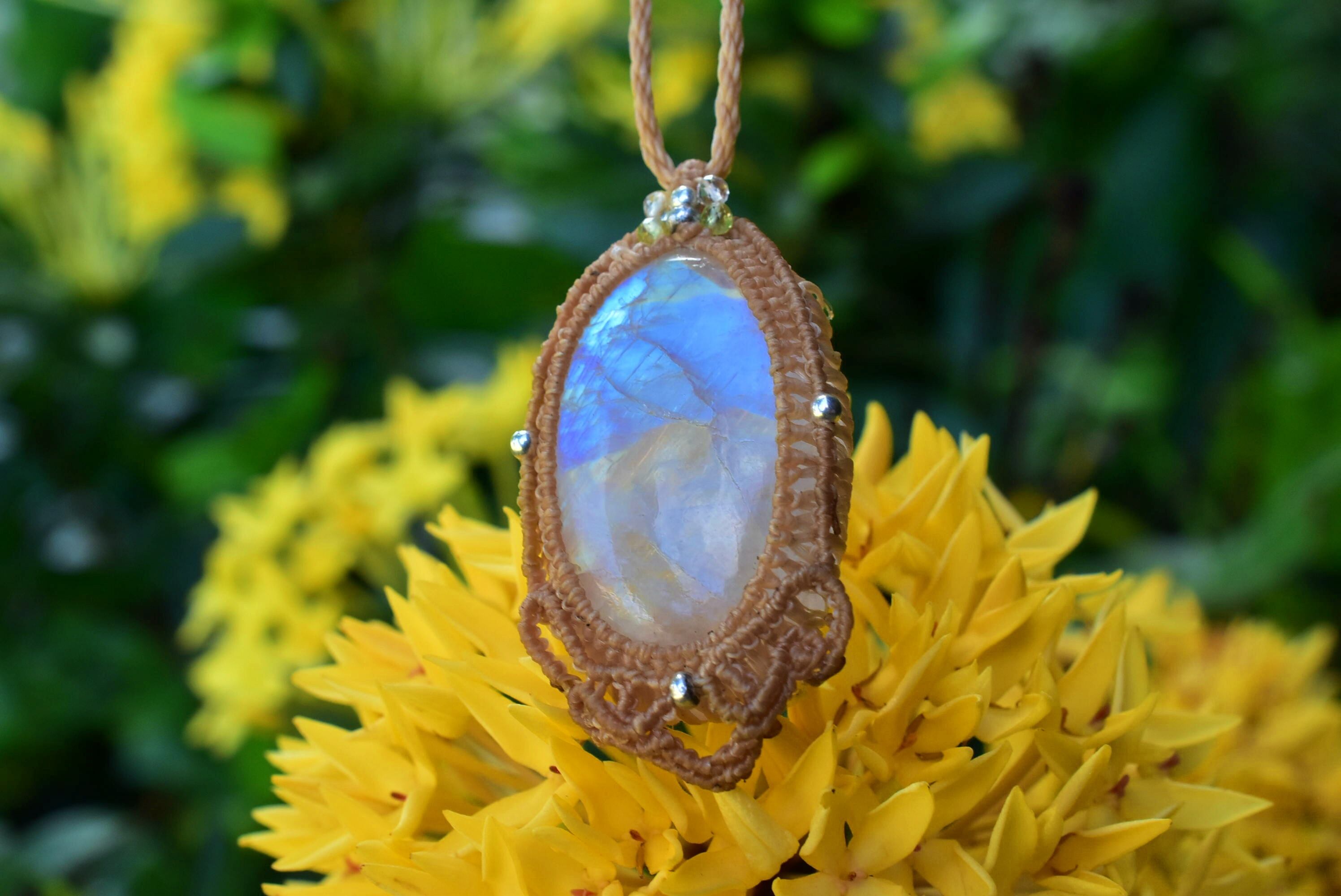 月の世界の虹★レインボームーンストーン マクラメペンダントmoon050