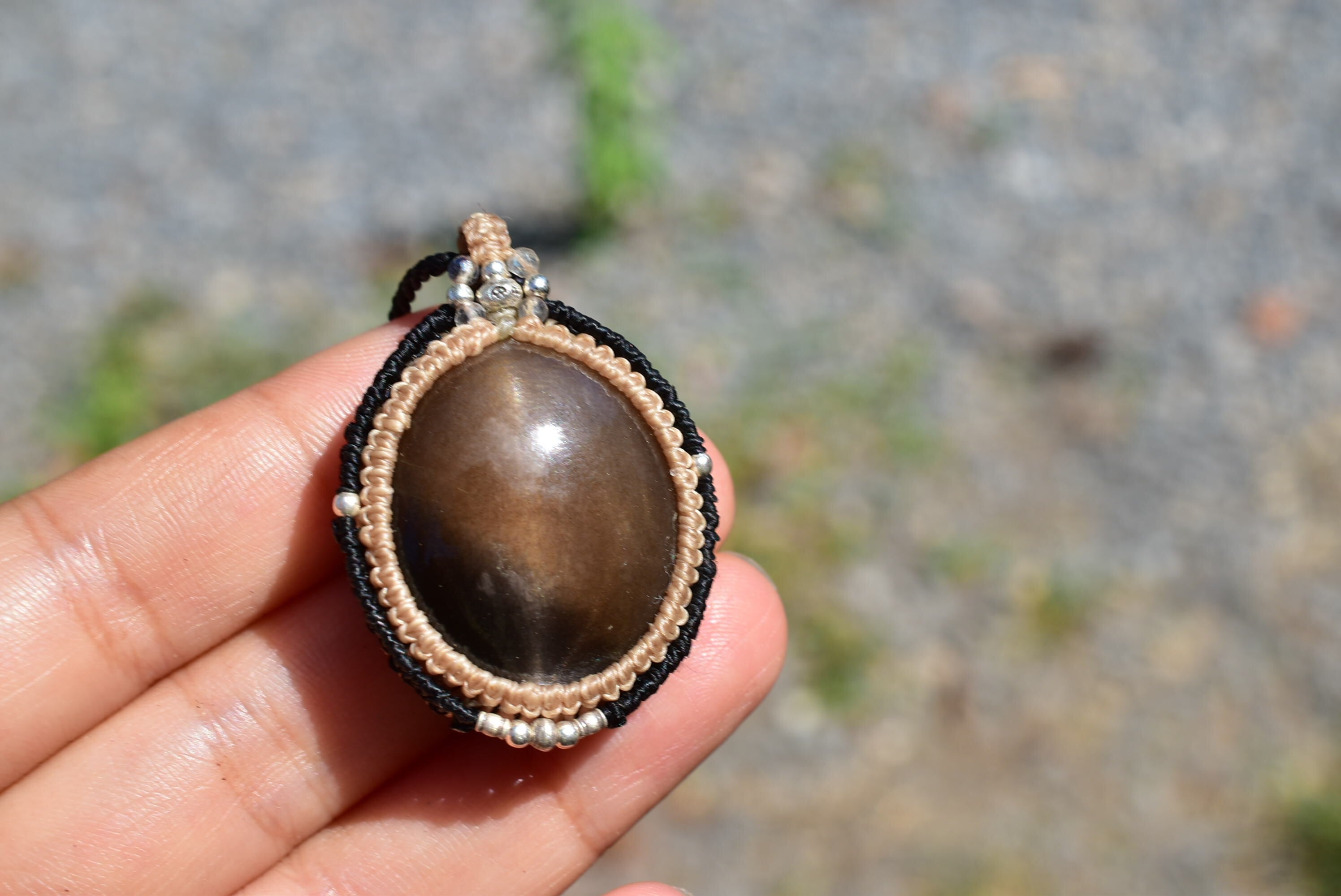 スター入り★ゴールドサンストーン マクラメペンダントsun010
