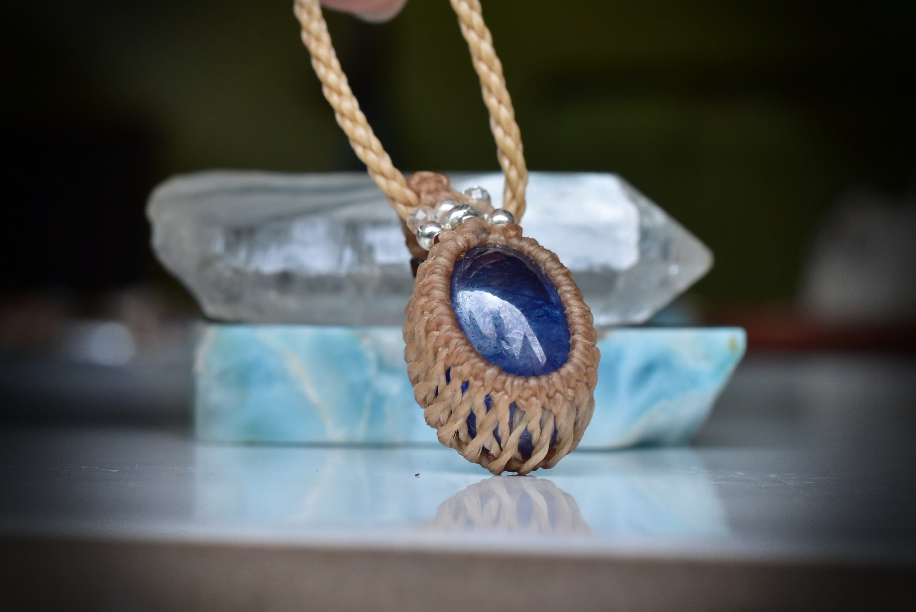 透明感★16ctブルーサファイア マクラメペンダントsafa011