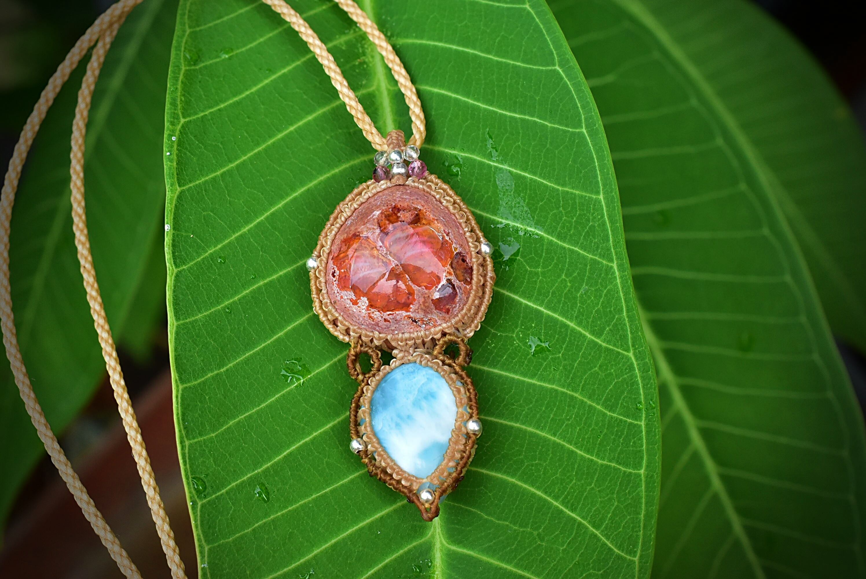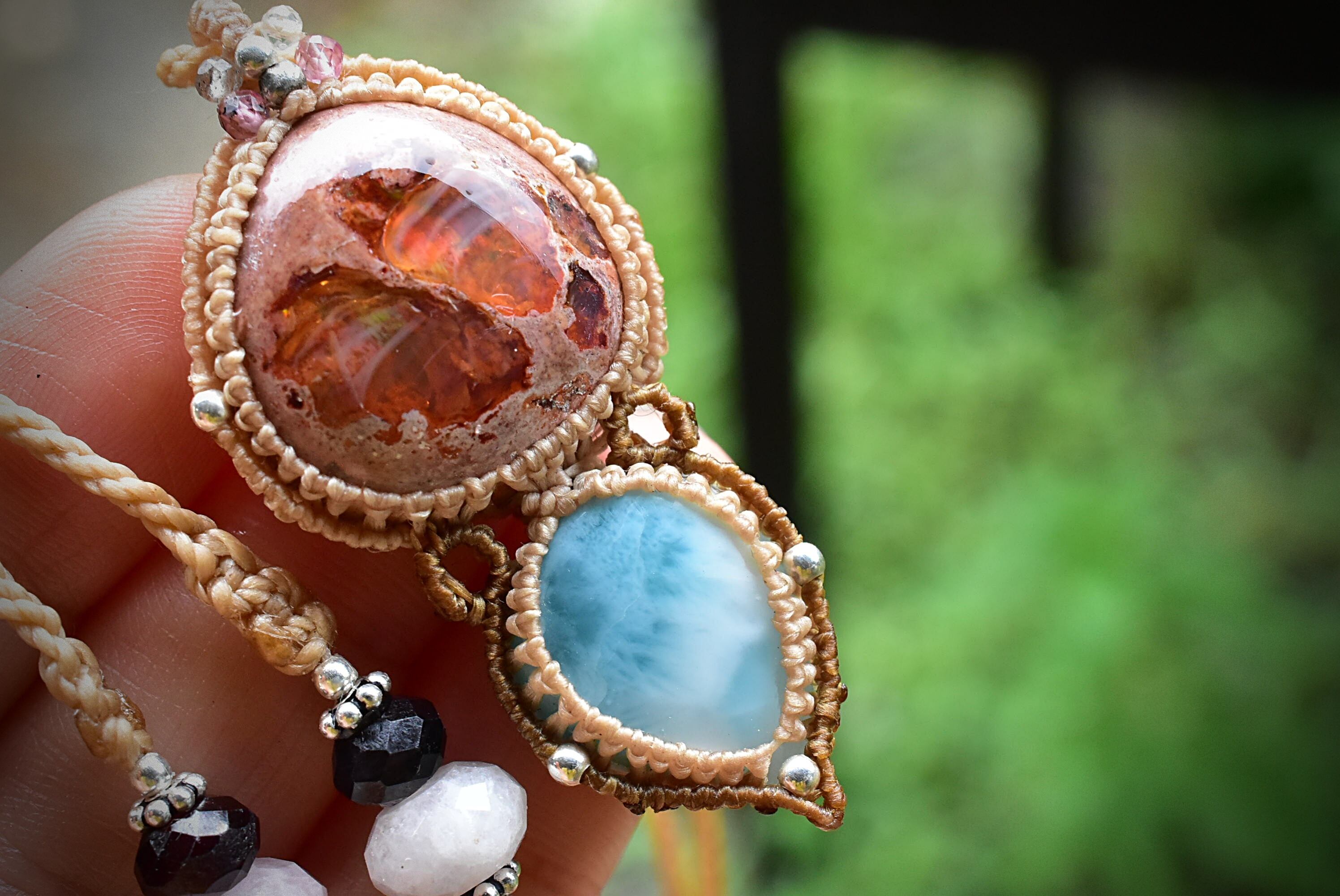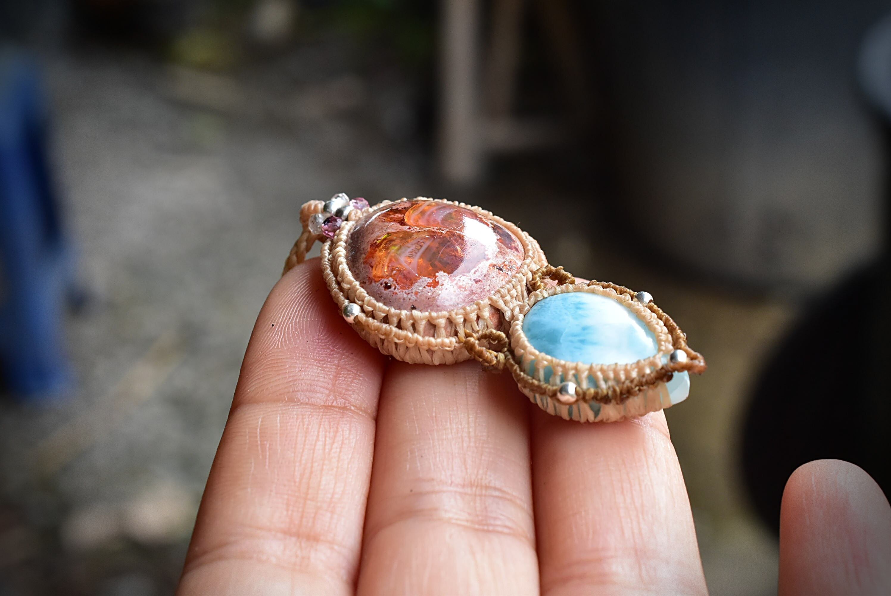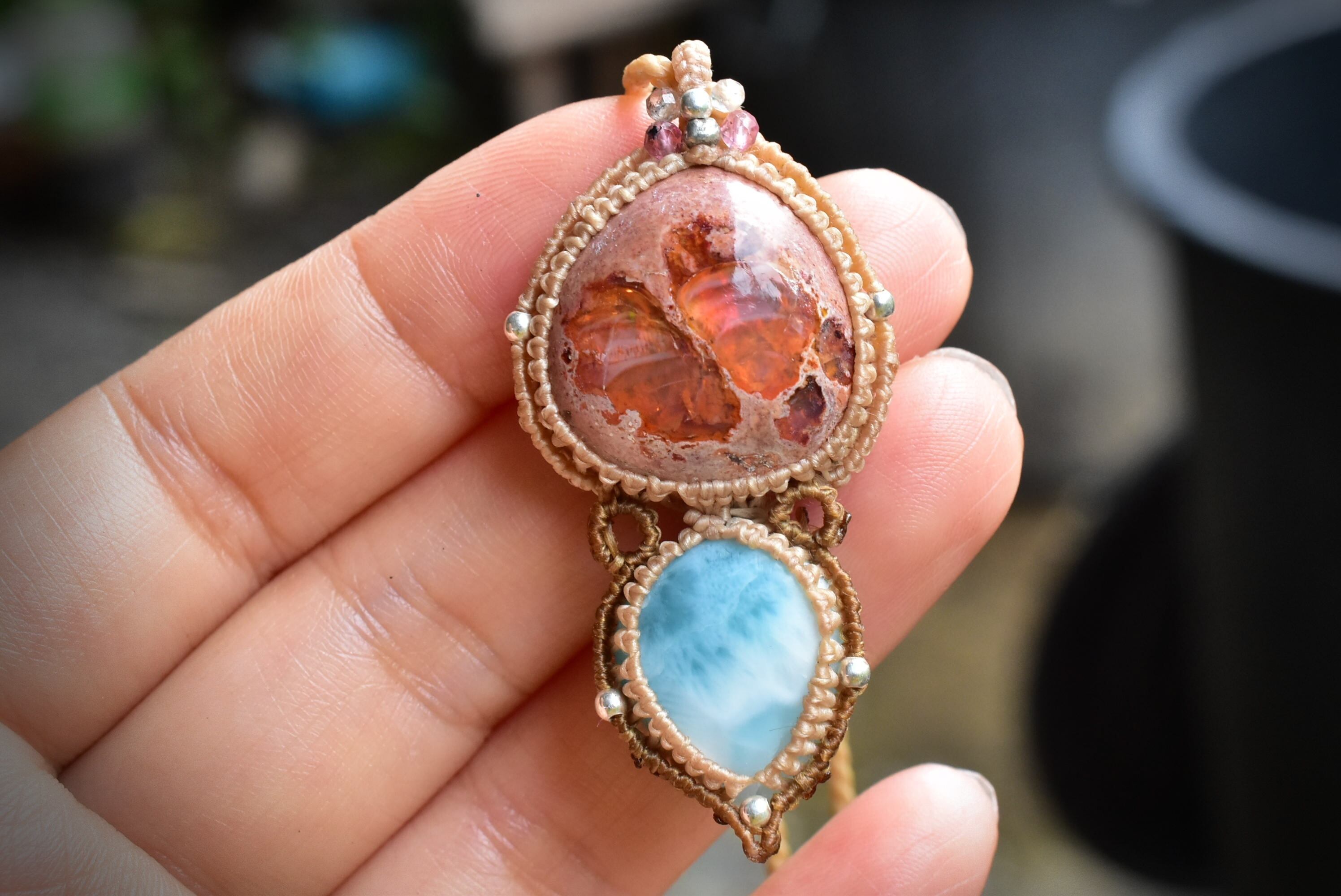 火山と海★カンテラオパール ラリマーマクラメペンダントlari043