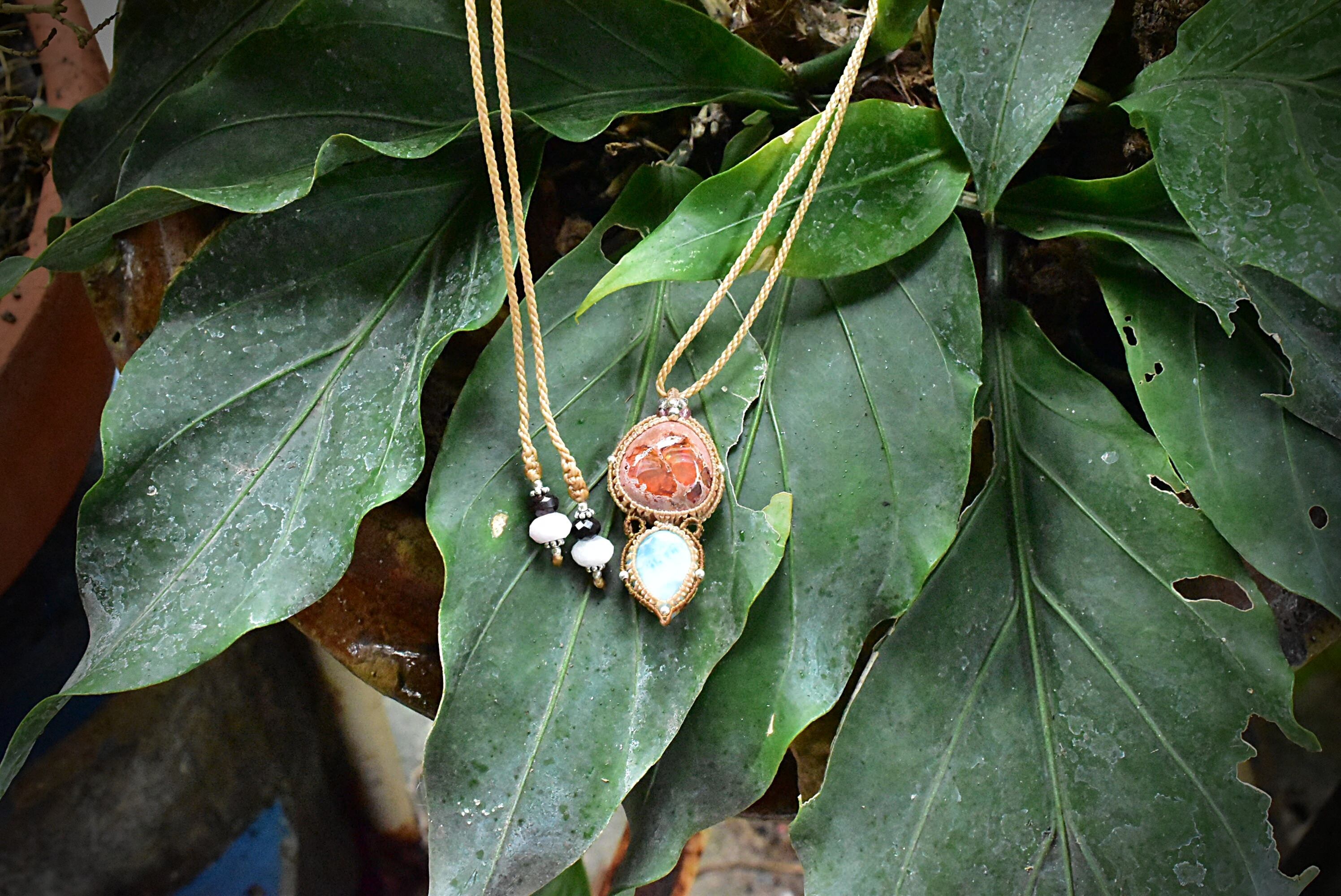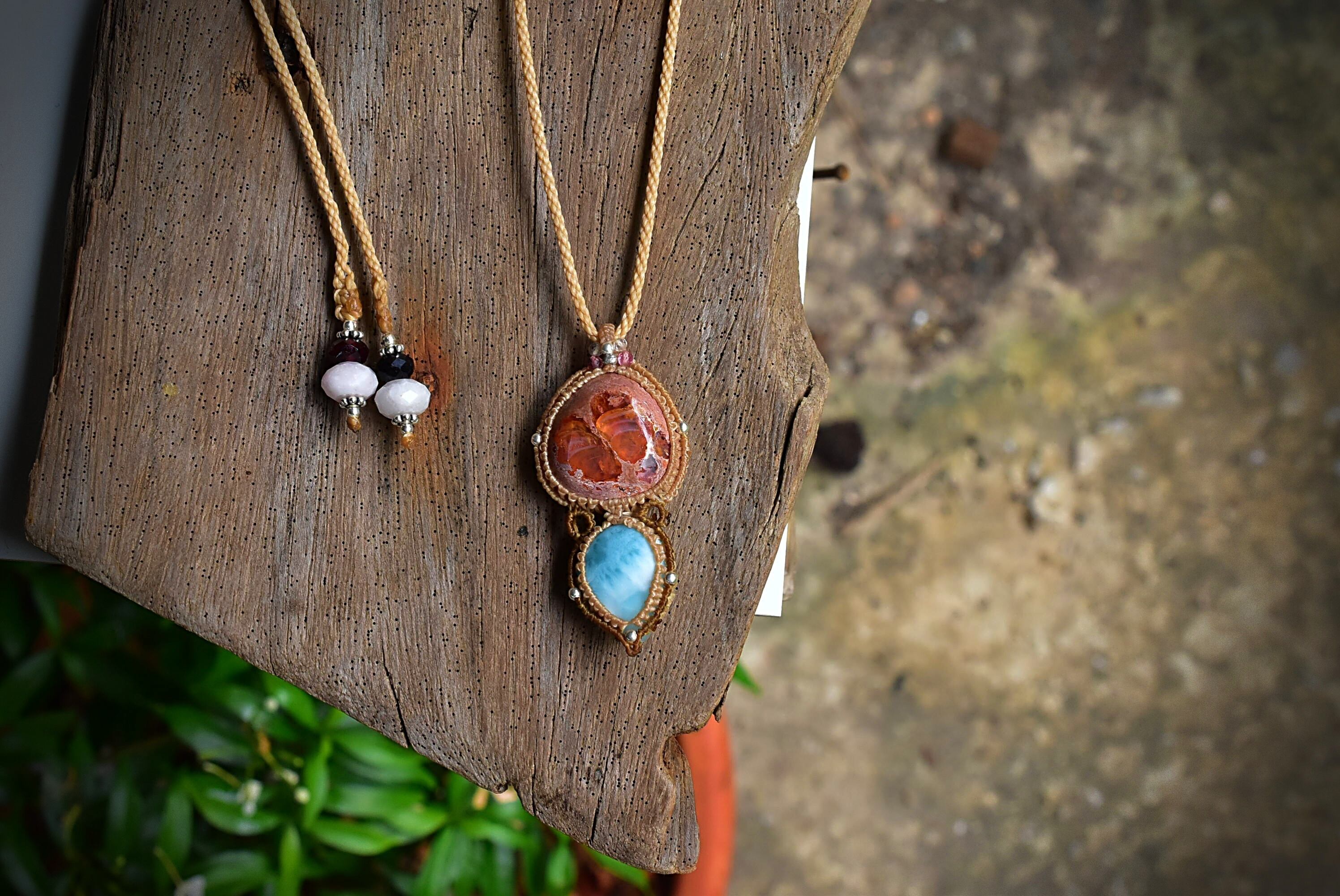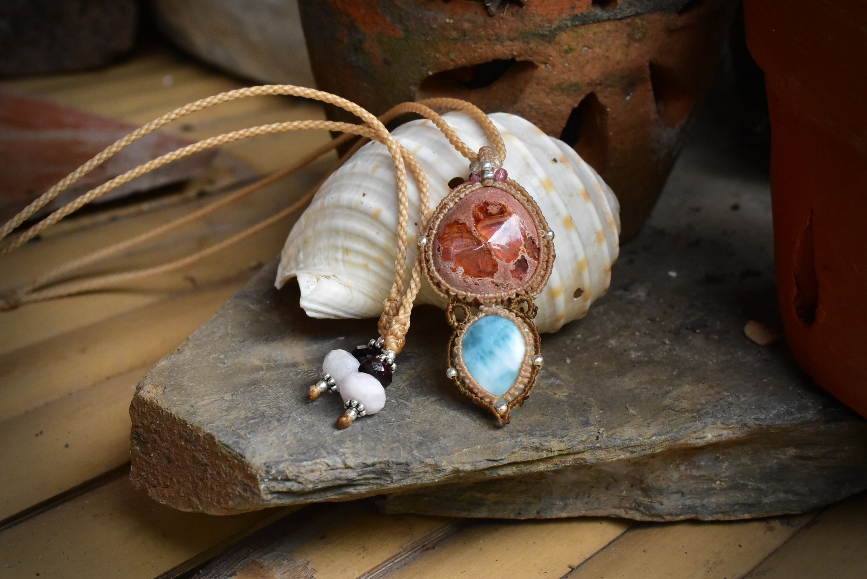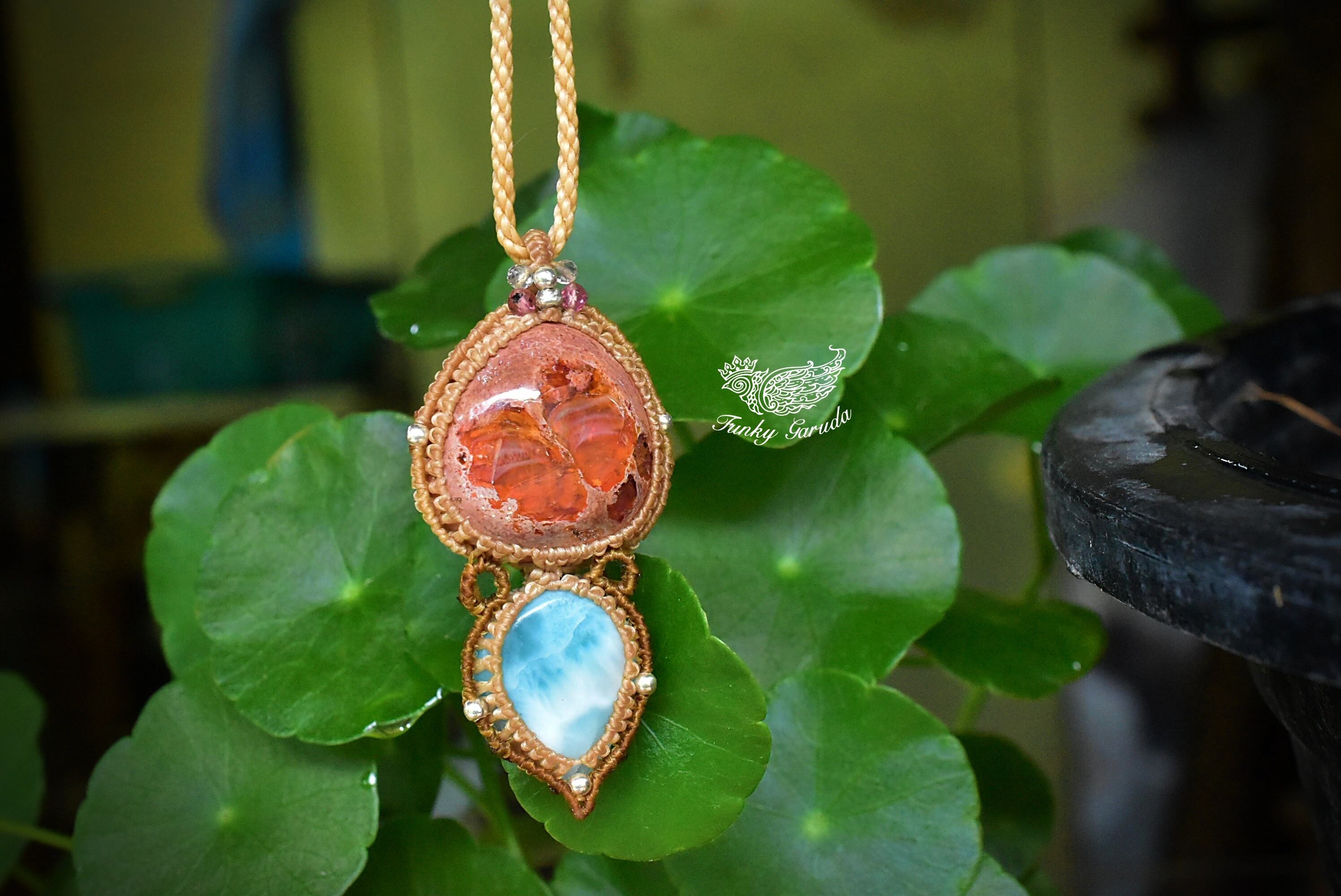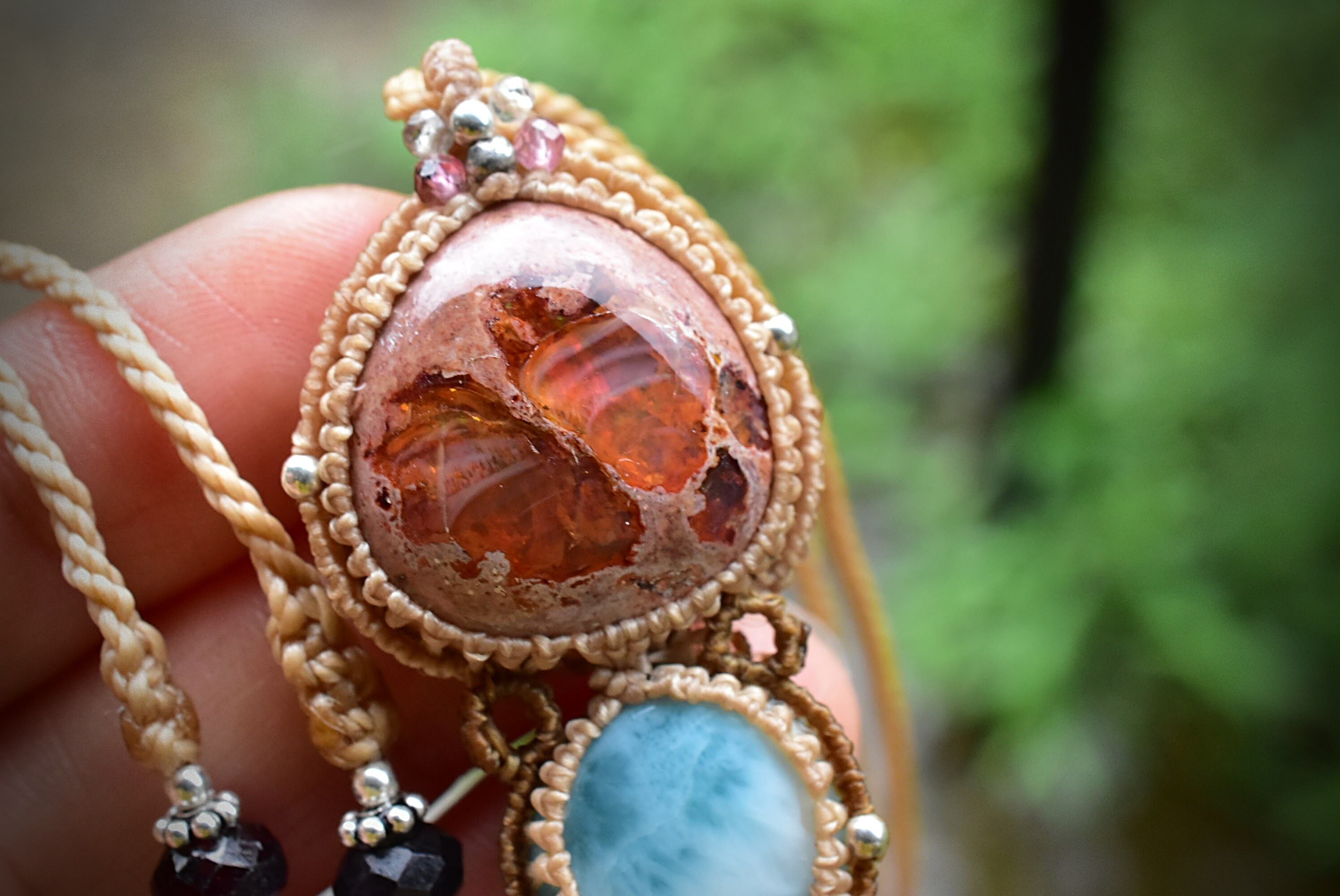 火山と海★カンテラオパール ラリマーマクラメペンダントlari043