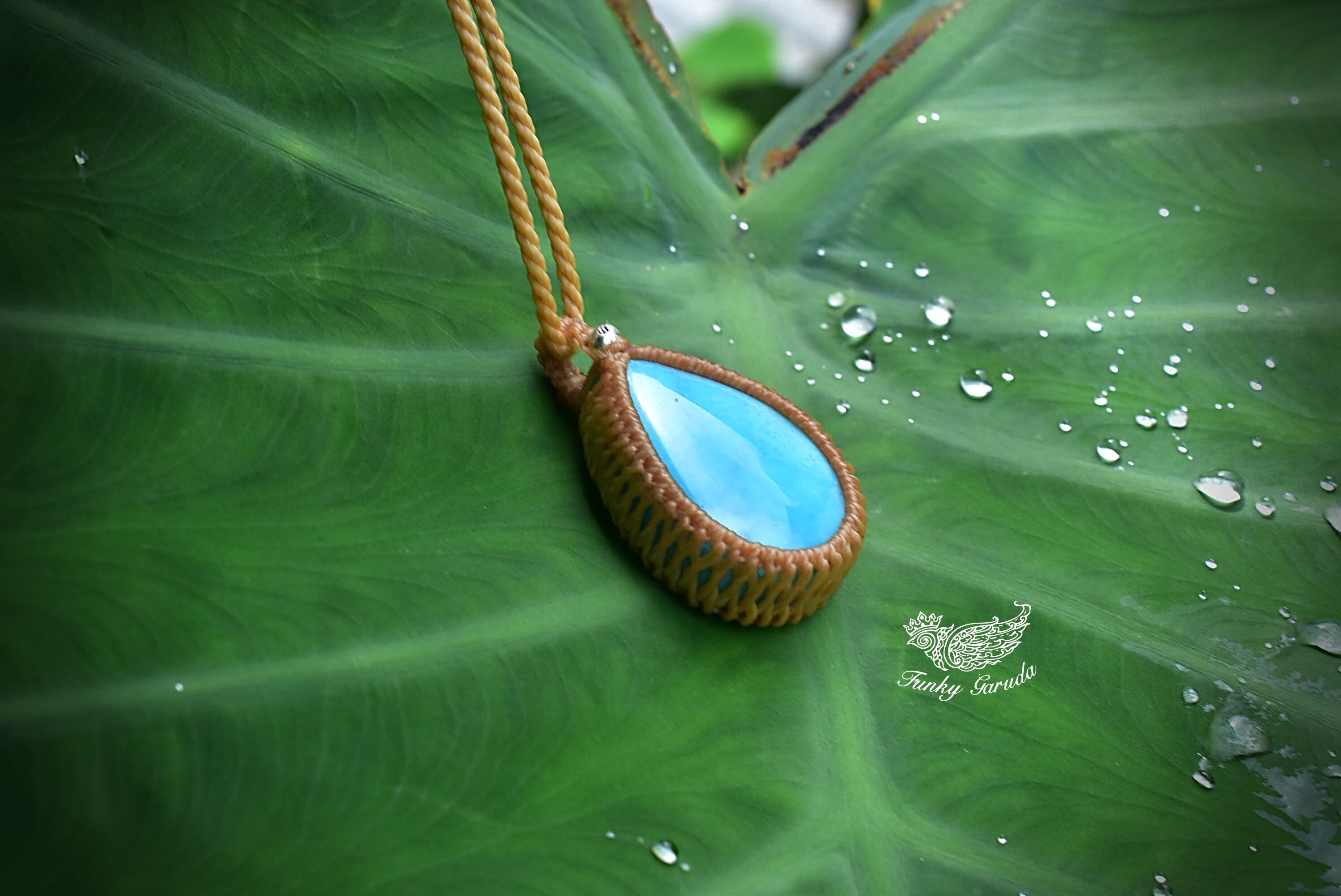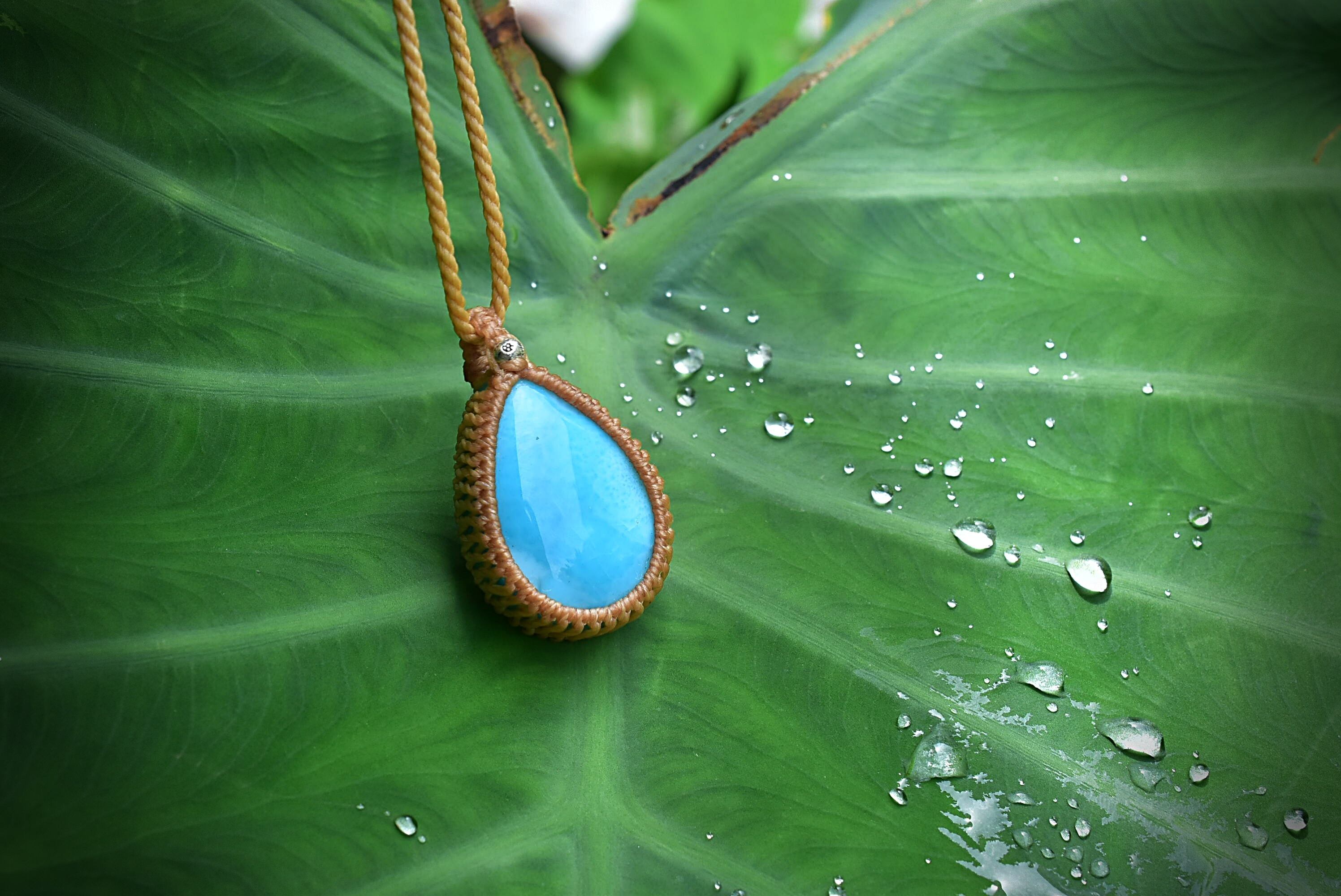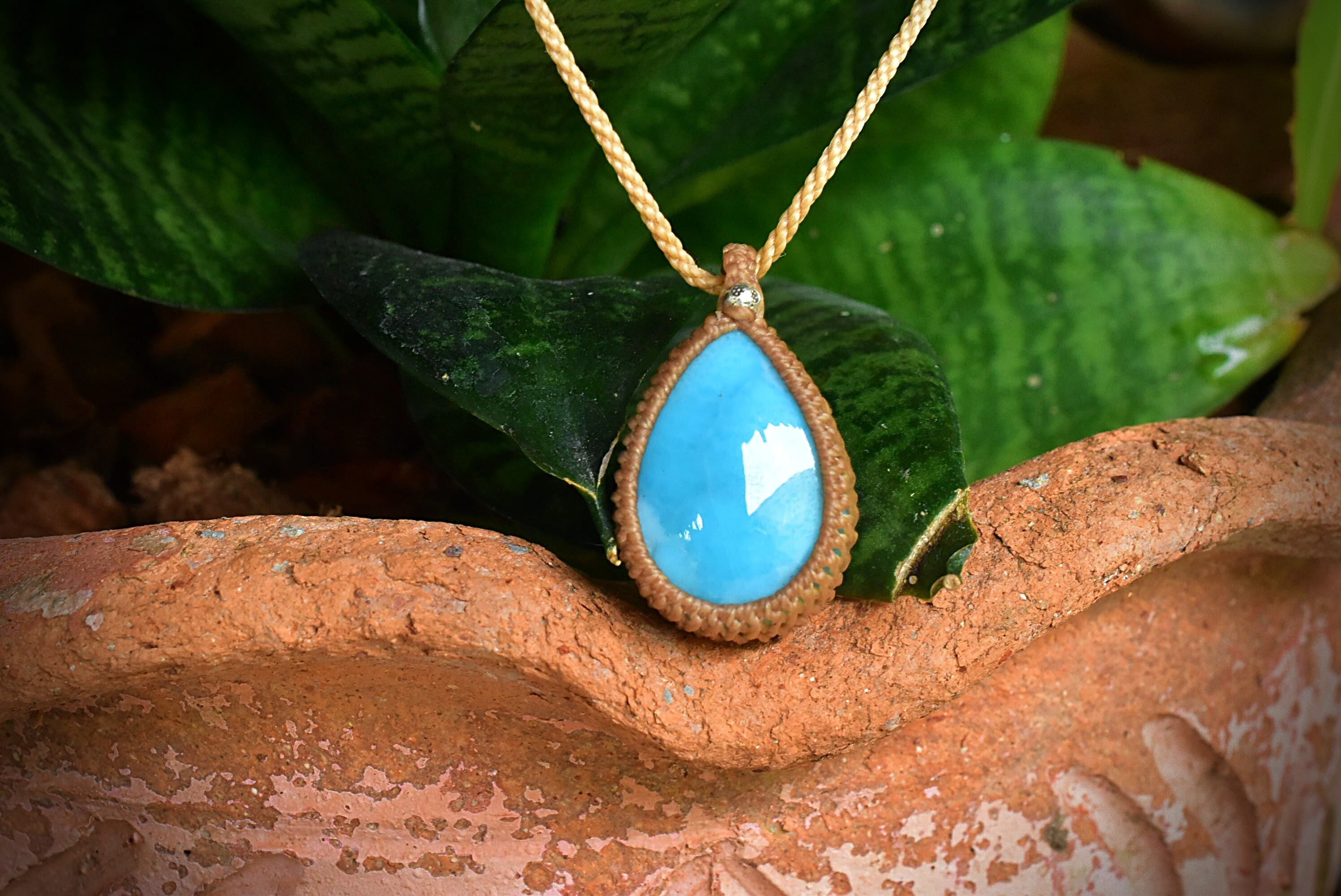 鮮やかブルー★43ct★ラリマー マクラメペンダント lari045