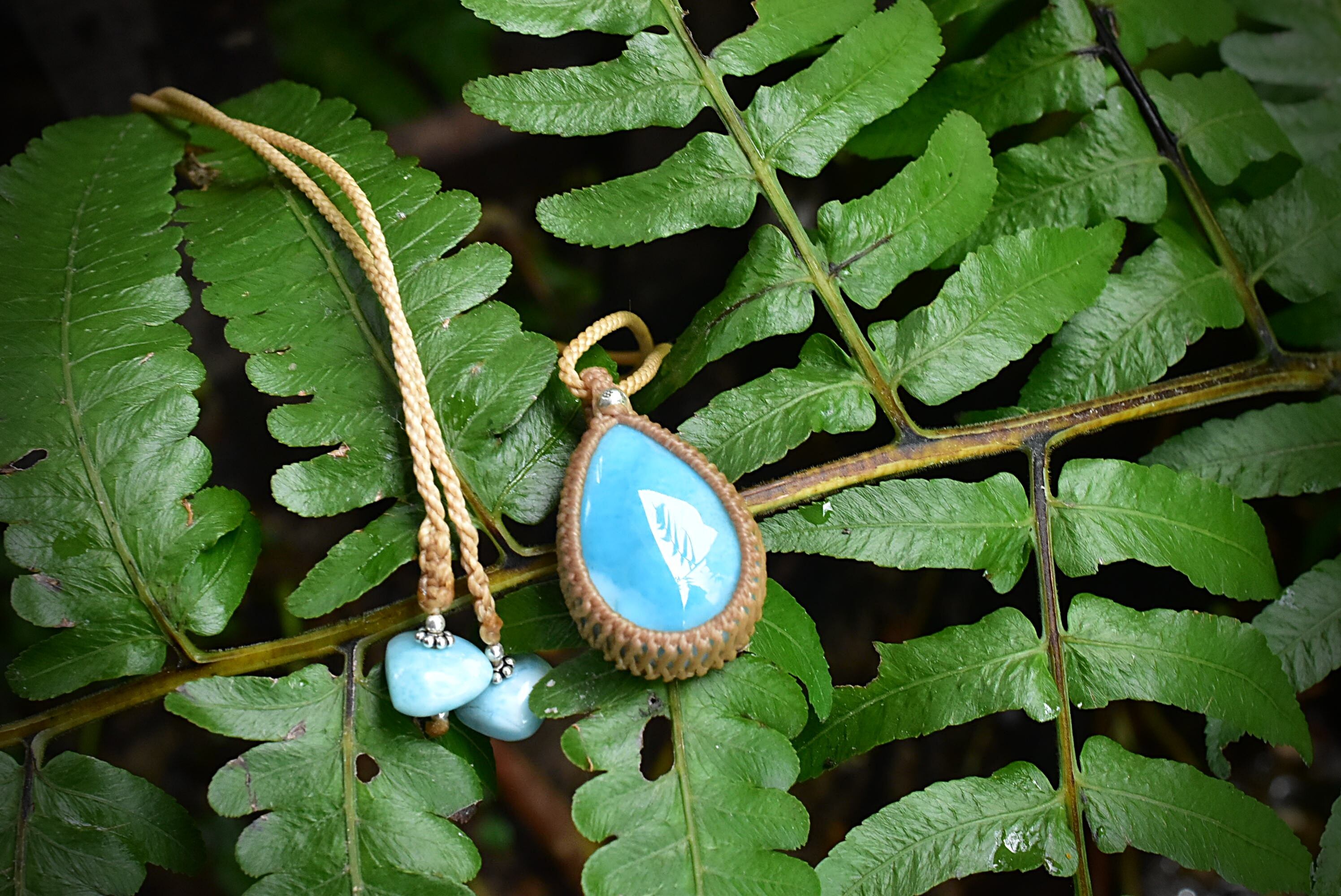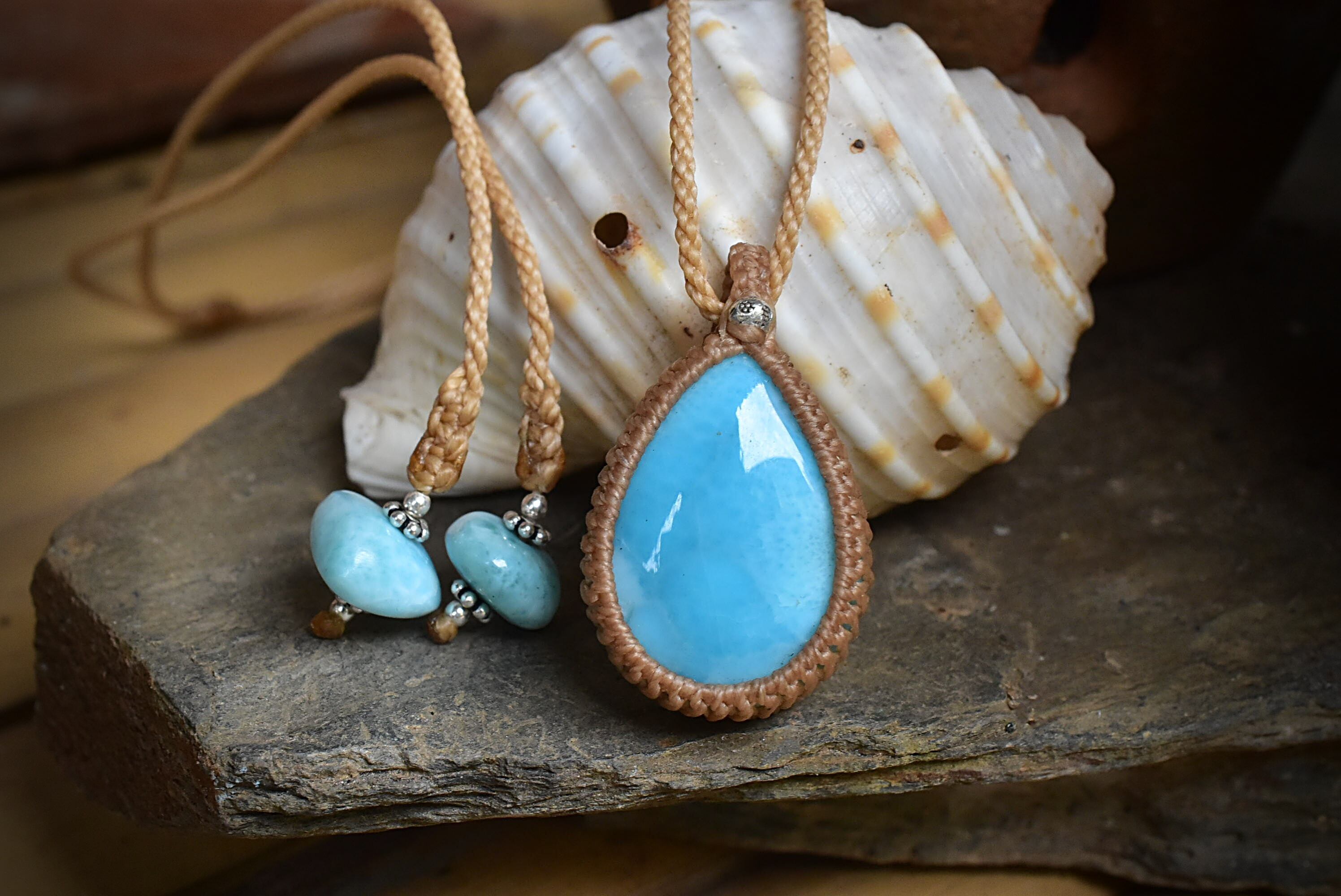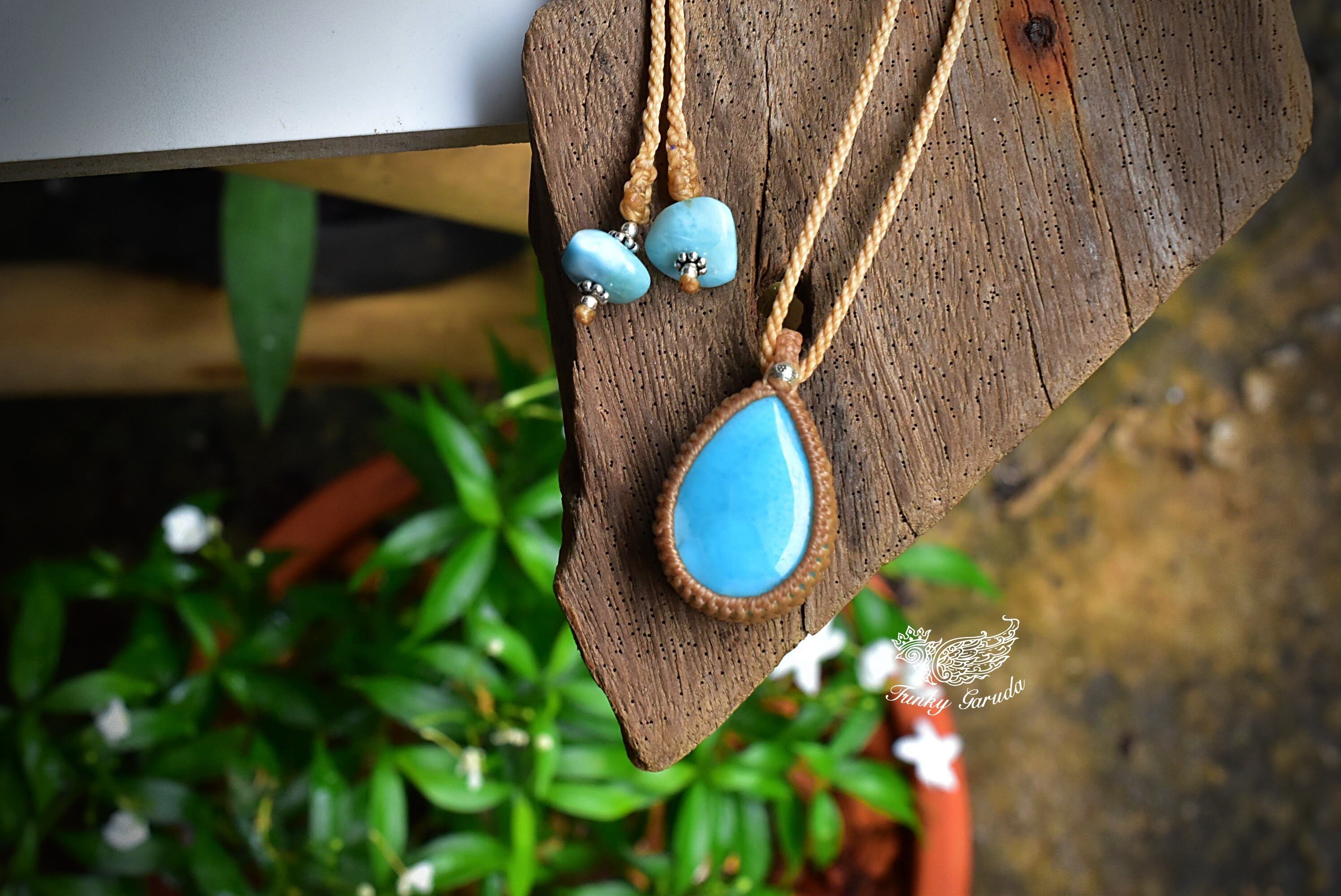 鮮やかブルー★43ct★ラリマー マクラメペンダント lari045