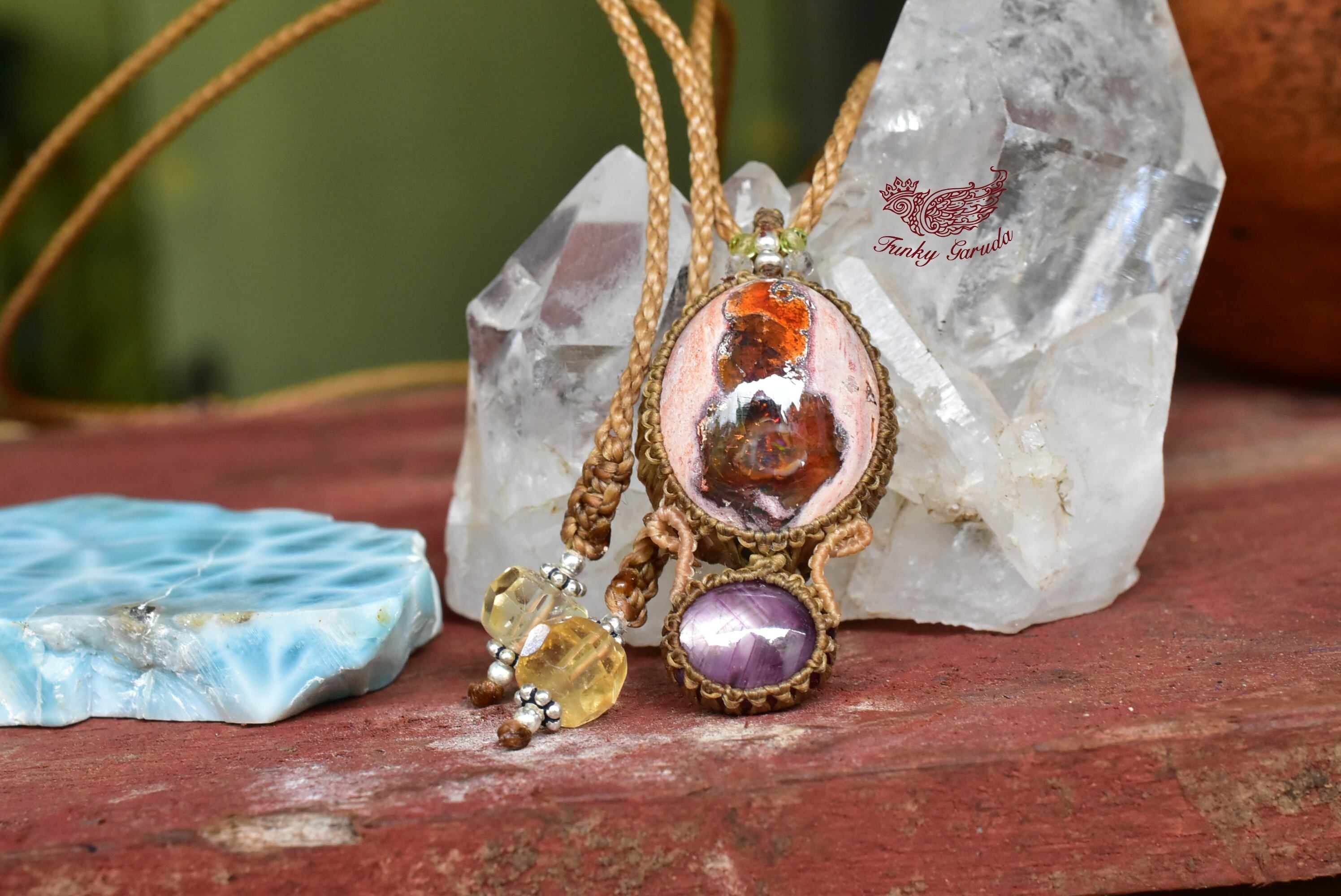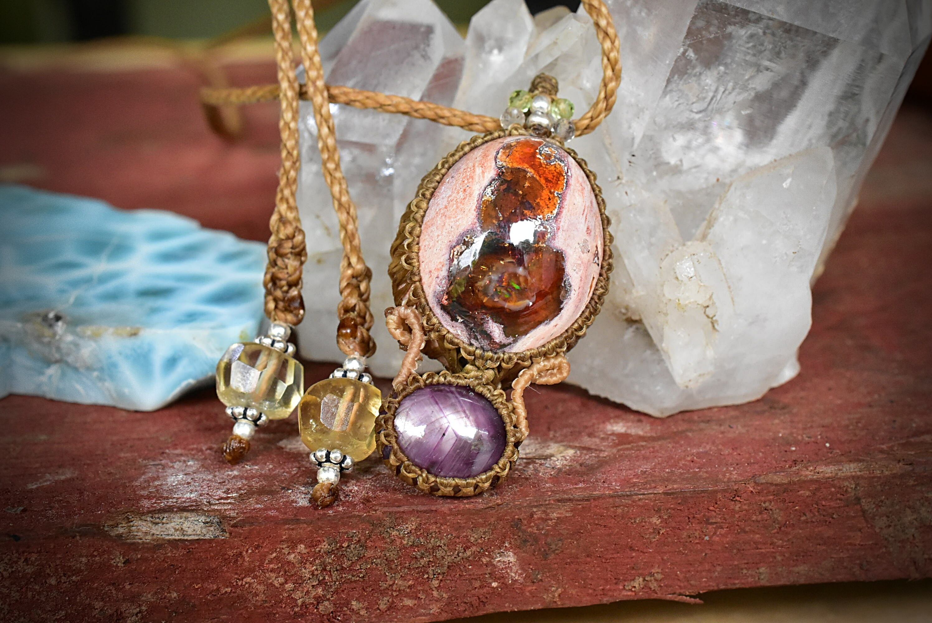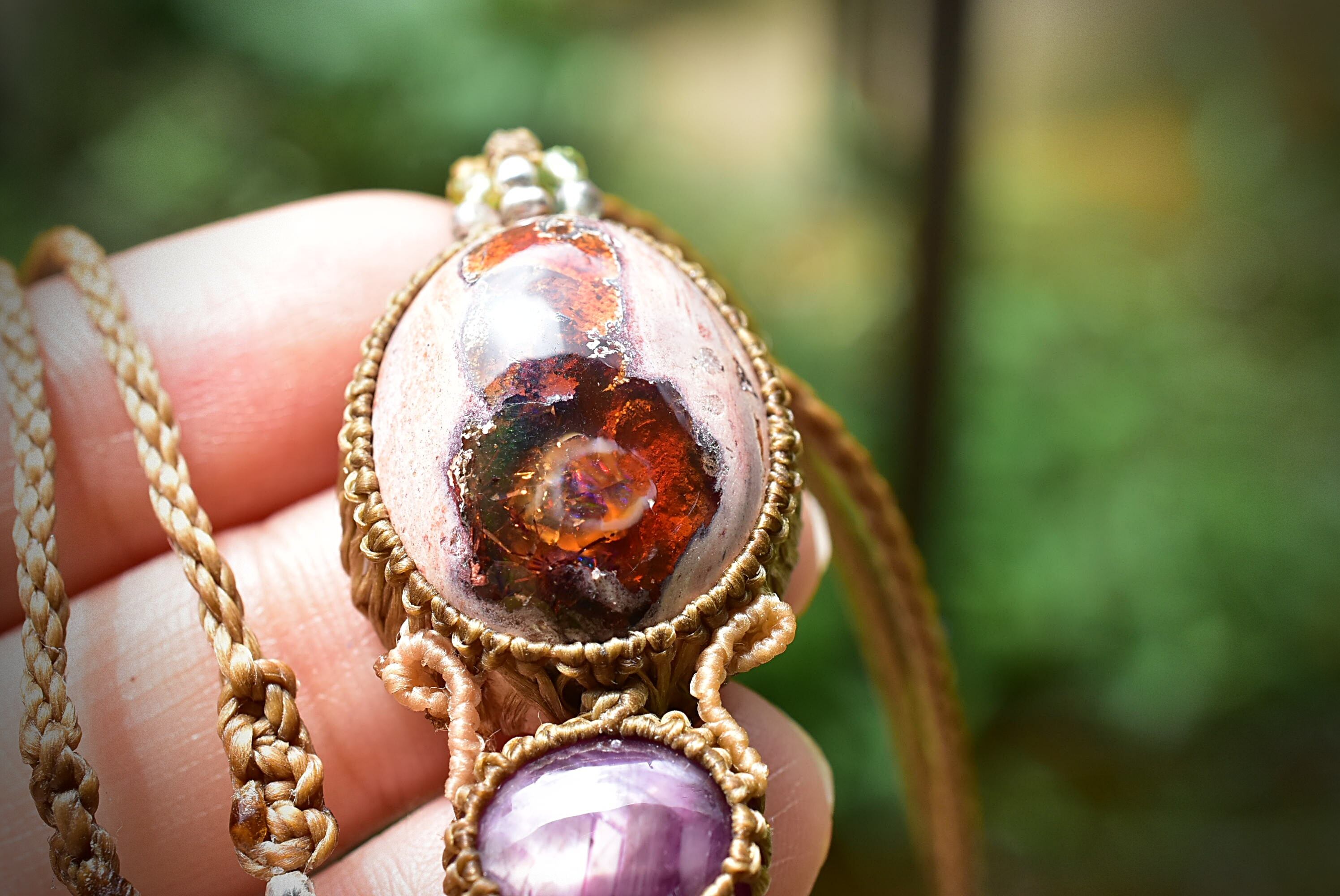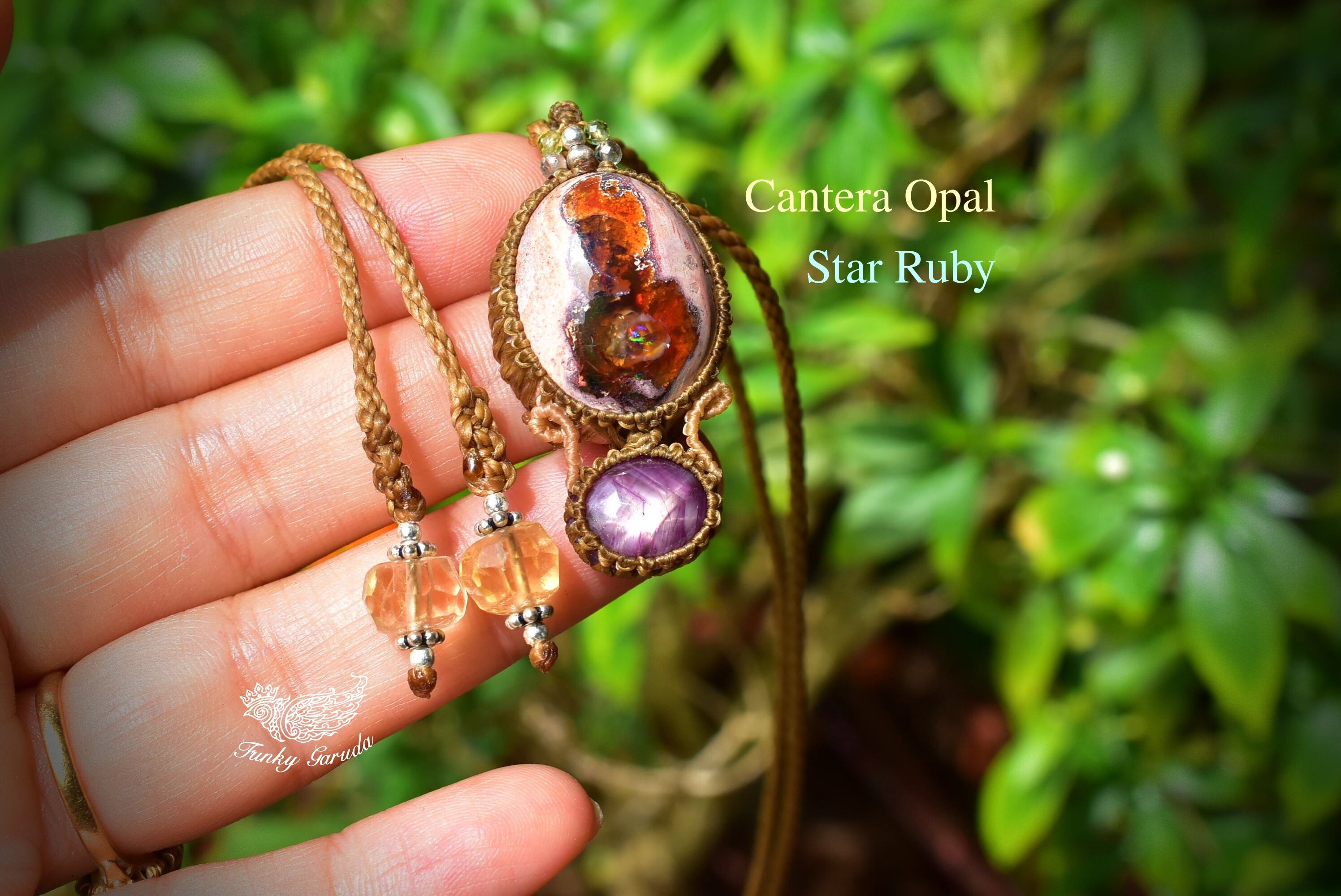 二重のスター★カンテラオパールとスタールビー マクラメペンダントopal016