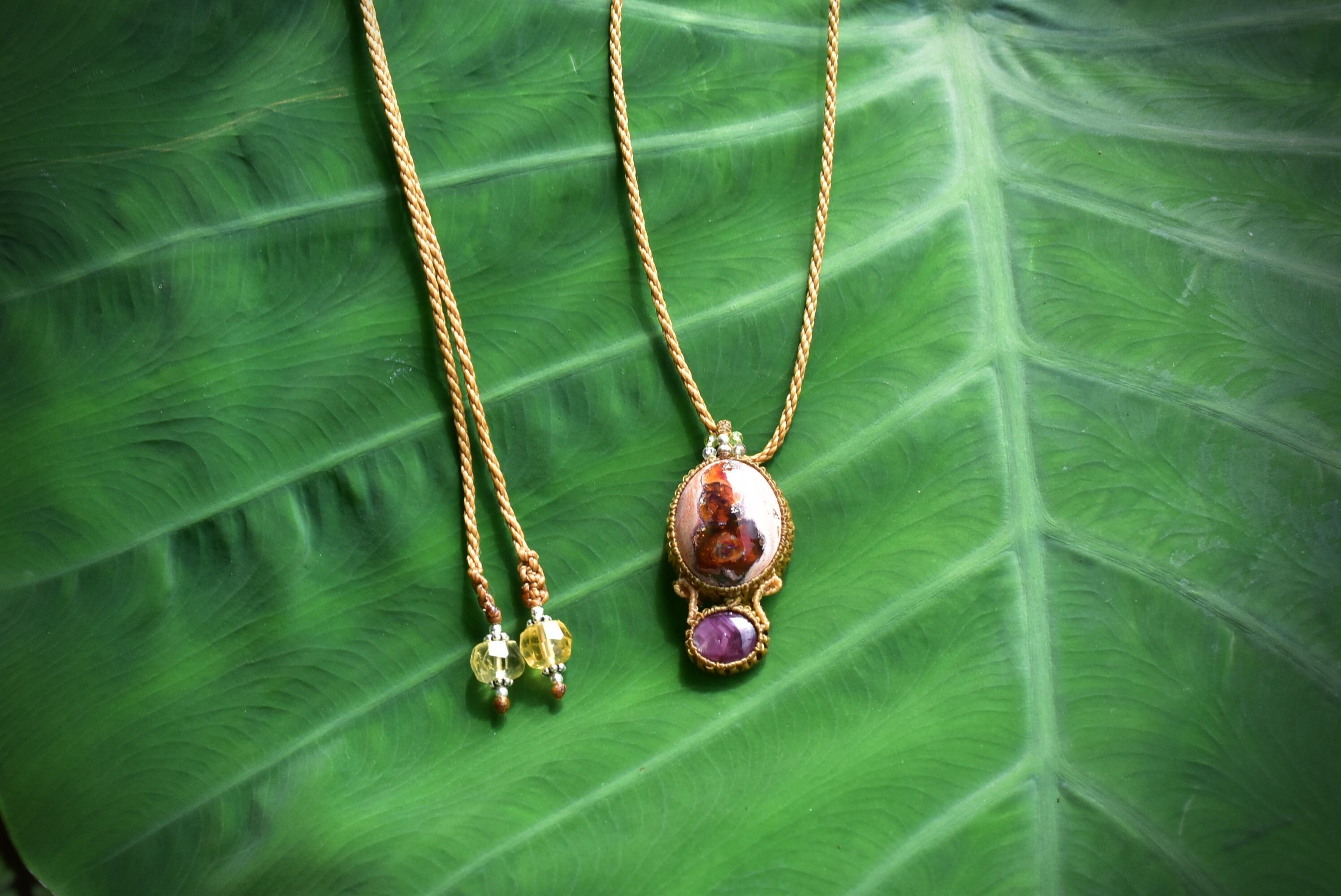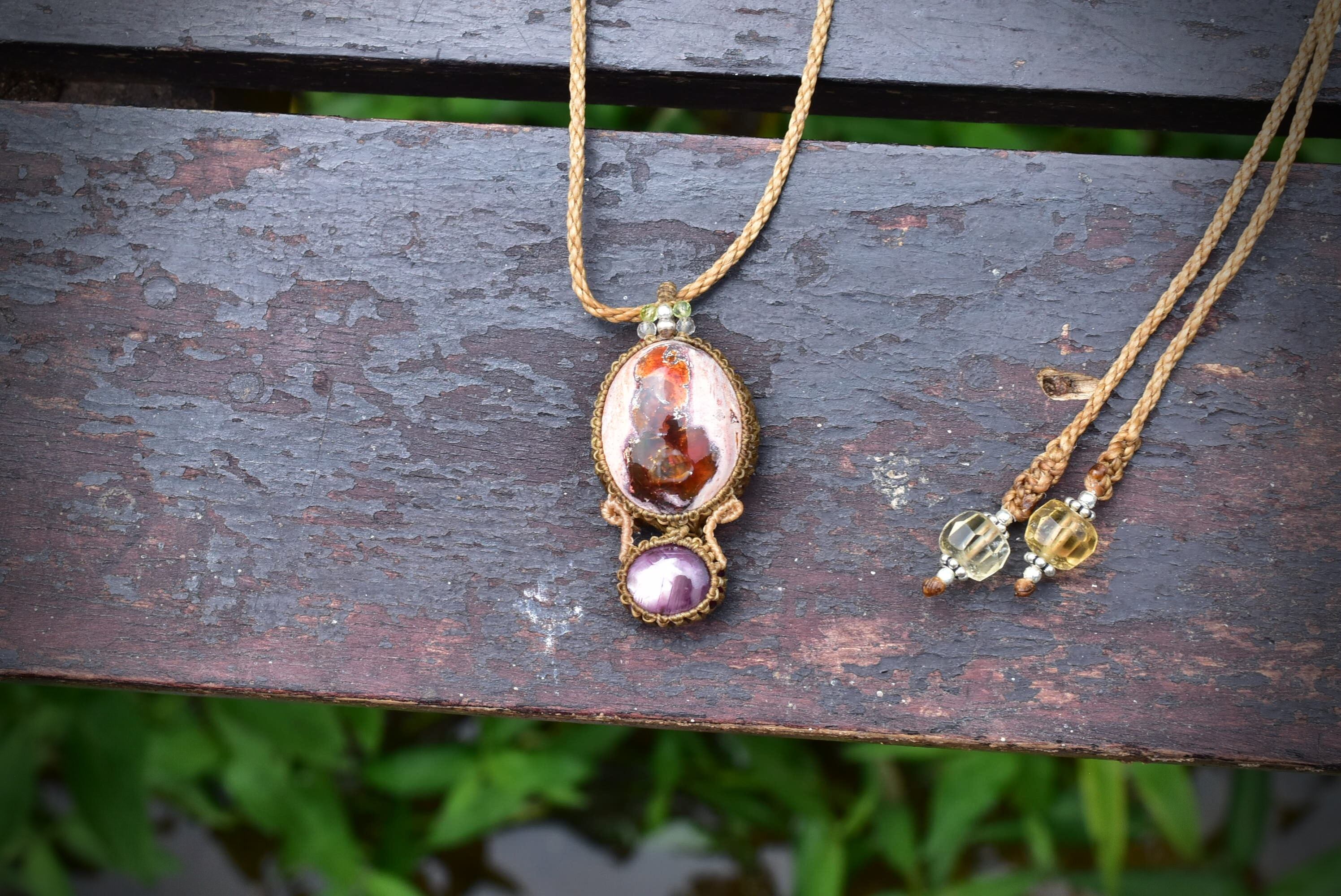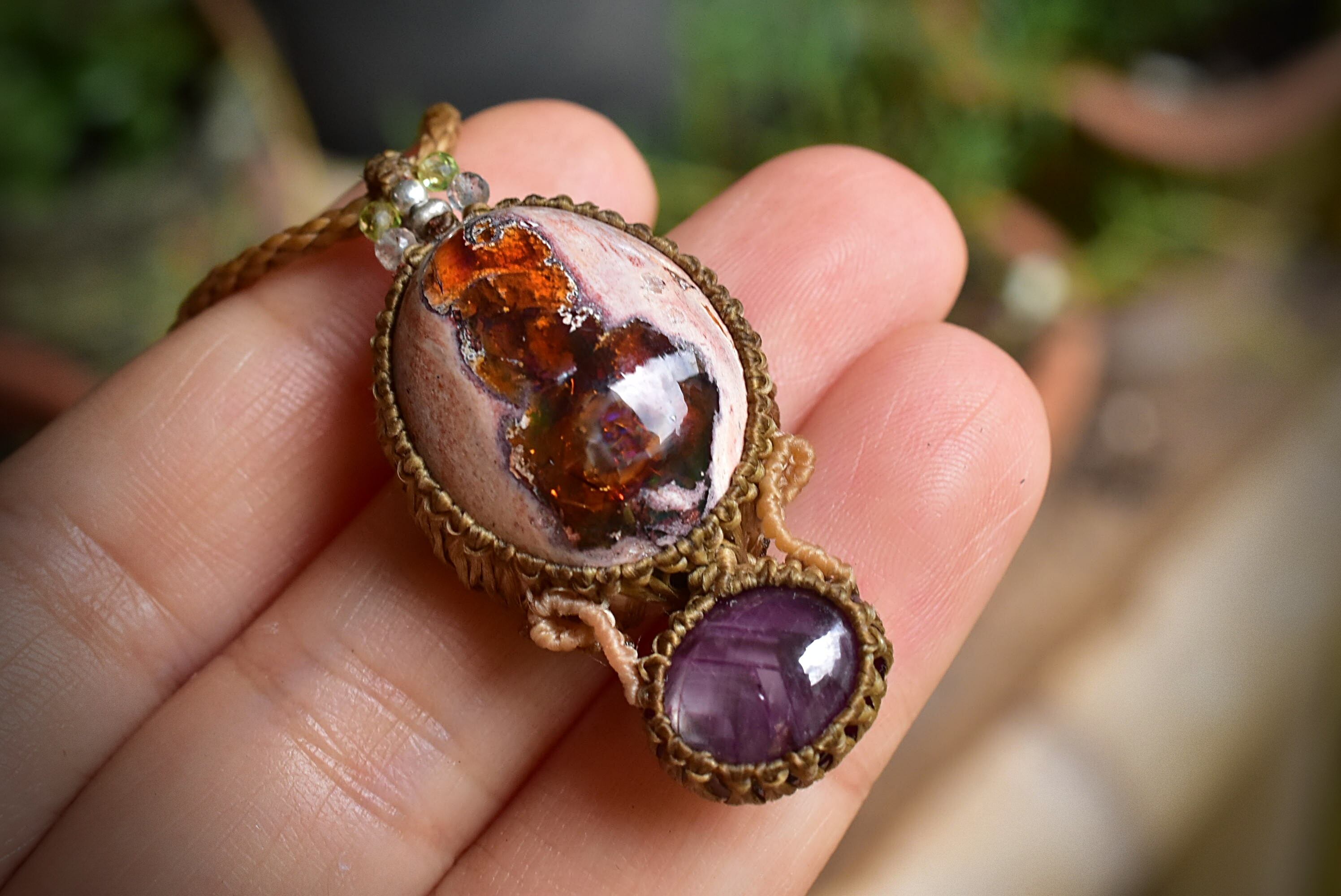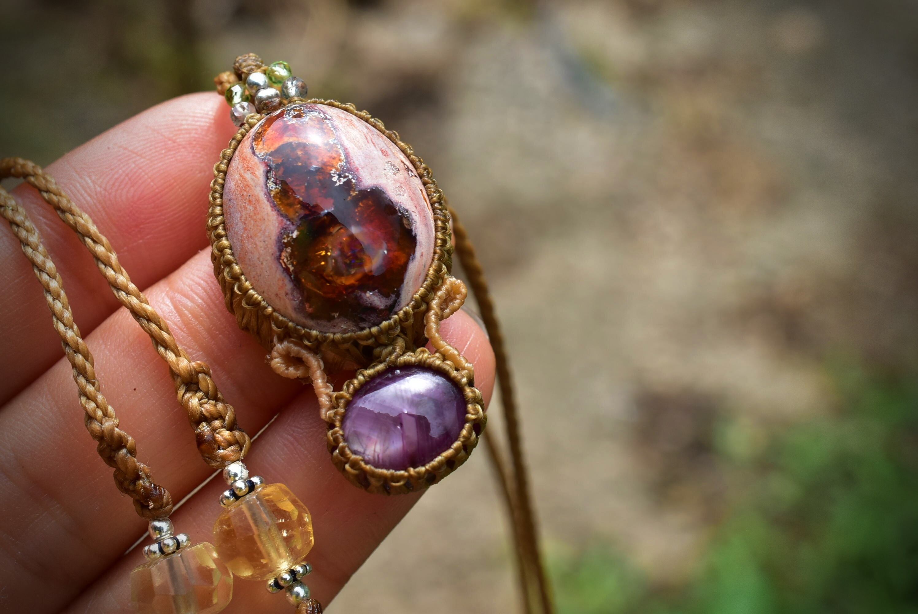 二重のスター★カンテラオパールとスタールビー マクラメペンダントopal016