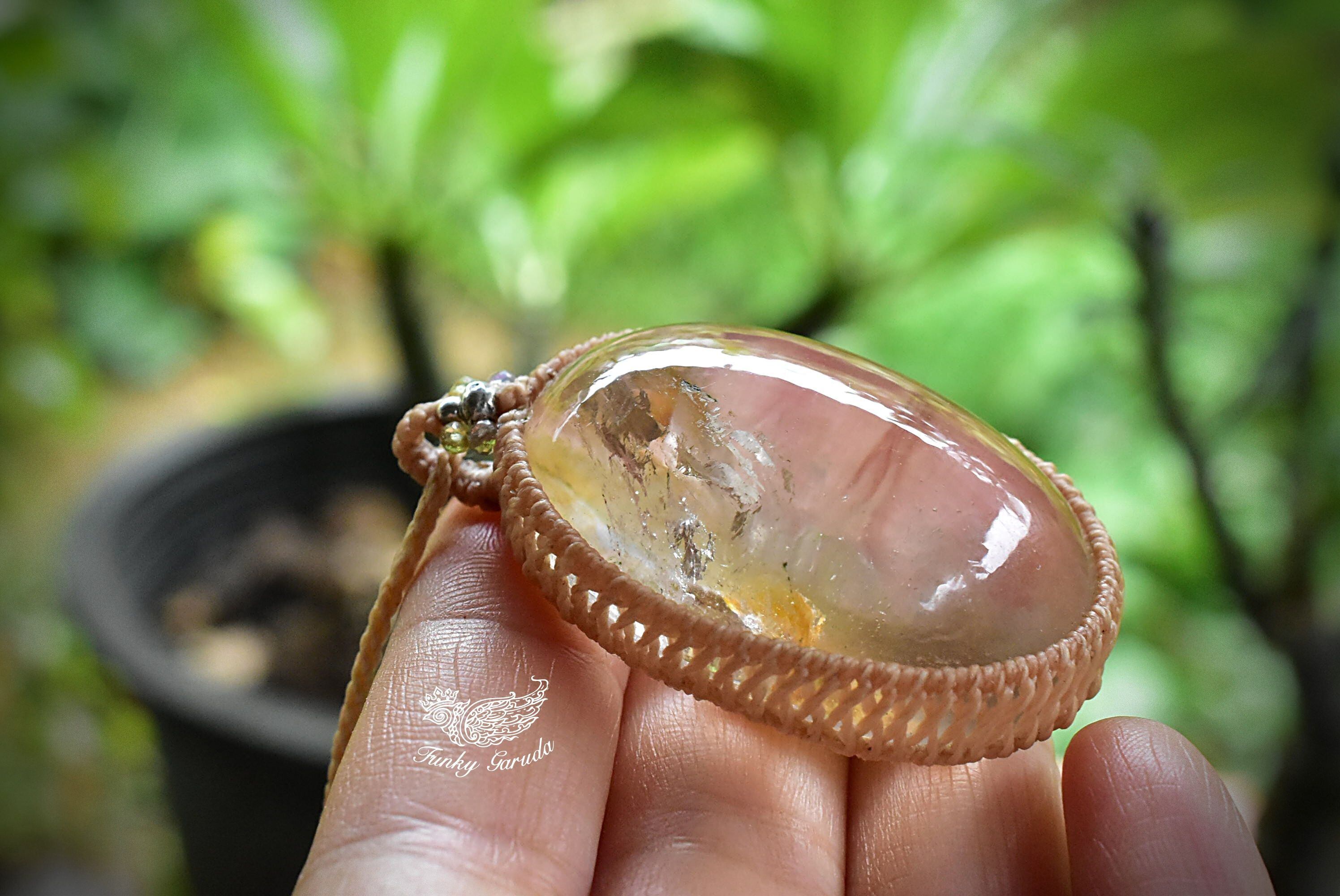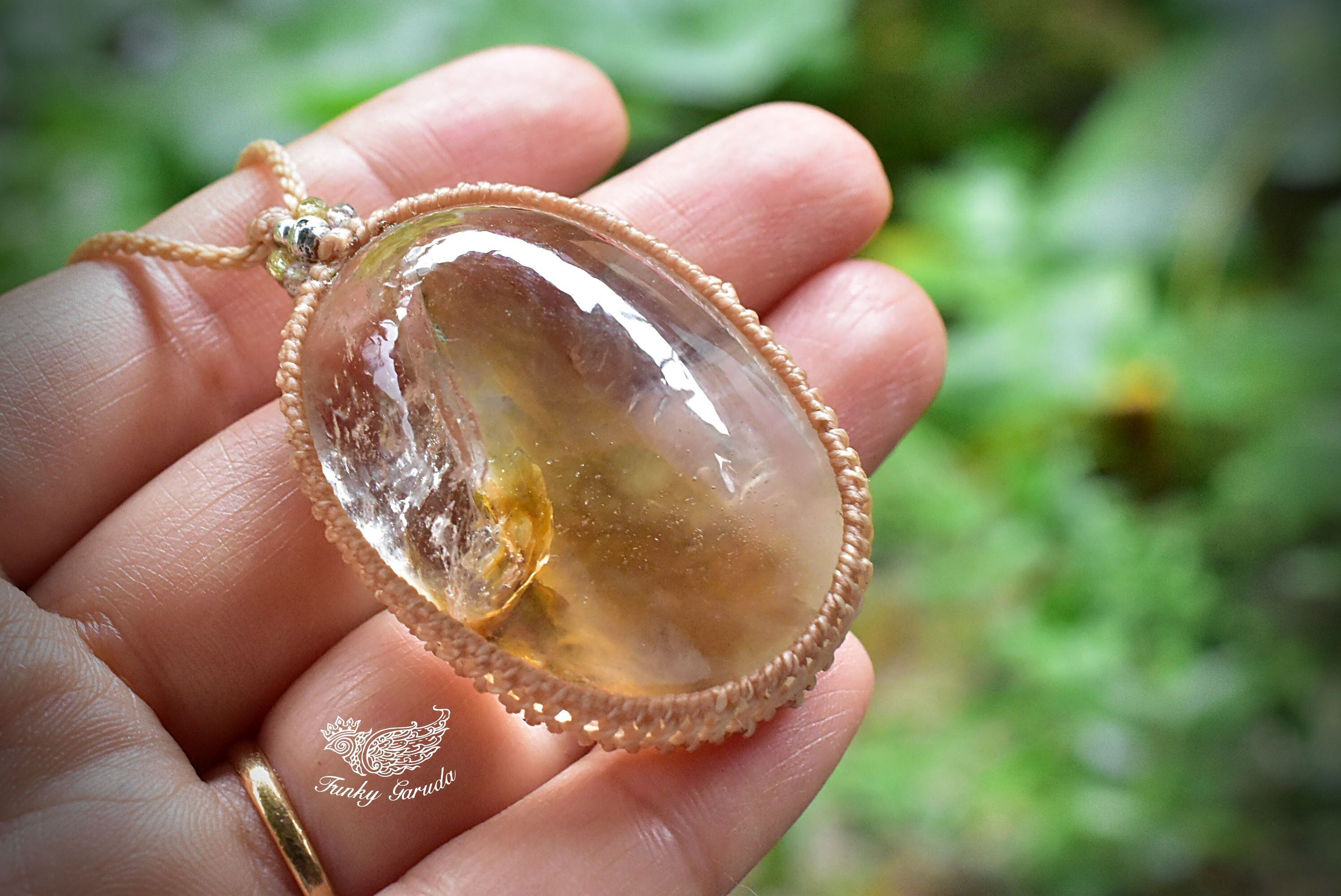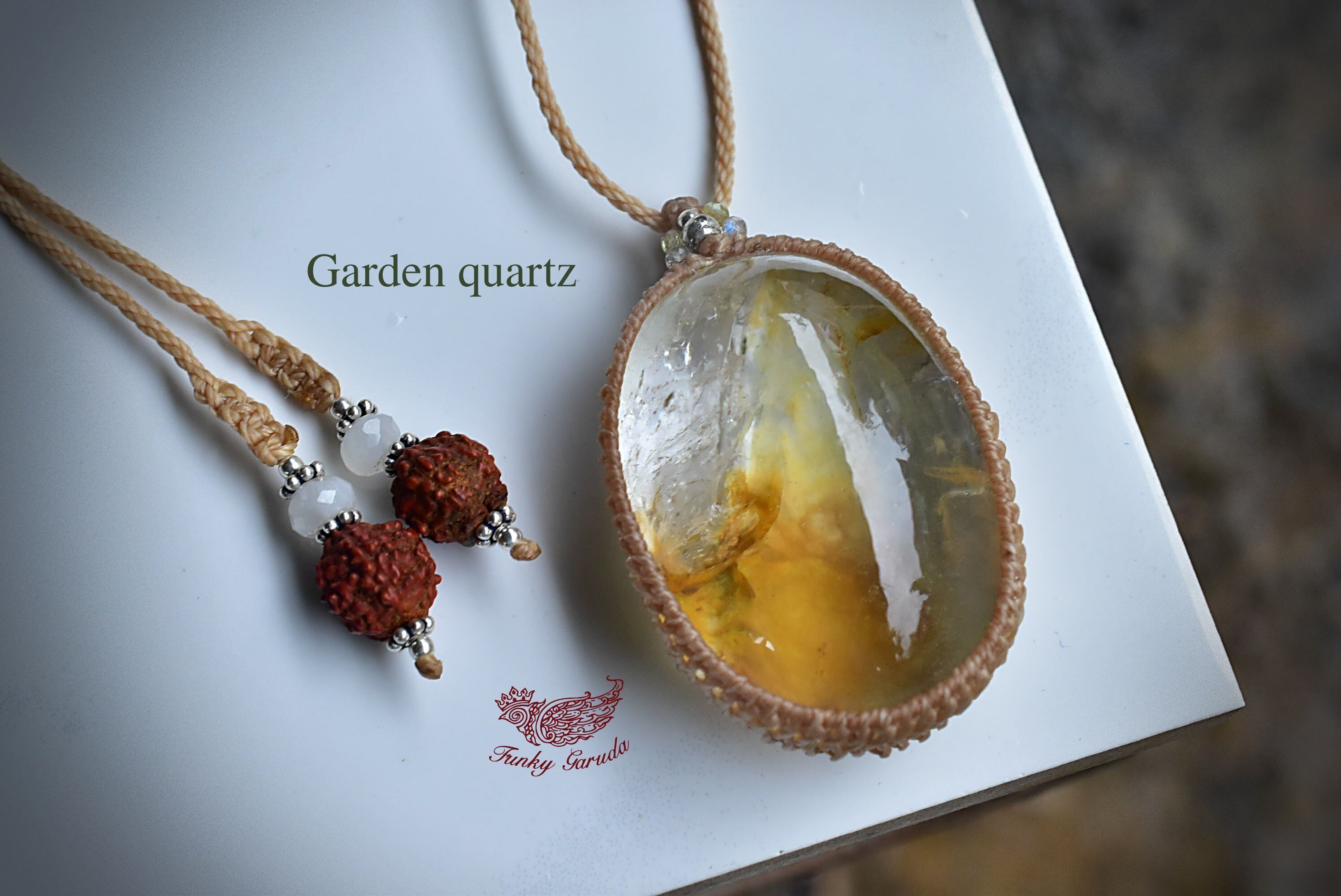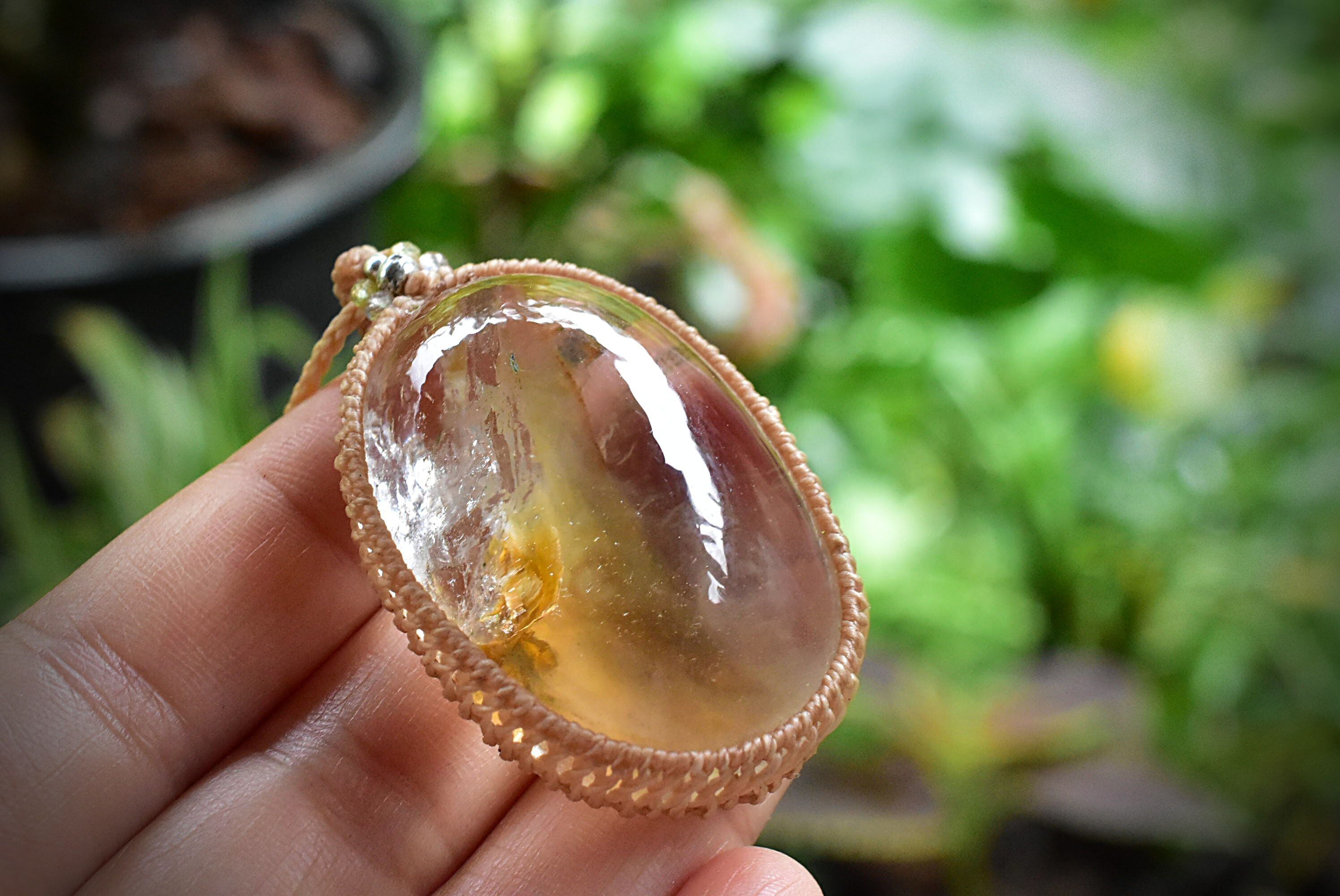 大粒★立ち昇る黄金★ガーデンクォーツ マクラメペンダント gy039