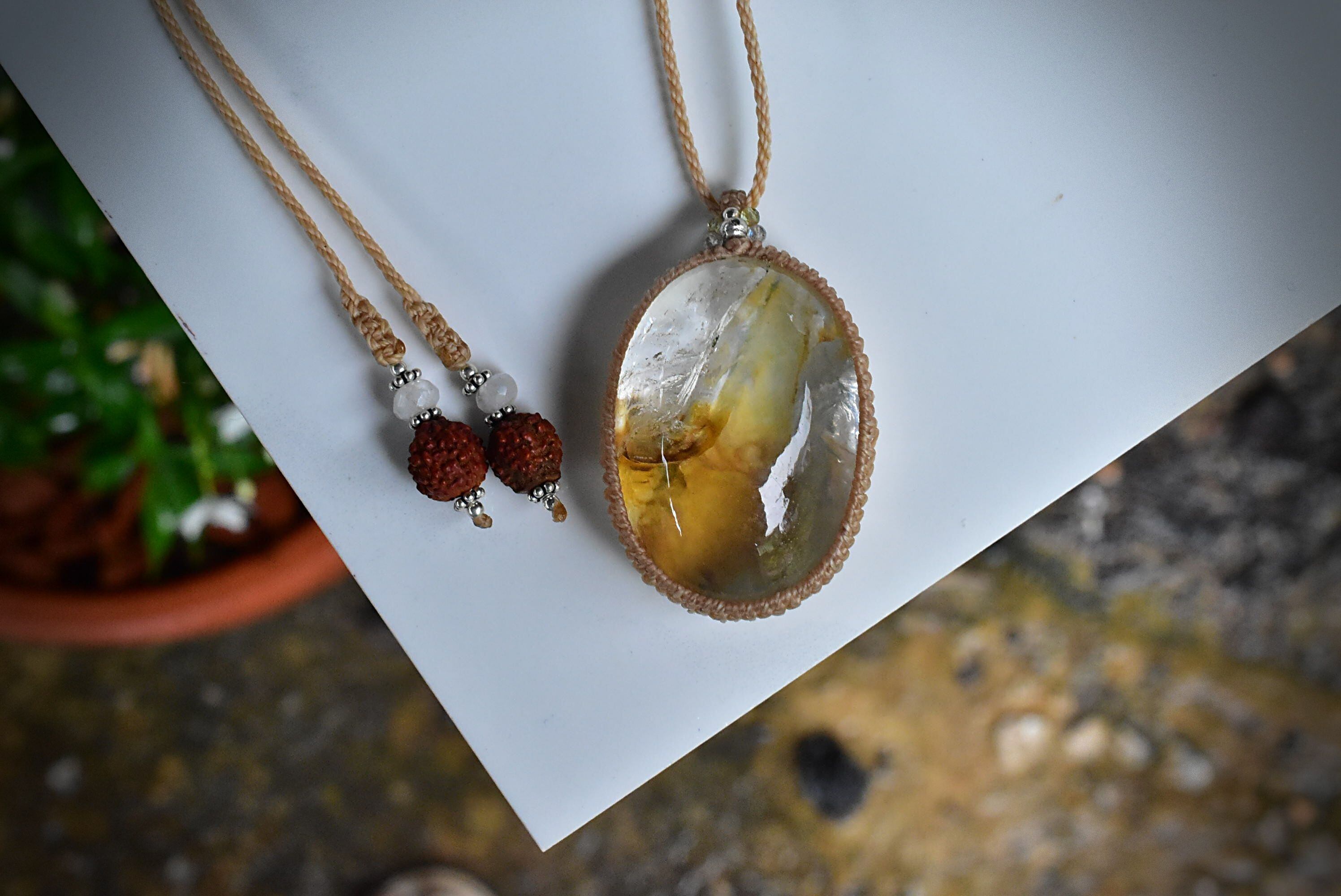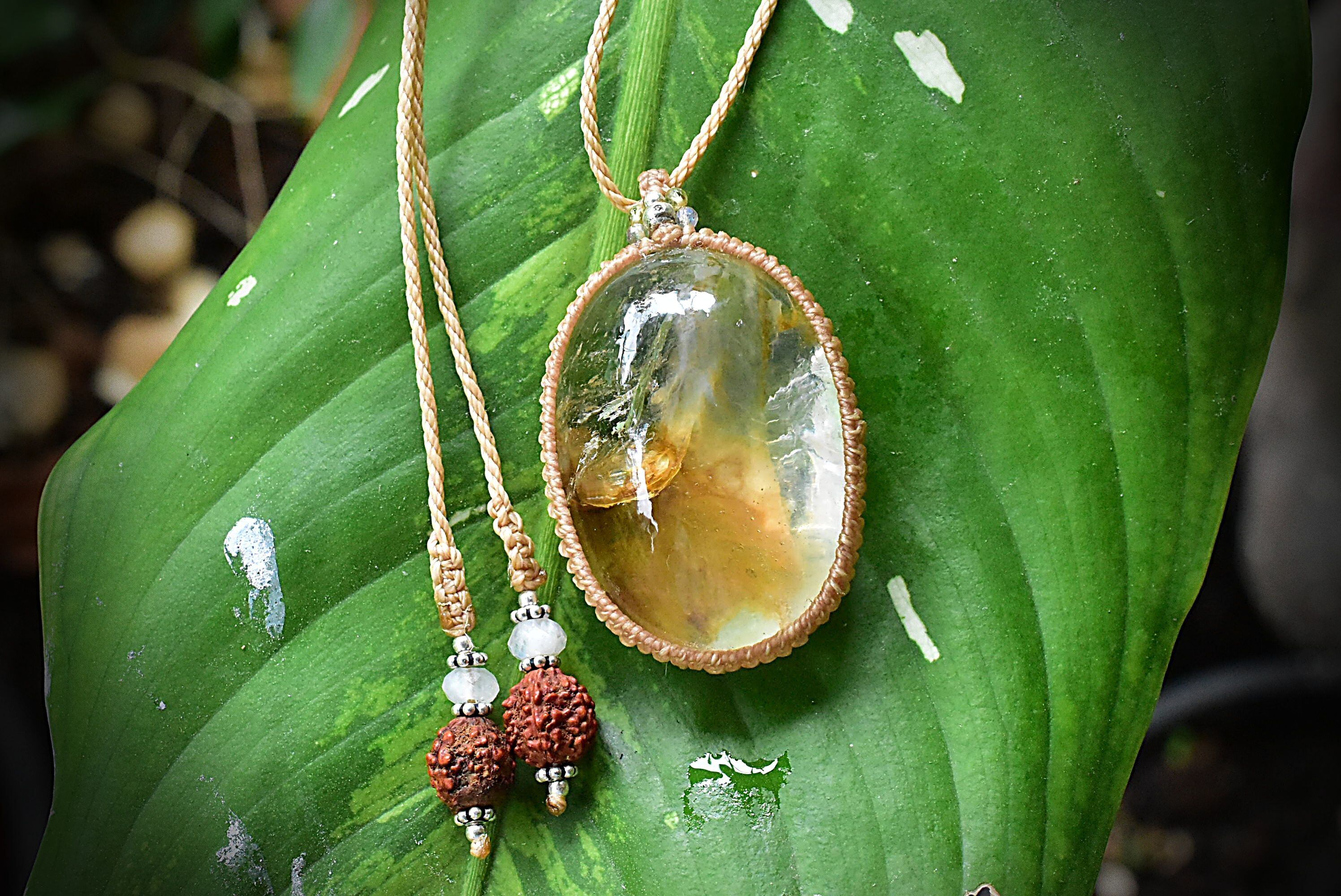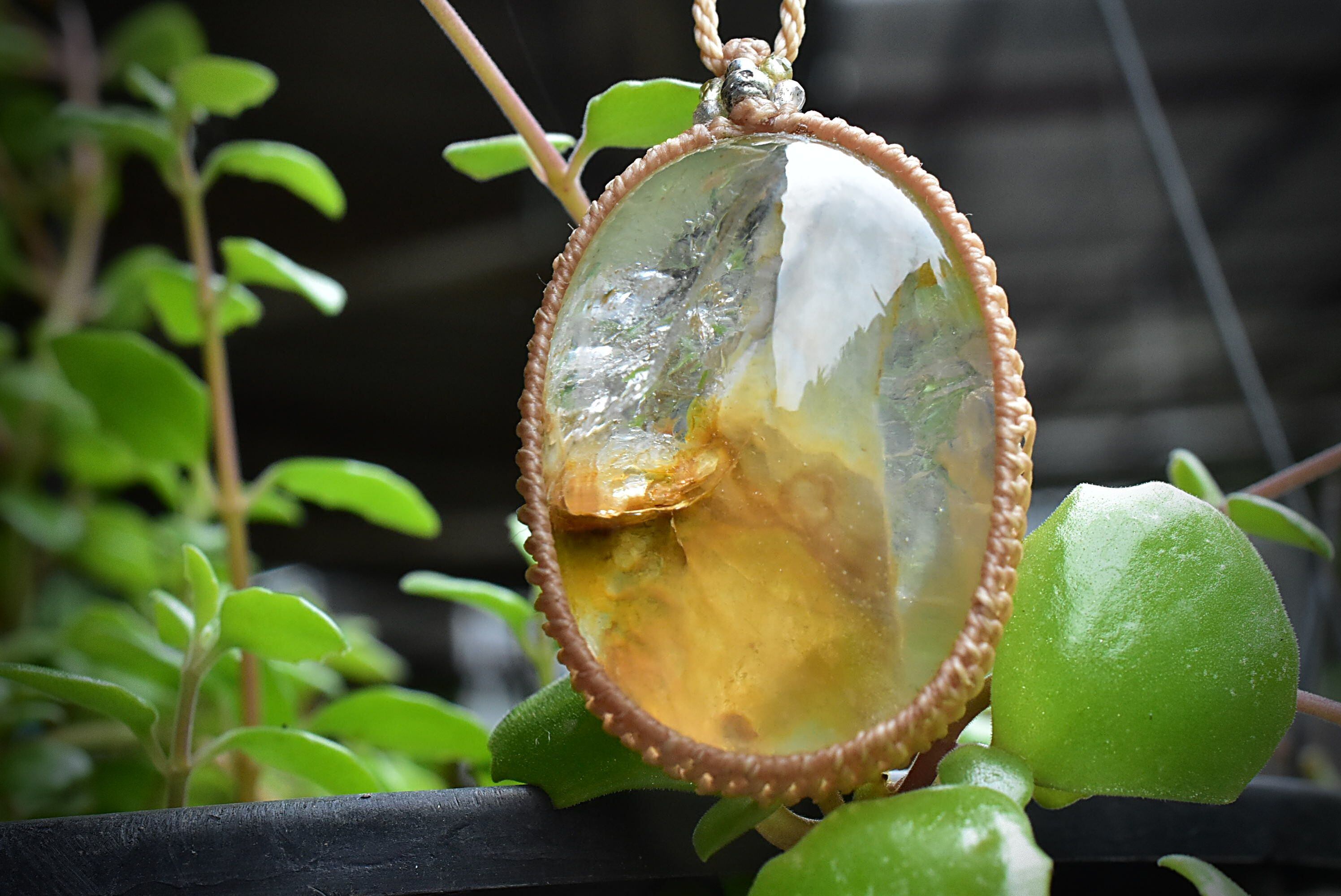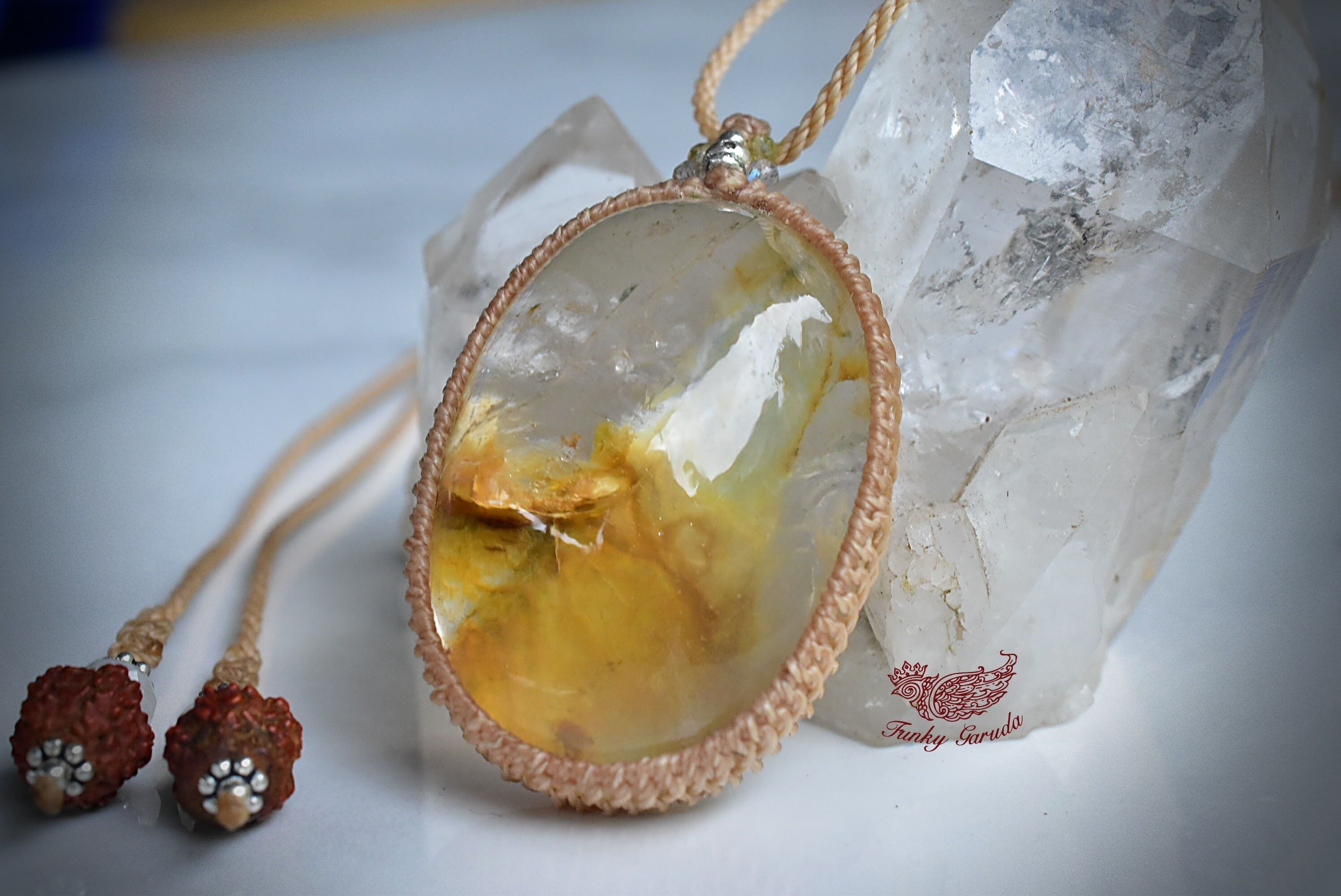 大粒★立ち昇る黄金★ガーデンクォーツ マクラメペンダント gy039