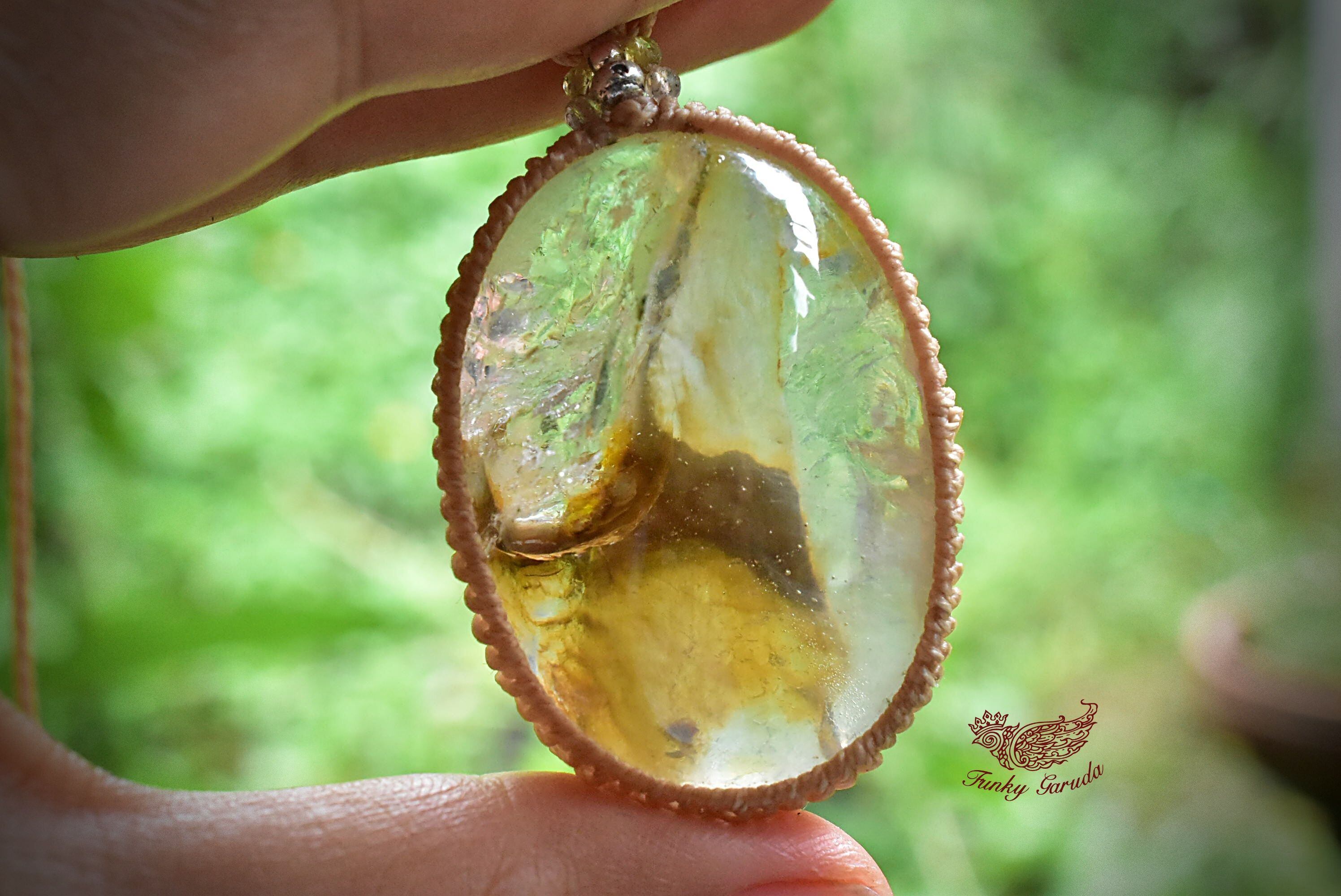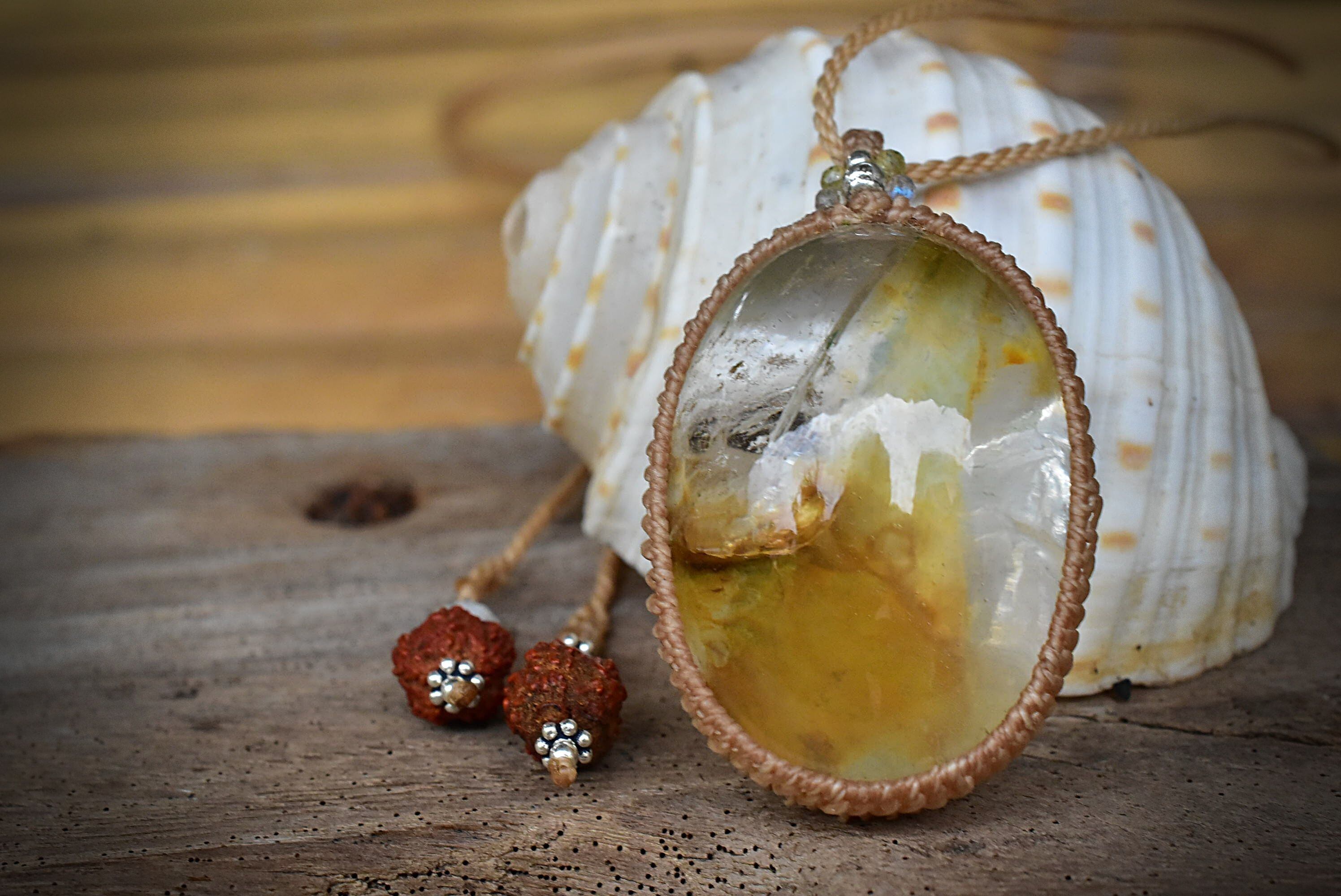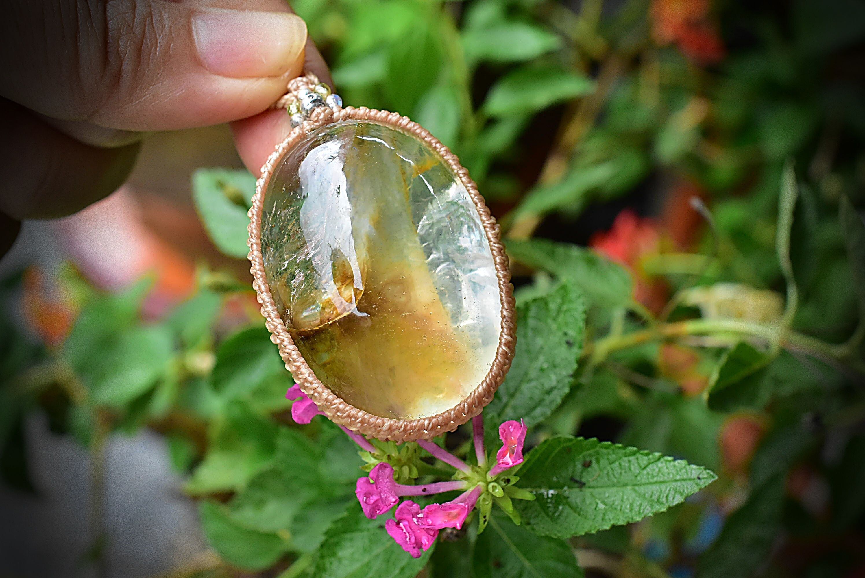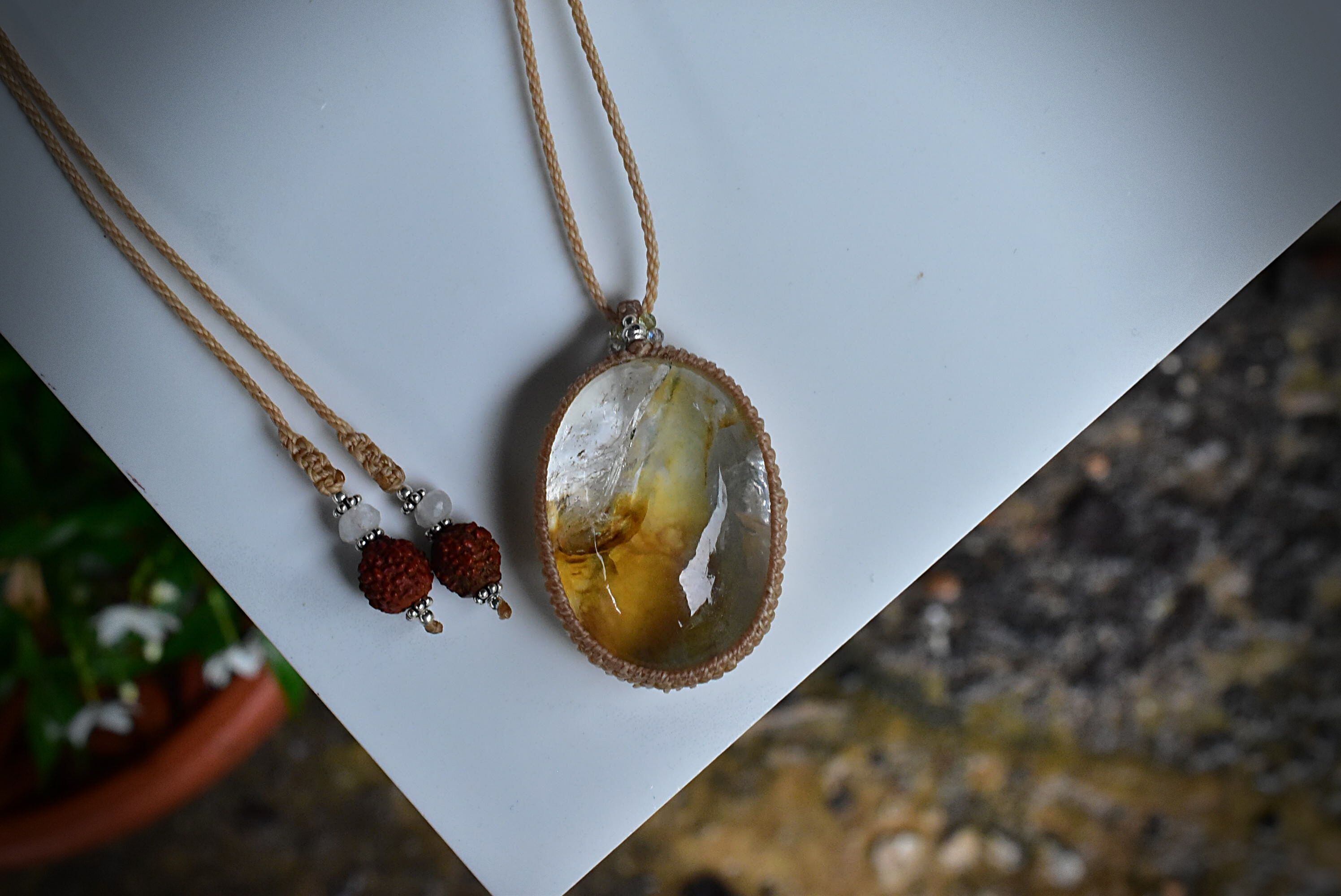 大粒★立ち昇る黄金★ガーデンクォーツ マクラメペンダント gy039