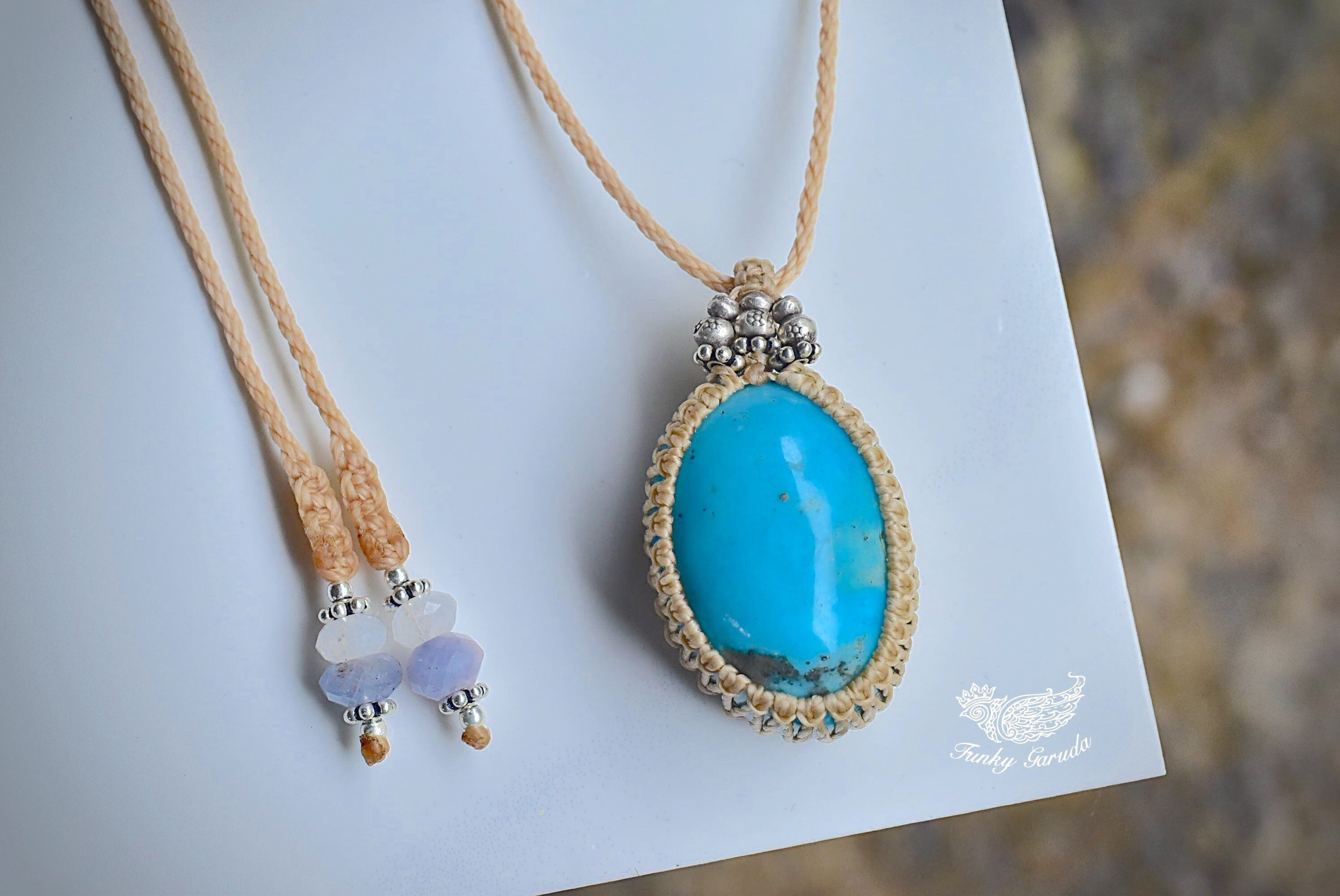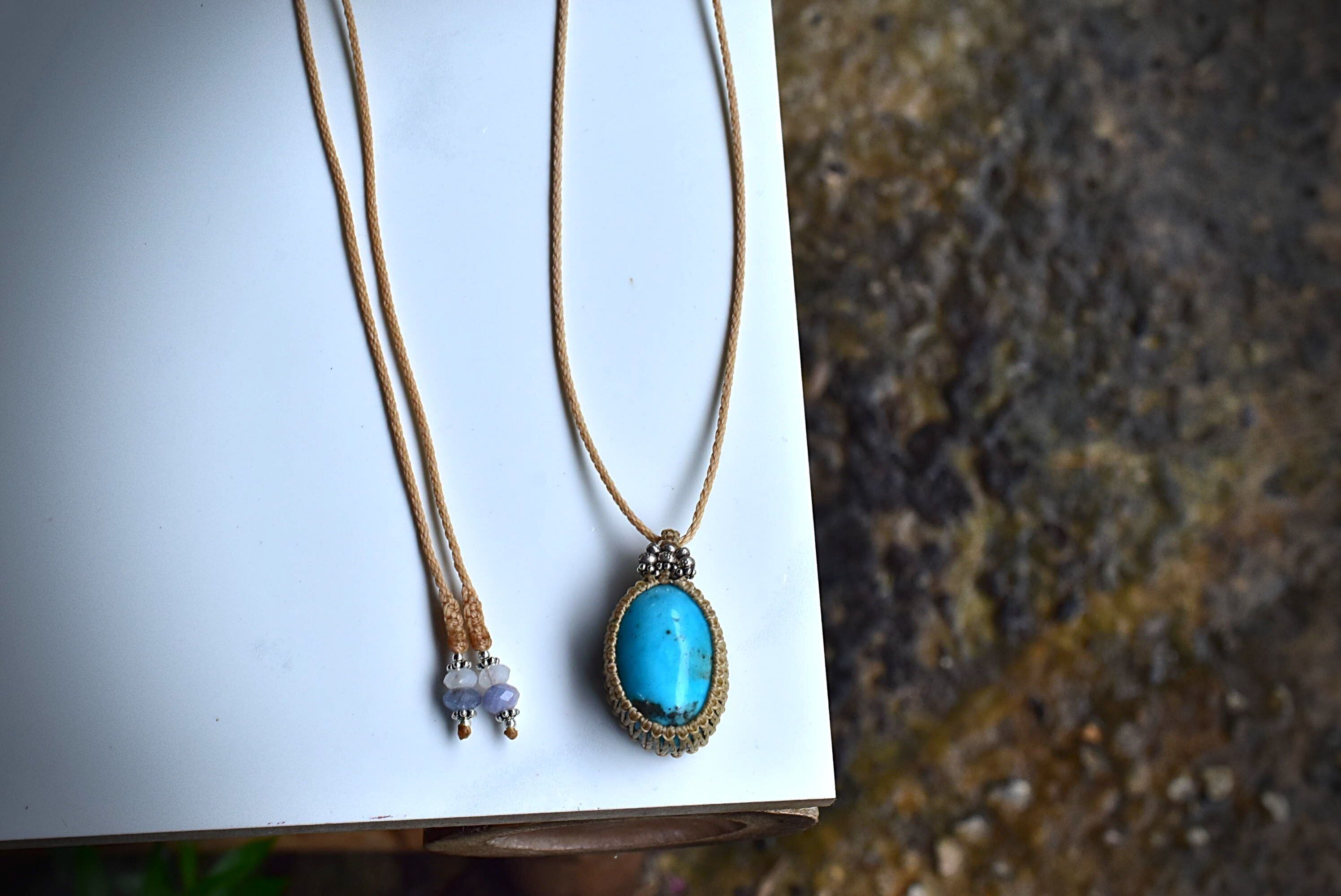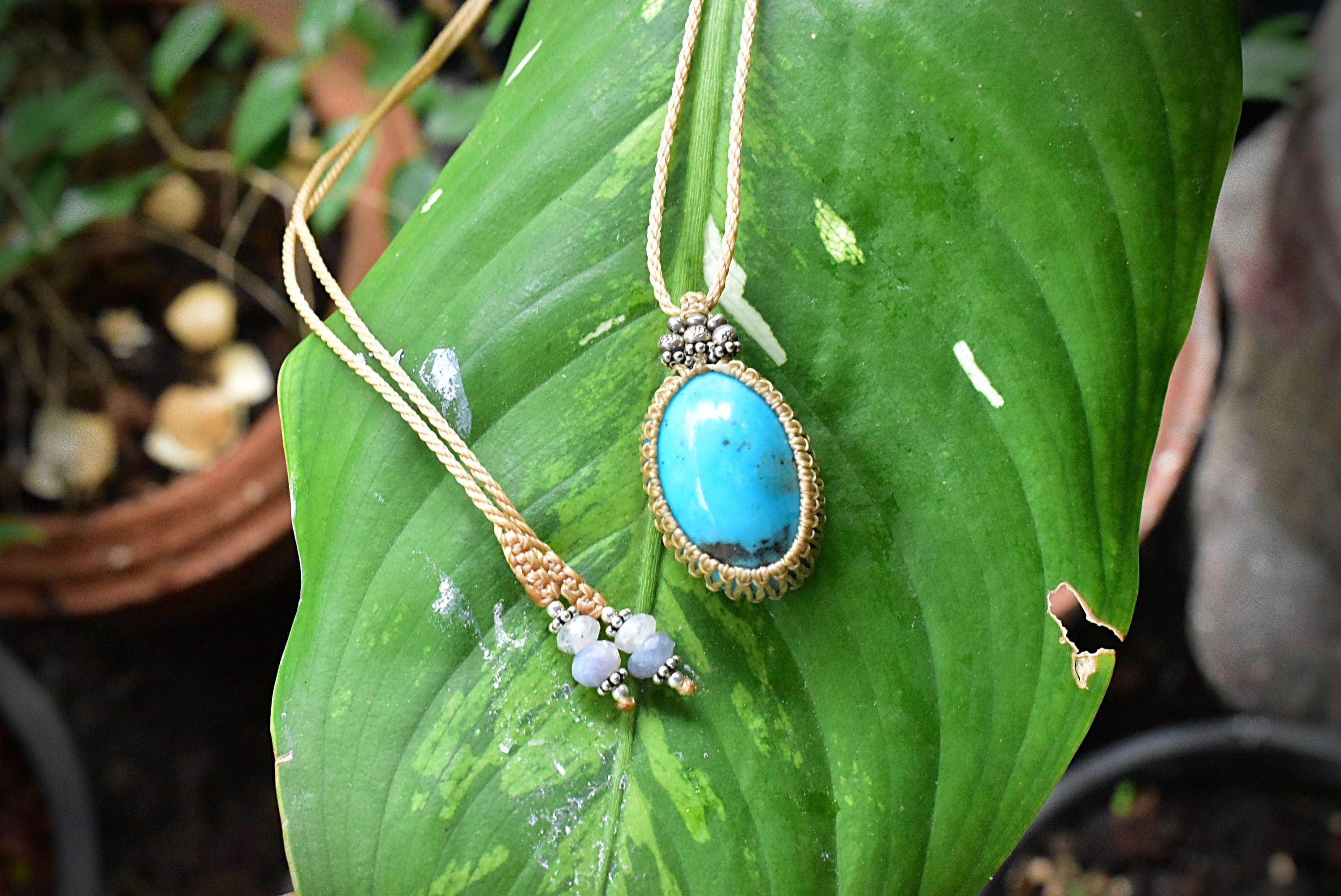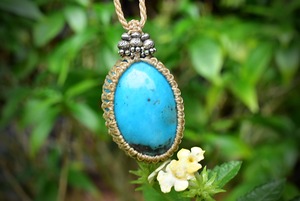 ブルーの彩★ターコイズ マクラメペンダント tury003