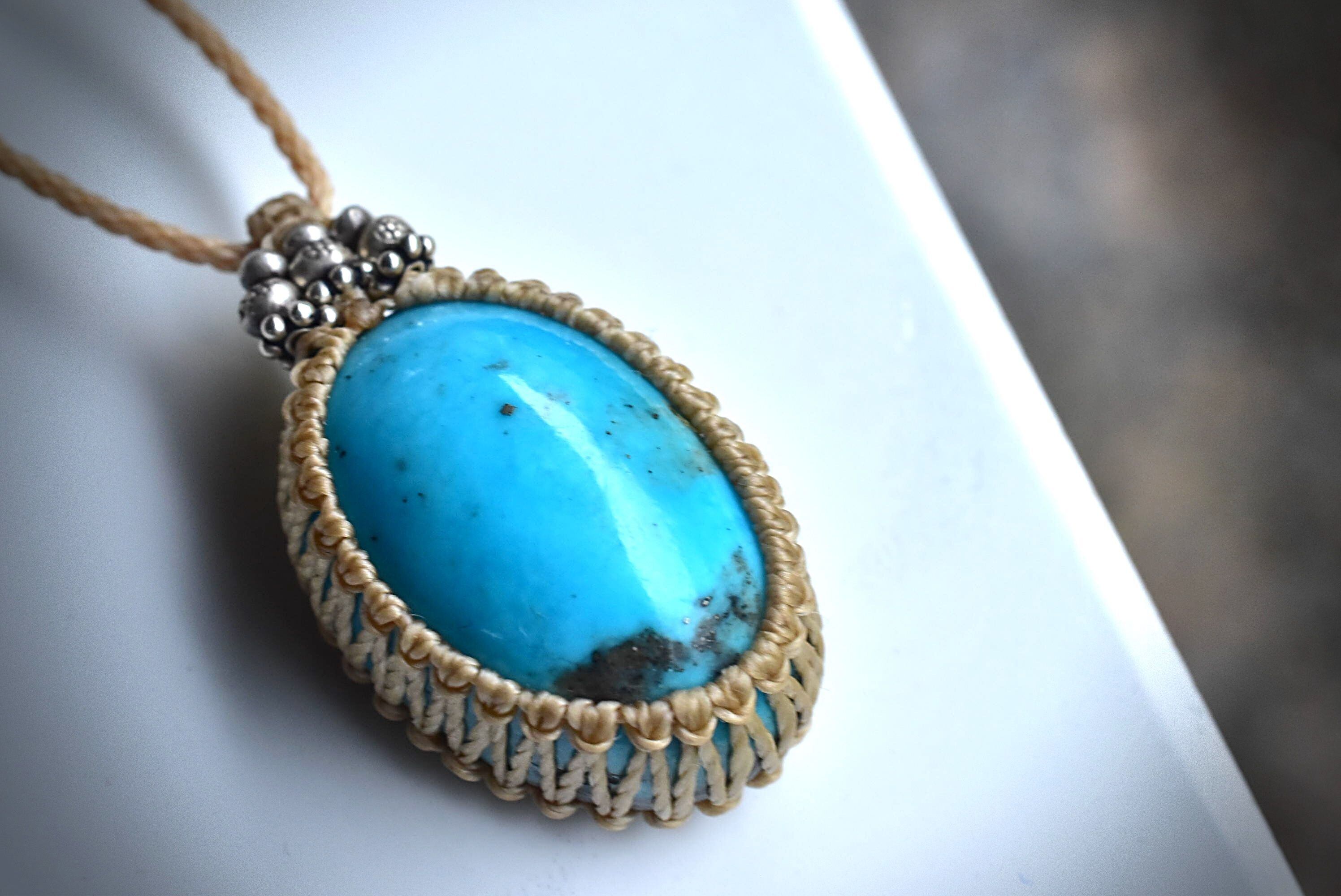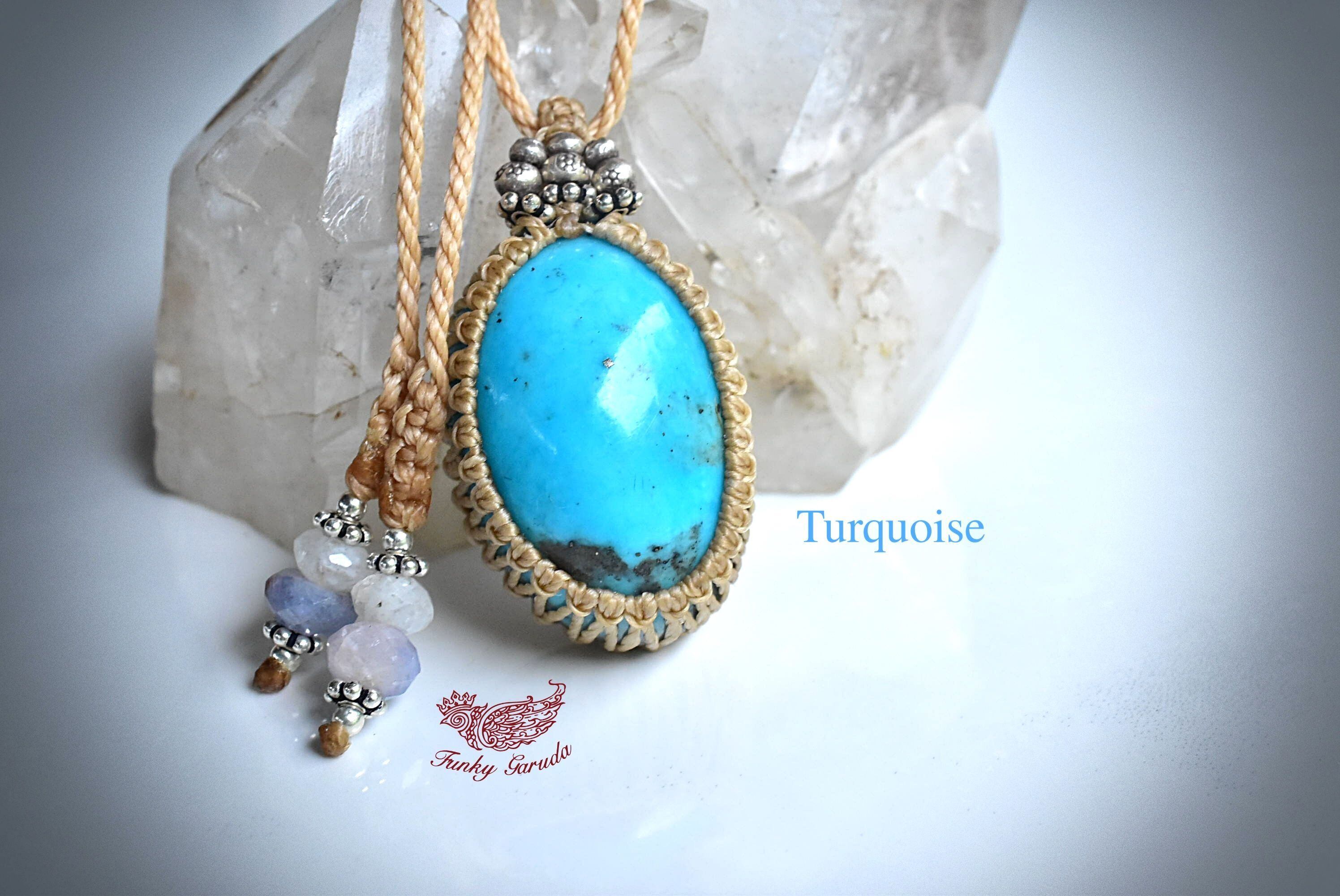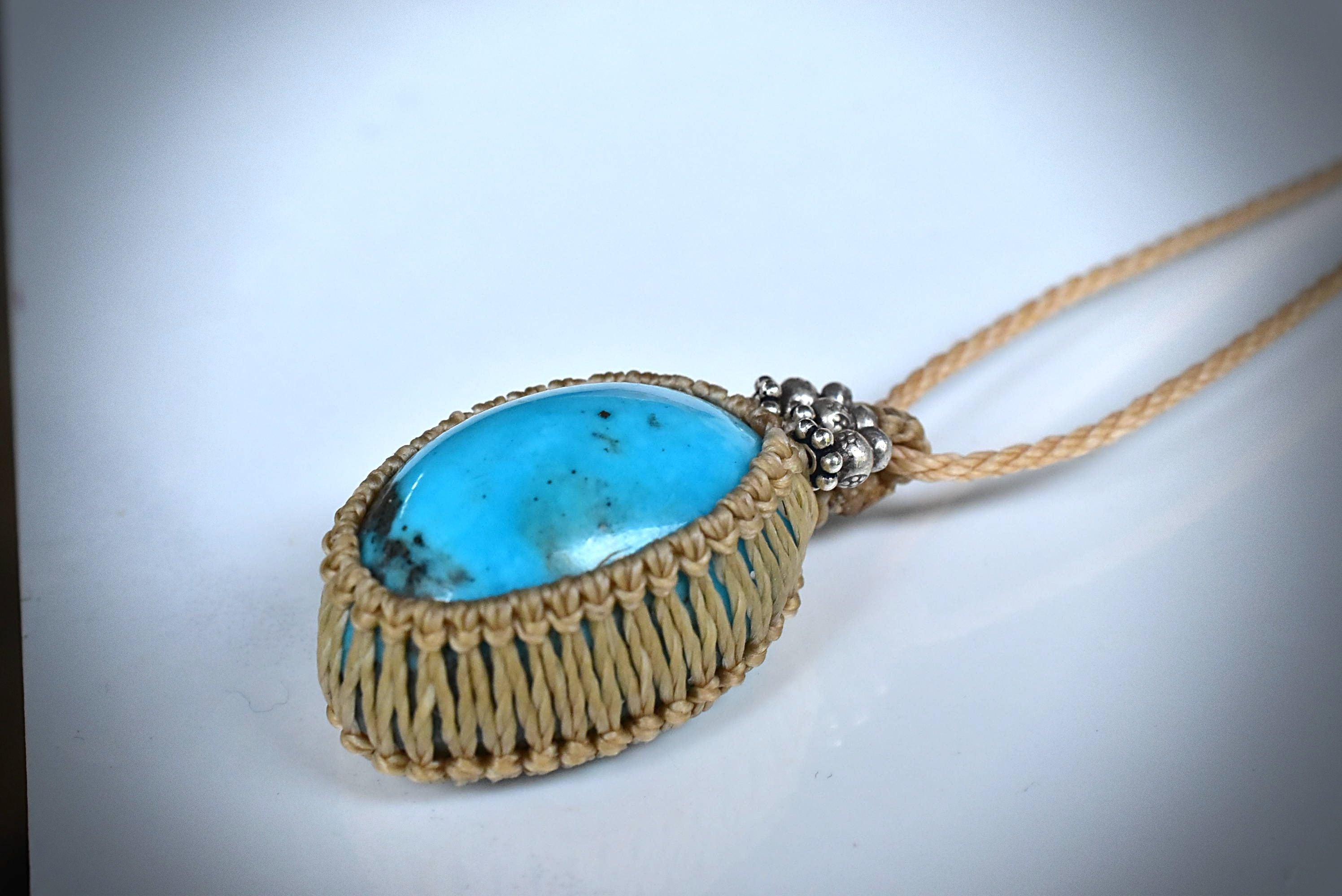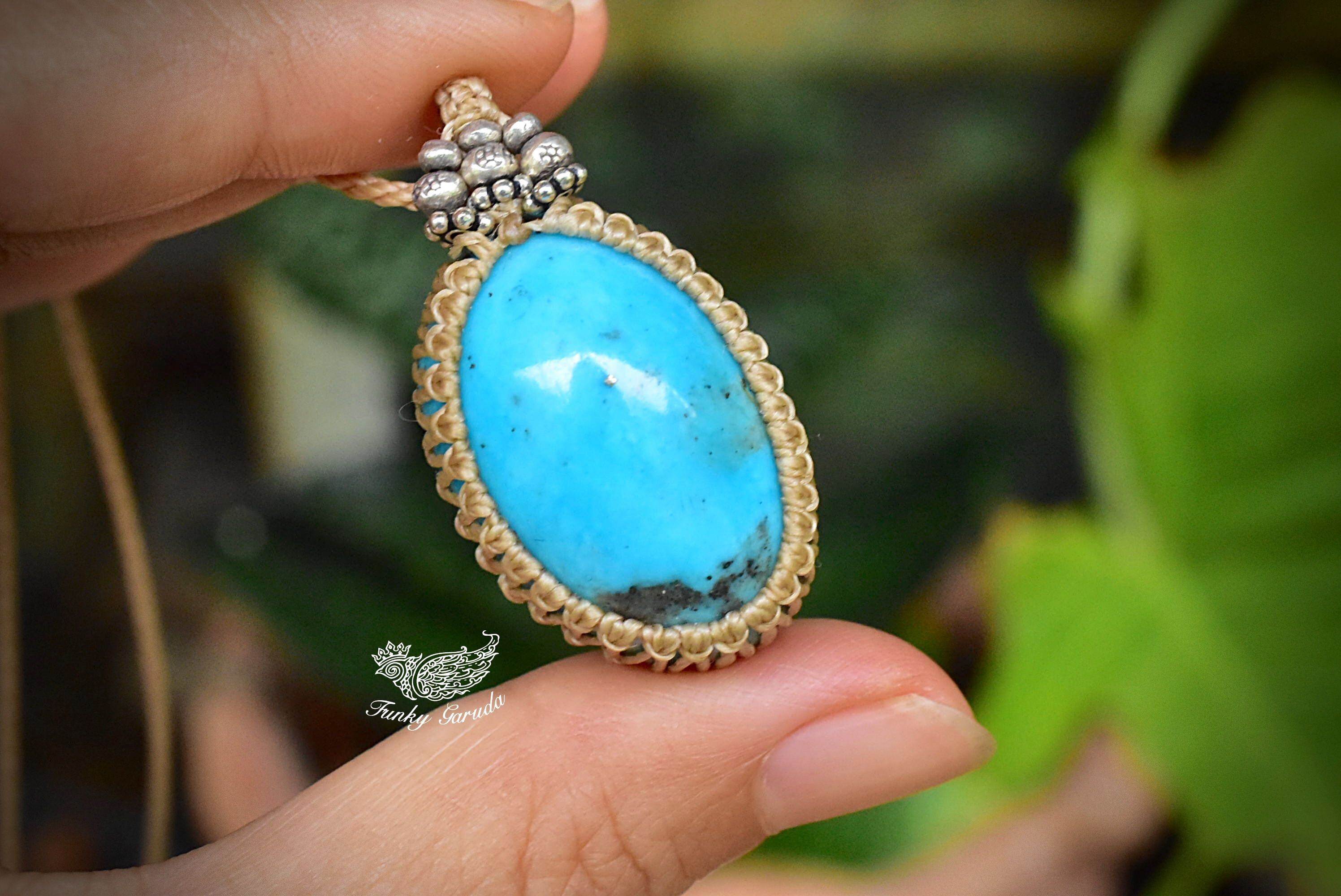 ブルーの彩★ターコイズ マクラメペンダント tury003