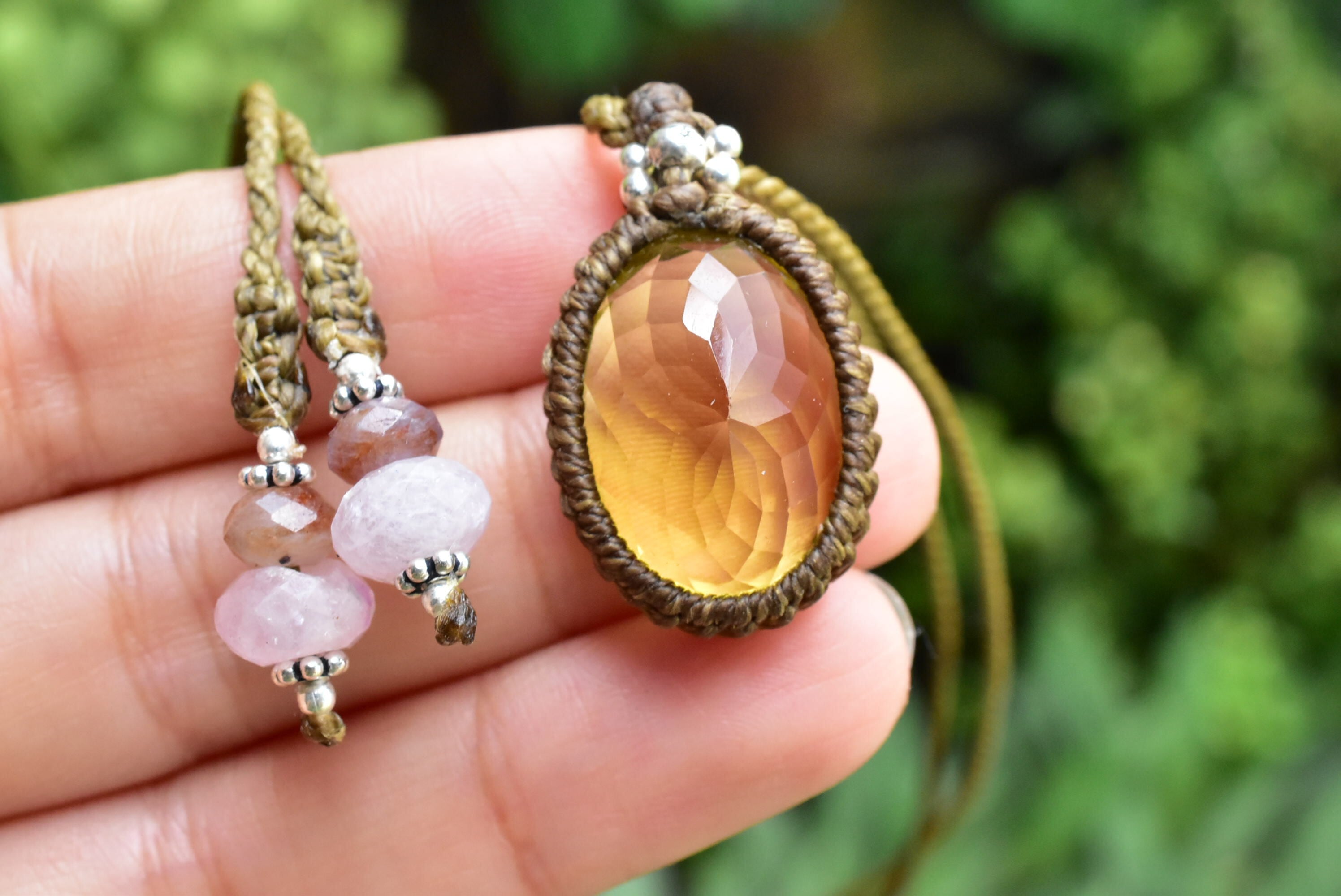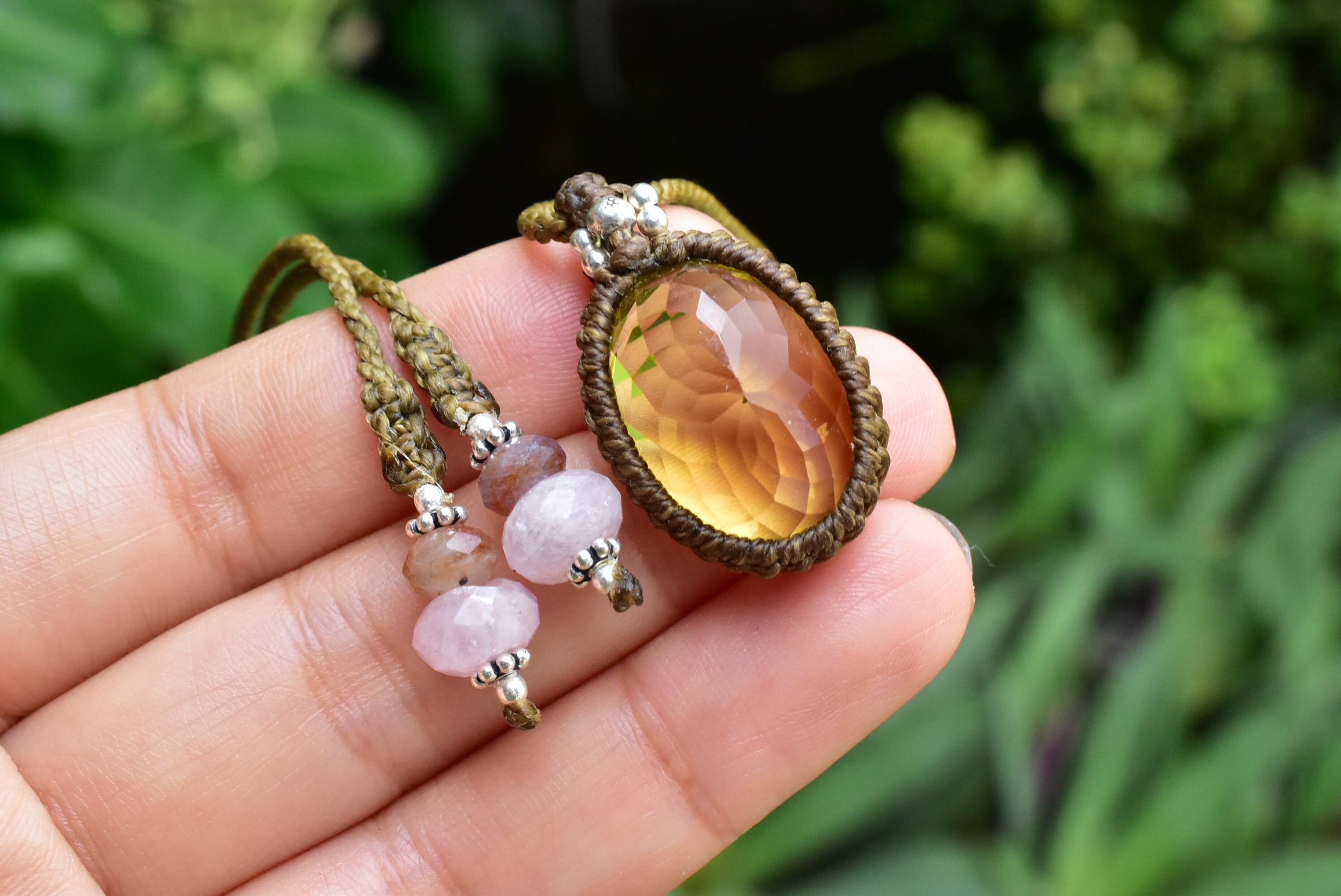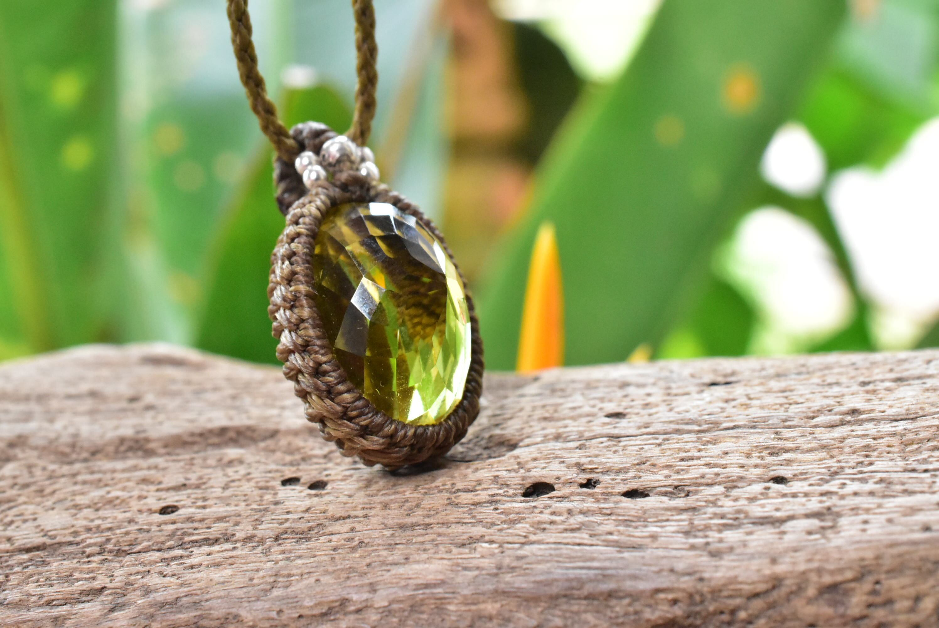 極上レモン★29ctファセットカット レモンクォーツマクラメペンダントlemon006