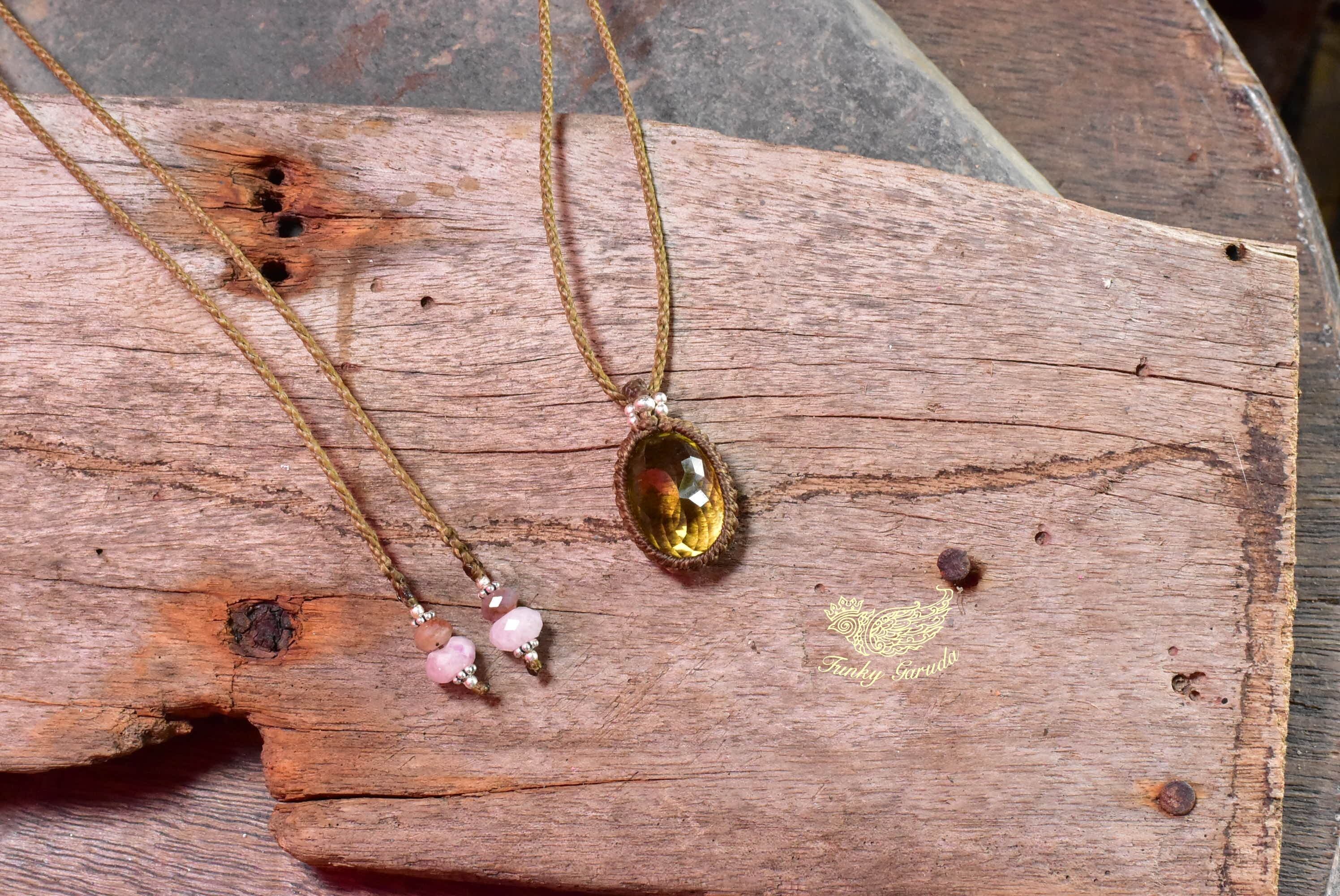 ◆このたびはオリーブ色の蝋引き糸を使用しマクラメ編み装飾を施しました。
