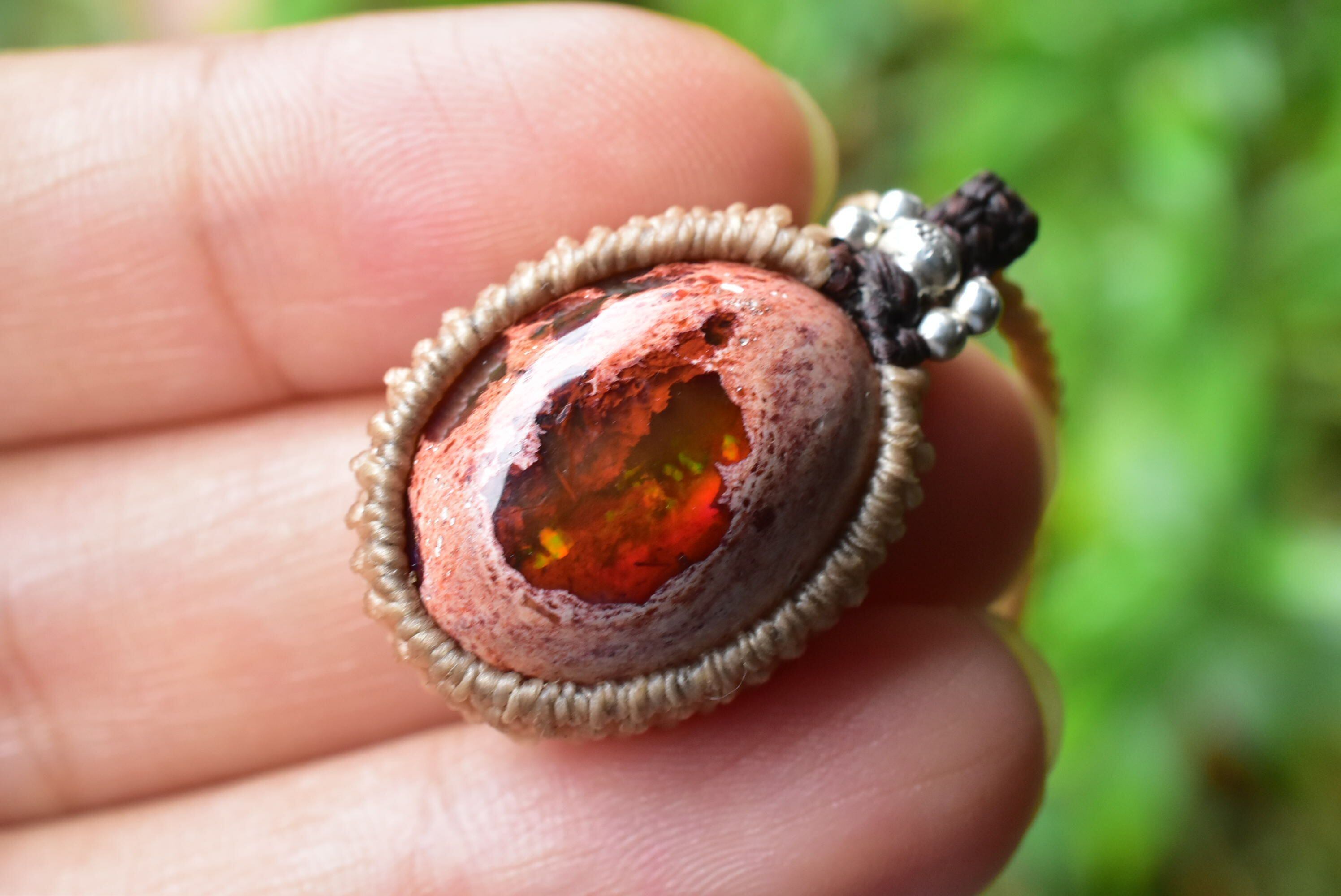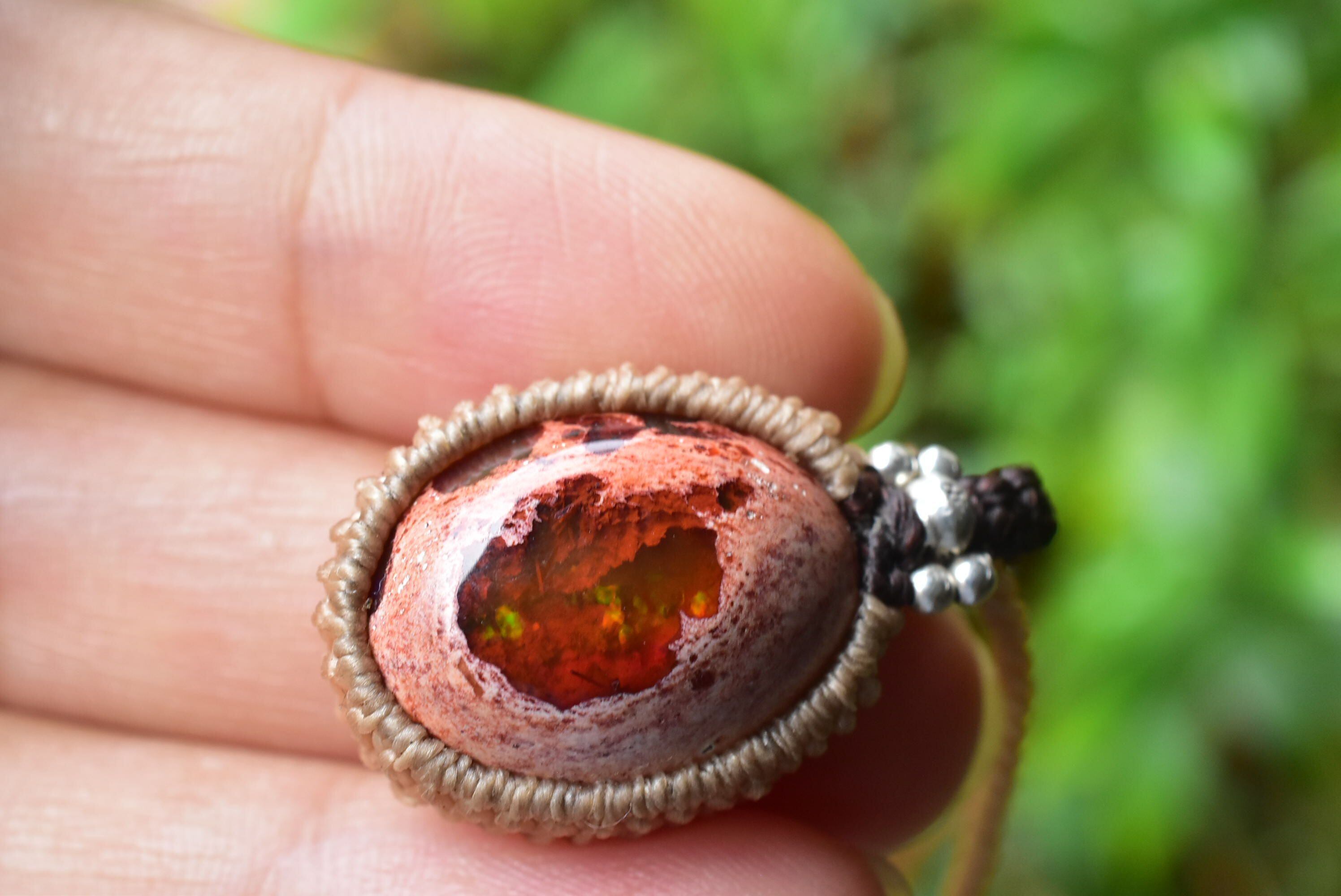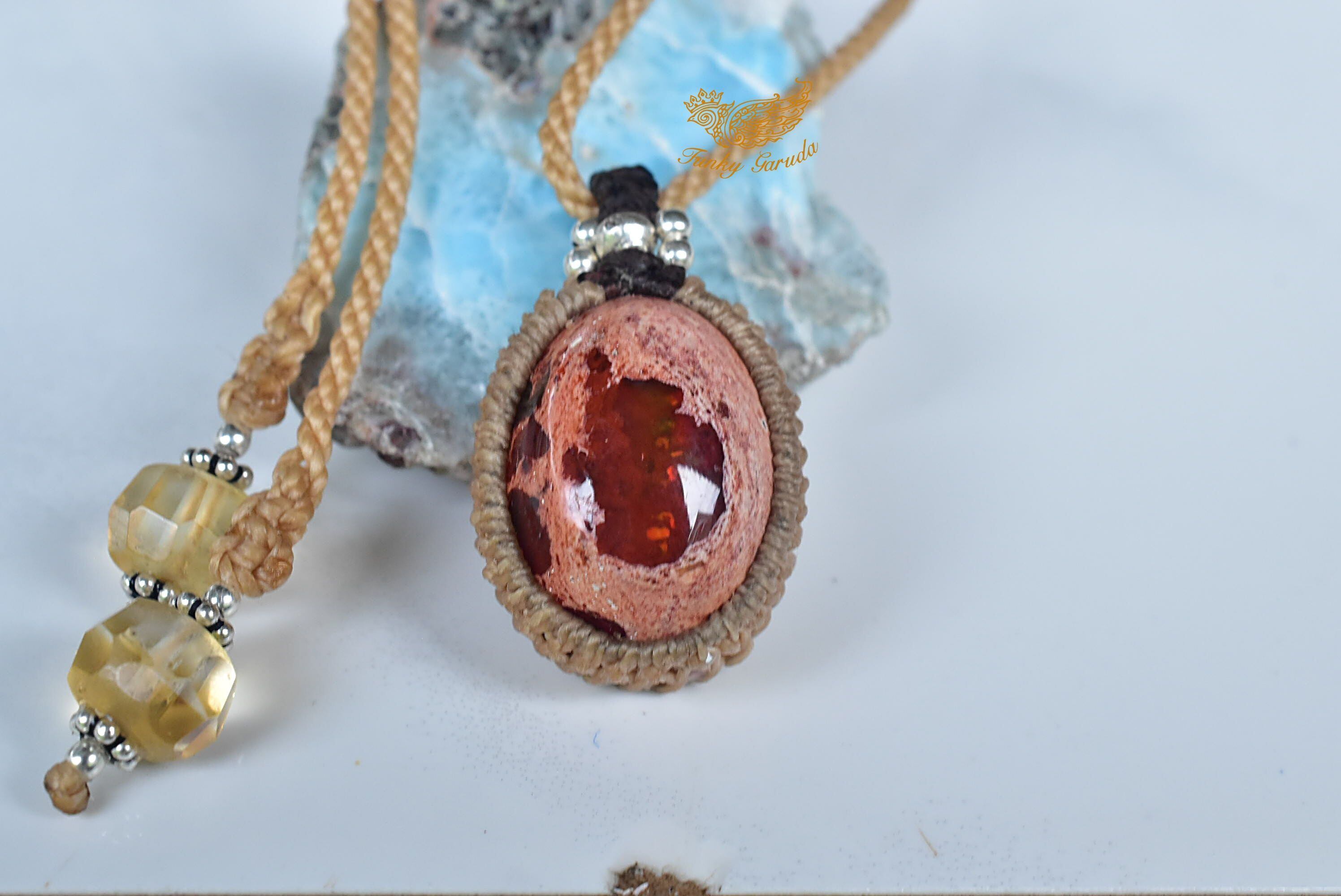 火山の宝物★高品質カンテラオパール マクラメペンダント opay002