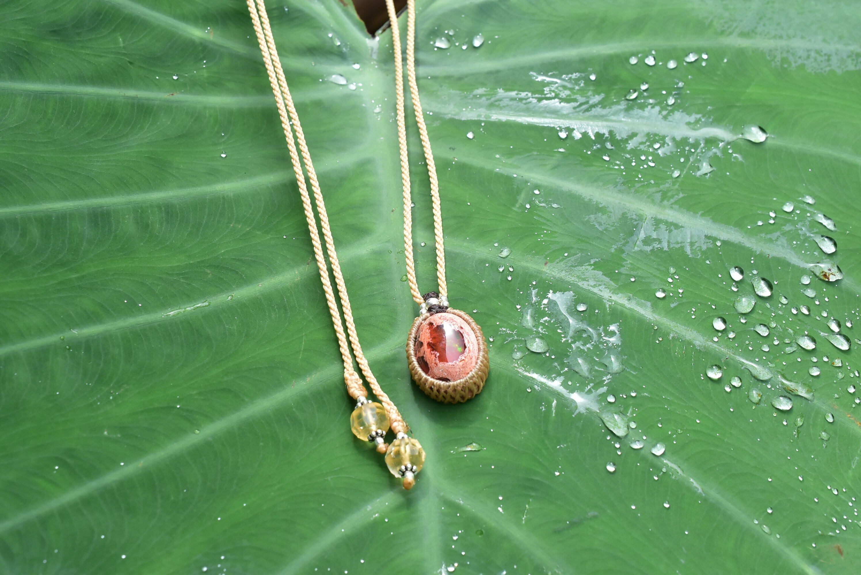 母岩に守られた宝物のようなオパールを、シンプルなマクラメ編み装飾にて仕上げました。