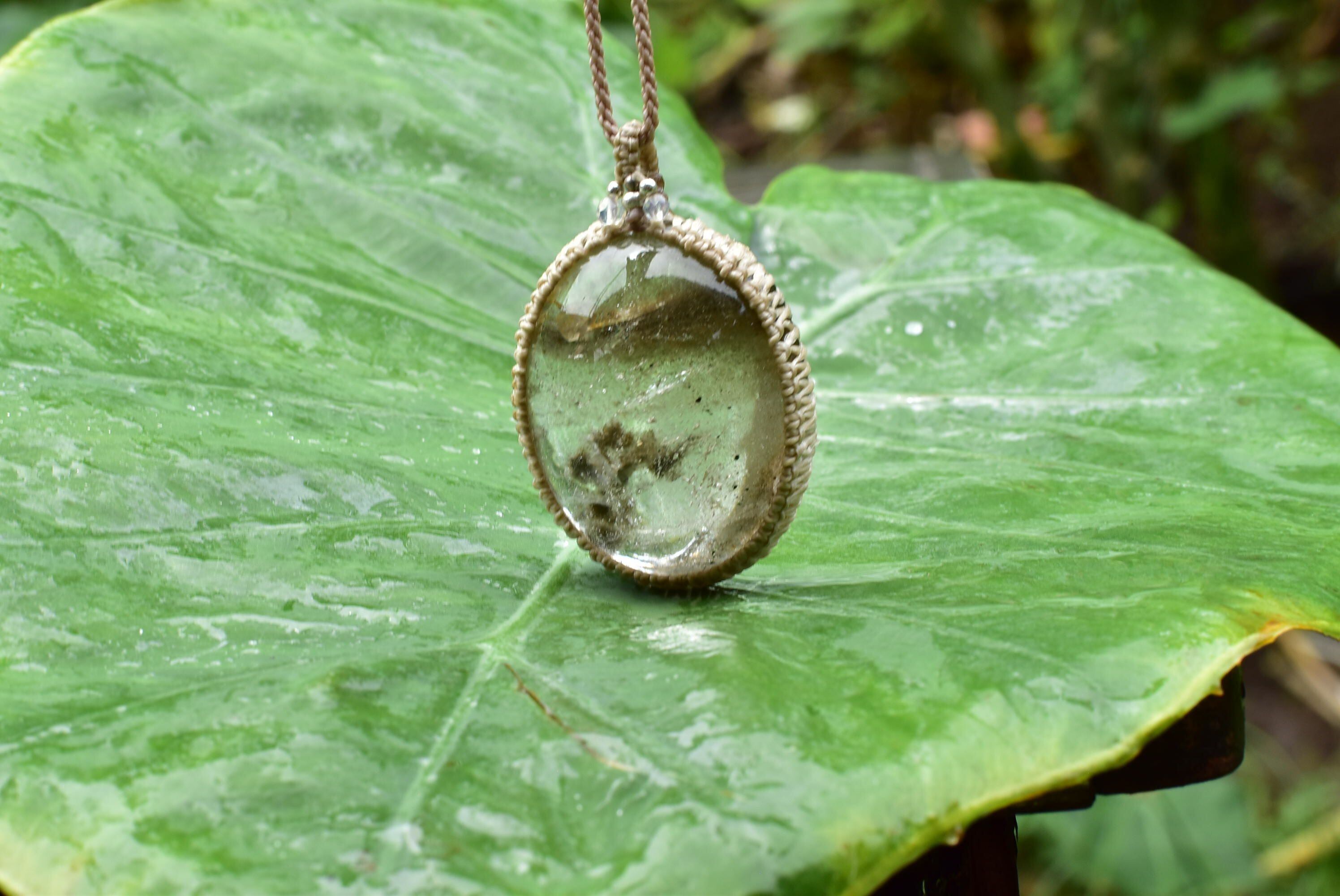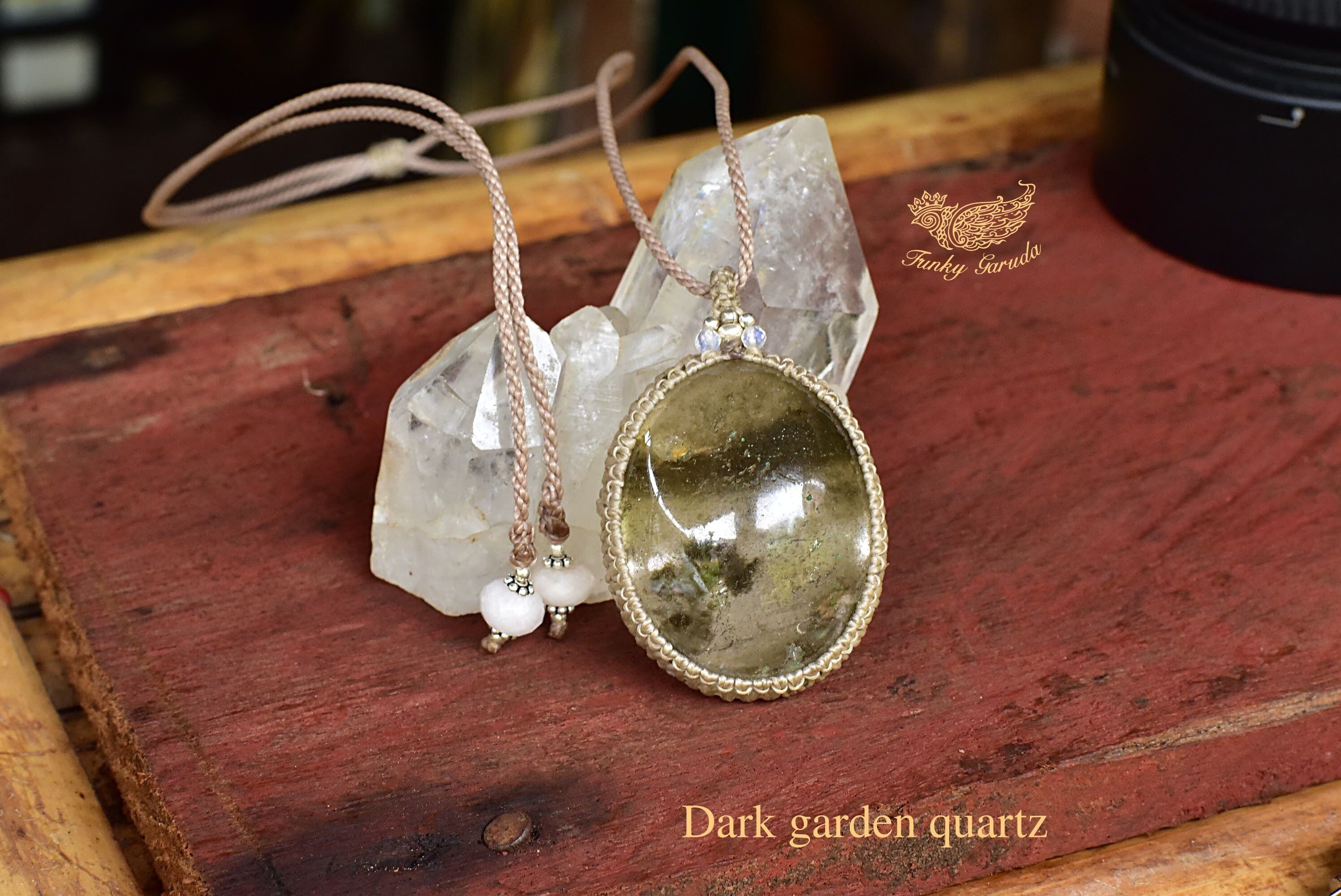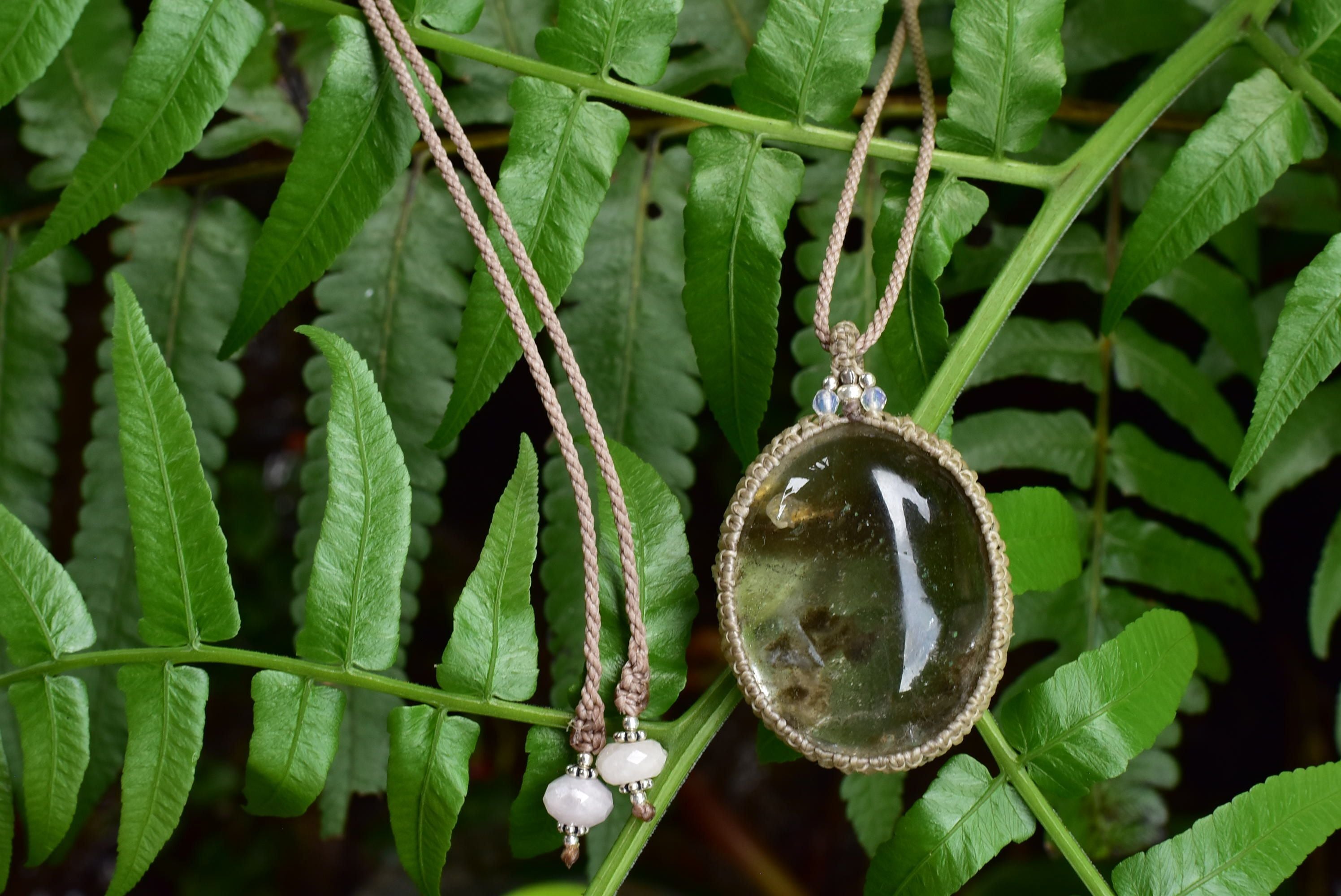 深い緑の癒し★大粒ダークガーデンクォーツマクラメペンダント gy041