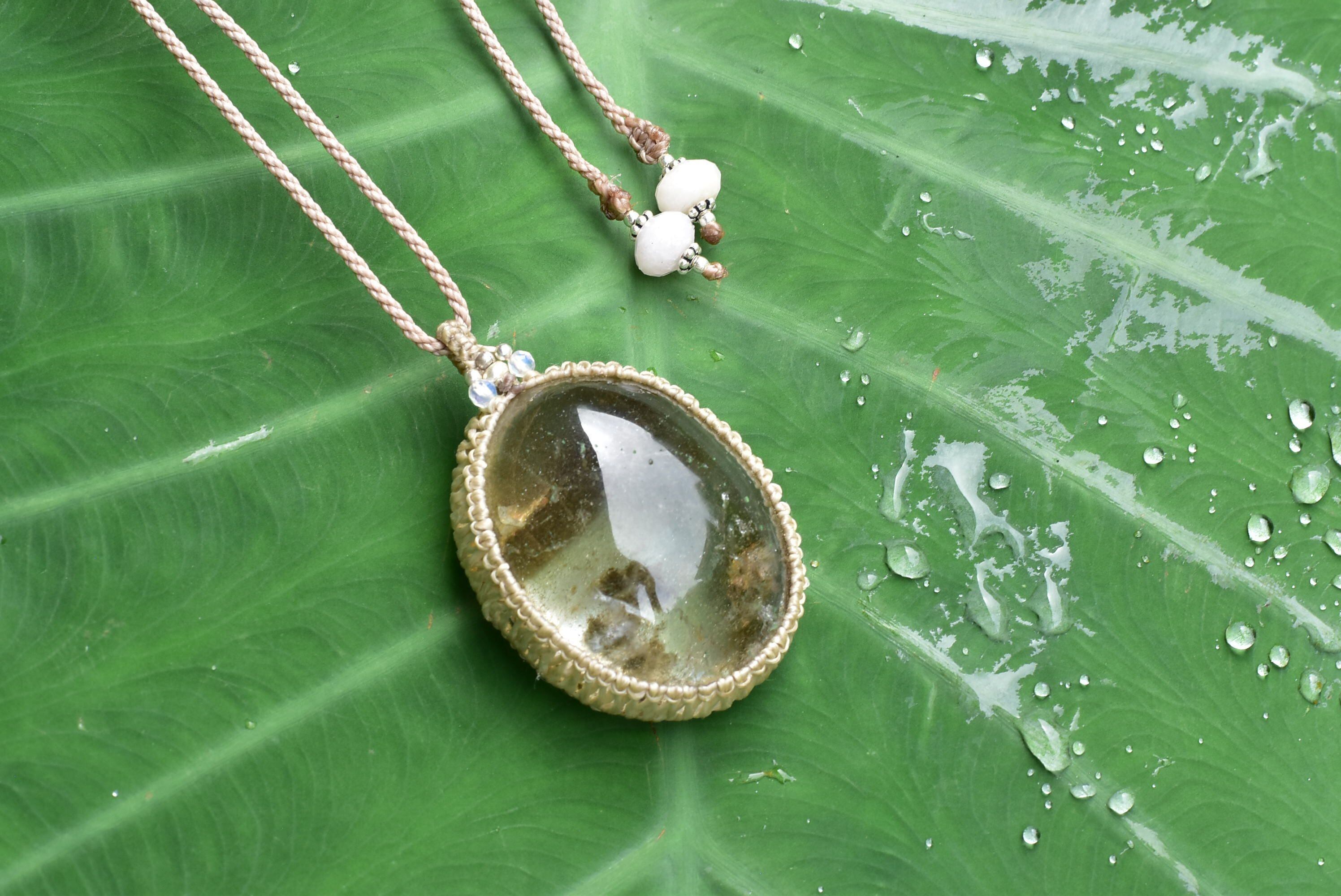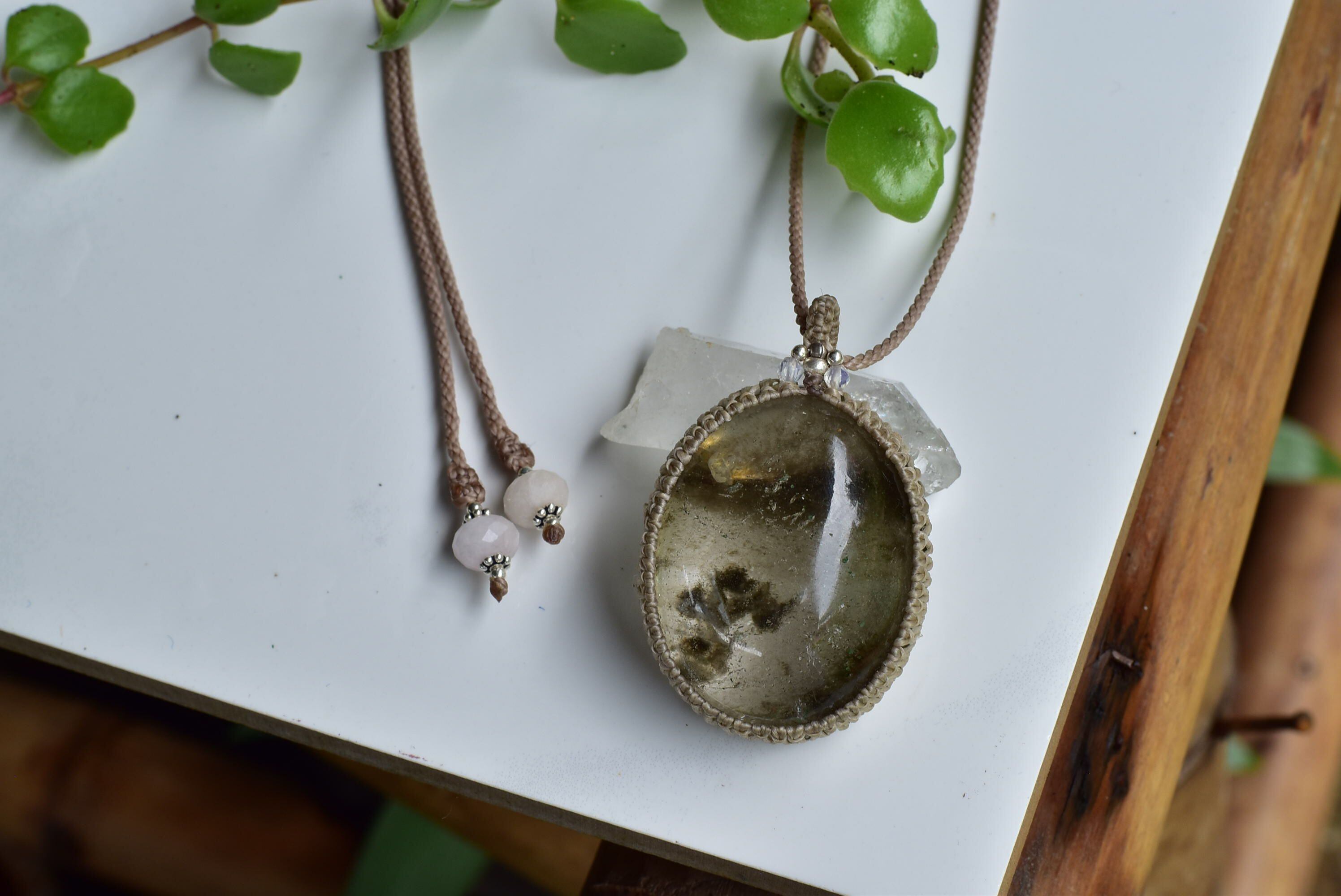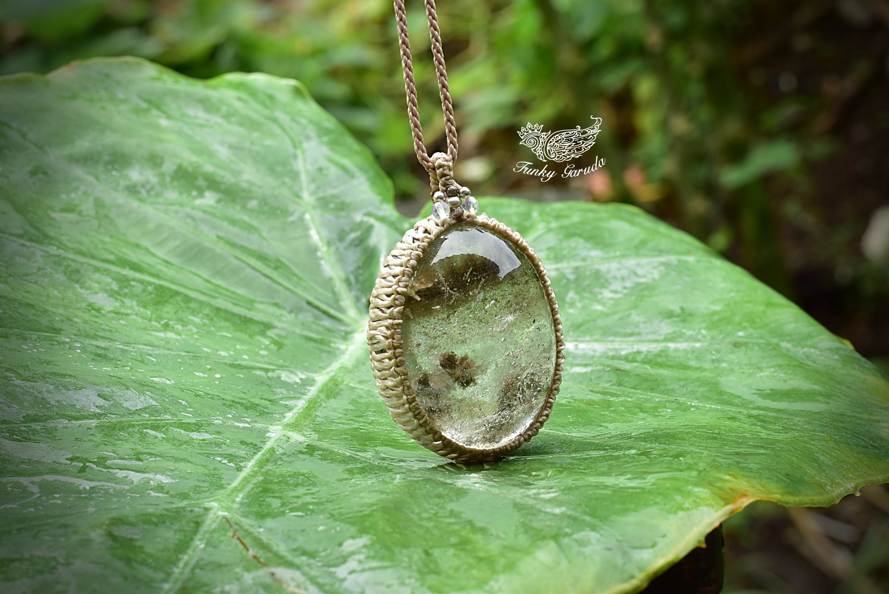 深い緑の癒し★大粒ダークガーデンクォーツマクラメペンダント gy041