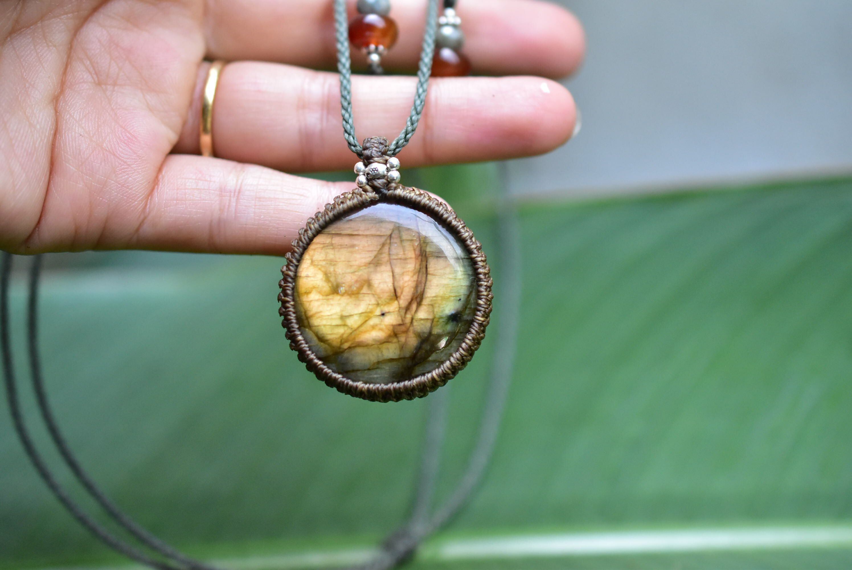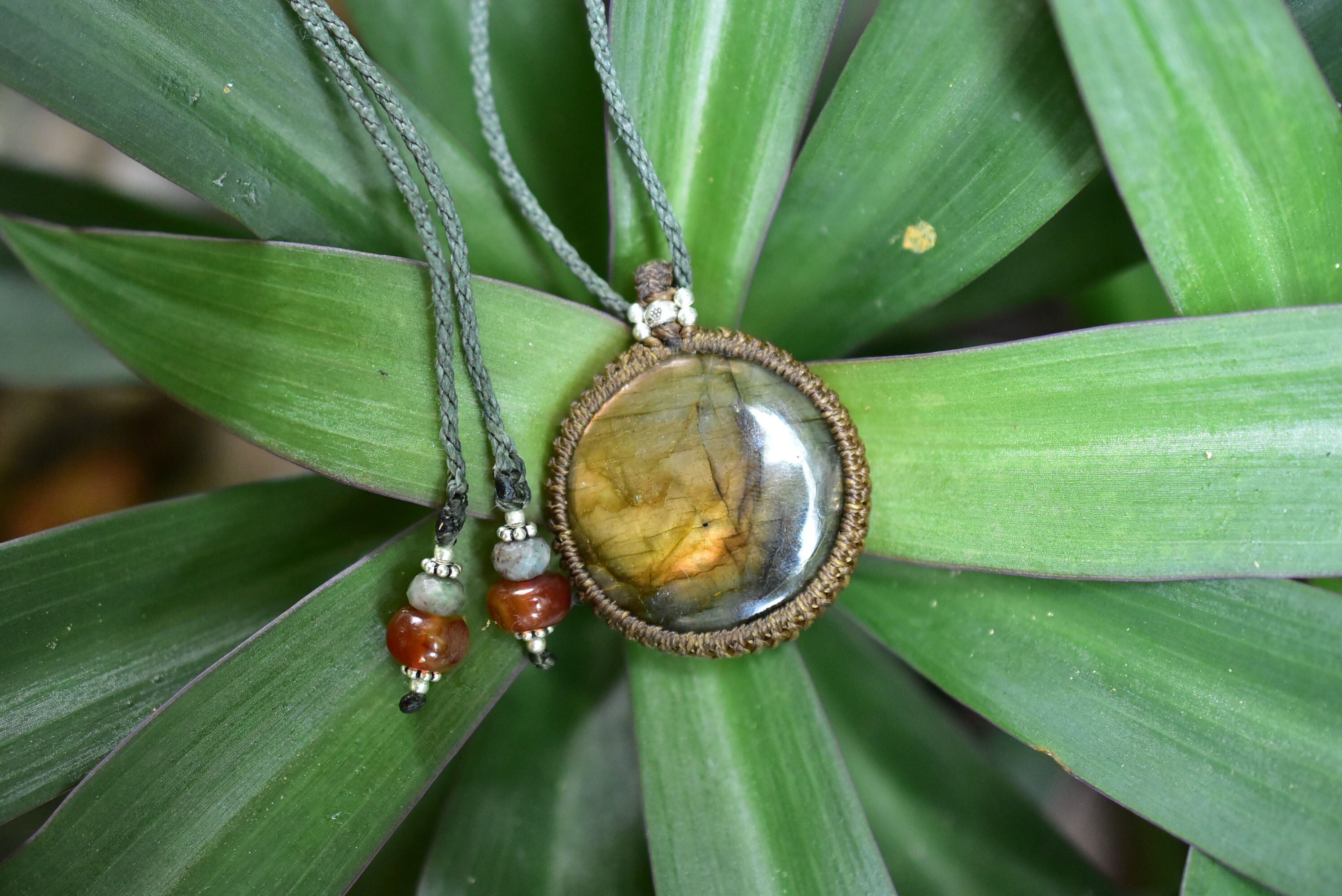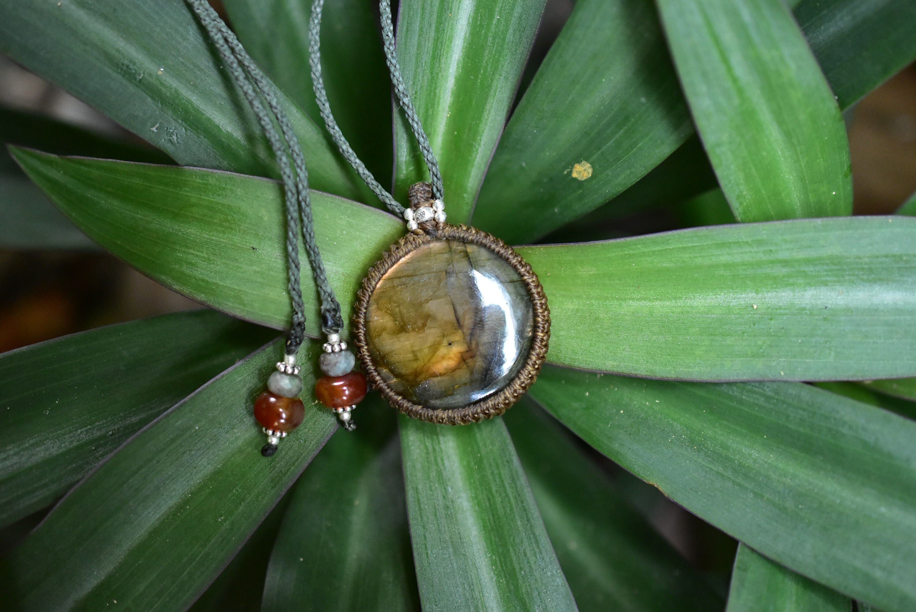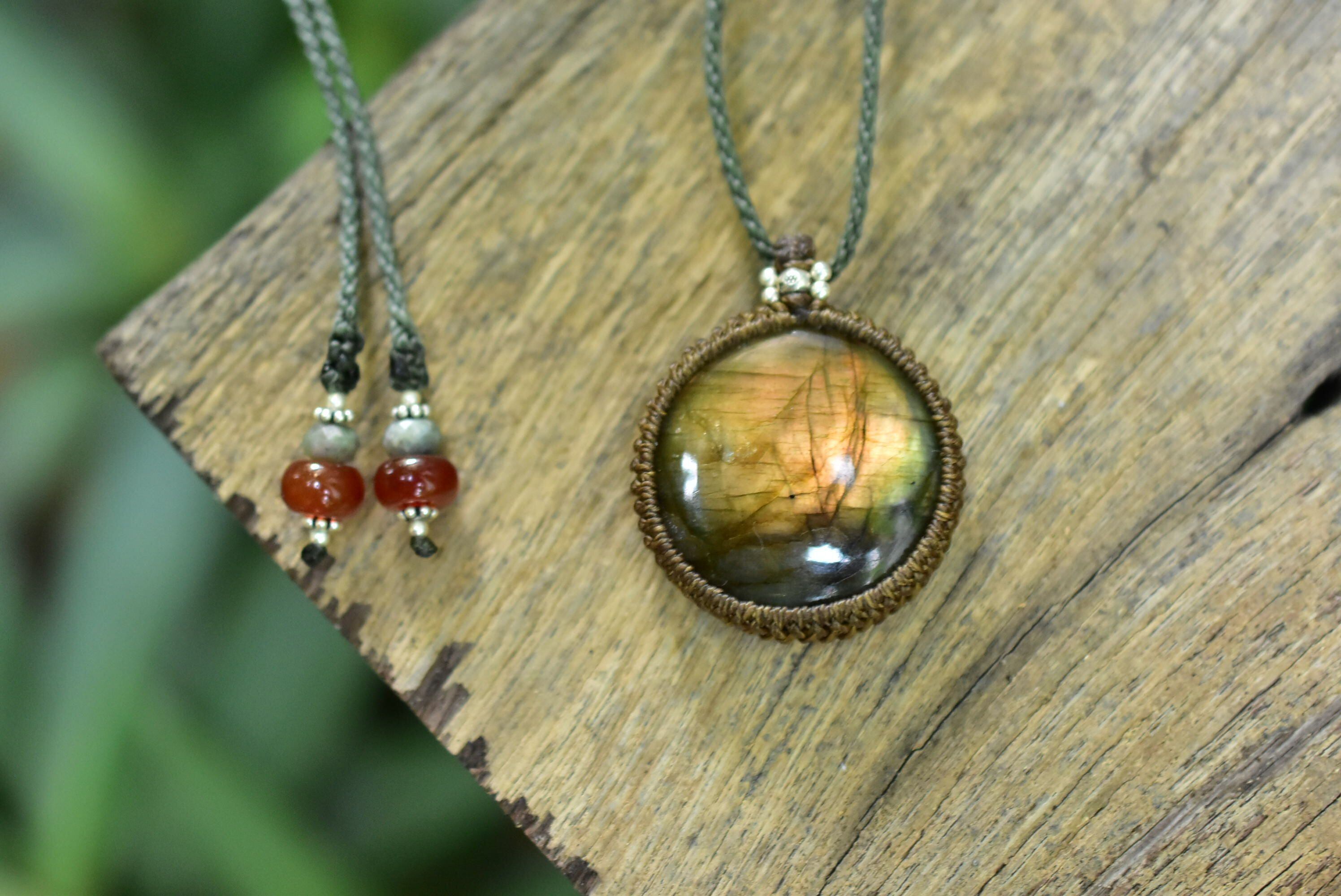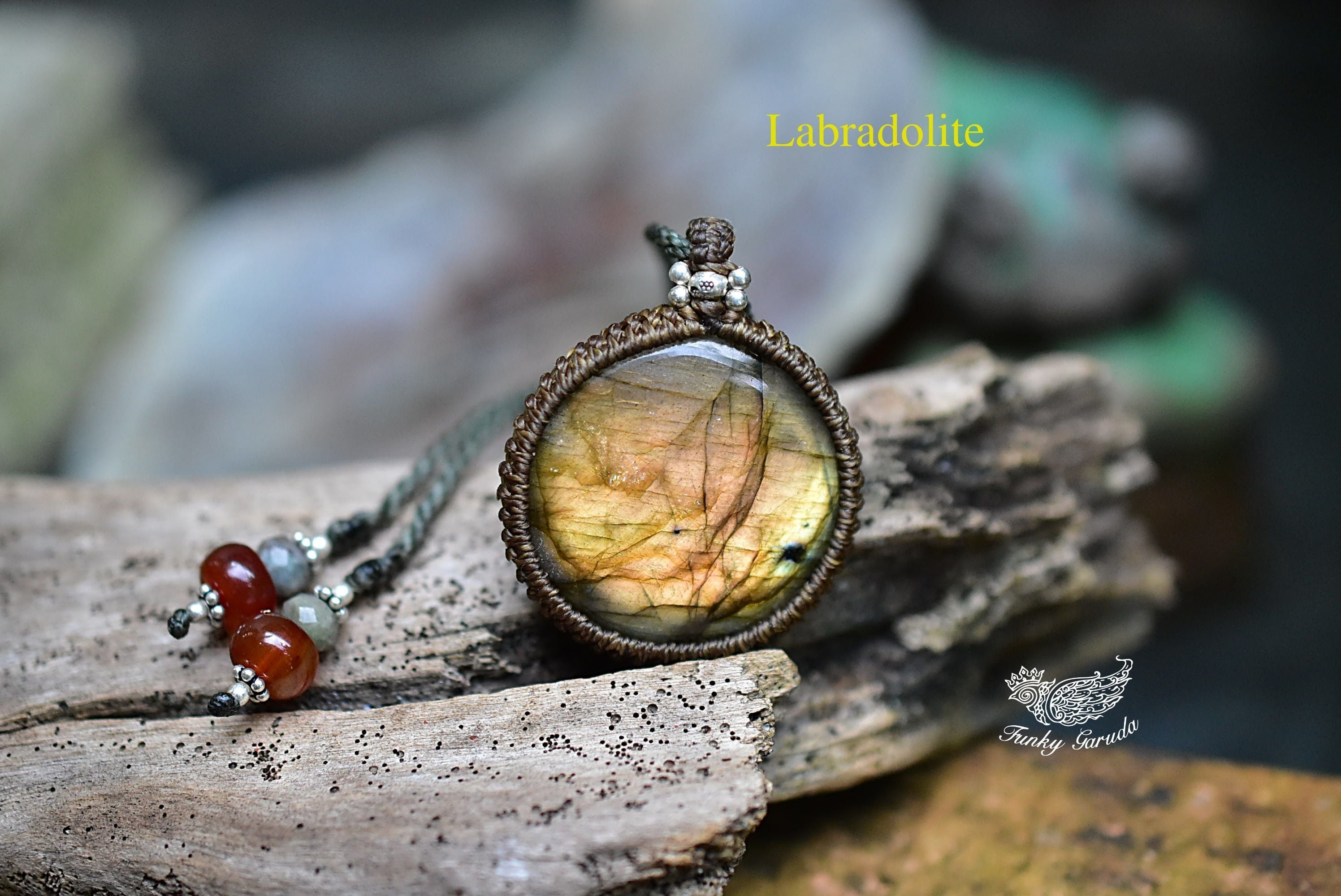 お月様の神秘★ラブラドライト シンプルマクラメペンダント lay024