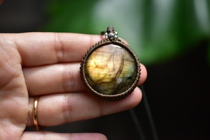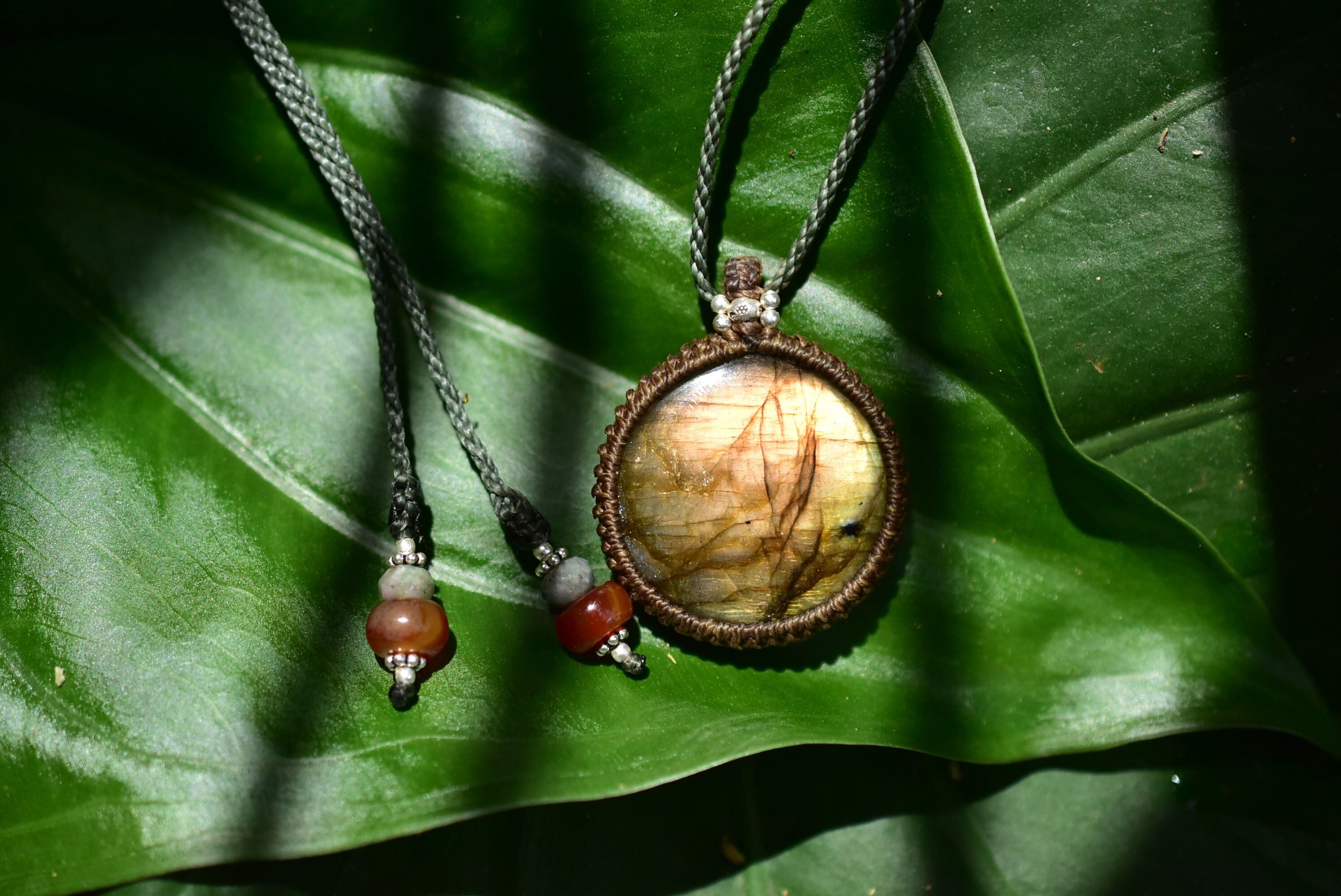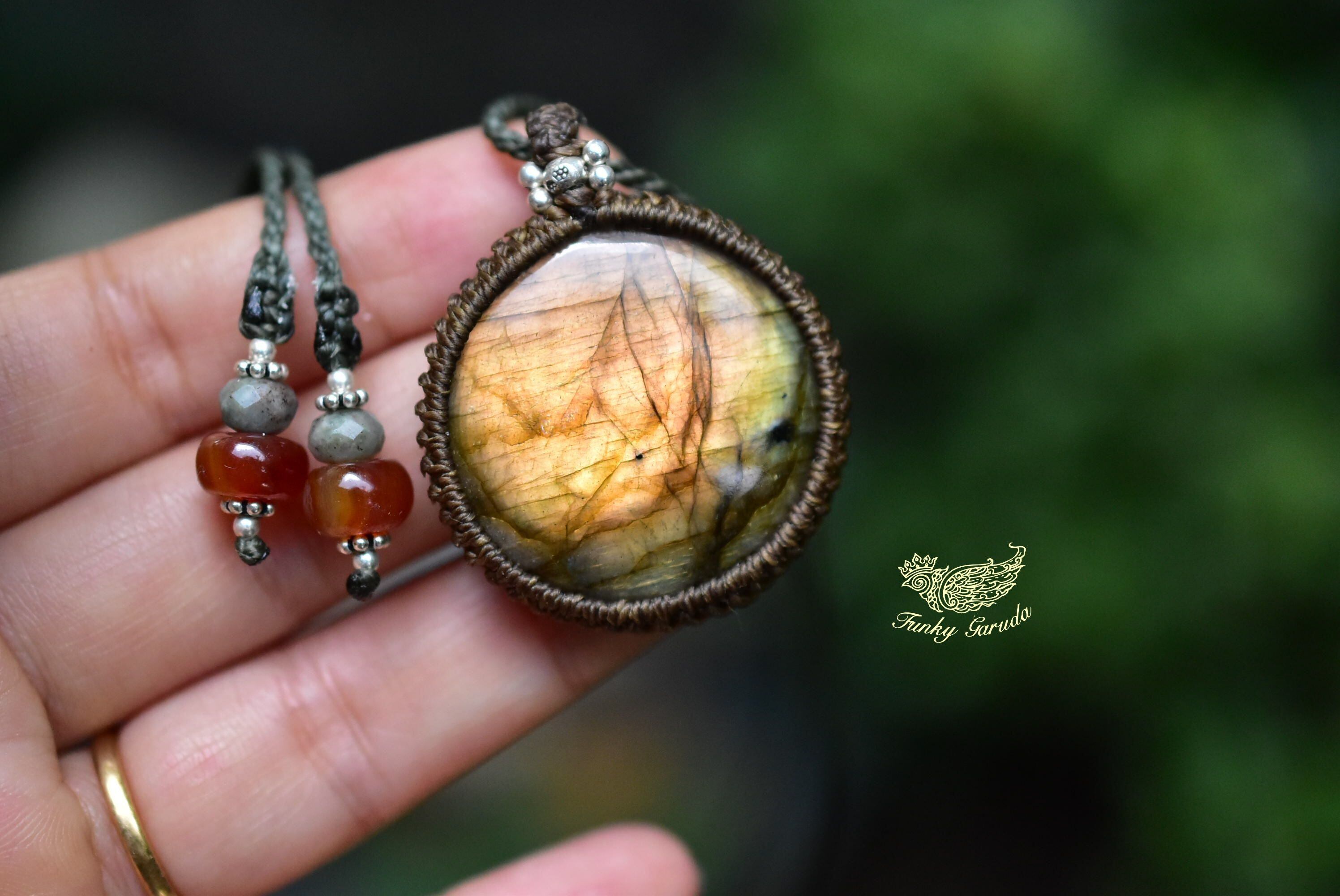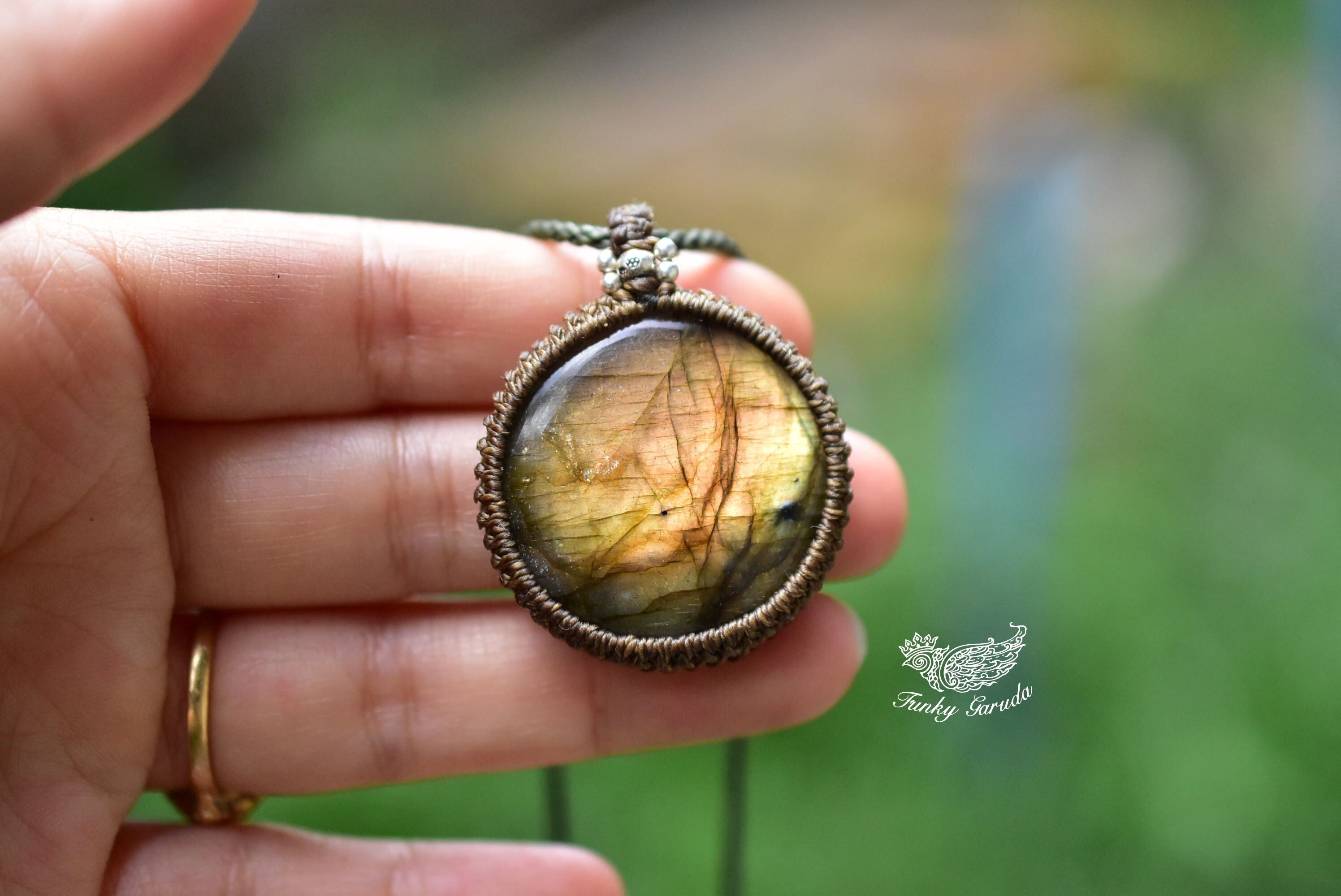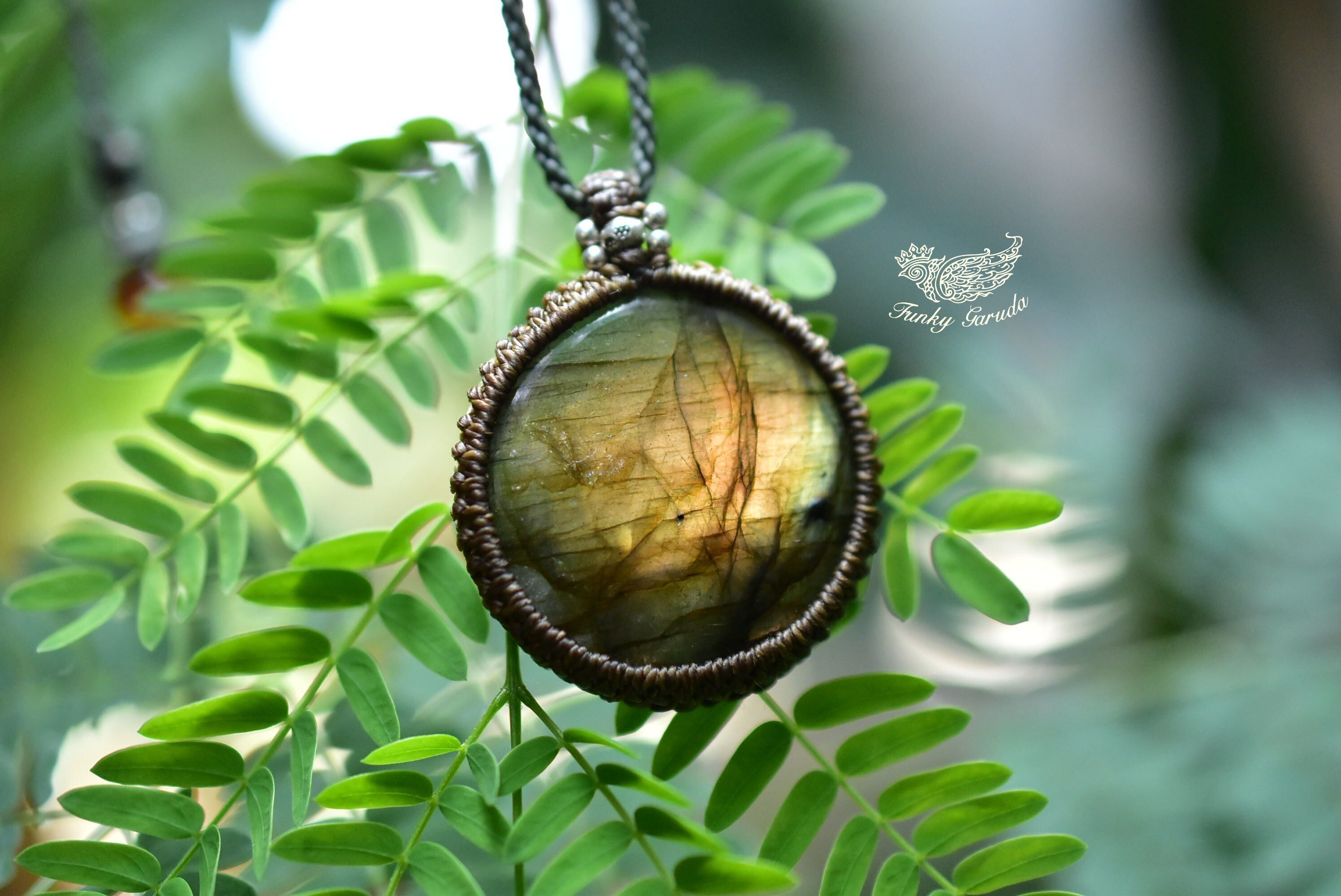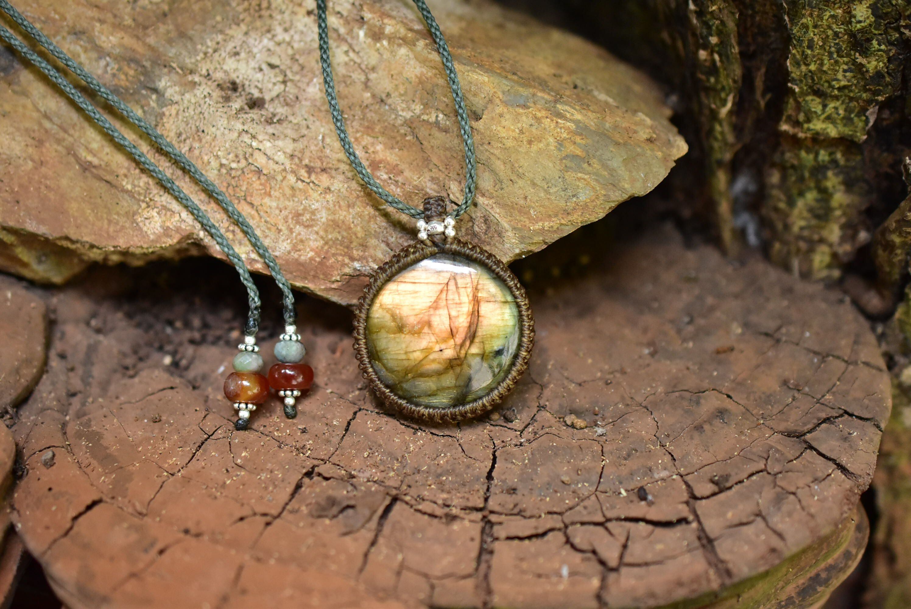 お月様の神秘★ラブラドライト シンプルマクラメペンダント lay024
