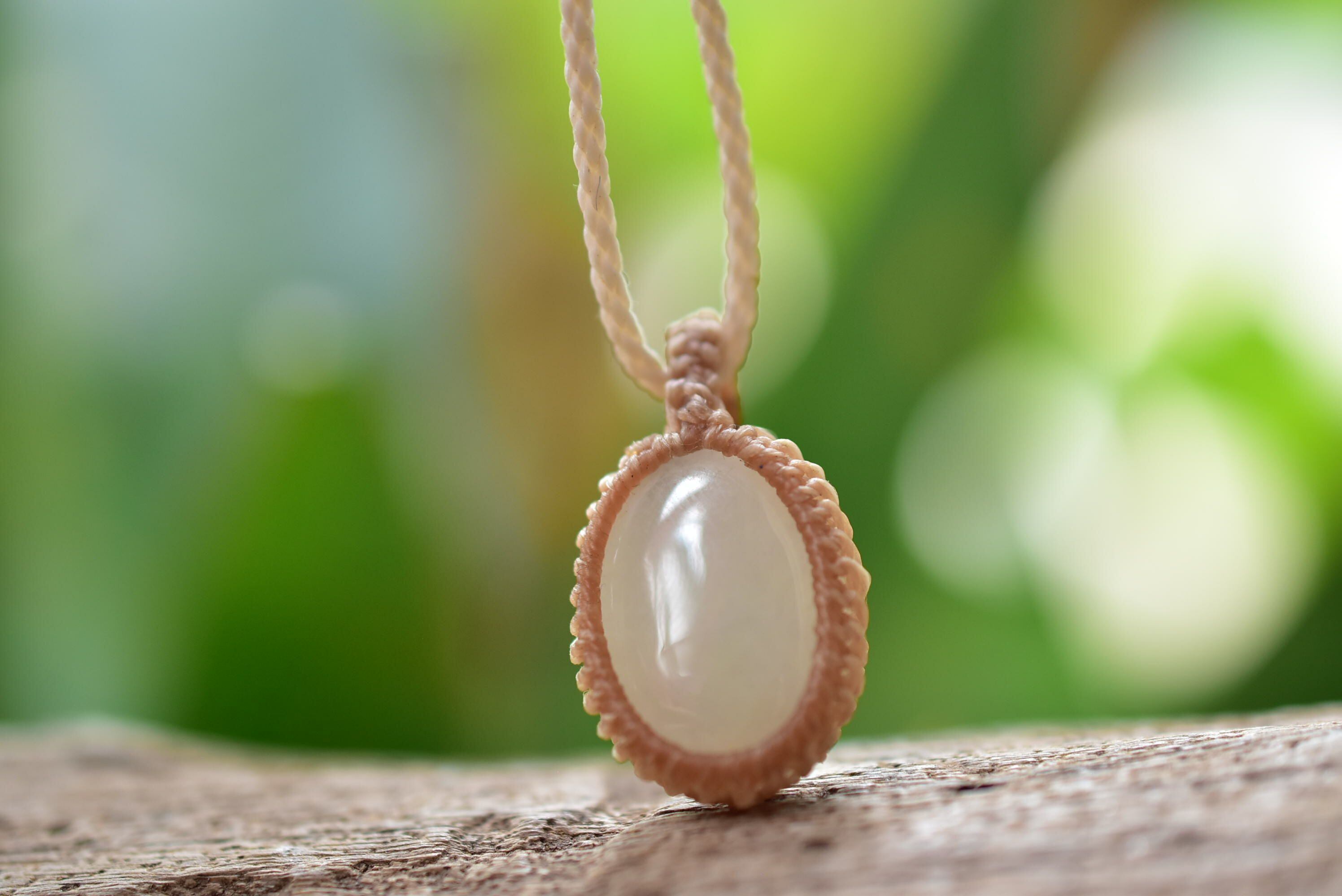 純真な輝き★ホワイトサファイア シンプルマクラメペンダント safy001