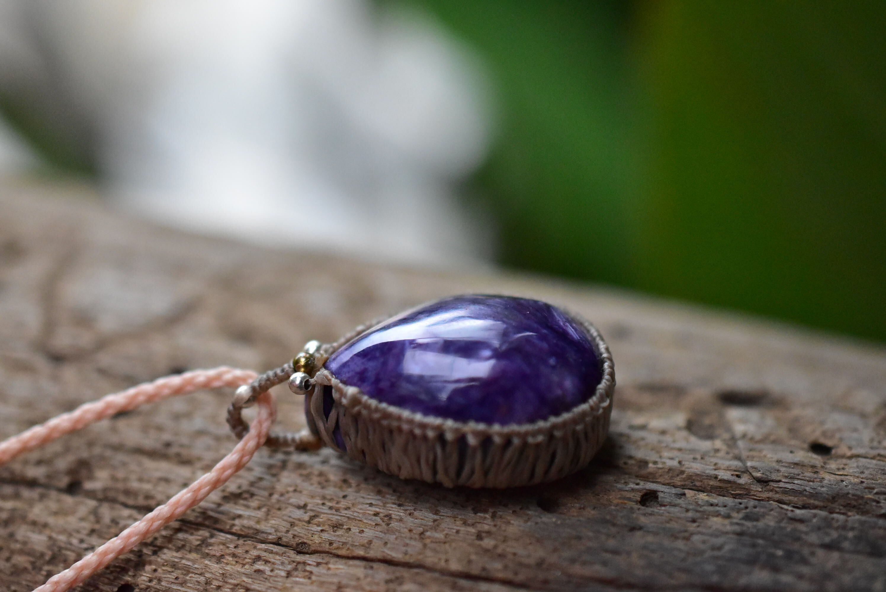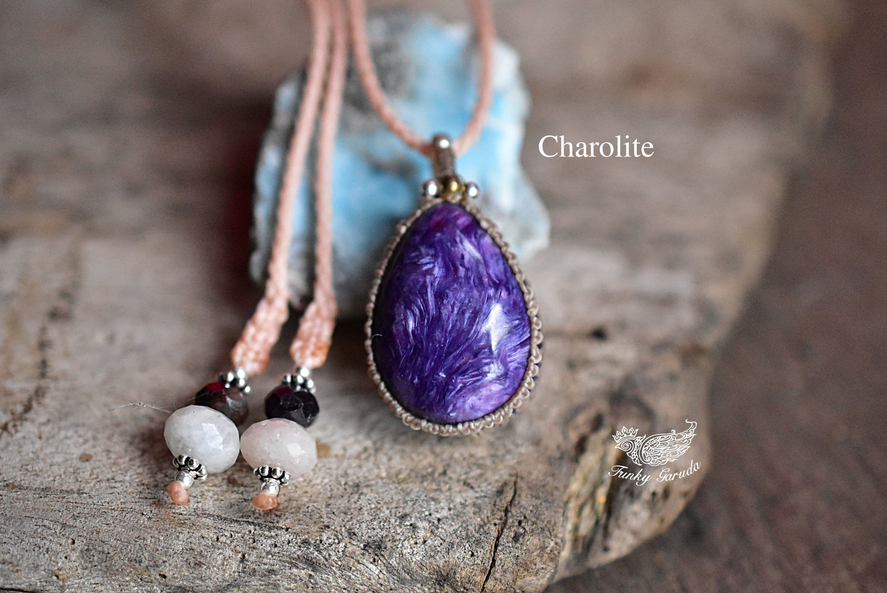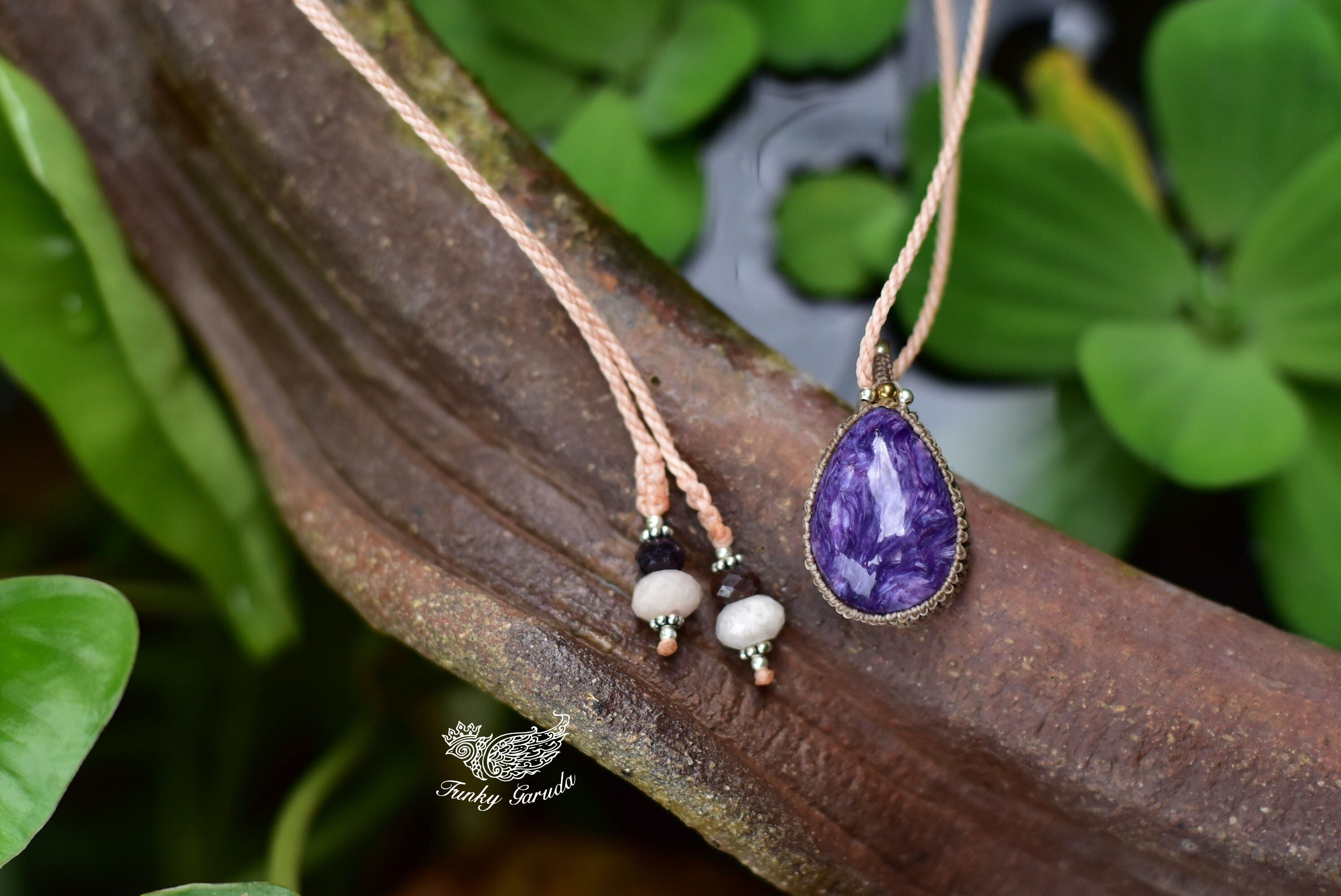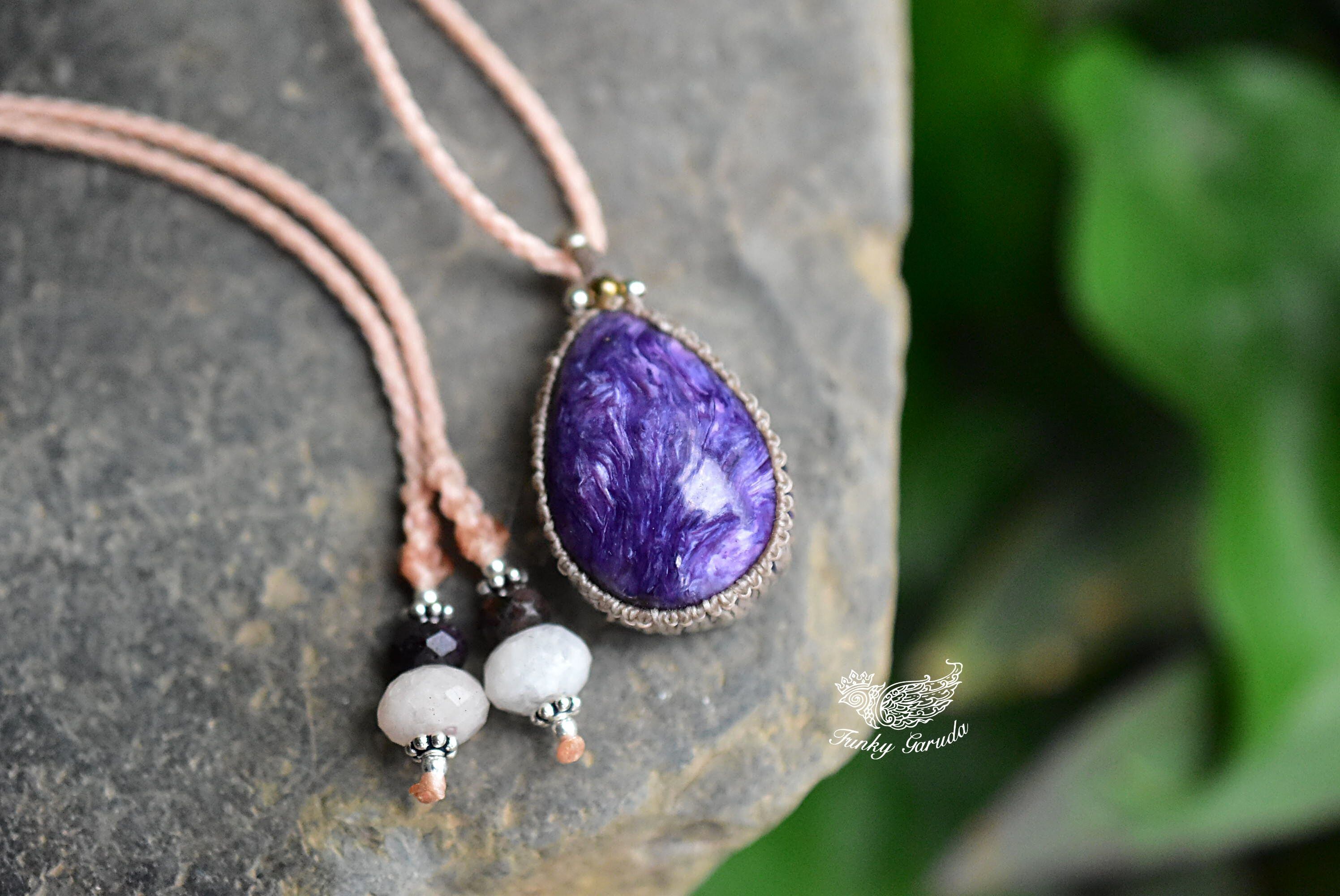 艶めく芸術★チャロアイト シンプルマクラメペンダント chay001