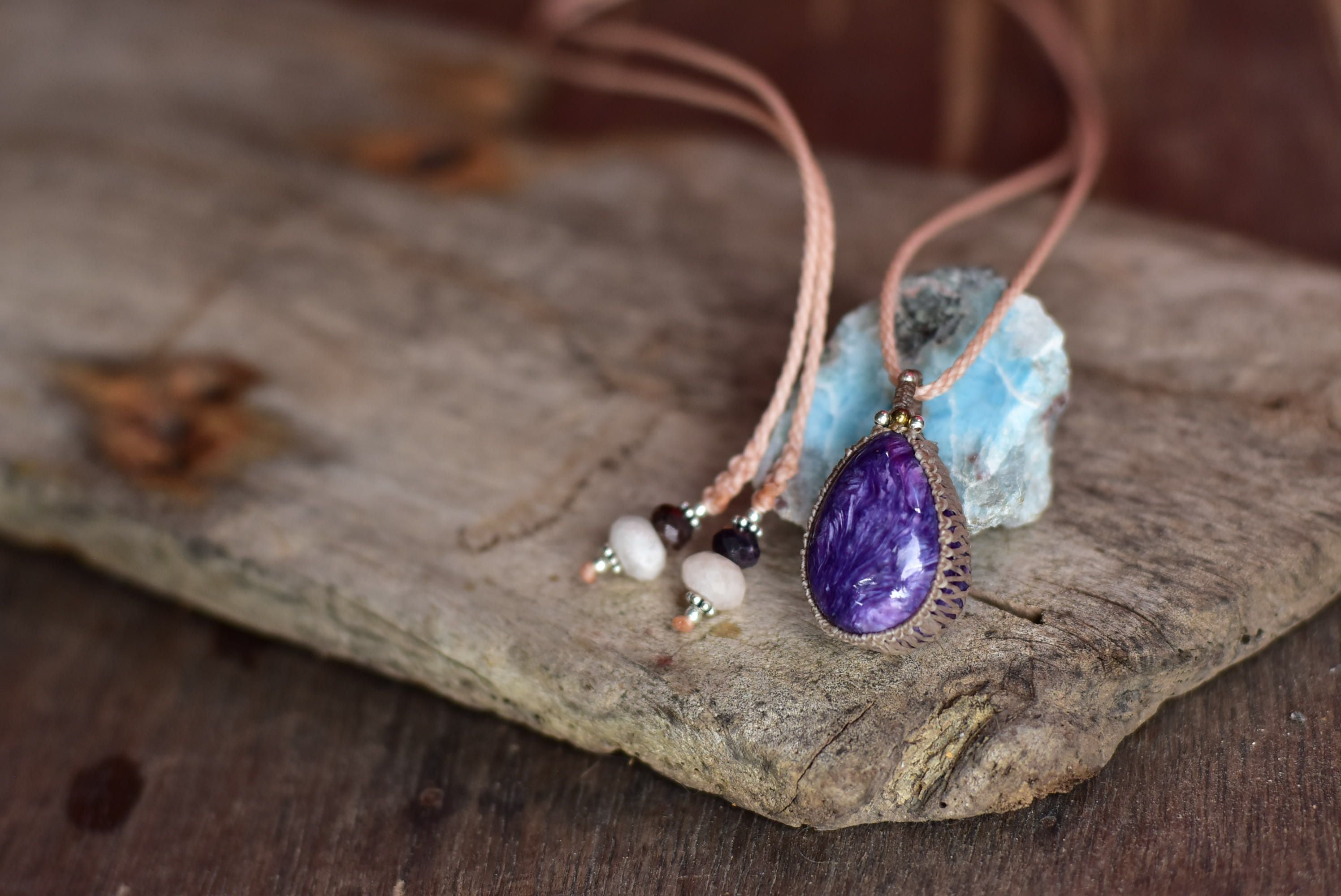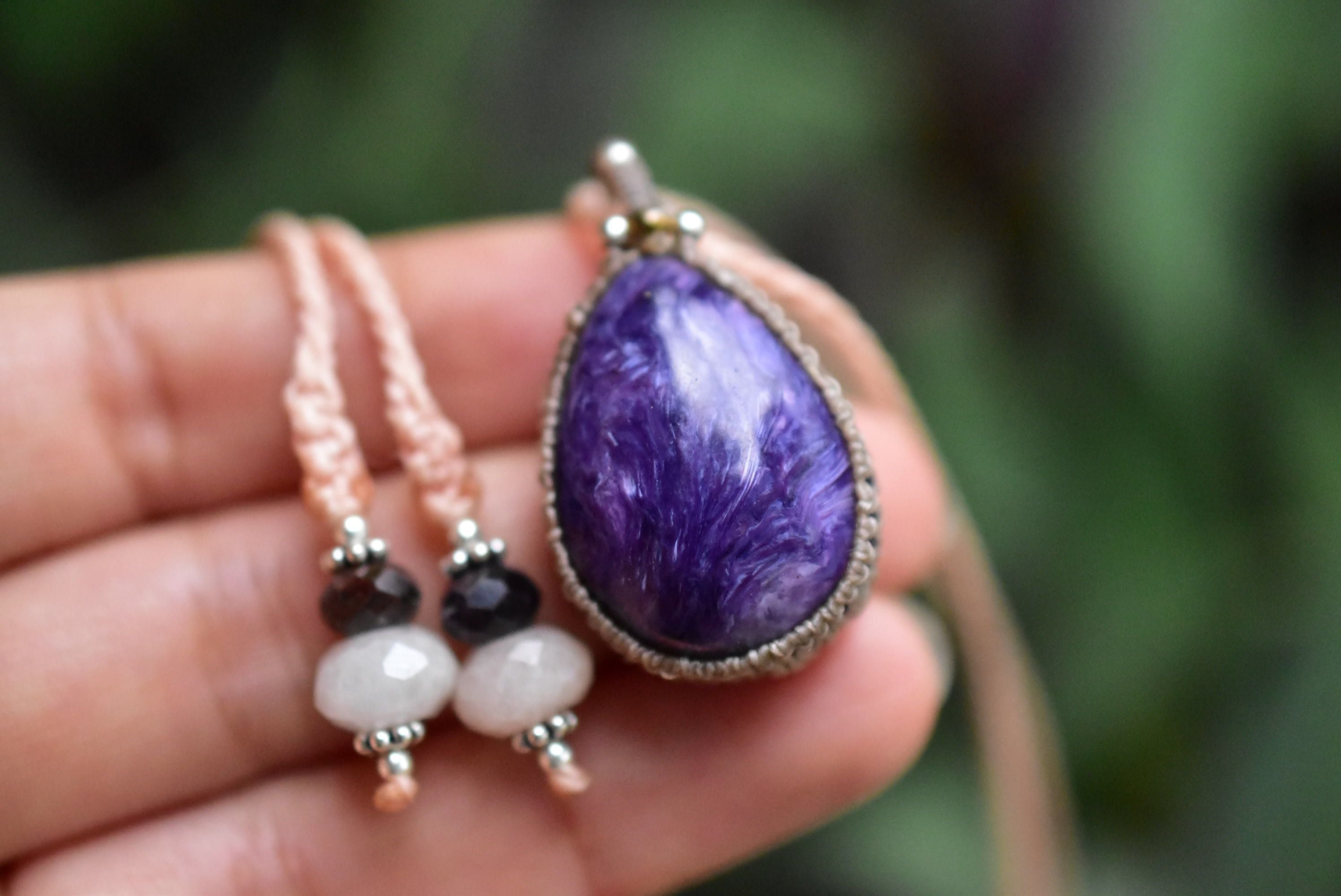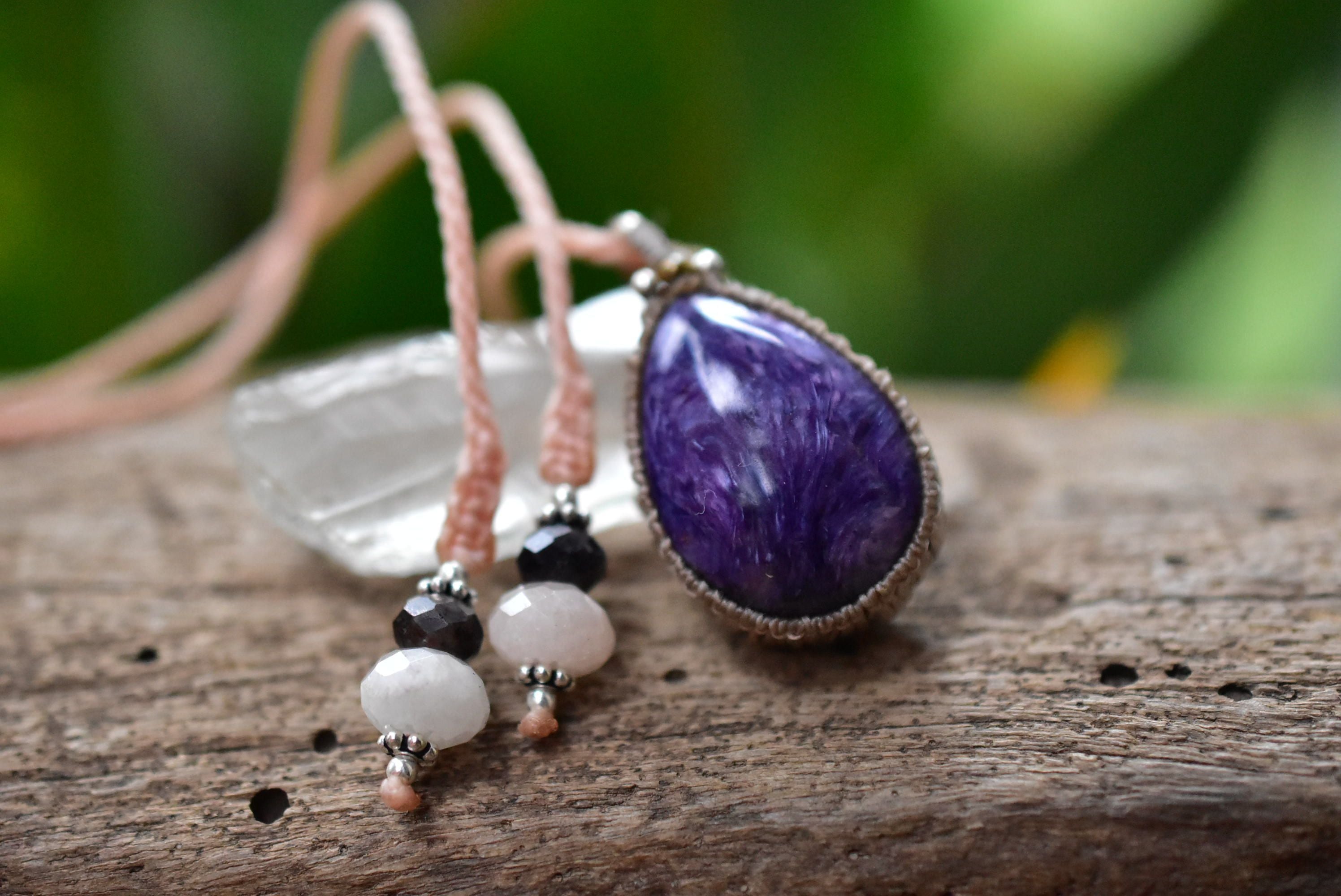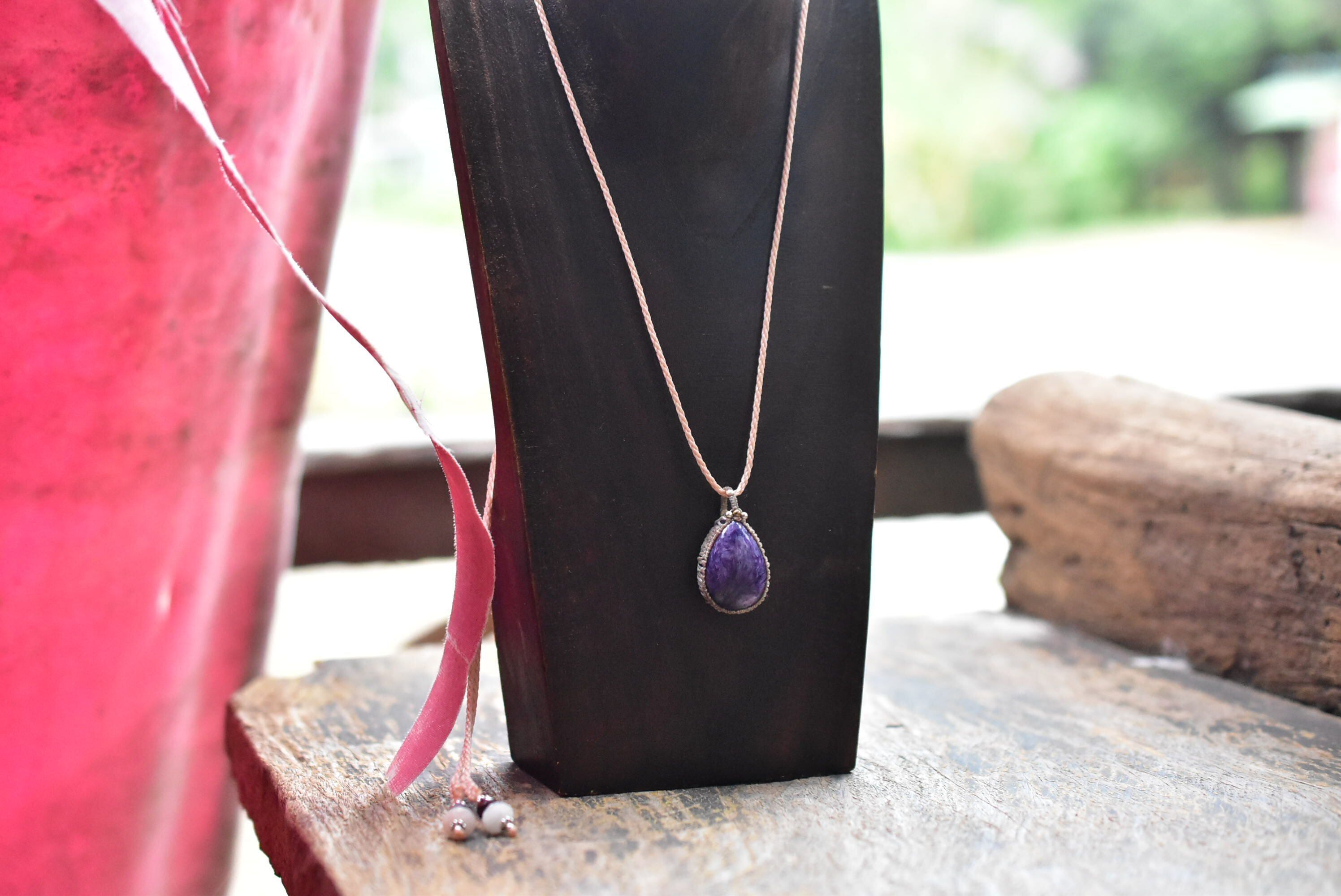 艶めく芸術★チャロアイト シンプルマクラメペンダント chay001
