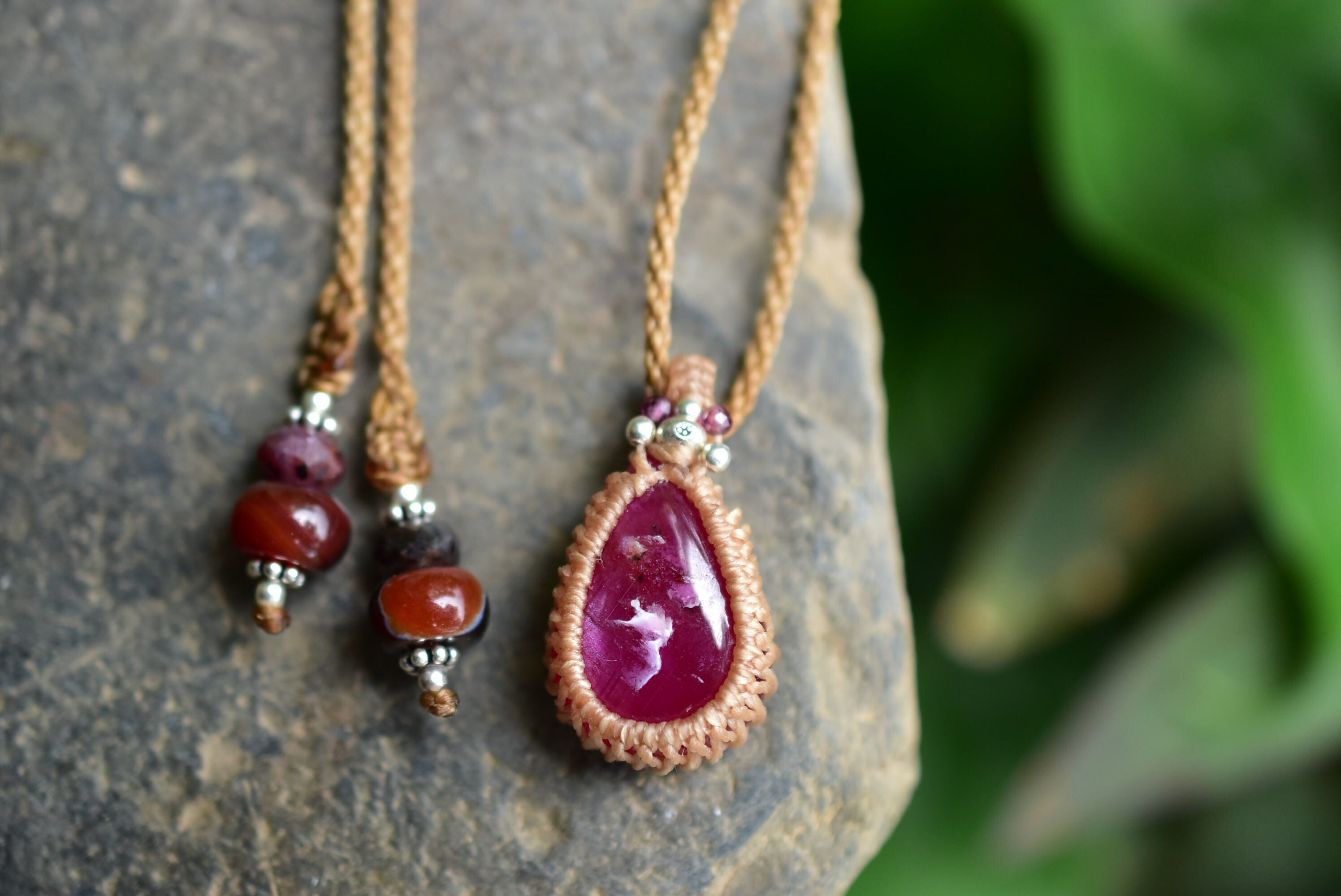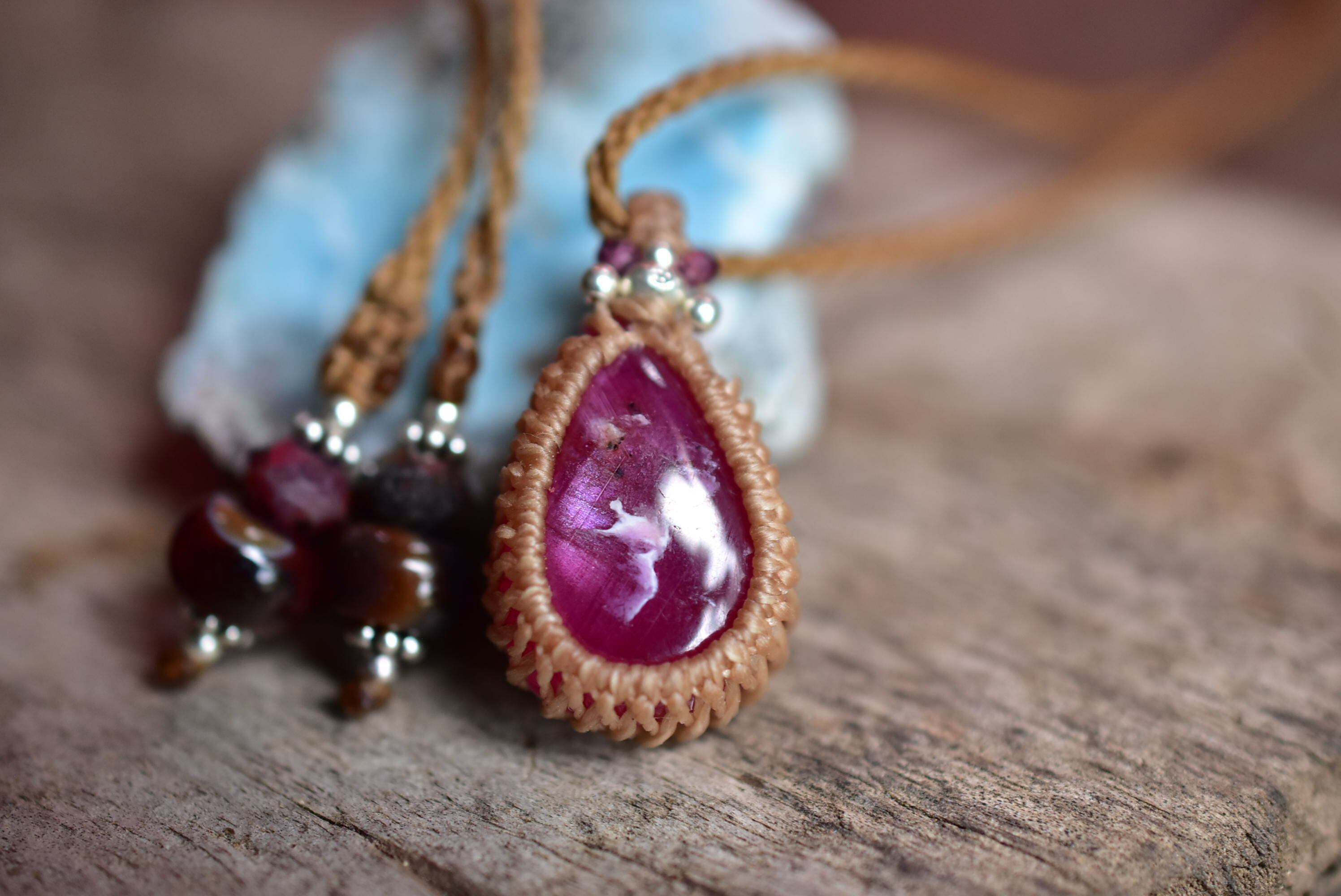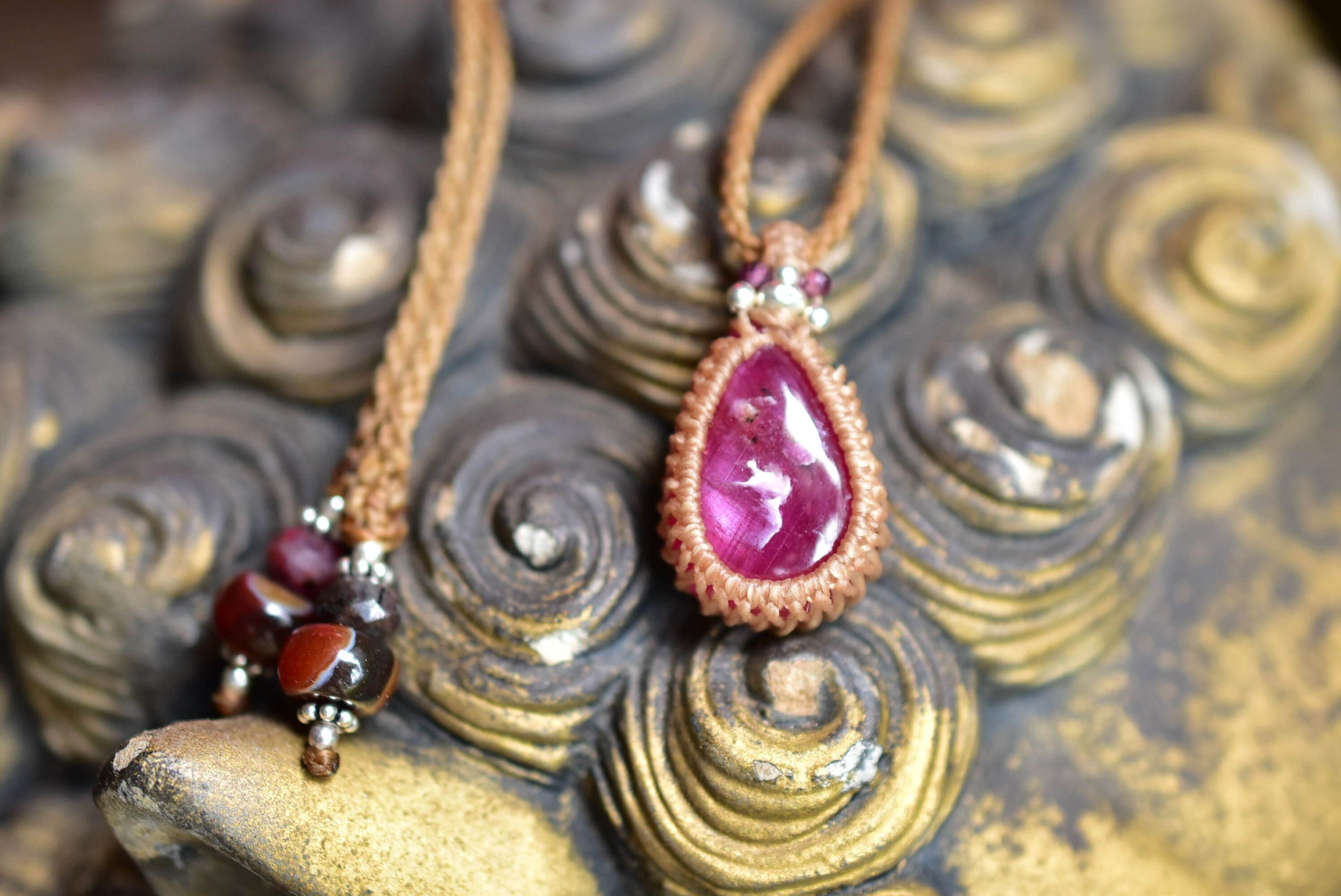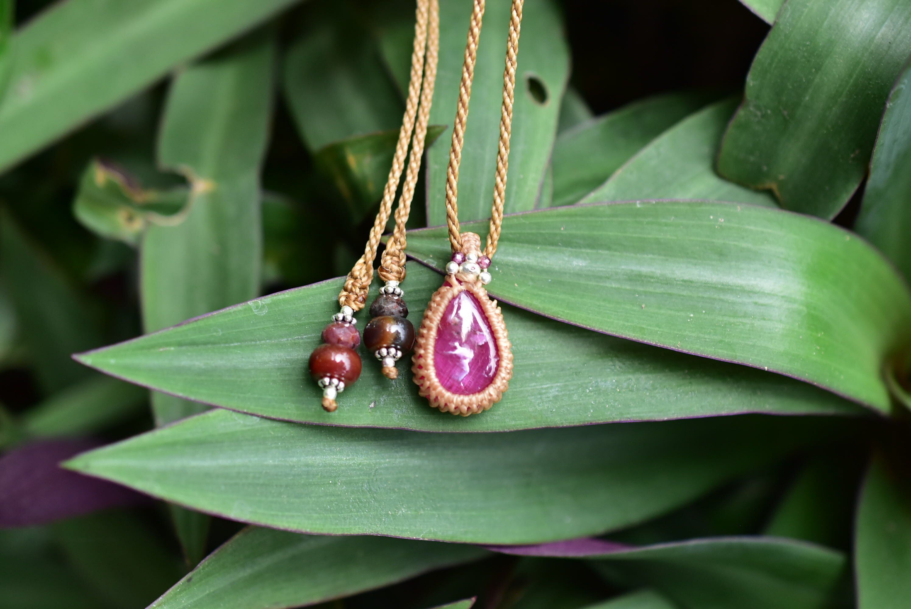 魅惑のピンク★ルビー シンプルマクラメペンダント rubyy002