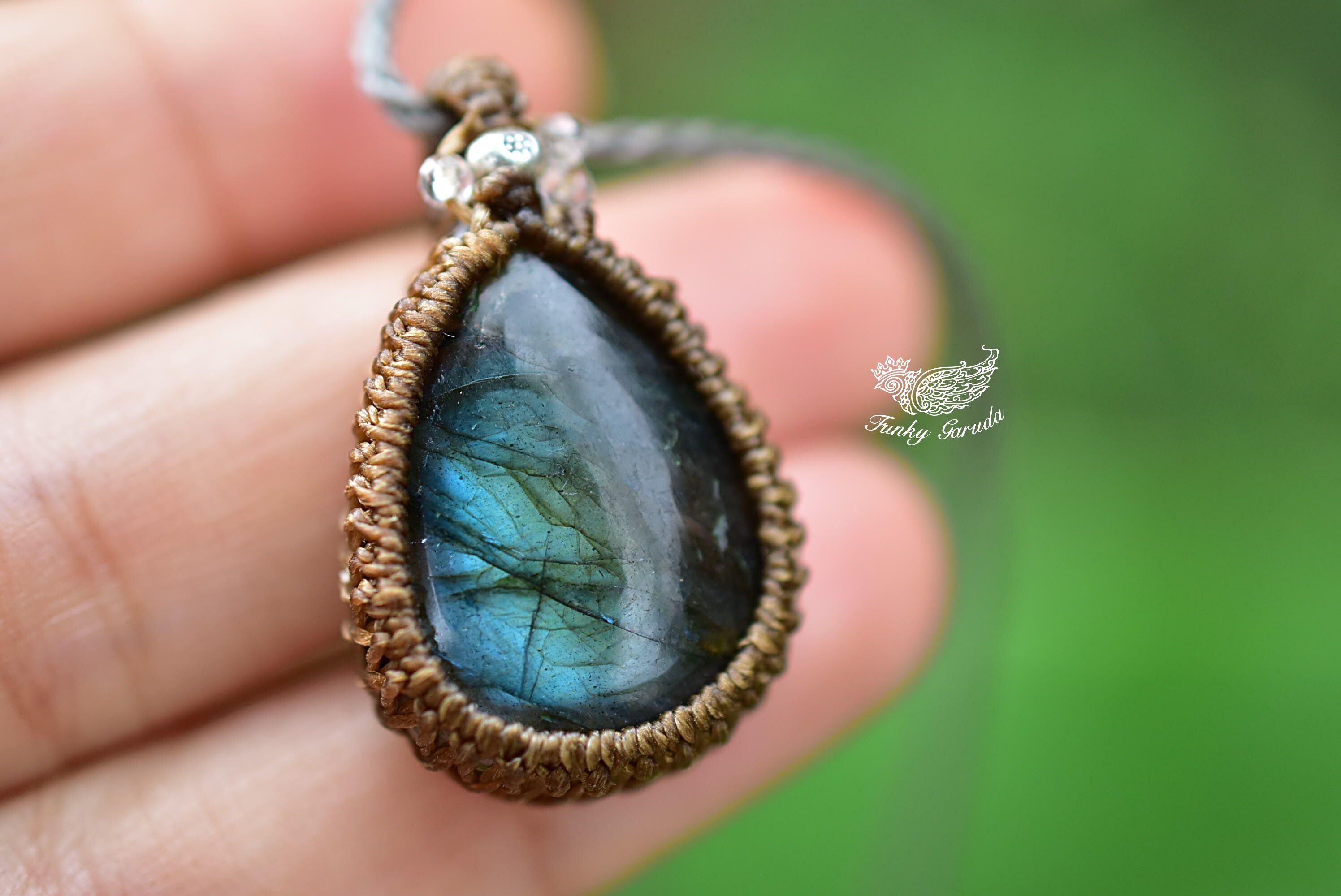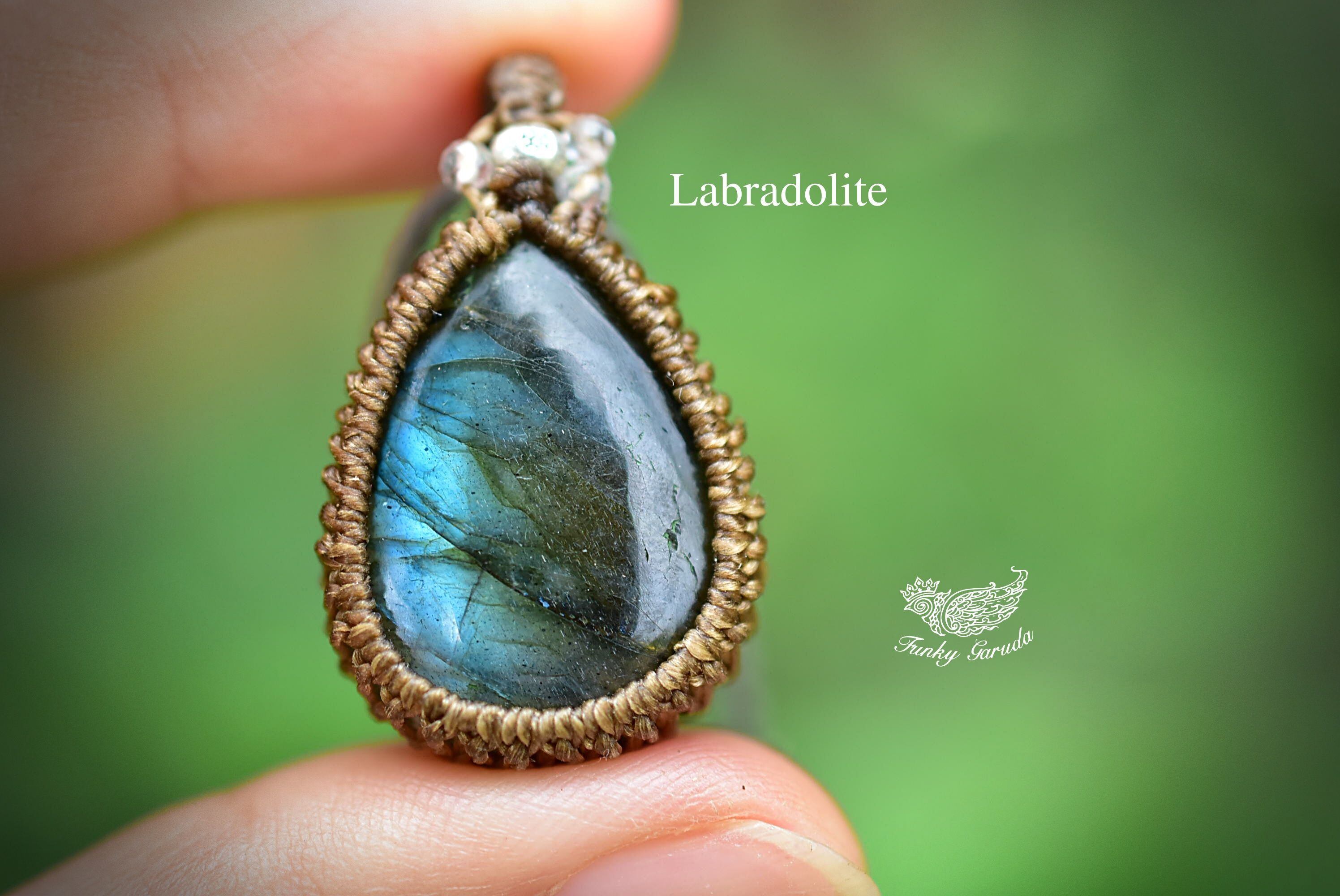 高貴な緑青★ラブラドライトマクラメペンダント lay012