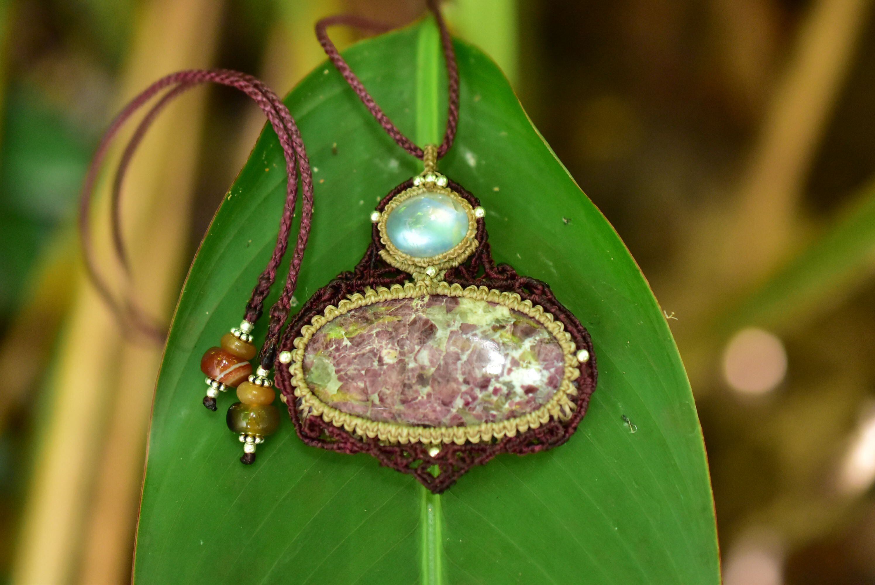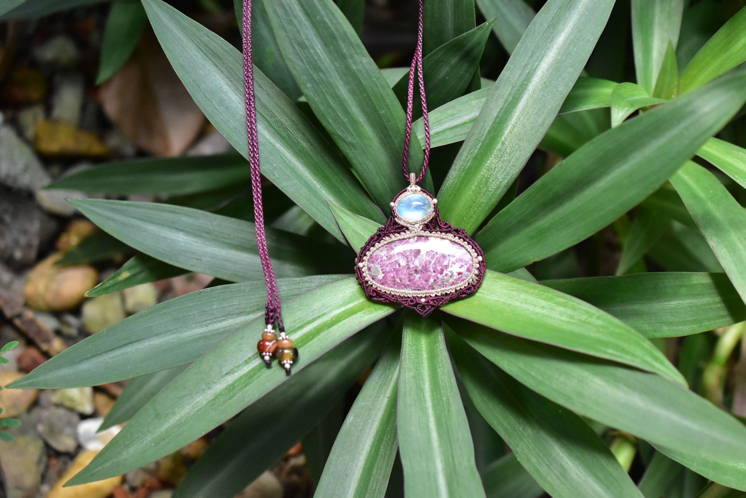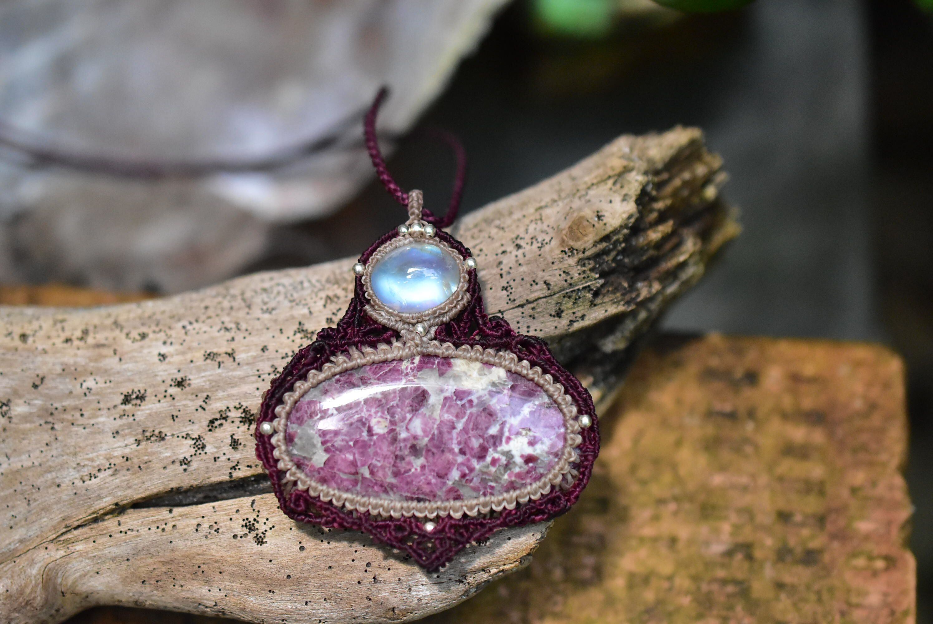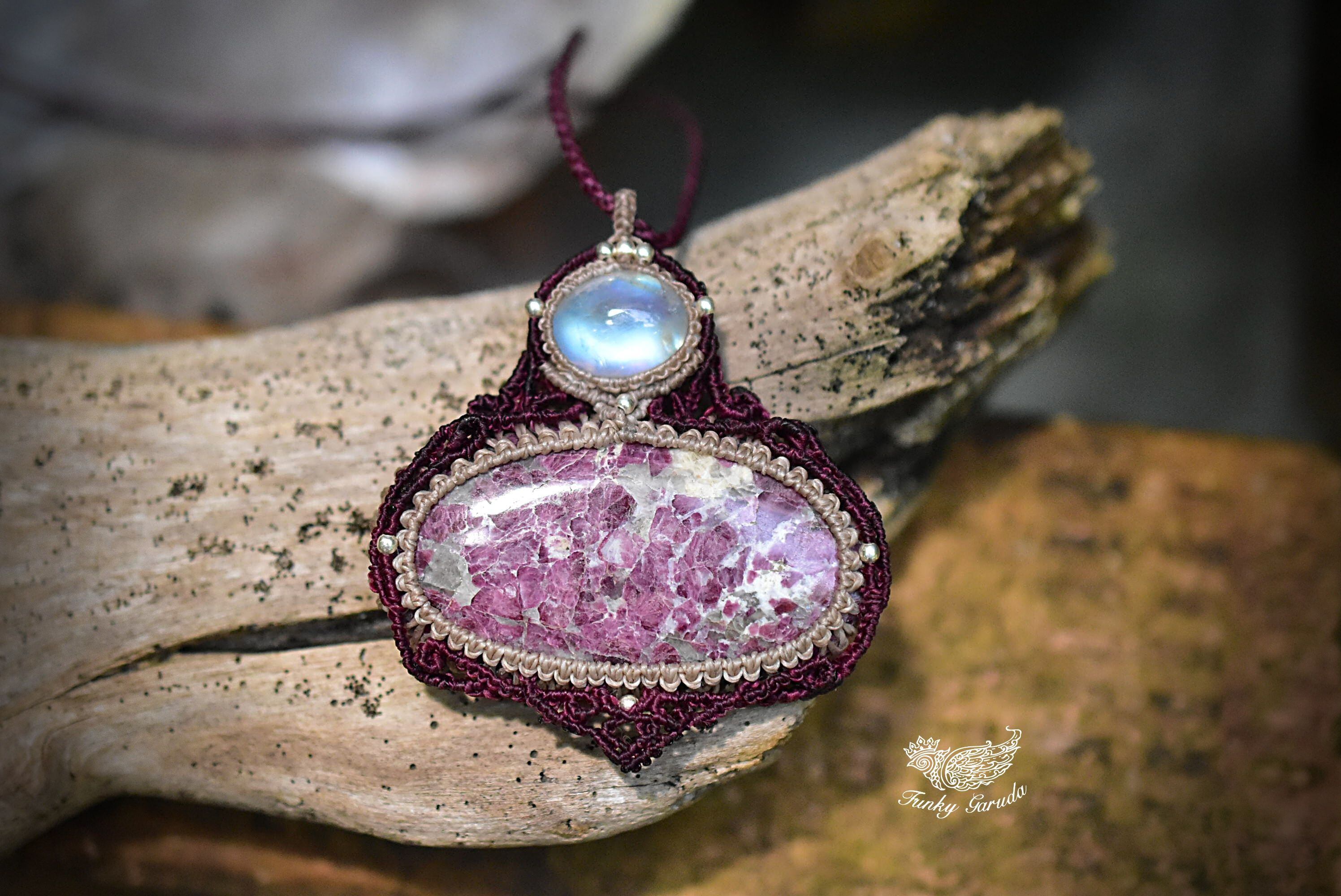 虹との重なり★ルビーインクォーツ ムーンストーン マクラメペンダント ruby030