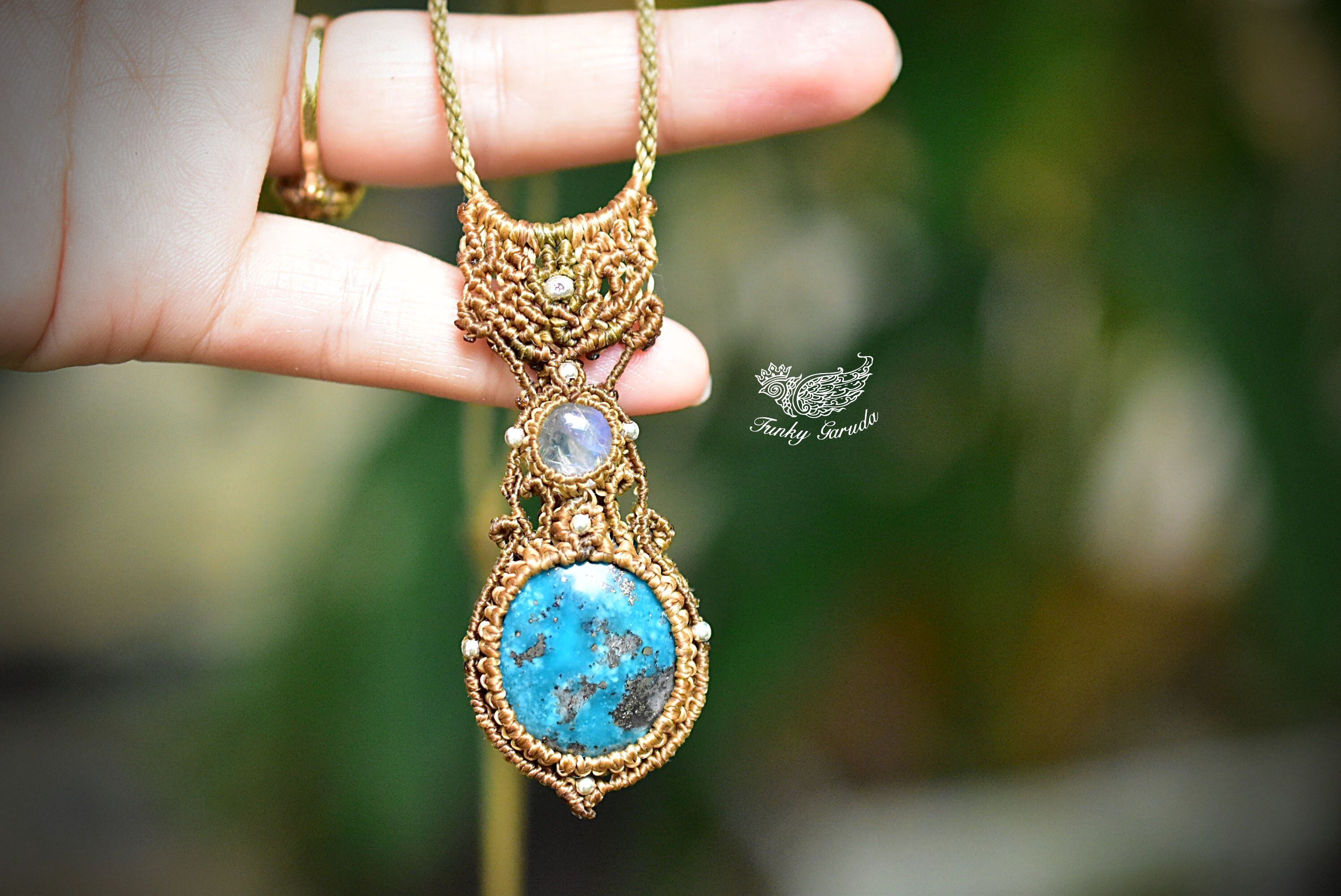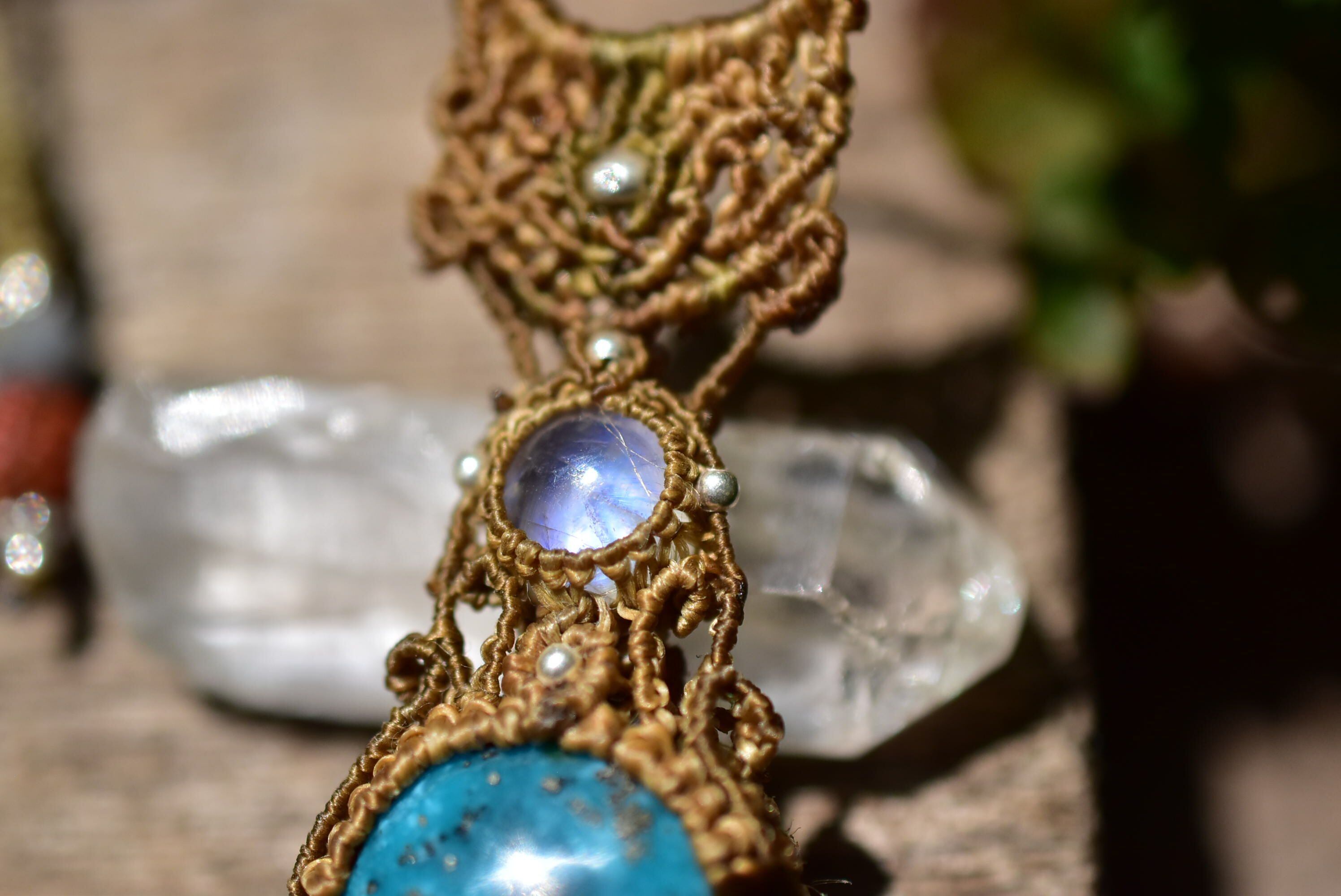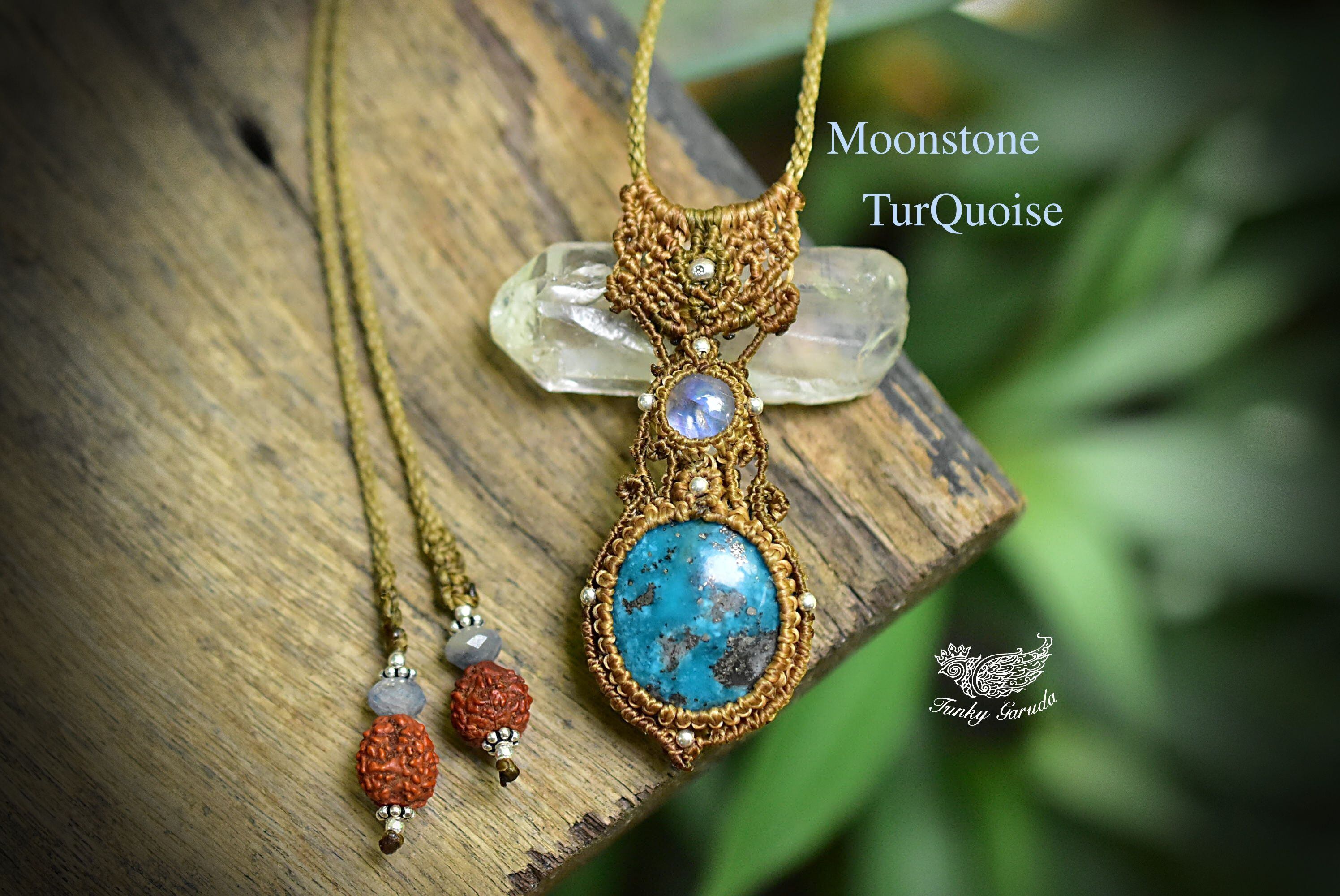 旅人の輝き★ターコイズとレインボームーンストーン マクラメペンダント tur023